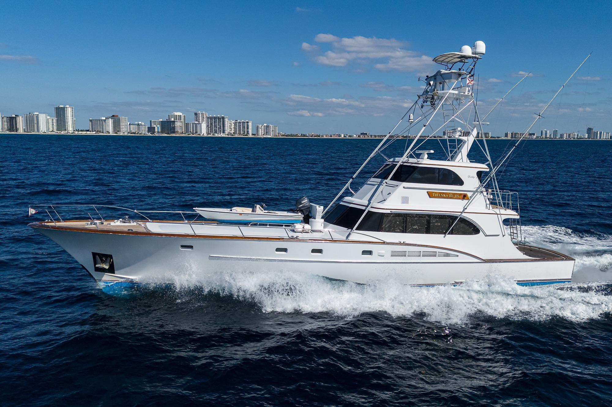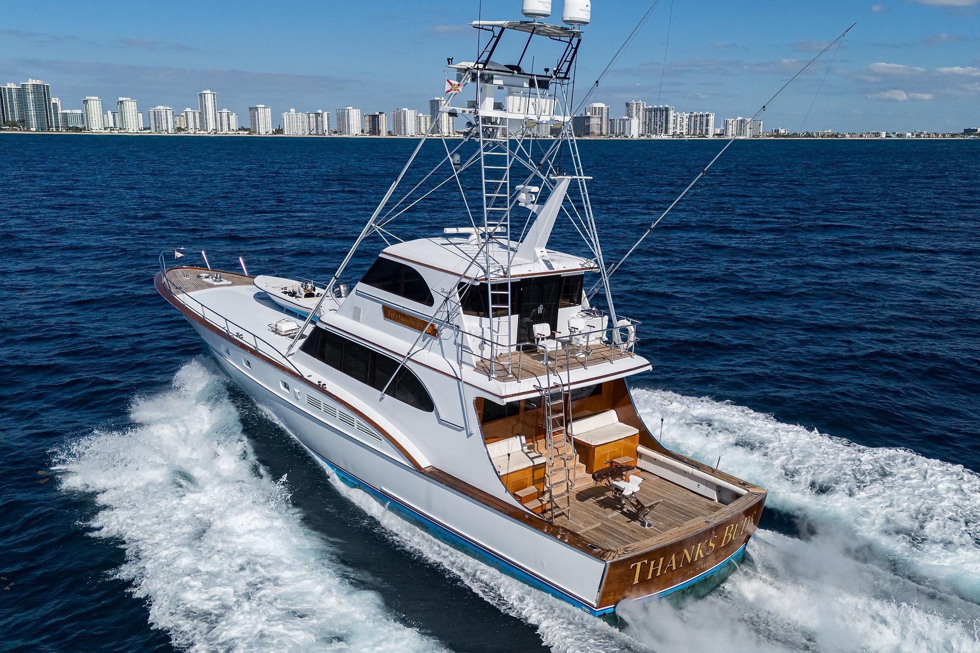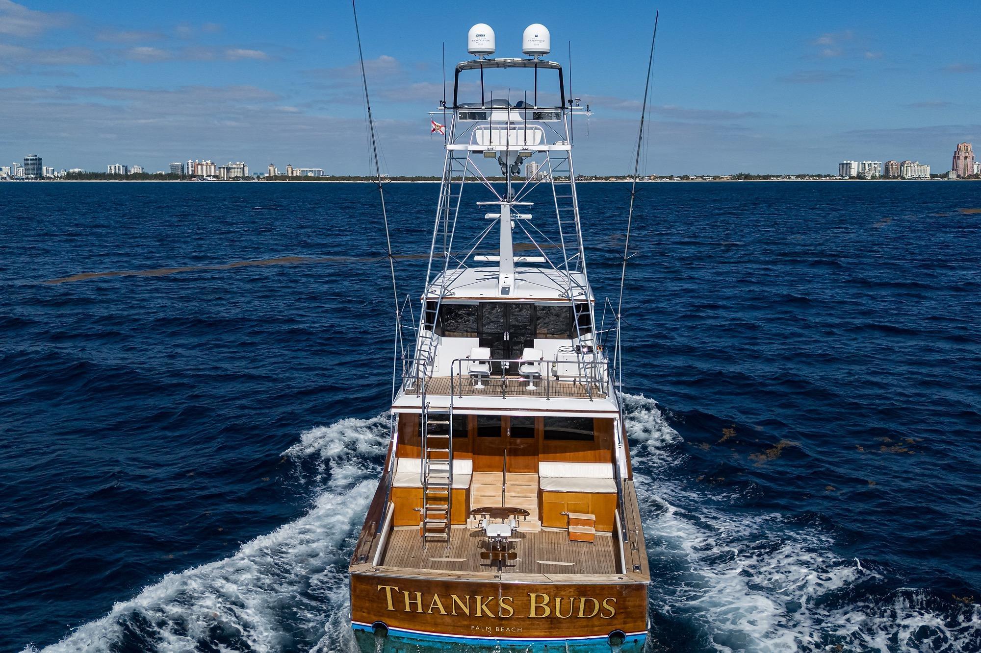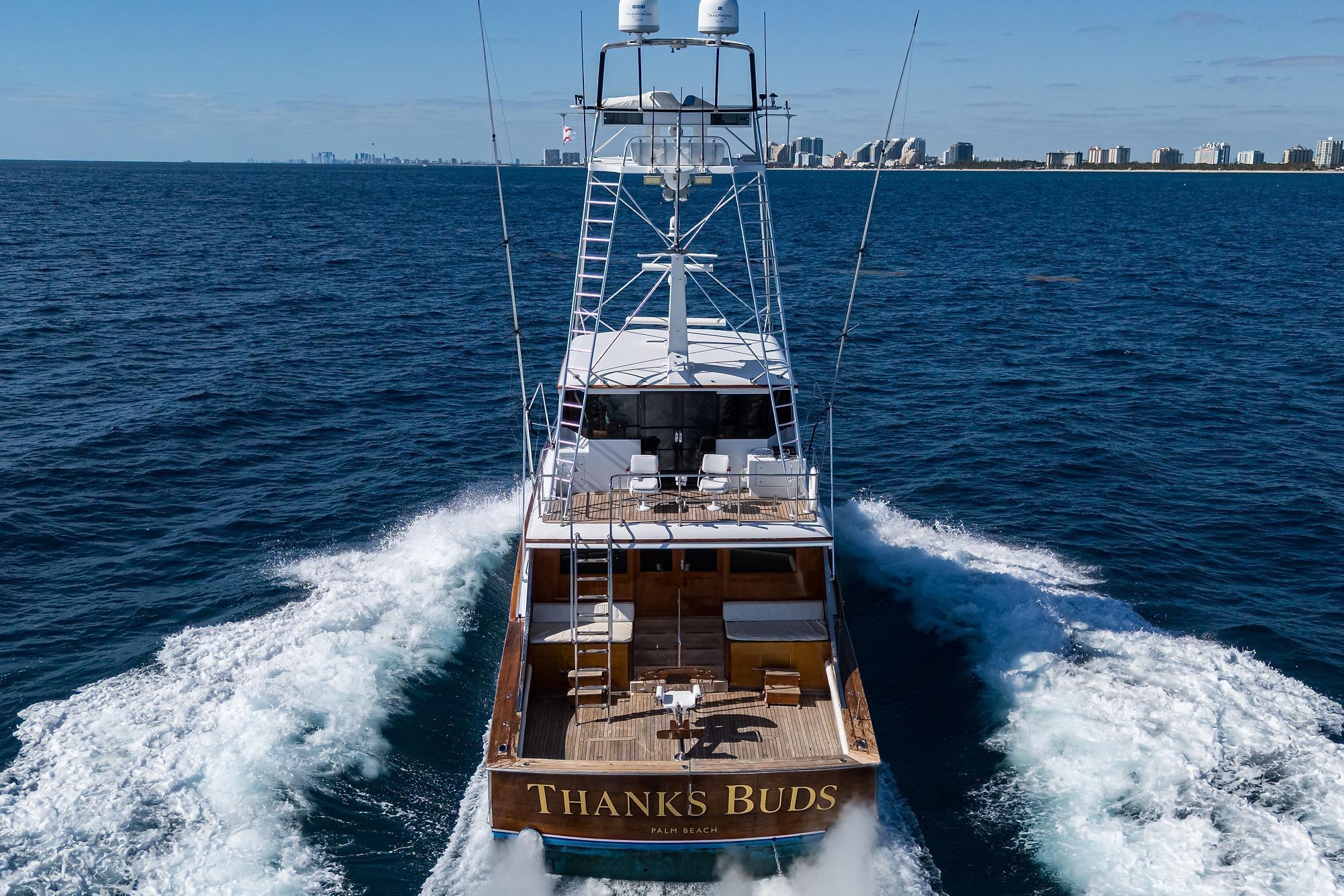 THANKS BUDS is a beautifully refit sportfisherman that blends power, comfort, and serious fishing capability. Her immense cockpit features a custom fighting chair, livewells, tackle storage, refrigeration, and mezzanine-style access to the salon—perfectly designed for tournament action or family cruising.Step inside to an open salon with port and starboard seating, updated entertainment systems, and a discreetly designed galley with granite countertops, Jenn-Air appliances, and concealed refrigeration/freezers. The layout flows seamlessly for entertaining, with hidden bar storage and rod storage overhead.Accommodations include four ensuite staterooms, highlighted by a forward master with king berth, settee, and an oversized head and shower rarely seen in this class. Additional guest and crew cabins ensure space for extended trips, plus a laundry center for convenience.The enclosed pilothouse offers dual helm stations, abundant seating, and an aft observation deck with swivel chairs, while the full tower provides excellent visibility and redundant controls for serious offshore runs.Powered by twin CAT C-30 1550 HP engines (2005 refit) and twin 55kW Northern Lights generators, she is fully outfitted with updated systems and services including a full bottom job in November 2024.THANKS BUDS represents a rare opportunity to own a turnkey, tournament-ready convertible that delivers both luxury and performance.
