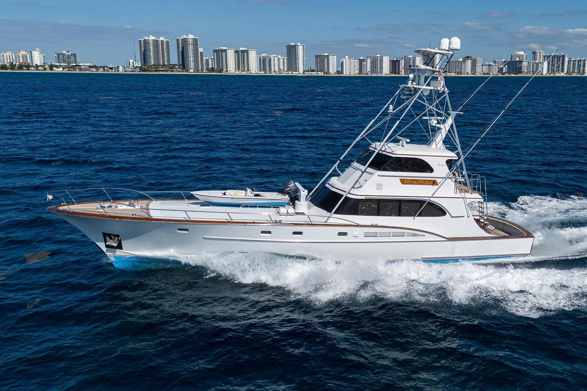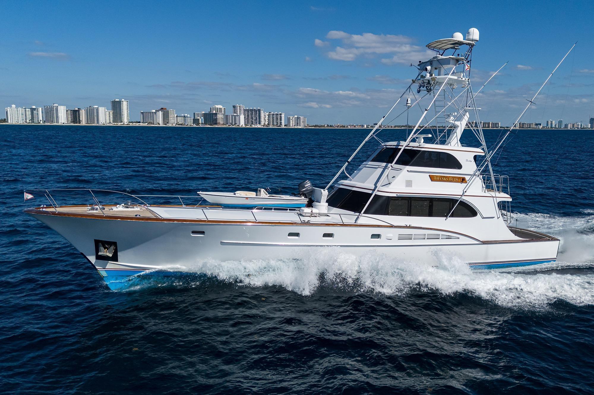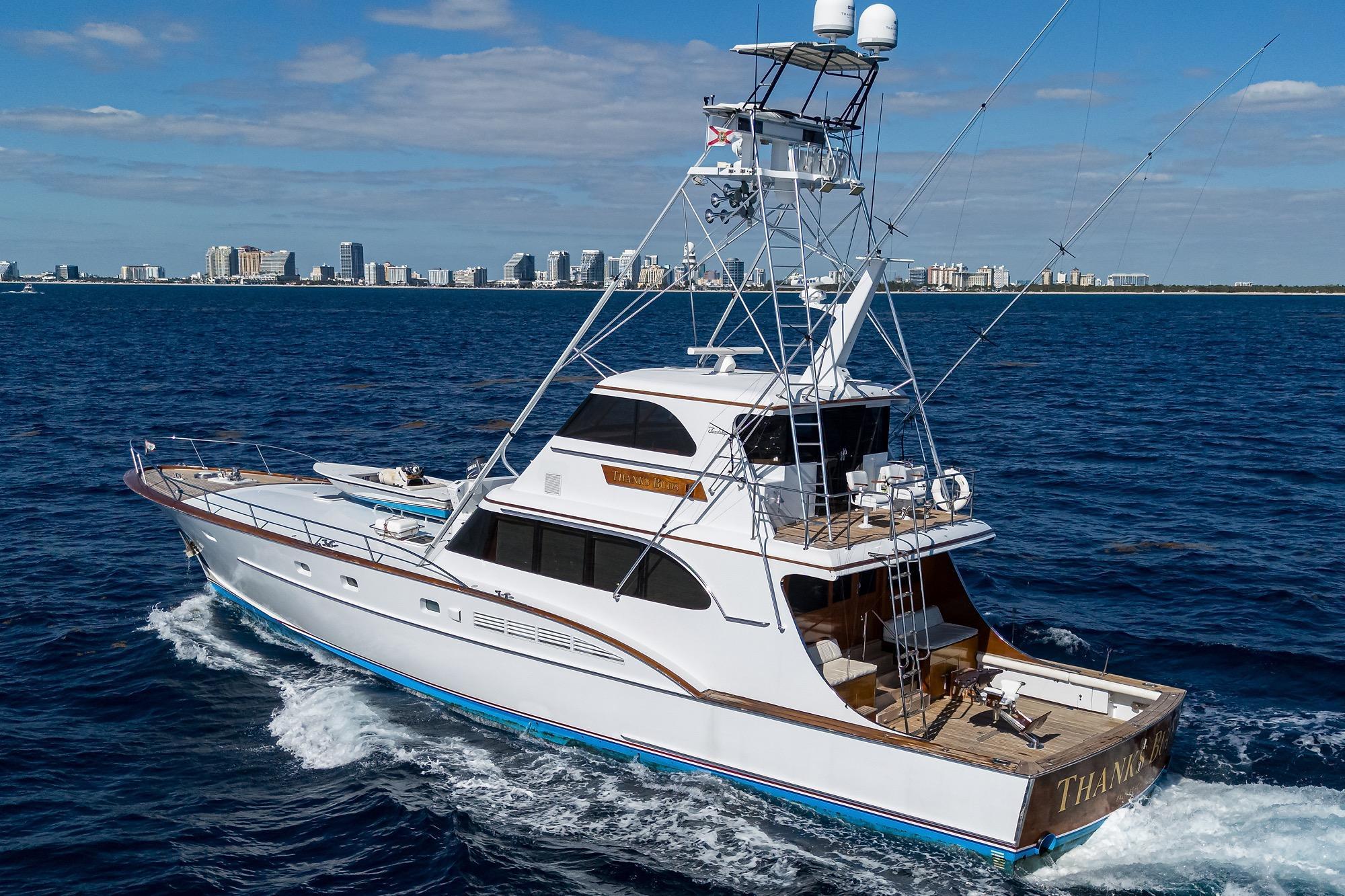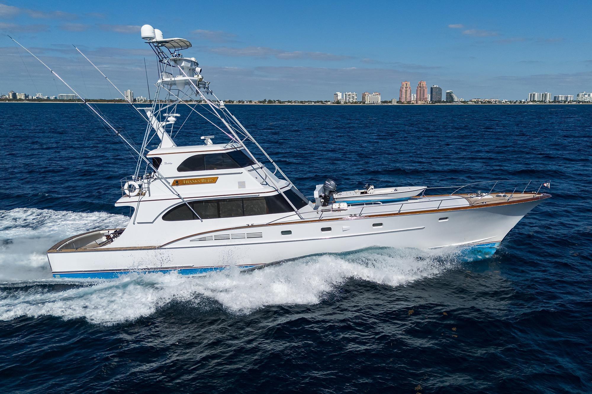 THANKS BUDS is a beautifully refit sportfisherman that blends power, comfort, and serious fishing capability. Her immense cockpit features a custom fighting chair, livewells, tackle storage, refrigeration, and mezzanine-style access to the salon—perfectly designed for tournament action or family cruising.Step inside to an open salon with port and starboard seating, updated entertainment systems, and a discreetly designed galley with granite countertops, Jenn-Air appliances, and concealed refrigeration/freezers. The layout flows seamlessly for entertaining, with hidden bar storage and rod storage overhead.Accommodations include four ensuite staterooms, highlighted by a forward master with king berth, settee, and an oversized head and shower rarely seen in this class. Additional guest and crew cabins ensure space for extended trips, plus a laundry center for convenience.The enclosed pilothouse offers dual helm stations, abundant seating, and an aft observation deck with swivel chairs, while the full tower provides excellent visibility and redundant controls for serious offshore runs.Powered by twin CAT C-30 1550 HP engines (2005 refit) and twin 55kW Northern Lights generators, she is fully outfitted with updated systems and services including a full bottom job in November 2024.THANKS BUDS represents a rare opportunity to own a turnkey, tournament-ready convertible that delivers both luxury and performance.