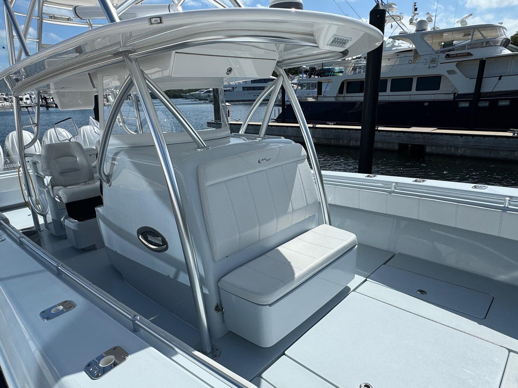 Custom built for a very seasoned fisherman and a multiple Contender owner. This 44 ST has it all and then some! Built to fish George's Bank, Florida, the Bahamas and more. No detail was missed and no corner was cut. Redundancy was the key goal to in this built to ensure this vessel could travel to pretty much anywhere and get home safely! YAMAHA ENGINES UNDER FACTORY WARRANTY UNTIL 9/2027Quad Yamaha 425 with Helm Master JoystickSeakeeper 3Custom Palm Beach Tower with aft facing seat Stadium two row helm seatingForward seating optionTeak package inside console with electric headCustom Helm Switch PanelFull Simrad Electronics Package with 24" Helm Displays, aft facing display and tower displayAutopilotHalo RadarSirius Weather3KW TransducerFusion RadioJL Speakers with Subwoofers and Amps