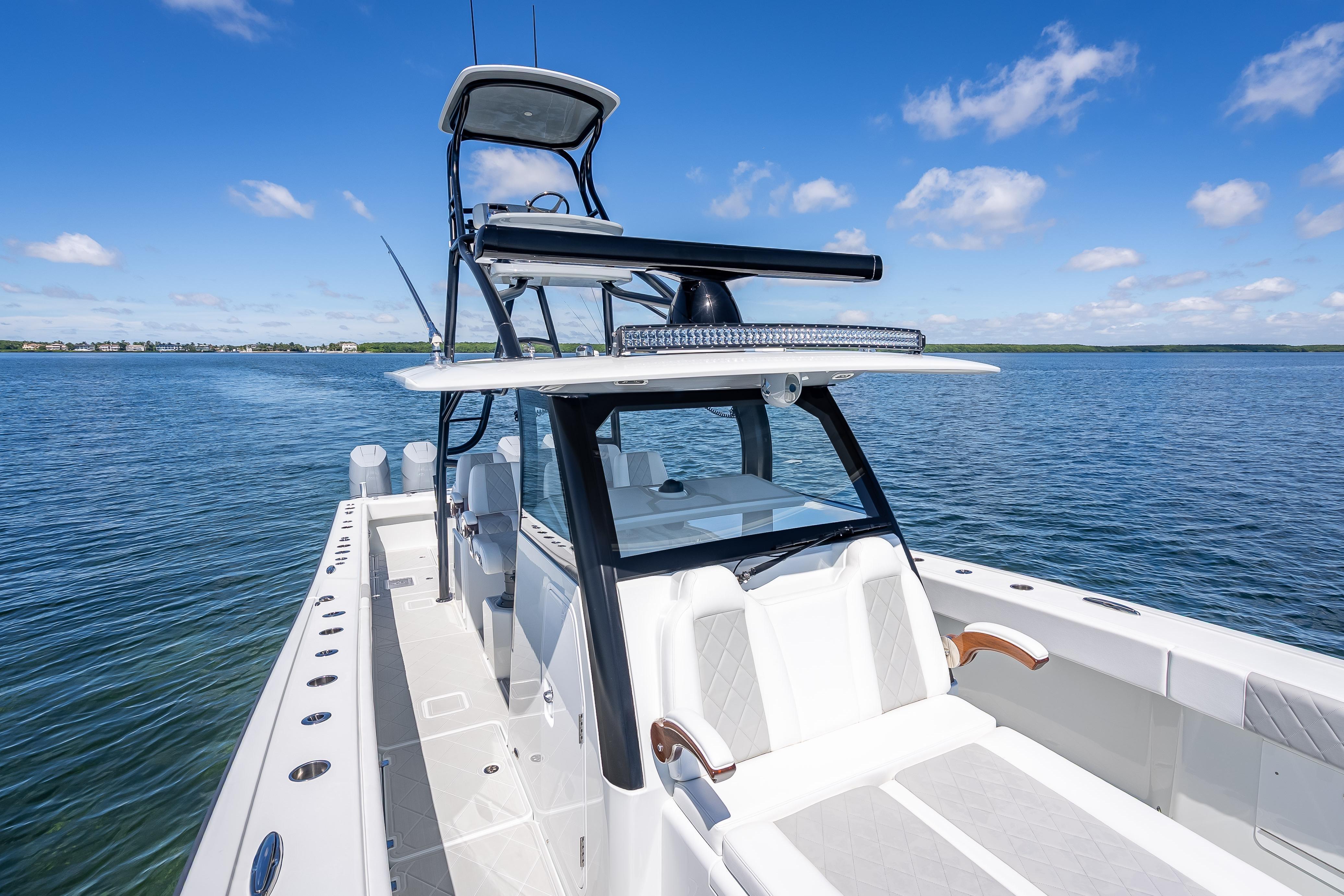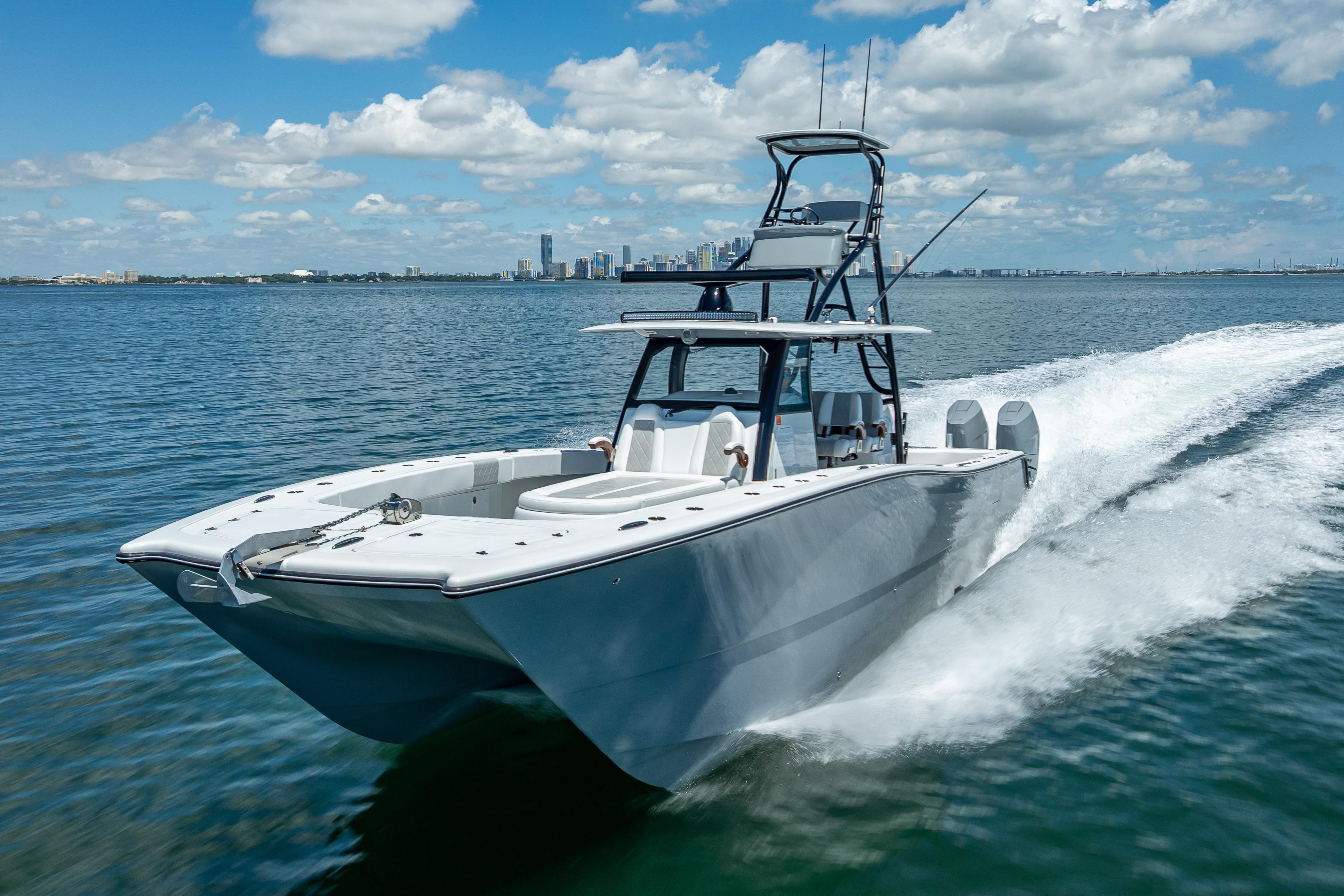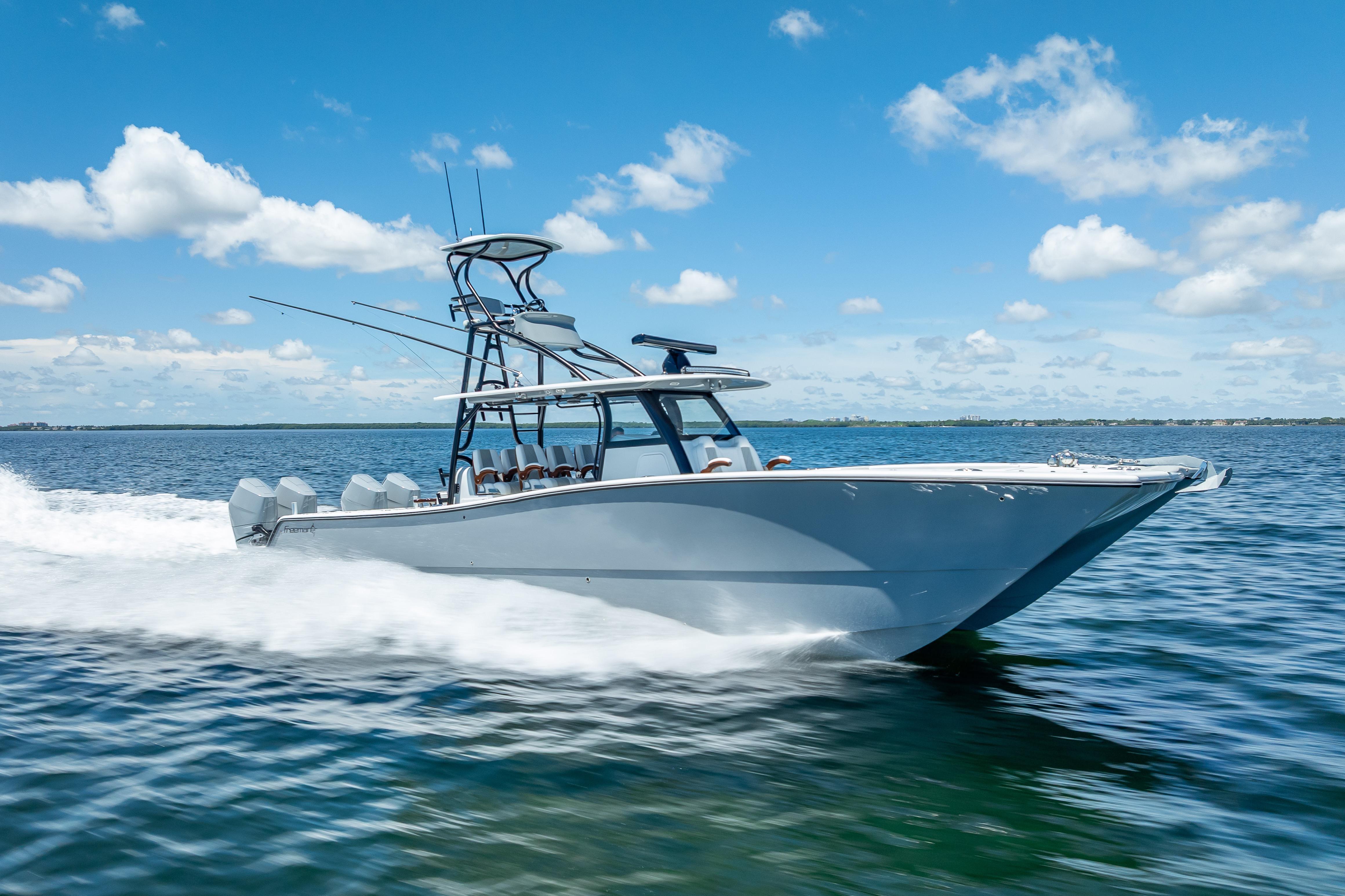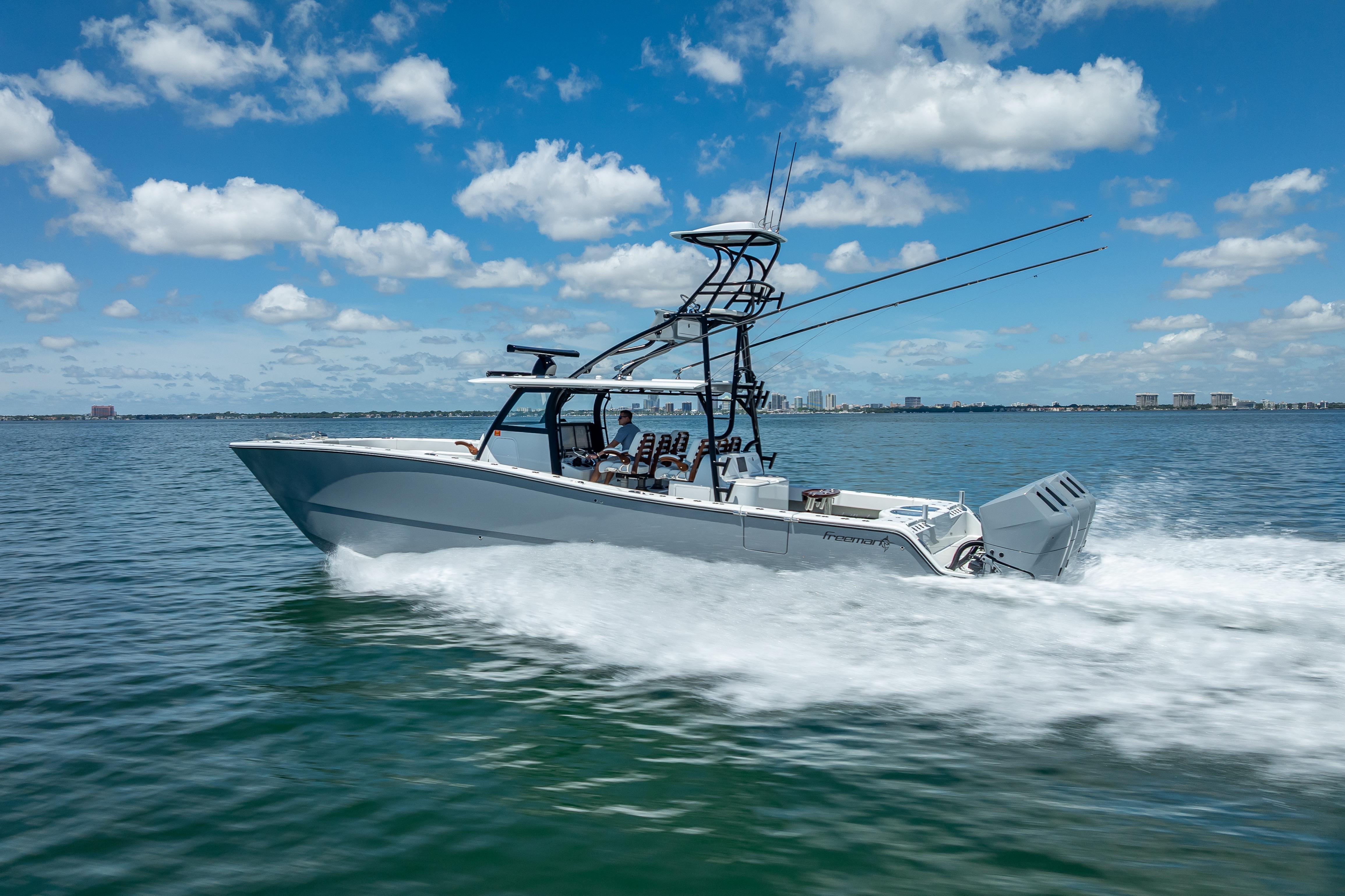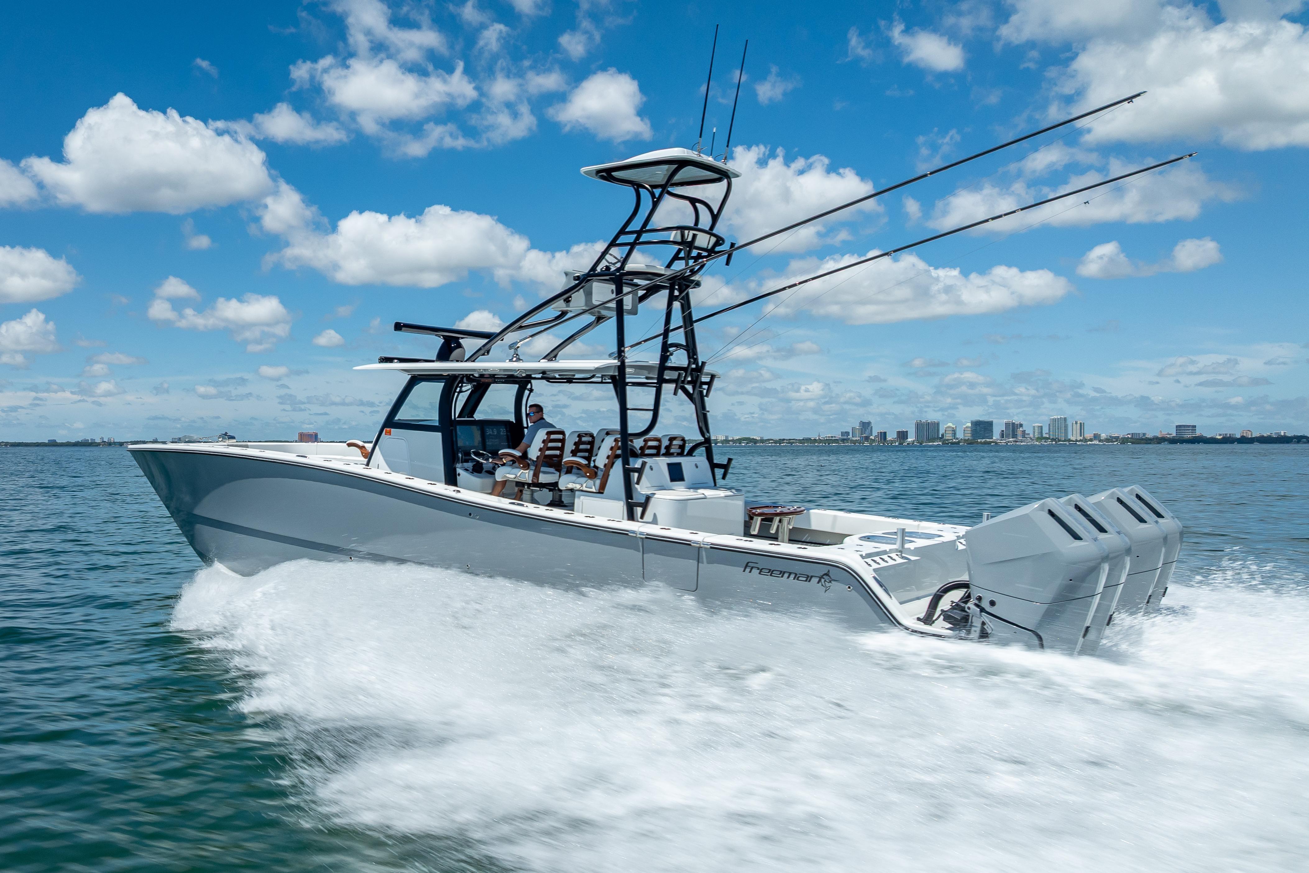 RARE OPPORTUNITY!! THE NEWEST 43' FREEMAN TO HIT THE MARKET!! QUAD MERCURY 400 V10S!! CUSTOM TOWER!! THE MOST LOADED 43' FREEMAN YOU WILL FIND!! Quad Mercury 400 V10's (490 Hours)Motors are custom-painted to match the HullJoystick Whisper Gray Hull SidesUnderside of hard top is whisper grayAll bright work powder-coated matte blackFully custom tower (150k upgrade)Starlink encased in the top of the tower hardtop Side wings Gemlux outrigger basesMarsh Tacky 23' internal Carbon Fiber outriggers Release teak bucket seats on both the helm and the second rowDiamond stitch upholstery (Light gray and white)Floor live wells and transom livewells Release teak rocket launcher (6) Electric plugsElectric marine head with pump-outSide dive door (port side)Underwater lightsMassive JL Audio Soundsystem Fushion RA 770 Head Unit(2) Garmin 24" units at the helmMercury Electric Autopilot GSD 26 and GSD 25 sounder module Garmin Phantom 56 - 6ft open array radar (Black)GMX54 Garmin SirusXM Marine receiver (2) Icom VHF Radios Flir Night Vision Zip Wake automatic trim tabs Lumitec lighting throughout the boatRear-facing fishing station Light barStar linkRear-facing Garmin MFDDeck it package on the entire deck and rod pads8 Chill plates WAY TOO MANY OPTIONS TO LIST!! WE WILL CONSIDER ALL TRADES AND CAN ASSIST WITH FINANCING!!