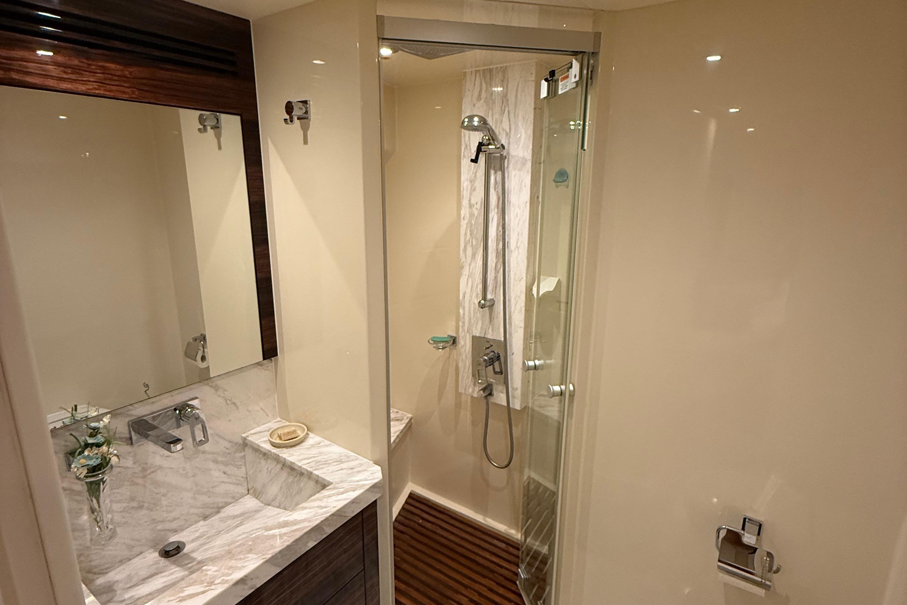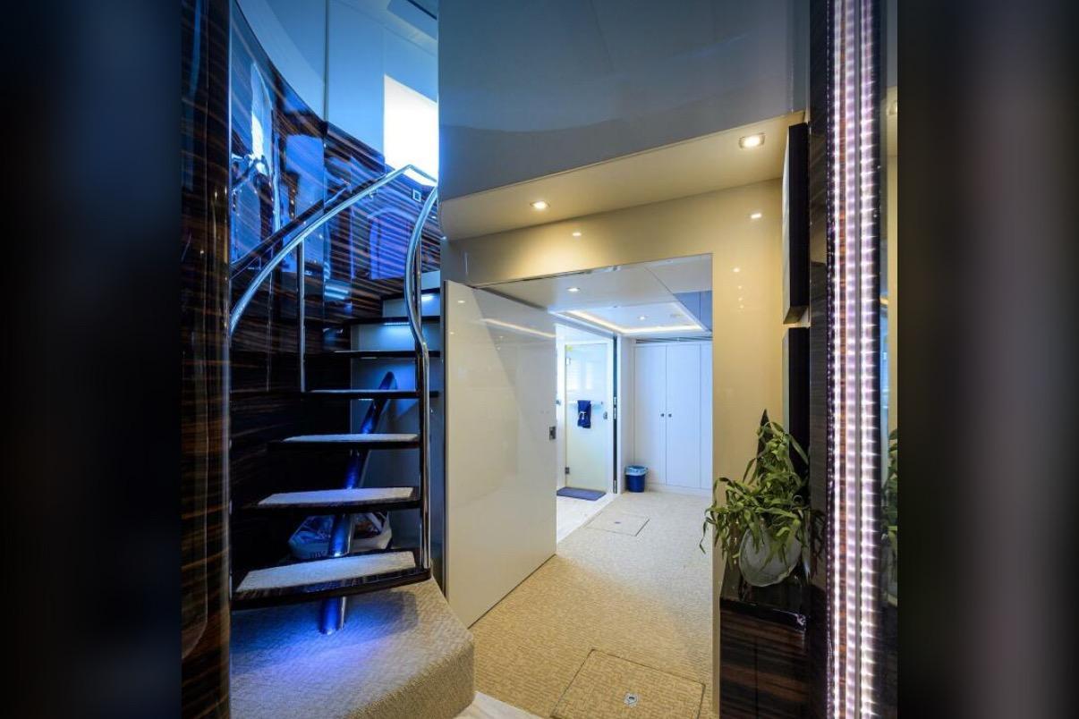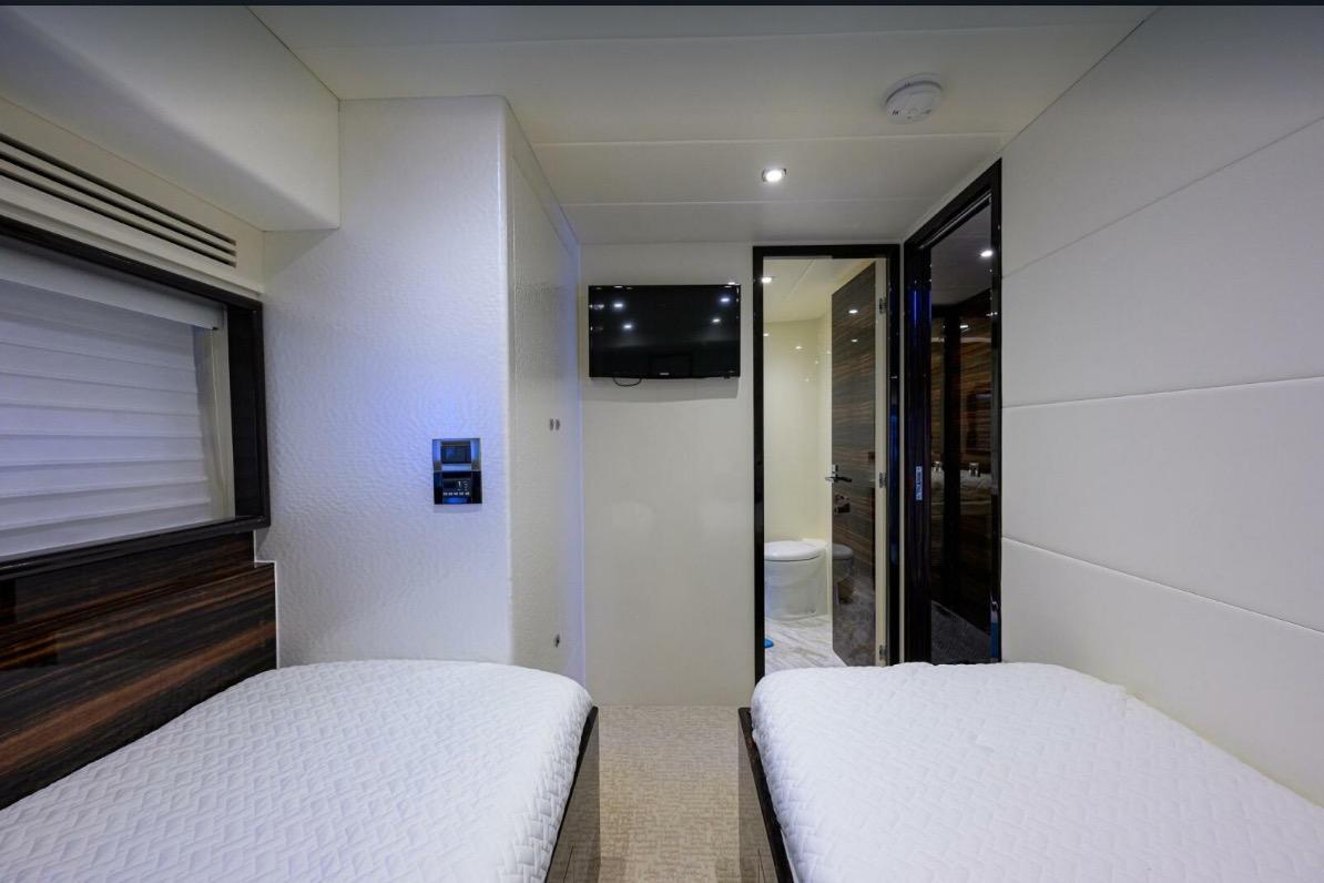 83' motor yacht 'Fujimo' (ex. HAMPTON 830) was built by Hampton Yachts in China. Her interior is styled by American designer design house Espinosa Yacht Design and she was completed in 2014. This luxury vessel's exterior design is the work of Espinosa Yacht Design.Guest AccommodationFujimo has been designed to comfortably accommodate up to 7 guests in 4 suites. She is also capable of carrying up to 4 crew onboard to ensure a relaxed luxury yacht experience.Range & PerformanceBuilt with a fiberglass hull and fiberglass superstructure, with fiberglass sandwich decks, she has impressive speed and great efficiency thanks to her planing hull. Powered by twin diesel Caterpillar (C32A) 1,600hp engines, she comfortably cruises at 20 knots, reaches a maximum speed of 23 knots. Her water tanks store around 350 Gallons of fresh water.