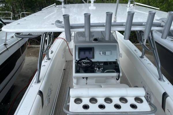 39 ft 2013 Midnight Express 39 OpenTriple Mercury Verado 300 hp outboards (~1,000 hours)Garmin GPS/depthsounder · searchlight · JBL stereo system320 gal fuel tank · bow thruster (electric) · hydraulic steering · dual in-deck fish boxes w/ macerators · 40 gal transom livewell · electric anchor windlass w/ 300′ rode · cuddy cabin w/ head & shower · 20 gal fresh-water tank (2 washdown connections) · 40 gal gray-water tank · plastic/synthetic teak decking · abundant dry storage2 × 18′ carbon-fiber outriggers · full boat cover · 2 × 18′ mooring whips w/ brackets—This 39 Open blends Midnight Express offshore pedigree with a fish-first layout and a comfortable overnight cabin. Wide, clean decks, a 40-gal livewell and twin macerated fish boxes make it easy to work a spread, while the bow thruster, electric windlass and hydraulic steering simplify life around docks and sandbars. Synthetic teak underfoot adds grip and a finished look; deep storage keeps gear tidy for the run home.Below, the cuddy provides a proper retreat with a head and shower, fresh water on tap and room to reset between bites. At the helm, Garmin navigation and a powerful JBL system keep you informed and entertained on long runs. Meticulously maintained with service records, she rides solid in rough seas and is shown by appointment in Key West.Contact us today to arrange your private viewing!