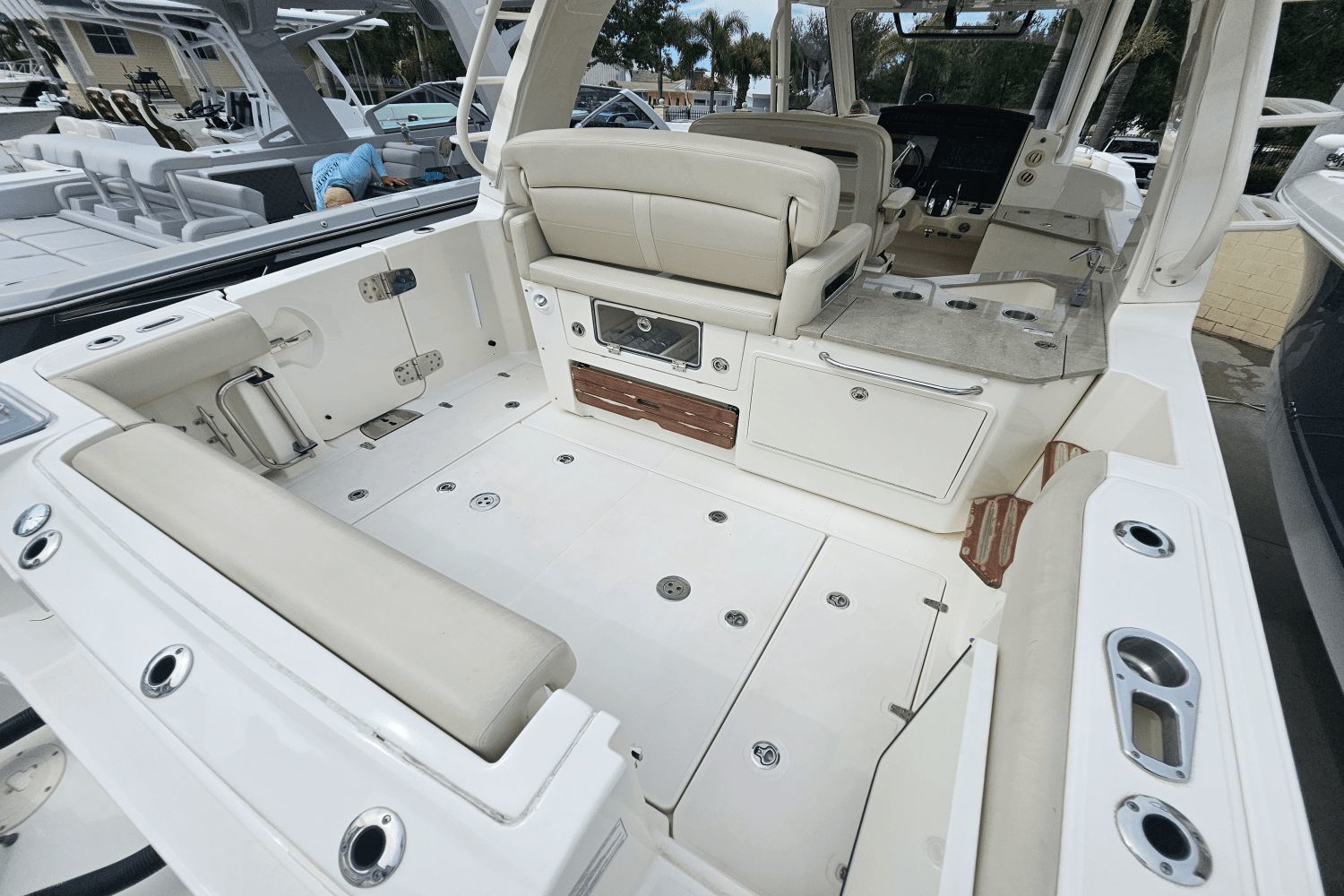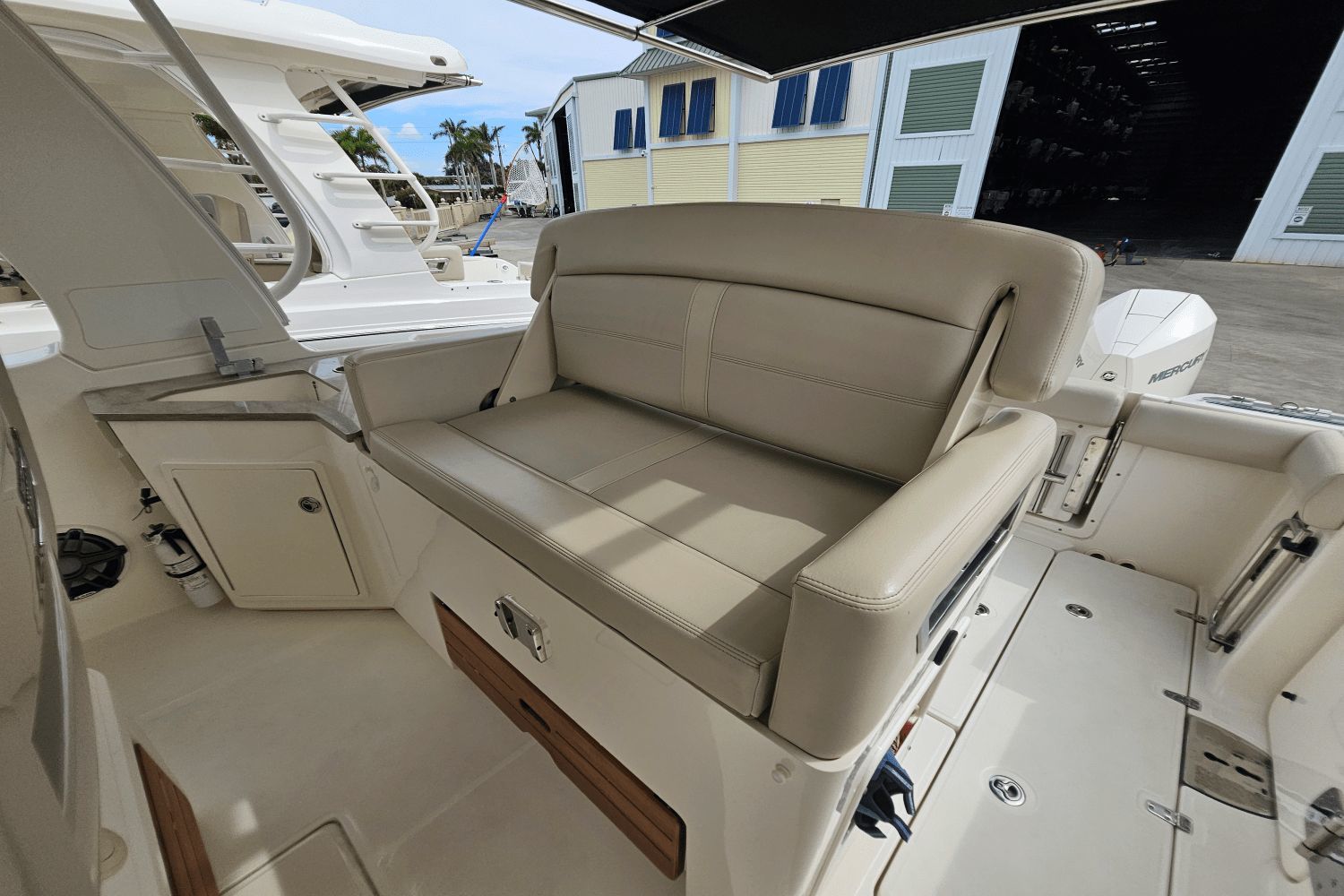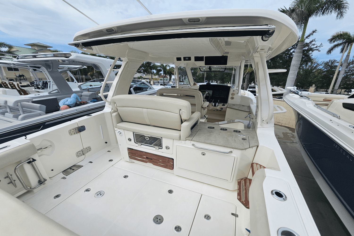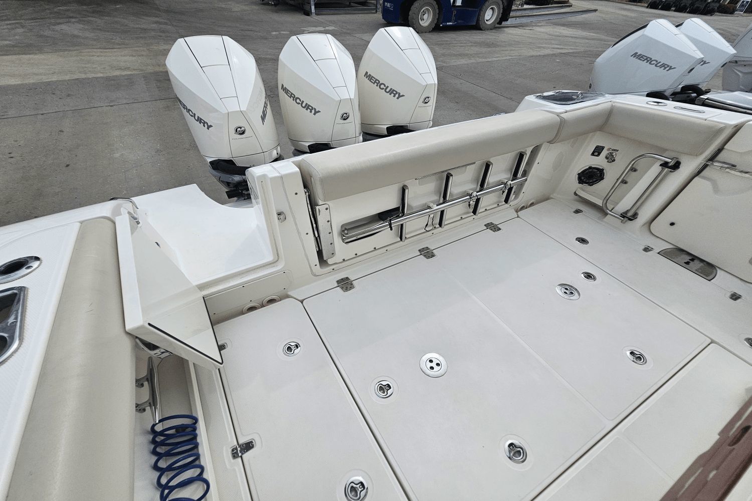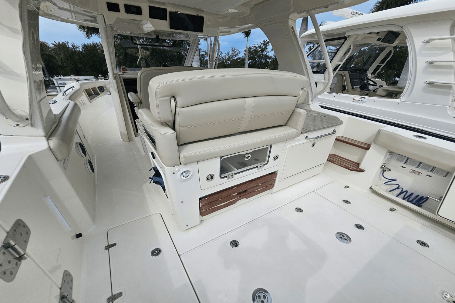 2020 Boston Whaler 350 RealmThe Boston Whaler 350 Realm is the ultimate hybrid—offering offshoreperformance, fishing capability, luxury cruising comfort, and entertainingspace all in one. Whether you’re heading offshore, cruising with family, or entertaining friends dockside, the 350 Realmdelivers.Triple Mercury V8 DTS Verado 300's (383 hours)Bow thrusterSea Keeper Gyro stabelizer (559 run hours) (417 sea hours)Abaco Blue hull colorBow tow eyeTwin Raymarine 16" Axium displaysRaymarine open array radarRaymarine fish finderRaymarine EV 400 auto pilotRaymarine VHF radioAuto trim systemPremium sound system upgradeTeak bow table with sun pad filler cushionAft hardtop retractable sun shadePaddle board racks on hardtopBow sunshade systemWesterbeke generator (541 hours)Aft cokcpit teak tablesPort side dive/tuna door with stainlees steel ladderLivewellCanvas cover packageCockpit wet bar with Kenyon electric grill & freshwater sinkRefrigerated cooler box (cockpit)Port side fish box freezer plateEngine flush systemTheft deterence systemCockpit & cabin air conditioningCabin flatscreen TVMicrowaveVacuflush head with overboard dischargeWindlass with stainless steel anchorUnderwater LED lightsDry stored undoorsVessel is located offsite and can be seen by appointmentPlease contact Neil Plummer 904-236-8431