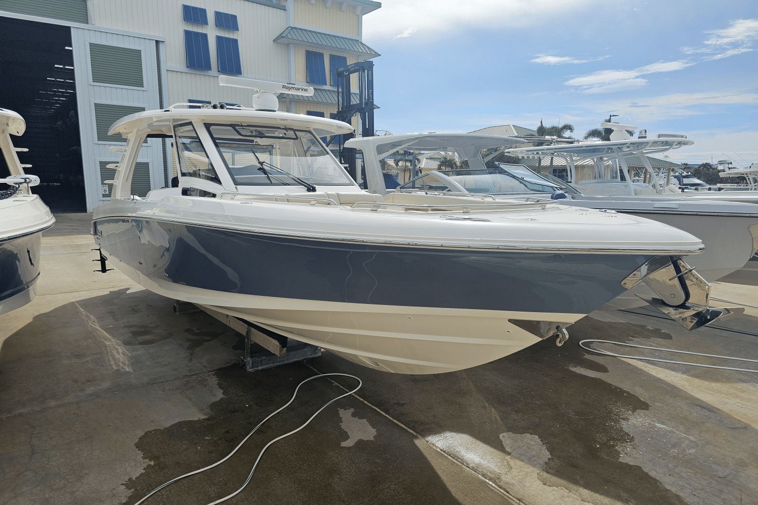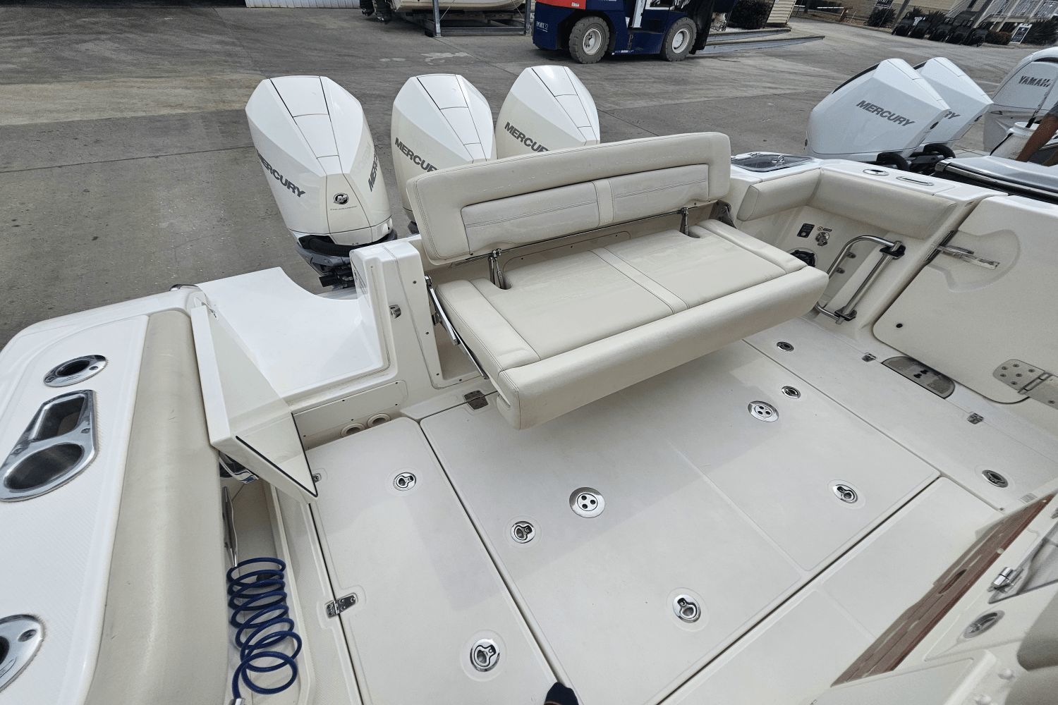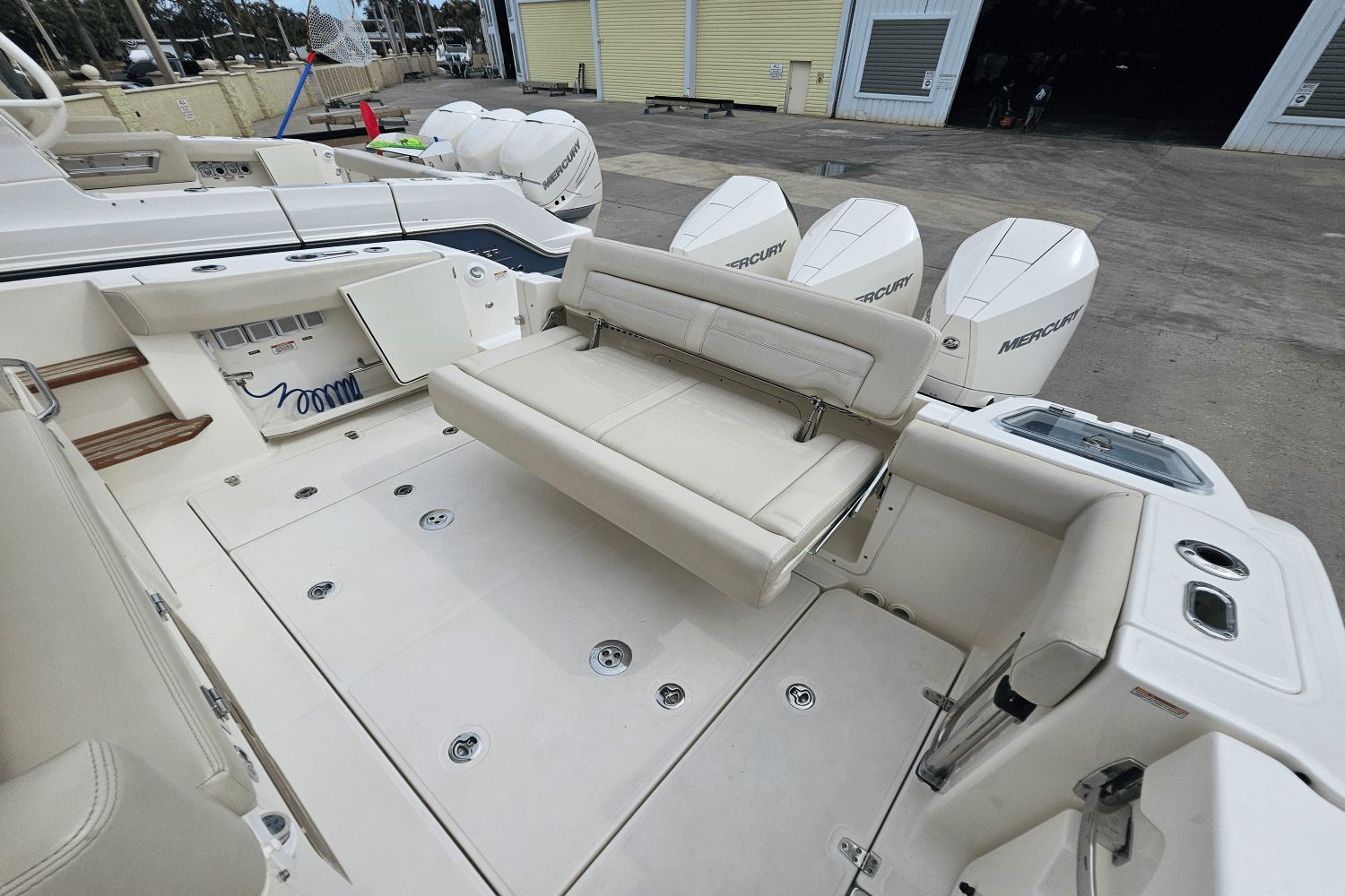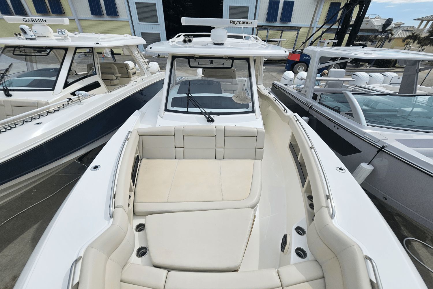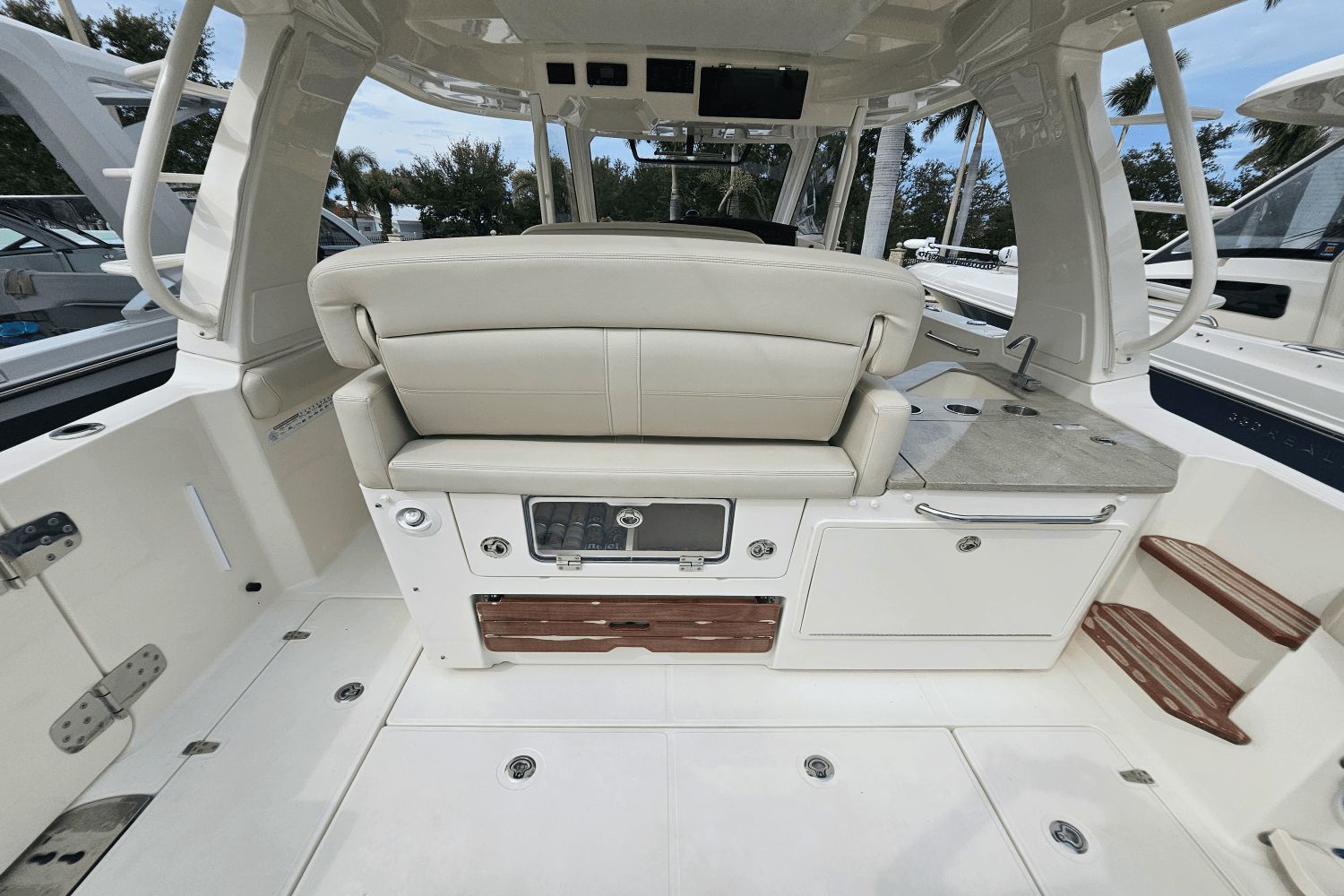 2020 Boston Whaler 350 RealmThe Boston Whaler 350 Realm is the ultimate hybrid—offering offshoreperformance, fishing capability, luxury cruising comfort, and entertainingspace all in one. Whether you’re heading offshore, cruising with family, or entertaining friends dockside, the 350 Realmdelivers.Triple Mercury V8 DTS Verado 300's (383 hours)Bow thrusterSea Keeper Gyro stabelizer (559 run hours) (417 sea hours)Abaco Blue hull colorBow tow eyeTwin Raymarine 16" Axium displaysRaymarine open array radarRaymarine fish finderRaymarine EV 400 auto pilotRaymarine VHF radioAuto trim systemPremium sound system upgradeTeak bow table with sun pad filler cushionAft hardtop retractable sun shadePaddle board racks on hardtopBow sunshade systemWesterbeke generator (541 hours)Aft cokcpit teak tablesPort side dive/tuna door with stainlees steel ladderLivewellCanvas cover packageCockpit wet bar with Kenyon electric grill & freshwater sinkRefrigerated cooler box (cockpit)Port side fish box freezer plateEngine flush systemTheft deterence systemCockpit & cabin air conditioningCabin flatscreen TVMicrowaveVacuflush head with overboard dischargeWindlass with stainless steel anchorUnderwater LED lightsDry stored undoorsVessel is located offsite and can be seen by appointmentPlease contact Neil Plummer 904-236-8431