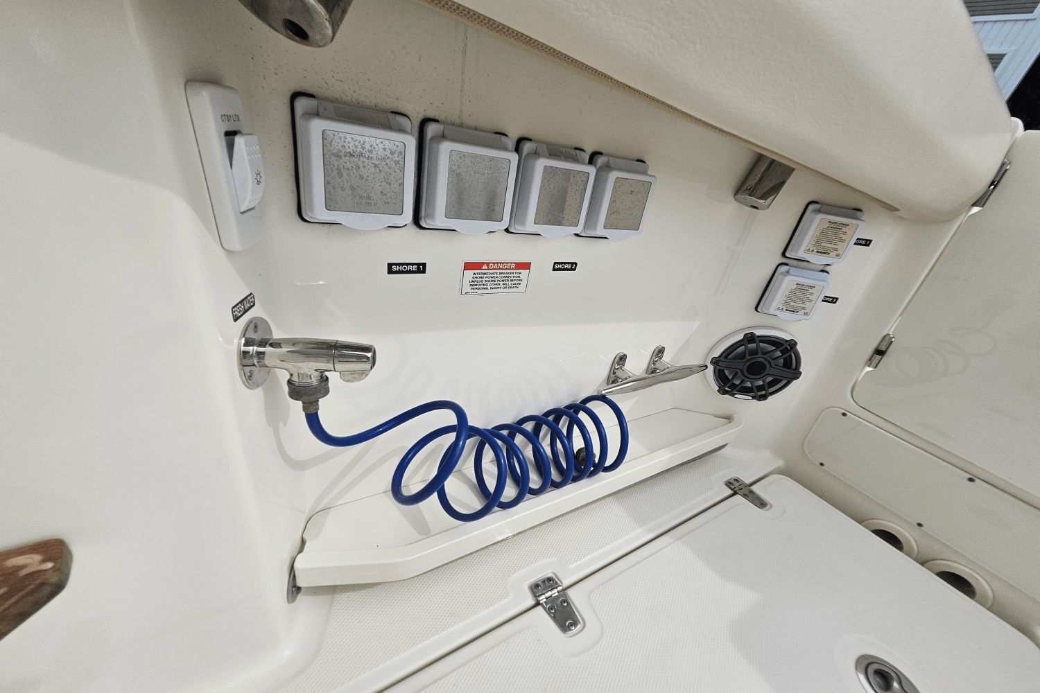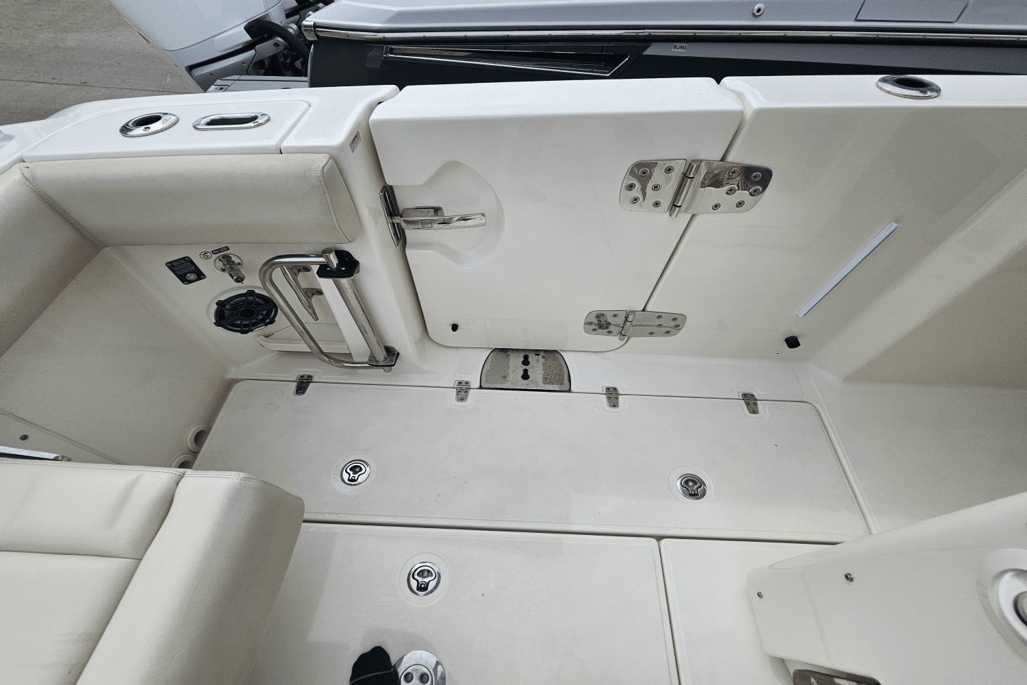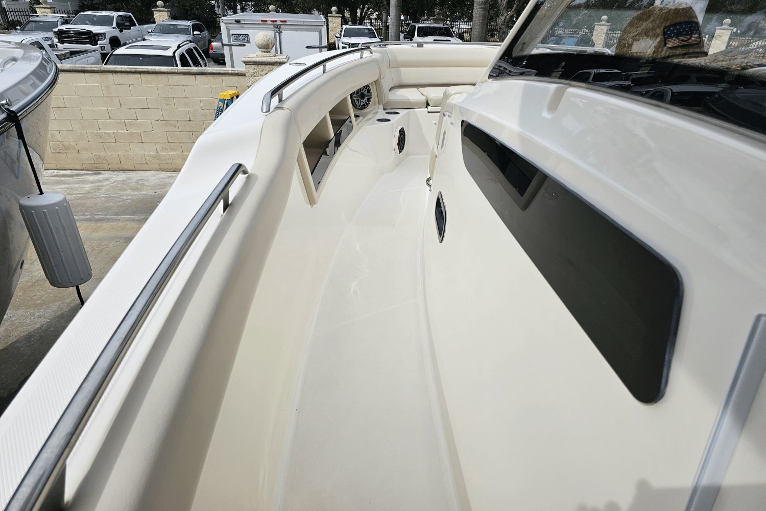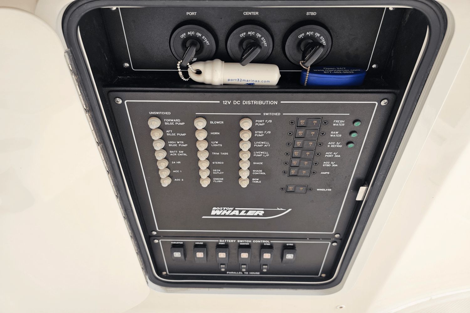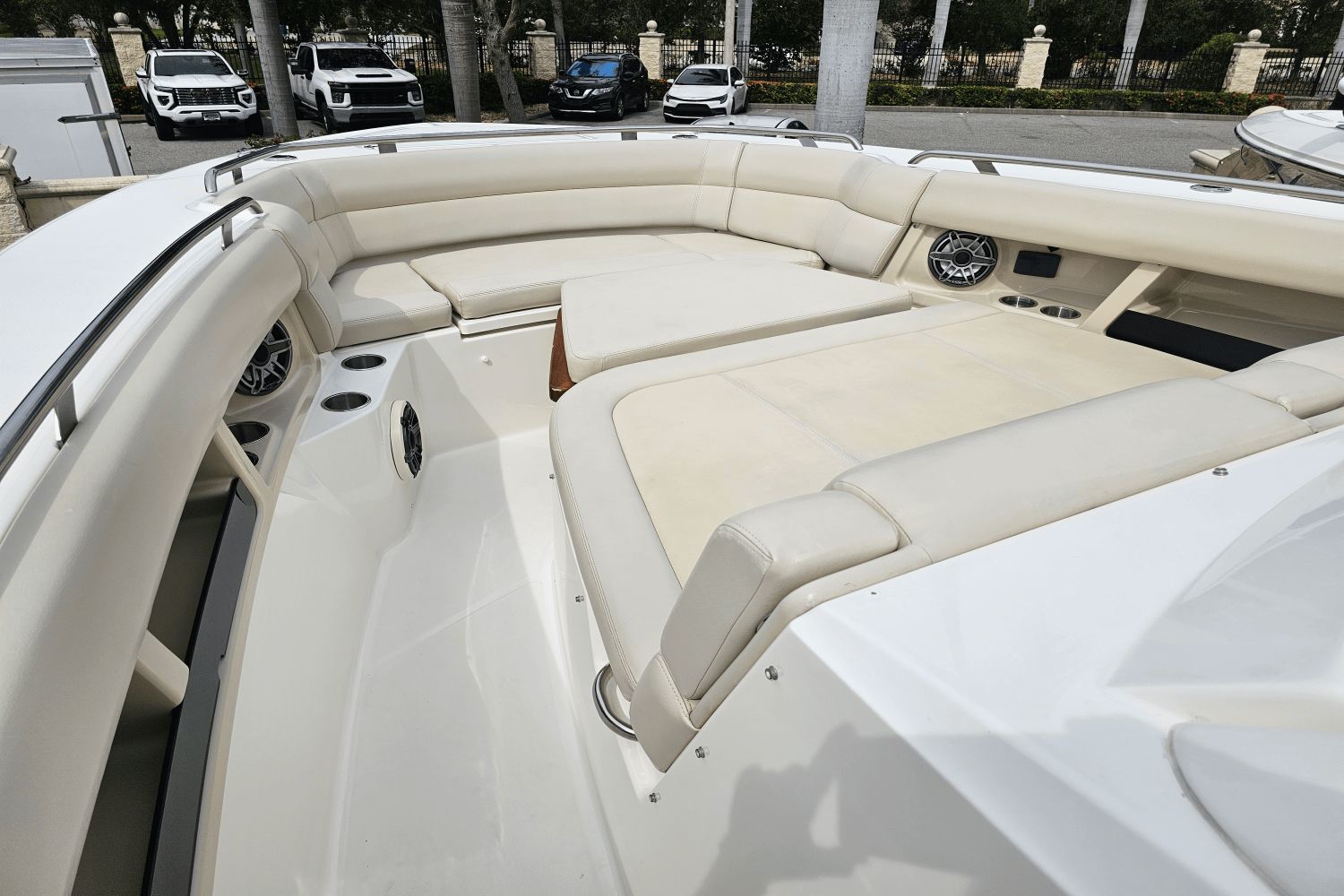 2020 Boston Whaler 350 RealmThe Boston Whaler 350 Realm is the ultimate hybrid—offering offshoreperformance, fishing capability, luxury cruising comfort, and entertainingspace all in one. Whether you’re heading offshore, cruising with family, or entertaining friends dockside, the 350 Realmdelivers.Triple Mercury V8 DTS Verado 300's (383 hours)Bow thrusterSea Keeper Gyro stabelizer (559 run hours) (417 sea hours)Abaco Blue hull colorBow tow eyeTwin Raymarine 16" Axium displaysRaymarine open array radarRaymarine fish finderRaymarine EV 400 auto pilotRaymarine VHF radioAuto trim systemPremium sound system upgradeTeak bow table with sun pad filler cushionAft hardtop retractable sun shadePaddle board racks on hardtopBow sunshade systemWesterbeke generator (541 hours)Aft cokcpit teak tablesPort side dive/tuna door with stainlees steel ladderLivewellCanvas cover packageCockpit wet bar with Kenyon electric grill & freshwater sinkRefrigerated cooler box (cockpit)Port side fish box freezer plateEngine flush systemTheft deterence systemCockpit & cabin air conditioningCabin flatscreen TVMicrowaveVacuflush head with overboard dischargeWindlass with stainless steel anchorUnderwater LED lightsDry stored undoorsVessel is located offsite and can be seen by appointmentPlease contact Neil Plummer 904-236-8431
