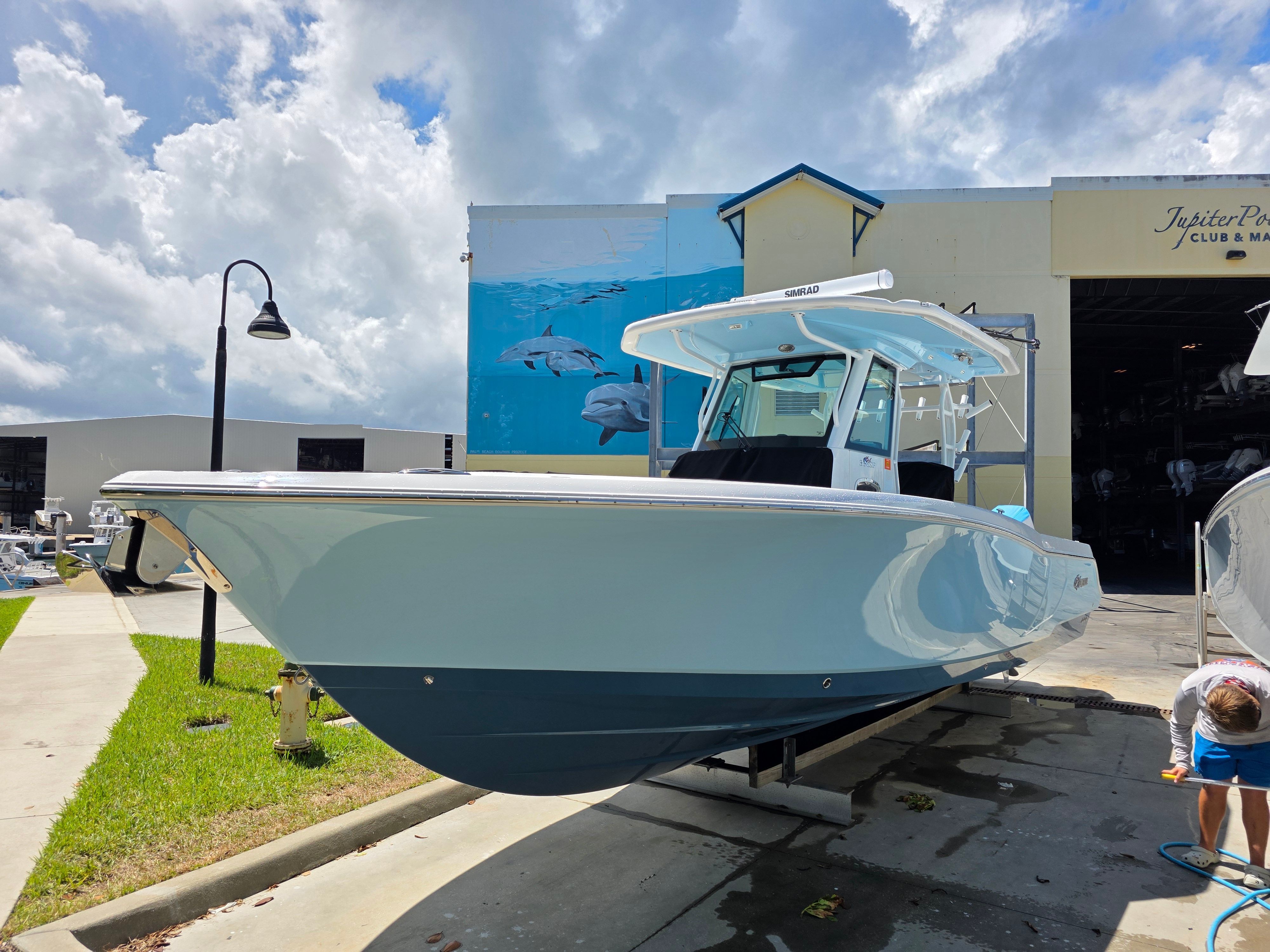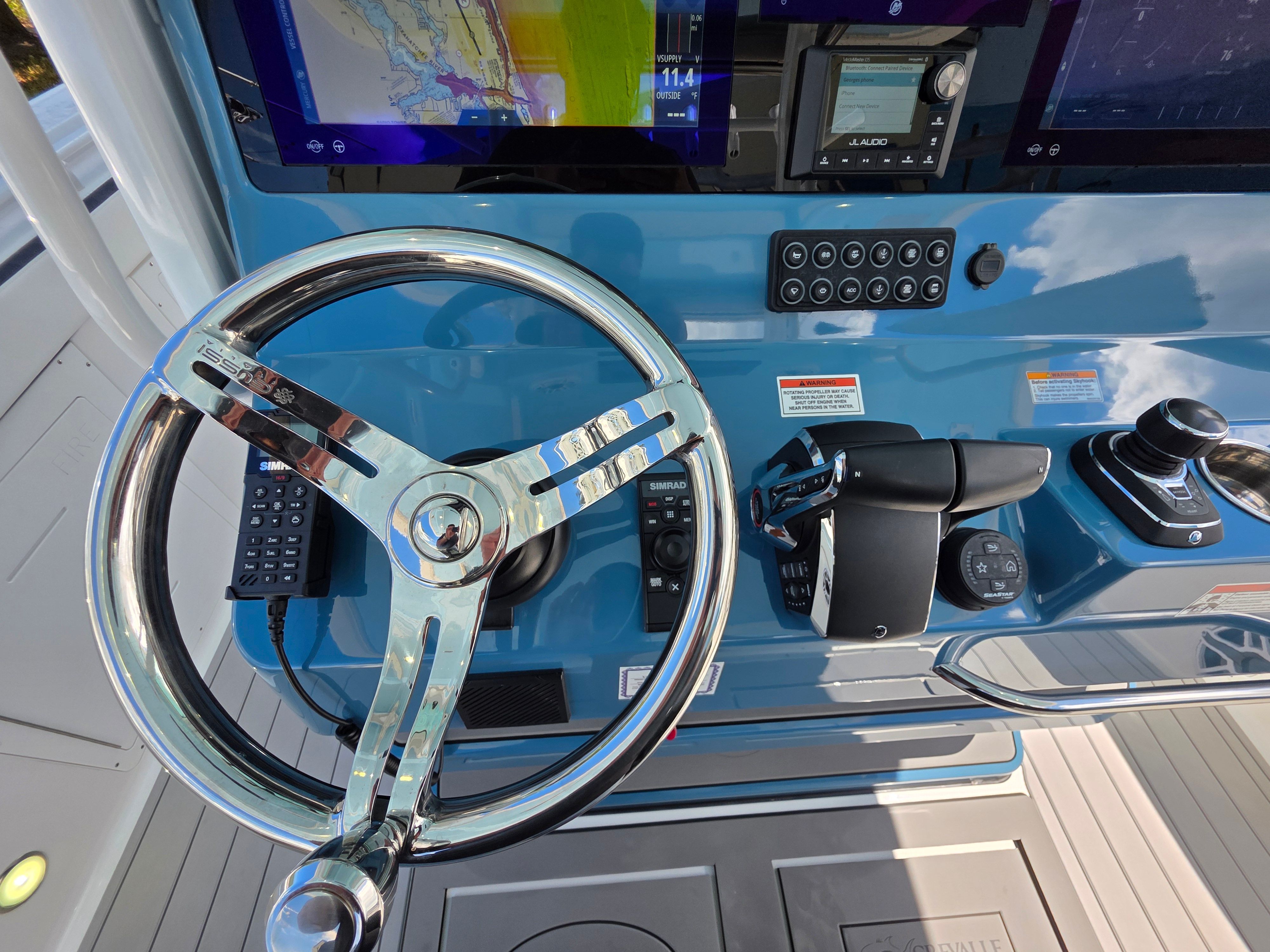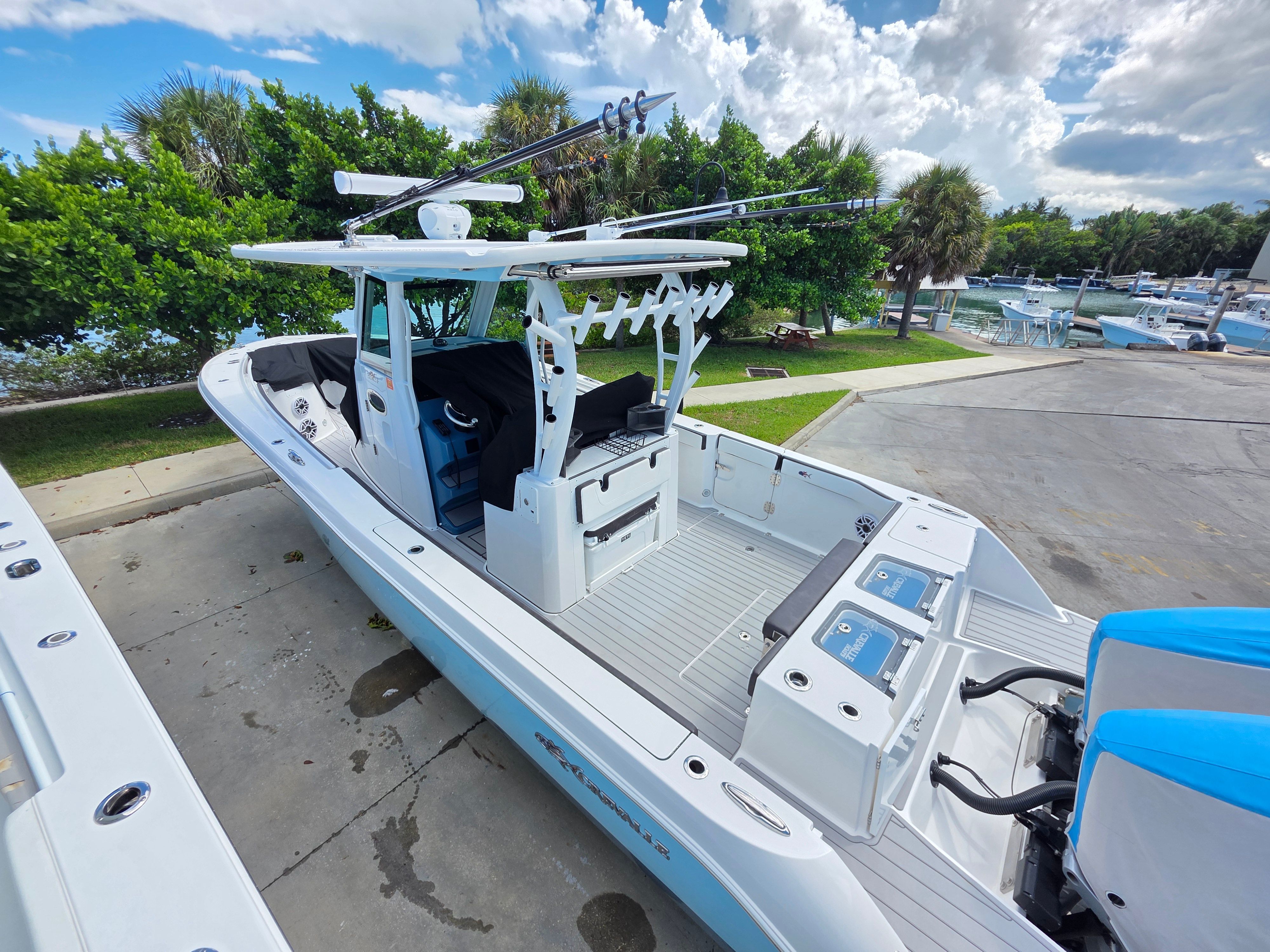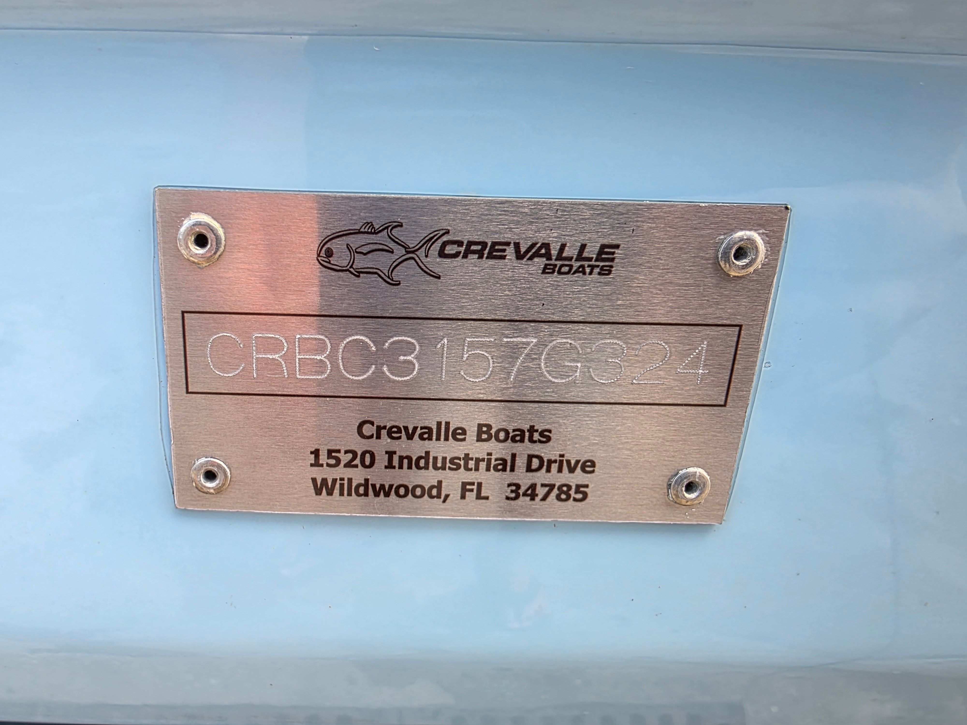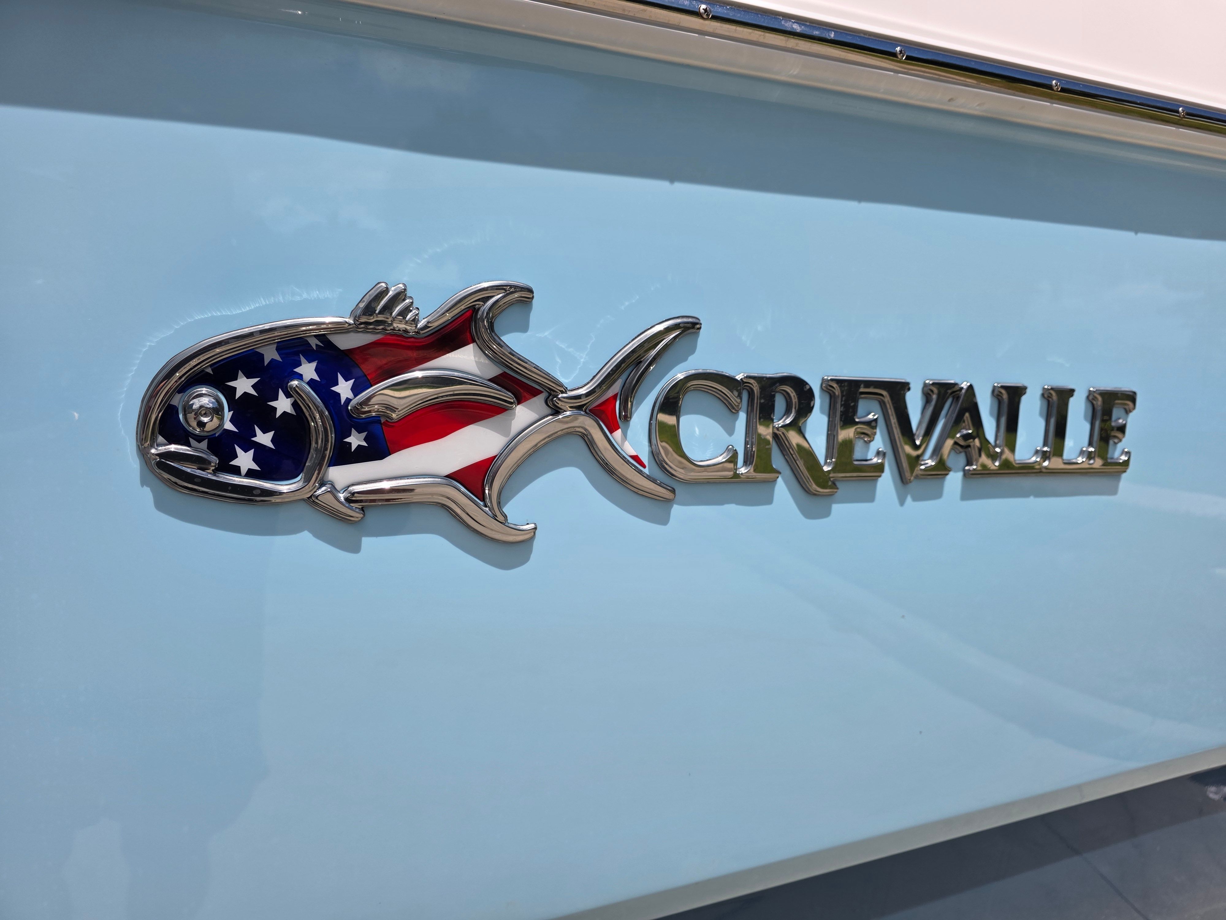Newer is better. This 2024 Crevalle is regarded as one of the best value high-performance center consoles on the market. Comfort, speed, fishability, amenities, you know name it, you got it. The hybrid hull design offers a dry ride with potential to get you where you want to go in a hurry, and it's nice to have that diversity at your fingertips. For the offshore fisherman in you, combine with family-friendly comforts everyone wants, you are not left empty-handed in any regard. The SeaDek floors and nicely appointed seating immediately put you and in your comfort zone. The Crevalle sports all the best features of a "get out there" fishing boat with no wasted space, while also having all the comforts that makes your crew happy to stay out and/or save fuel at the sandbar to picnic. Call today. Located in the beautiful Jupiter Fl. New boat, 17 hours on it. Only taken picnicking. Never fished. Head Never used. Not a scratch on it. Hull and Deck-No wood construction-Epoxy coated fuel tanks-CRIMP- Resin Infusion Manufacturing Process-10 Year structural hull warranty-Black or white rub rail with stainless steel insert-Composite transom-Position control hinges-Lockable bow rod storage (6 rods)-Fiberglass hatches finished on both sides-NMMA Certified using ABYC Standards-Yacht Grip, non-skid deck-Powder coated aluminum pipework-(6) Custom Crevalle pull-up cleats (through bolted)-(17) Standard cup holders-Dedicated in gunwale port & starboard safety gear -storage-Floor storage for 5 gallon bucket-Custom fiberglass leaning post, Yeti cooler slide and a tackle prep station -Dedicated trolling motor mounting surface-Transom tackle center-Custom powder coated aluminum grab rails molded into the deck-Fresh water shower in the hard top-Extended sized hard top– powder coated aluminum frame, integrated windshield, speakers, rod holders-Wet Sounds speakers-Dual Entry (dive door and transom door)-Trim Tabs-Underwater lights-Yacht Armor below rub rail-Custom canvas covers for seating area and console-Meticulously maintained-Live Wells (3)-30 Gallon aft release wells-Blue gel coat-1100 GPH Pumps-Insulation-LED lightingHelm-Cobalt Blue colored gelcoat helm face to eliminate secondary glare-Dual 16′ Displays (Garmin or Simrad)-Deluxe stainless steering wheel with power knob-Integrated, dual height, non-skid foot rests-Compass-VHF-Stainless horn-Wireless phone charger-OEM engine displays-Dual USB ports-Backlit switch labels-Stainless cup holders-Foot pads-Integrated engine data on electronics-Hydraulic or electronic steering with tilt helm-Tool rack with hook/knife/plier holders-Helm panel with ring lit, push button, stainless switches, and backlit function labels-Technical Standards-LED cockpit lighting throughout(RGBW)-Deutsch water resistant plugs on harnesses-Sealed Bussbars-Heat shrink electrical terminals-Circuit breakers (not fuses)-No visible fasteners on panels-East access battery switch in the leaning post-LED Navigation lights-Deluxe battery hold down trays-Bilge pump and high water bilge pump-Upholstery-Custom upholstery with contoured seating and cushions-Tone on tone color accents, top stitching, heat reflective vinyls and multi density foam provide maximum endurance and comfort-Contoured forward helm seating and leaning post cushions-Coaming pads (Cockpit and Bow)