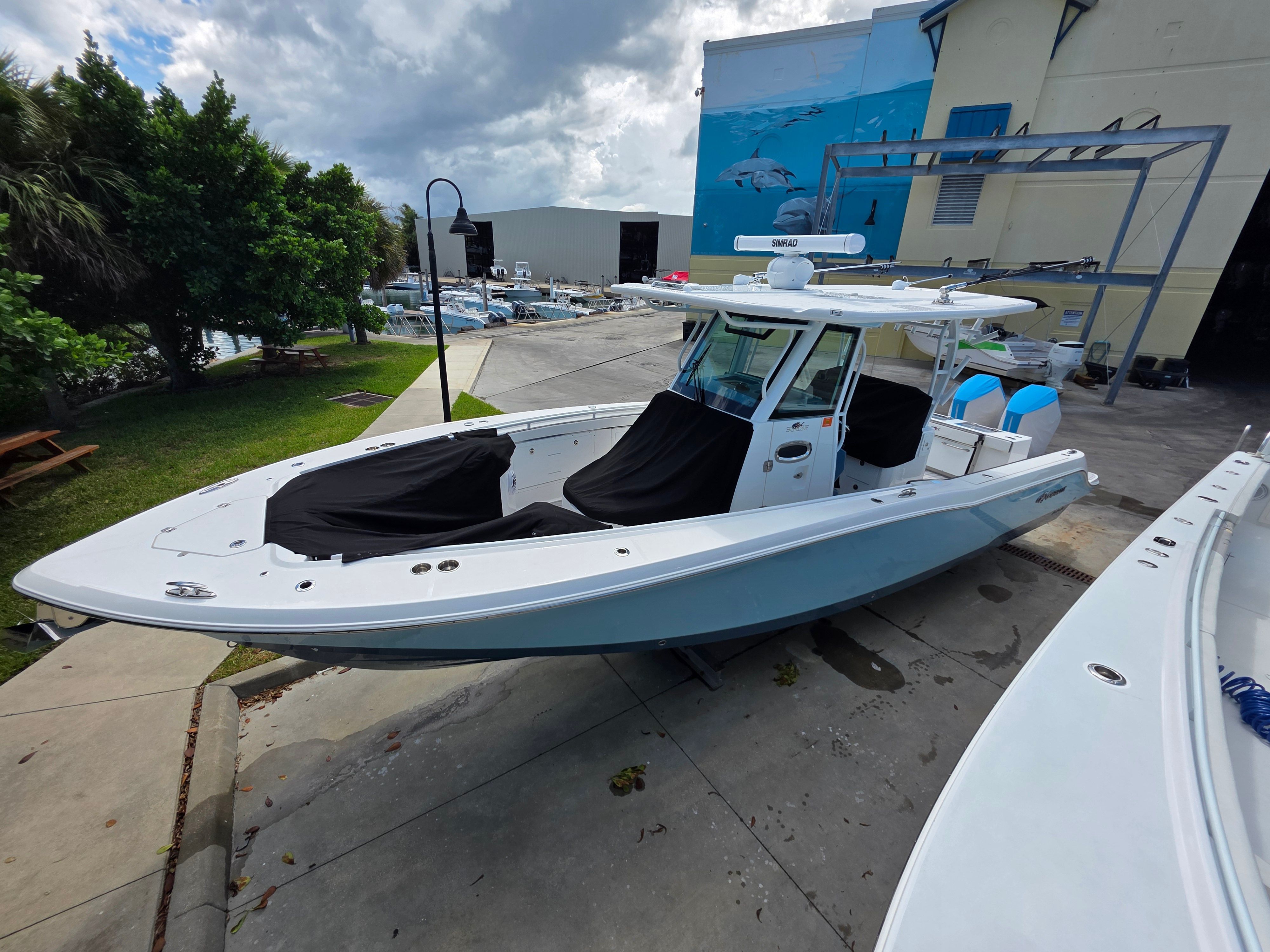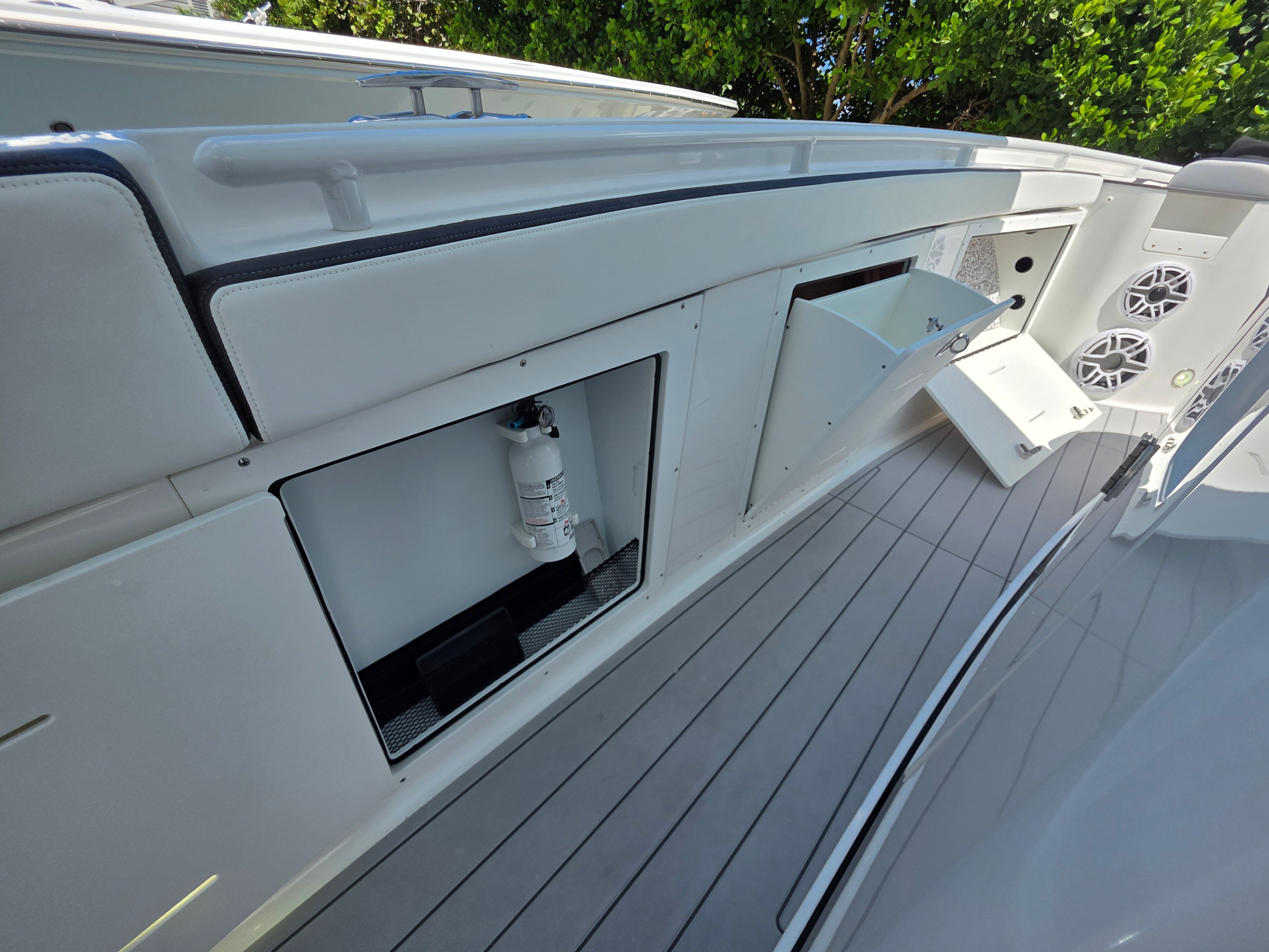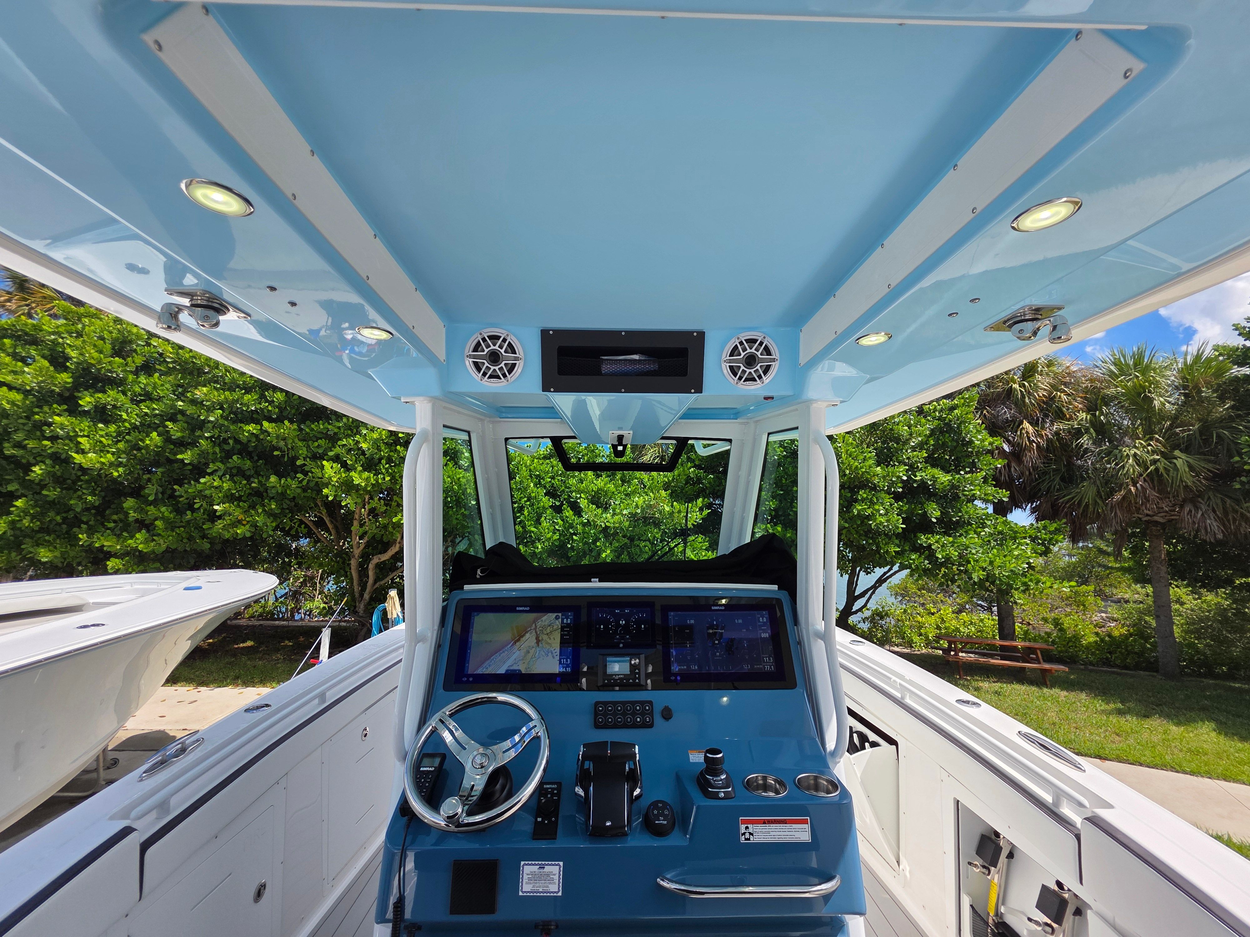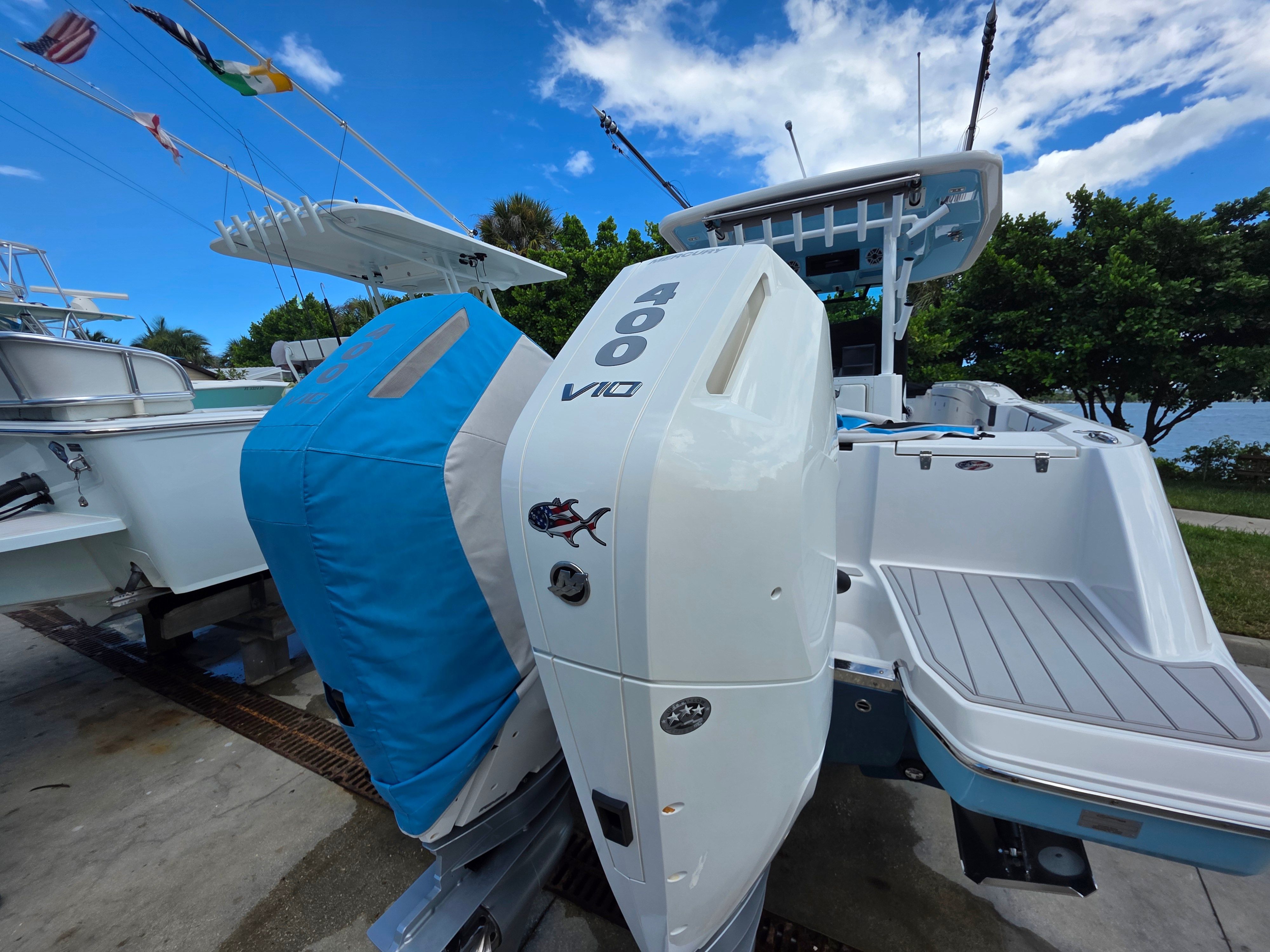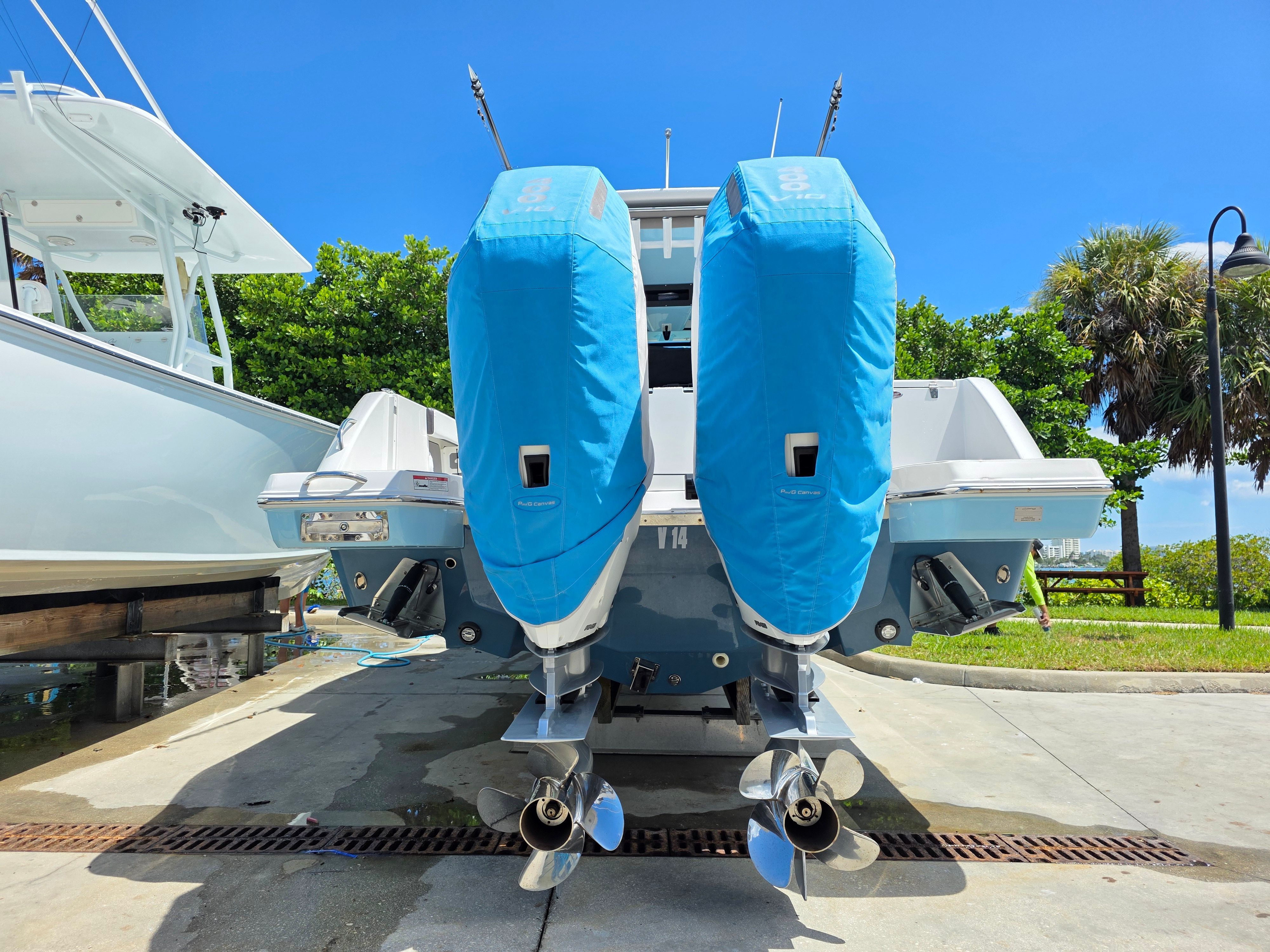 Newer is better. This 2024 Crevalle is regarded as one of the best value high-performance center consoles on the market. Comfort, speed, fishability, amenities, you know name it, you got it. The hybrid hull design offers a dry ride with potential to get you where you want to go in a hurry, and it's nice to have that diversity at your fingertips. For the offshore fisherman in you, combine with family-friendly comforts everyone wants, you are not left empty-handed in any regard. The SeaDek floors and nicely appointed seating immediately put you and in your comfort zone. The Crevalle sports all the best features of a "get out there" fishing boat with no wasted space, while also having all the comforts that makes your crew happy to stay out and/or save fuel at the sandbar to picnic. Call today. Located in the beautiful Jupiter Fl. New boat, 17 hours on it. Only taken picnicking. Never fished. Head Never used. Not a scratch on it. Hull and Deck-No wood construction-Epoxy coated fuel tanks-CRIMP- Resin Infusion Manufacturing Process-10 Year structural hull warranty-Black or white rub rail with stainless steel insert-Composite transom-Position control hinges-Lockable bow rod storage (6 rods)-Fiberglass hatches finished on both sides-NMMA Certified using ABYC Standards-Yacht Grip, non-skid deck-Powder coated aluminum pipework-(6) Custom Crevalle pull-up cleats (through bolted)-(17) Standard cup holders-Dedicated in gunwale port & starboard safety gear -storage-Floor storage for 5 gallon bucket-Custom fiberglass leaning post, Yeti cooler slide and a tackle prep station -Dedicated trolling motor mounting surface-Transom tackle center-Custom powder coated aluminum grab rails molded into the deck-Fresh water shower in the hard top-Extended sized hard top– powder coated aluminum frame, integrated windshield, speakers, rod holders-Wet Sounds speakers-Dual Entry (dive door and transom door)-Trim Tabs-Underwater lights-Yacht Armor below rub rail-Custom canvas covers for seating area and console-Meticulously maintained-Live Wells (3)-30 Gallon aft release wells-Blue gel coat-1100 GPH Pumps-Insulation-LED lightingHelm-Cobalt Blue colored gelcoat helm face to eliminate secondary glare-Dual 16′ Displays (Garmin or Simrad)-Deluxe stainless steering wheel with power knob-Integrated, dual height, non-skid foot rests-Compass-VHF-Stainless horn-Wireless phone charger-OEM engine displays-Dual USB ports-Backlit switch labels-Stainless cup holders-Foot pads-Integrated engine data on electronics-Hydraulic or electronic steering with tilt helm-Tool rack with hook/knife/plier holders-Helm panel with ring lit, push button, stainless switches, and backlit function labels-Technical Standards-LED cockpit lighting throughout(RGBW)-Deutsch water resistant plugs on harnesses-Sealed Bussbars-Heat shrink electrical terminals-Circuit breakers (not fuses)-No visible fasteners on panels-East access battery switch in the leaning post-LED Navigation lights-Deluxe battery hold down trays-Bilge pump and high water bilge pump-Upholstery-Custom upholstery with contoured seating and cushions-Tone on tone color accents, top stitching, heat reflective vinyls and multi density foam provide maximum endurance and comfort-Contoured forward helm seating and leaning post cushions-Coaming pads (Cockpit and Bow)