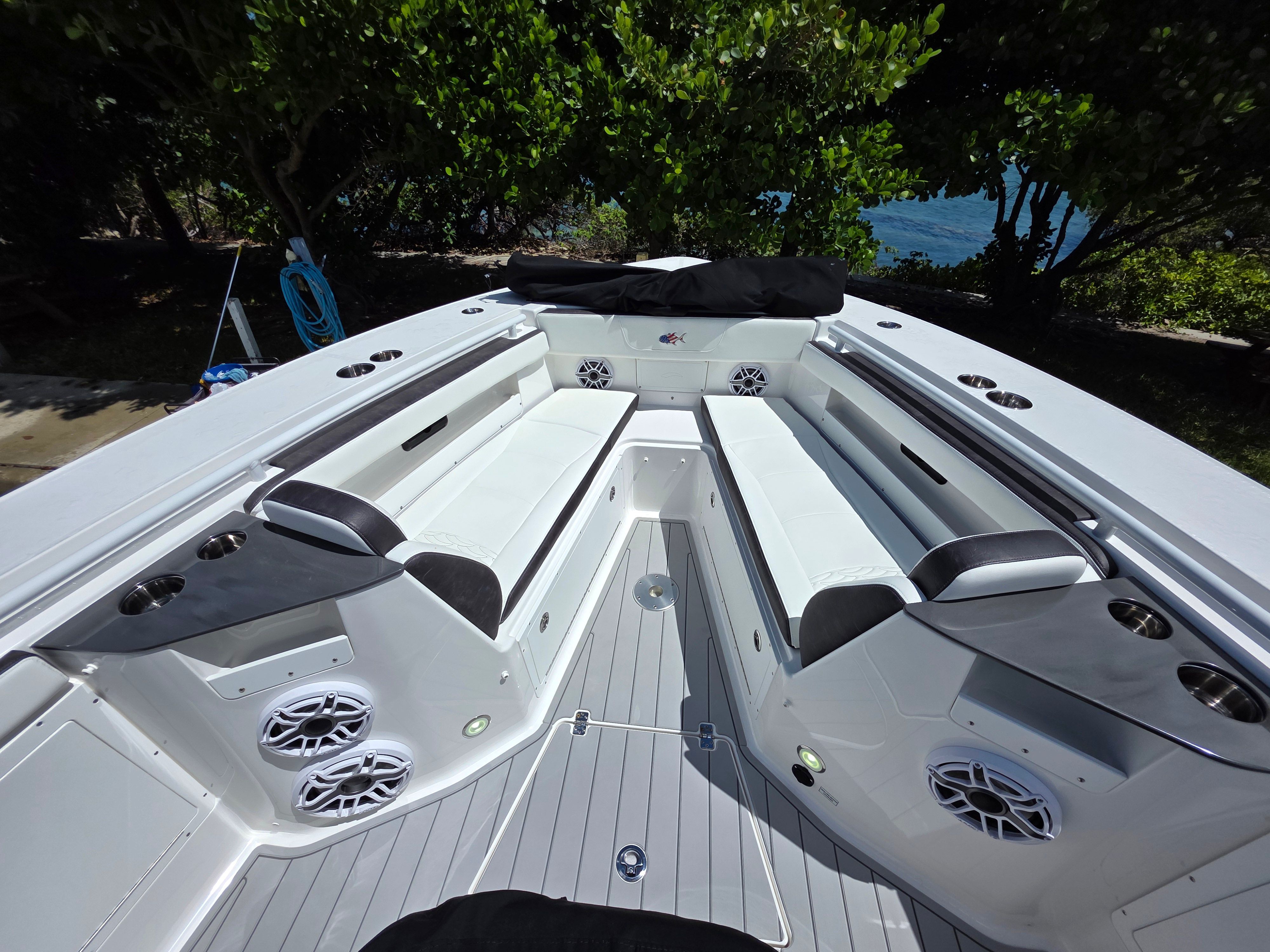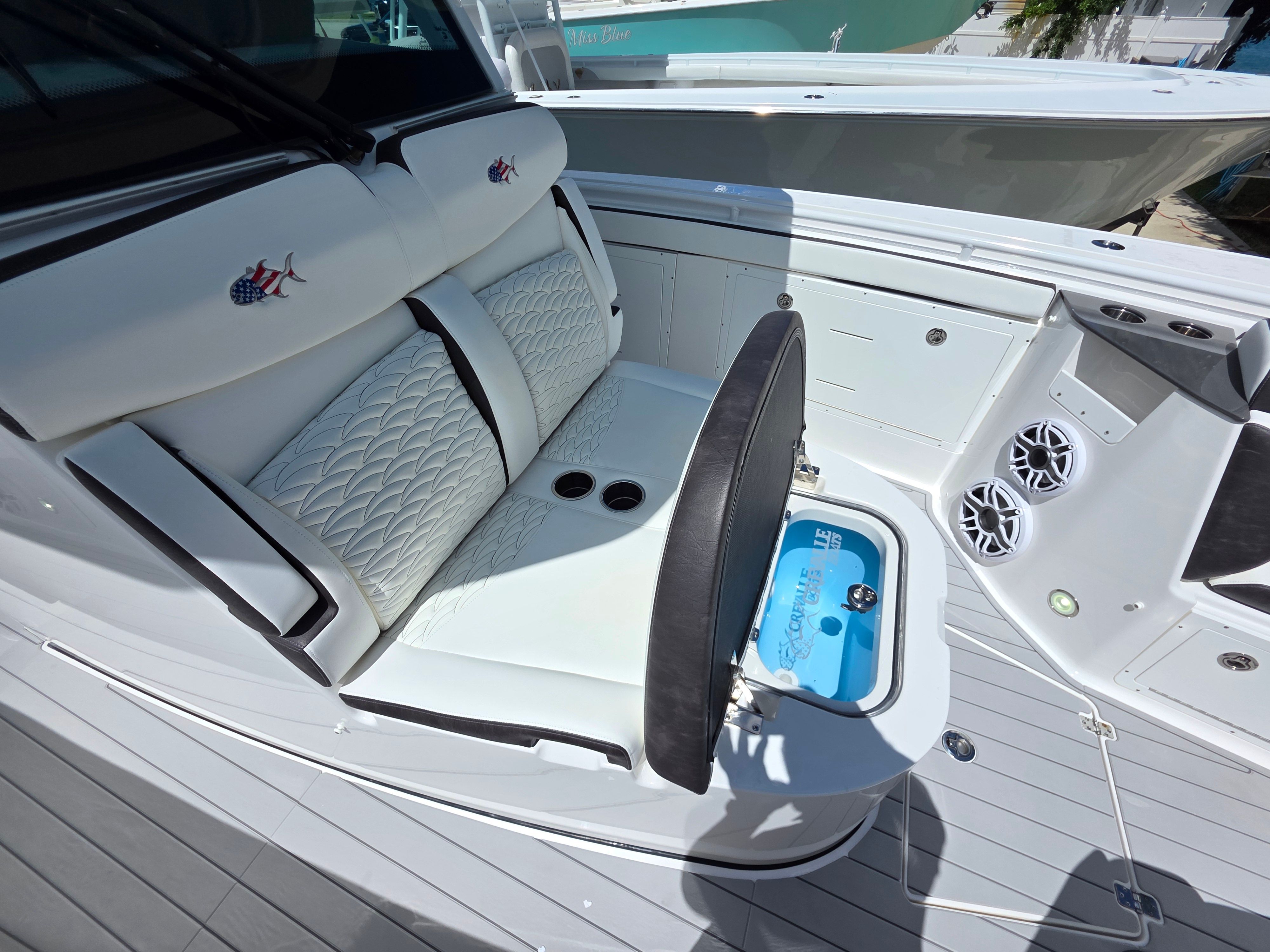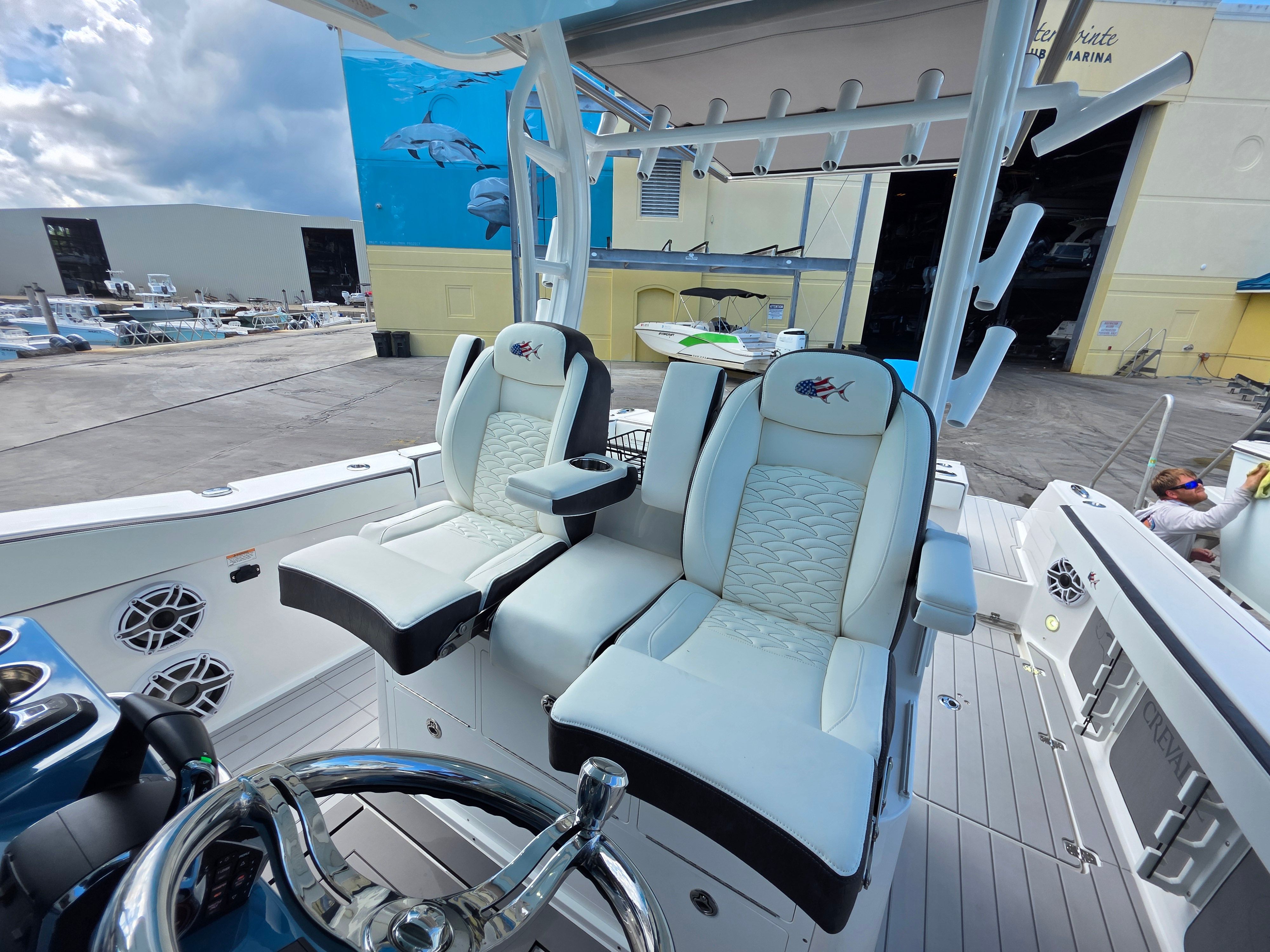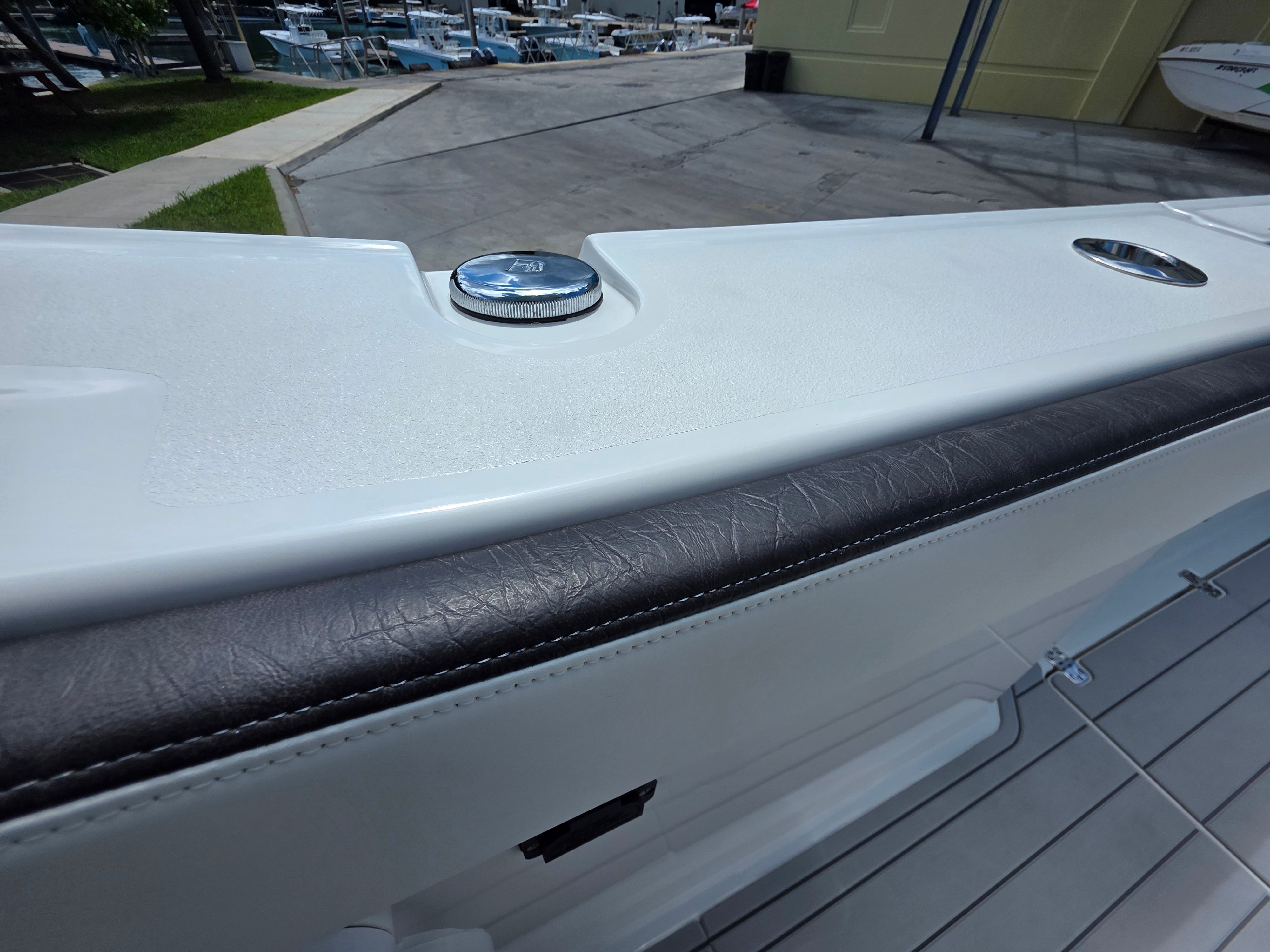 Newer is better. This 2024 Crevalle is regarded as one of the best value high-performance center consoles on the market. Comfort, speed, fishability, amenities, you know name it, you got it. The hybrid hull design offers a dry ride with potential to get you where you want to go in a hurry, and it's nice to have that diversity at your fingertips. For the offshore fisherman in you, combine with family-friendly comforts everyone wants, you are not left empty-handed in any regard. The SeaDek floors and nicely appointed seating immediately put you and in your comfort zone. The Crevalle sports all the best features of a "get out there" fishing boat with no wasted space, while also having all the comforts that makes your crew happy to stay out and/or save fuel at the sandbar to picnic. Call today. Located in the beautiful Jupiter Fl. New boat, 17 hours on it. Only taken picnicking. Never fished. Head Never used. Not a scratch on it. Hull and Deck-No wood construction-Epoxy coated fuel tanks-CRIMP- Resin Infusion Manufacturing Process-10 Year structural hull warranty-Black or white rub rail with stainless steel insert-Composite transom-Position control hinges-Lockable bow rod storage (6 rods)-Fiberglass hatches finished on both sides-NMMA Certified using ABYC Standards-Yacht Grip, non-skid deck-Powder coated aluminum pipework-(6) Custom Crevalle pull-up cleats (through bolted)-(17) Standard cup holders-Dedicated in gunwale port & starboard safety gear -storage-Floor storage for 5 gallon bucket-Custom fiberglass leaning post, Yeti cooler slide and a tackle prep station -Dedicated trolling motor mounting surface-Transom tackle center-Custom powder coated aluminum grab rails molded into the deck-Fresh water shower in the hard top-Extended sized hard top– powder coated aluminum frame, integrated windshield, speakers, rod holders-Wet Sounds speakers-Dual Entry (dive door and transom door)-Trim Tabs-Underwater lights-Yacht Armor below rub rail-Custom canvas covers for seating area and console-Meticulously maintained-Live Wells (3)-30 Gallon aft release wells-Blue gel coat-1100 GPH Pumps-Insulation-LED lightingHelm-Cobalt Blue colored gelcoat helm face to eliminate secondary glare-Dual 16′ Displays (Garmin or Simrad)-Deluxe stainless steering wheel with power knob-Integrated, dual height, non-skid foot rests-Compass-VHF-Stainless horn-Wireless phone charger-OEM engine displays-Dual USB ports-Backlit switch labels-Stainless cup holders-Foot pads-Integrated engine data on electronics-Hydraulic or electronic steering with tilt helm-Tool rack with hook/knife/plier holders-Helm panel with ring lit, push button, stainless switches, and backlit function labels-Technical Standards-LED cockpit lighting throughout(RGBW)-Deutsch water resistant plugs on harnesses-Sealed Bussbars-Heat shrink electrical terminals-Circuit breakers (not fuses)-No visible fasteners on panels-East access battery switch in the leaning post-LED Navigation lights-Deluxe battery hold down trays-Bilge pump and high water bilge pump-Upholstery-Custom upholstery with contoured seating and cushions-Tone on tone color accents, top stitching, heat reflective vinyls and multi density foam provide maximum endurance and comfort-Contoured forward helm seating and leaning post cushions-Coaming pads (Cockpit and Bow)