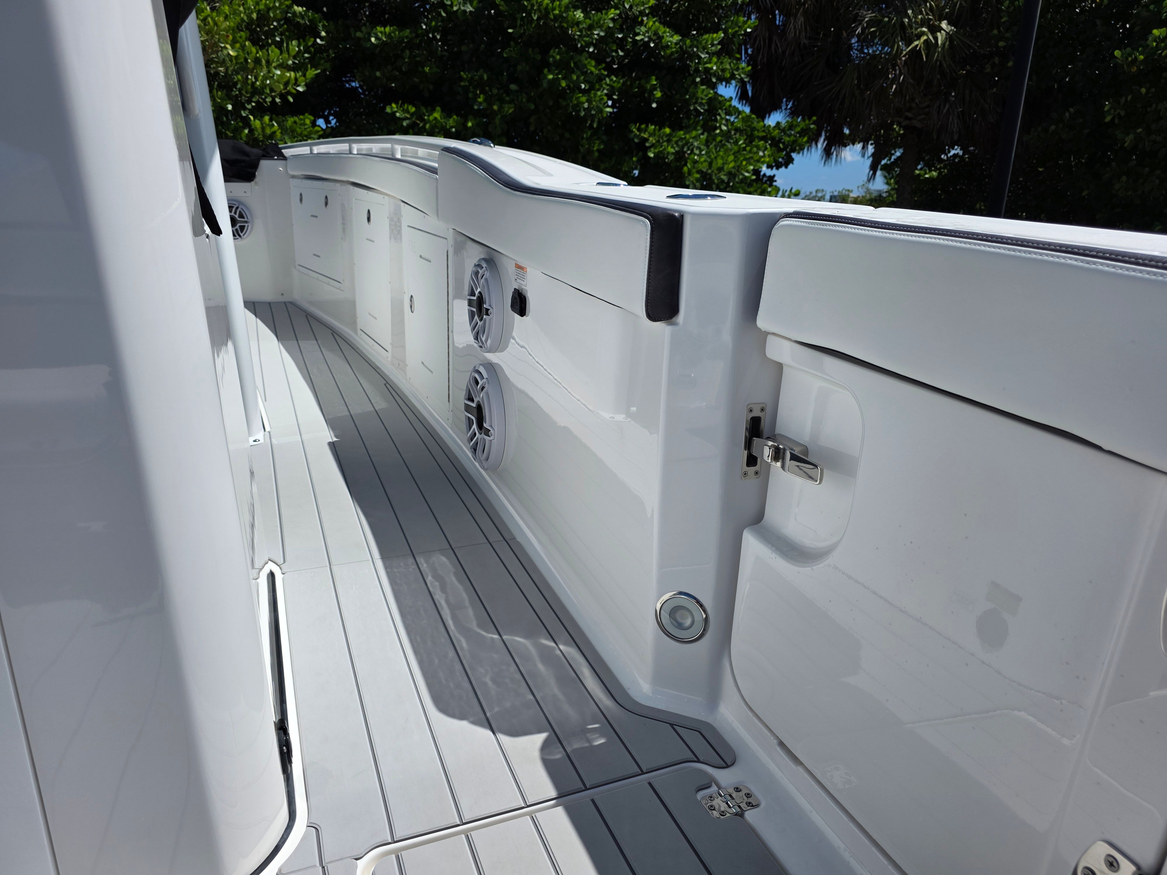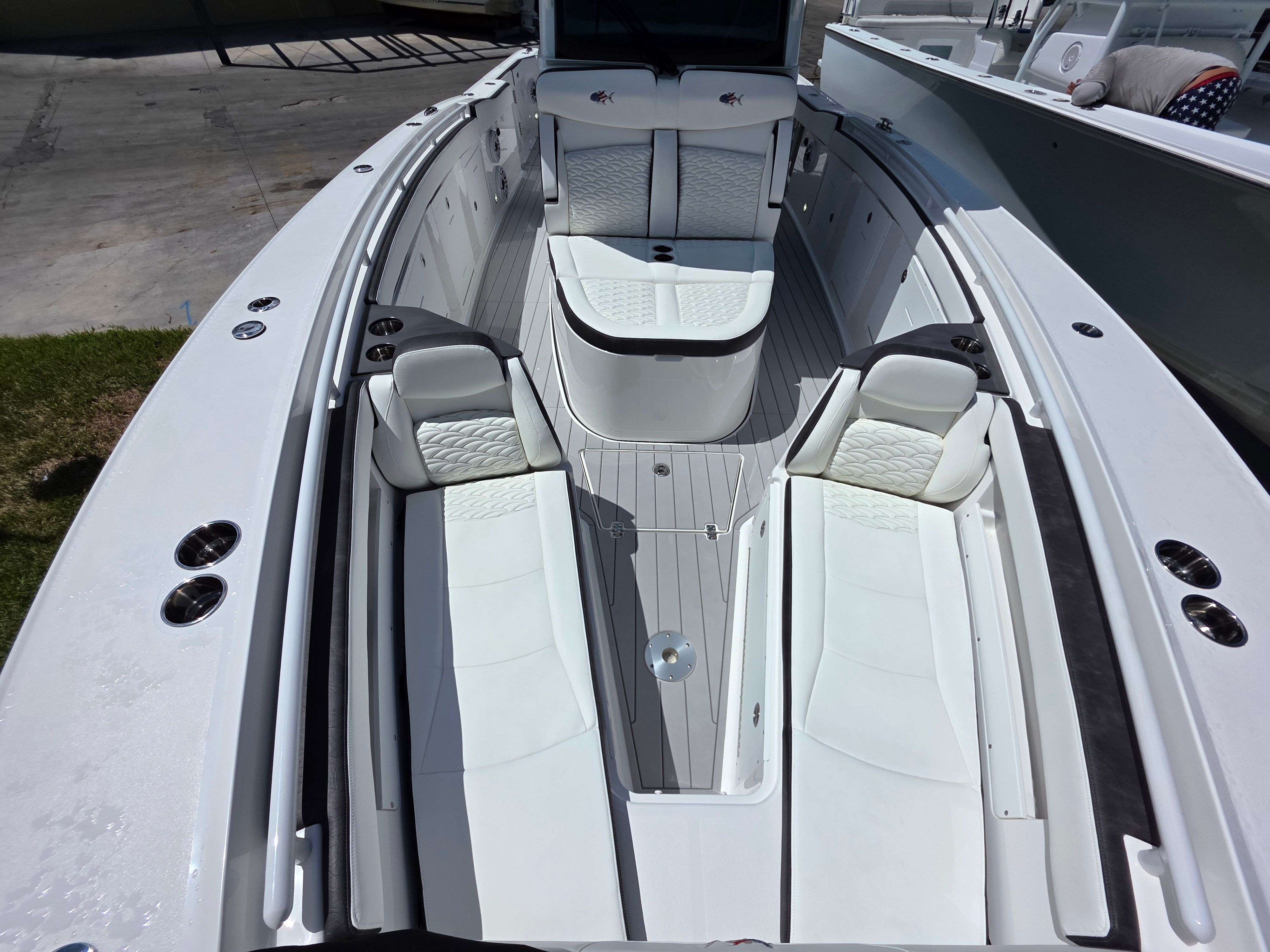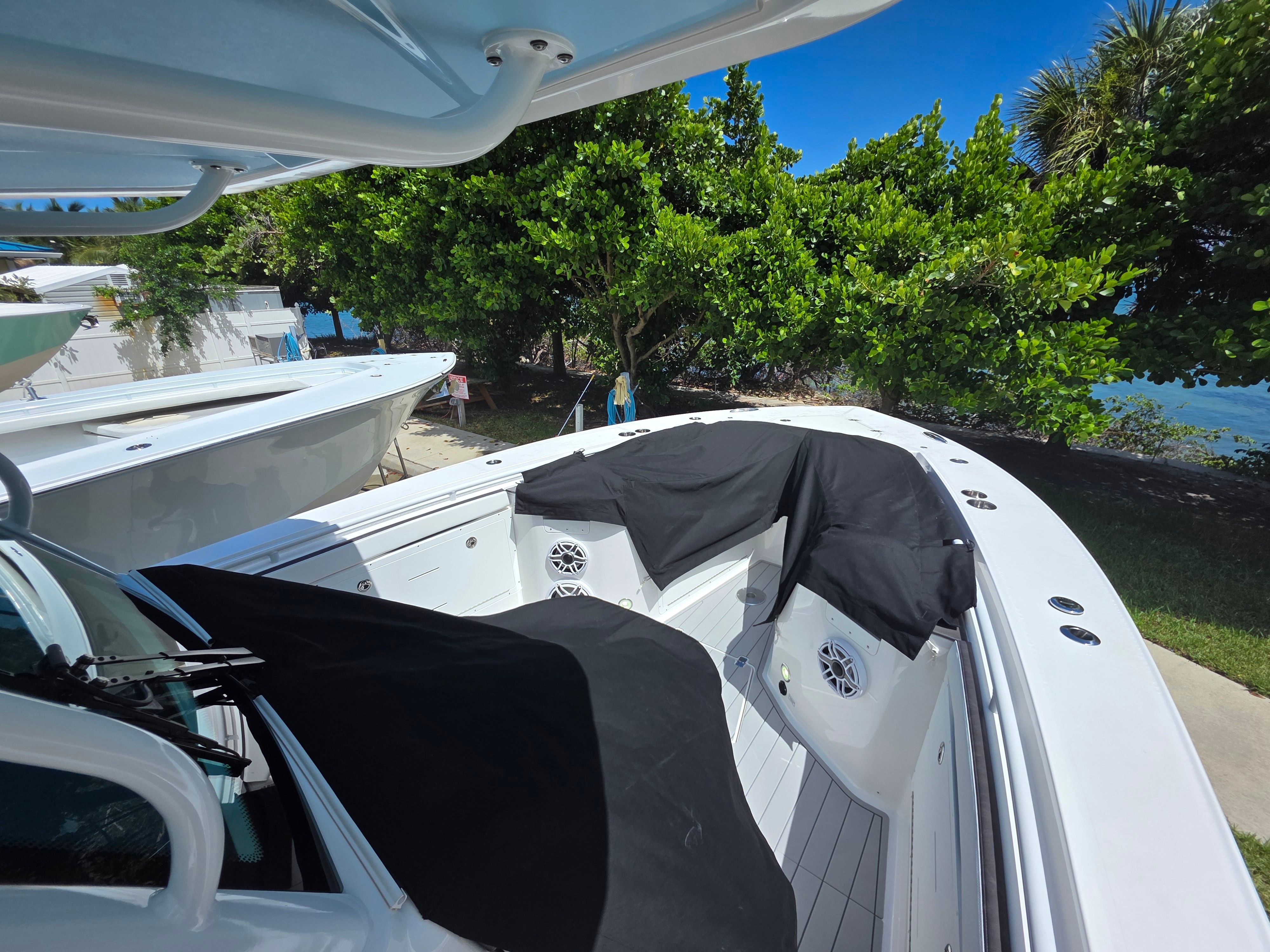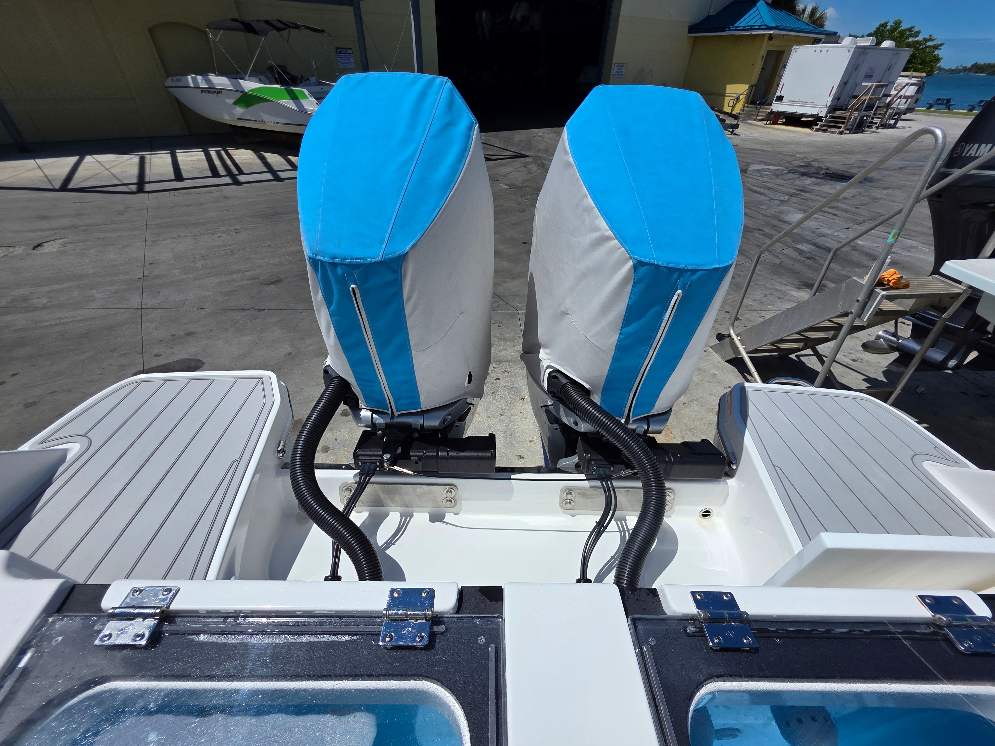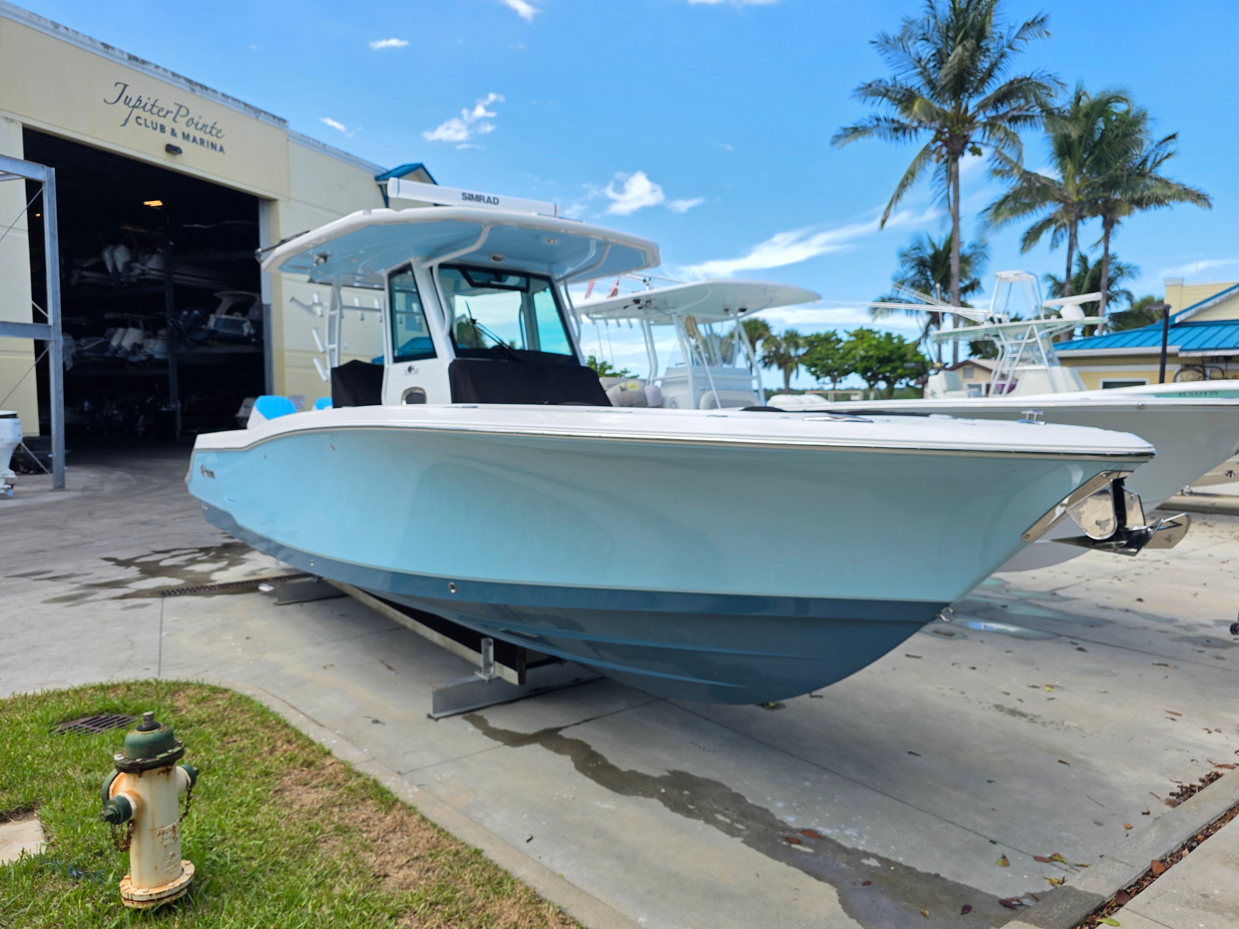Newer is better. This 2024 Crevalle is regarded as one of the best value high-performance center consoles on the market. Comfort, speed, fishability, amenities, you know name it, you got it. The hybrid hull design offers a dry ride with potential to get you where you want to go in a hurry, and it's nice to have that diversity at your fingertips. For the offshore fisherman in you, combine with family-friendly comforts everyone wants, you are not left empty-handed in any regard. The SeaDek floors and nicely appointed seating immediately put you and in your comfort zone. The Crevalle sports all the best features of a "get out there" fishing boat with no wasted space, while also having all the comforts that makes your crew happy to stay out and/or save fuel at the sandbar to picnic. Call today. Located in the beautiful Jupiter Fl. New boat, 17 hours on it. Only taken picnicking. Never fished. Head Never used. Not a scratch on it. Hull and Deck-No wood construction-Epoxy coated fuel tanks-CRIMP- Resin Infusion Manufacturing Process-10 Year structural hull warranty-Black or white rub rail with stainless steel insert-Composite transom-Position control hinges-Lockable bow rod storage (6 rods)-Fiberglass hatches finished on both sides-NMMA Certified using ABYC Standards-Yacht Grip, non-skid deck-Powder coated aluminum pipework-(6) Custom Crevalle pull-up cleats (through bolted)-(17) Standard cup holders-Dedicated in gunwale port & starboard safety gear -storage-Floor storage for 5 gallon bucket-Custom fiberglass leaning post, Yeti cooler slide and a tackle prep station -Dedicated trolling motor mounting surface-Transom tackle center-Custom powder coated aluminum grab rails molded into the deck-Fresh water shower in the hard top-Extended sized hard top– powder coated aluminum frame, integrated windshield, speakers, rod holders-Wet Sounds speakers-Dual Entry (dive door and transom door)-Trim Tabs-Underwater lights-Yacht Armor below rub rail-Custom canvas covers for seating area and console-Meticulously maintained-Live Wells (3)-30 Gallon aft release wells-Blue gel coat-1100 GPH Pumps-Insulation-LED lightingHelm-Cobalt Blue colored gelcoat helm face to eliminate secondary glare-Dual 16′ Displays (Garmin or Simrad)-Deluxe stainless steering wheel with power knob-Integrated, dual height, non-skid foot rests-Compass-VHF-Stainless horn-Wireless phone charger-OEM engine displays-Dual USB ports-Backlit switch labels-Stainless cup holders-Foot pads-Integrated engine data on electronics-Hydraulic or electronic steering with tilt helm-Tool rack with hook/knife/plier holders-Helm panel with ring lit, push button, stainless switches, and backlit function labels-Technical Standards-LED cockpit lighting throughout(RGBW)-Deutsch water resistant plugs on harnesses-Sealed Bussbars-Heat shrink electrical terminals-Circuit breakers (not fuses)-No visible fasteners on panels-East access battery switch in the leaning post-LED Navigation lights-Deluxe battery hold down trays-Bilge pump and high water bilge pump-Upholstery-Custom upholstery with contoured seating and cushions-Tone on tone color accents, top stitching, heat reflective vinyls and multi density foam provide maximum endurance and comfort-Contoured forward helm seating and leaning post cushions-Coaming pads (Cockpit and Bow)