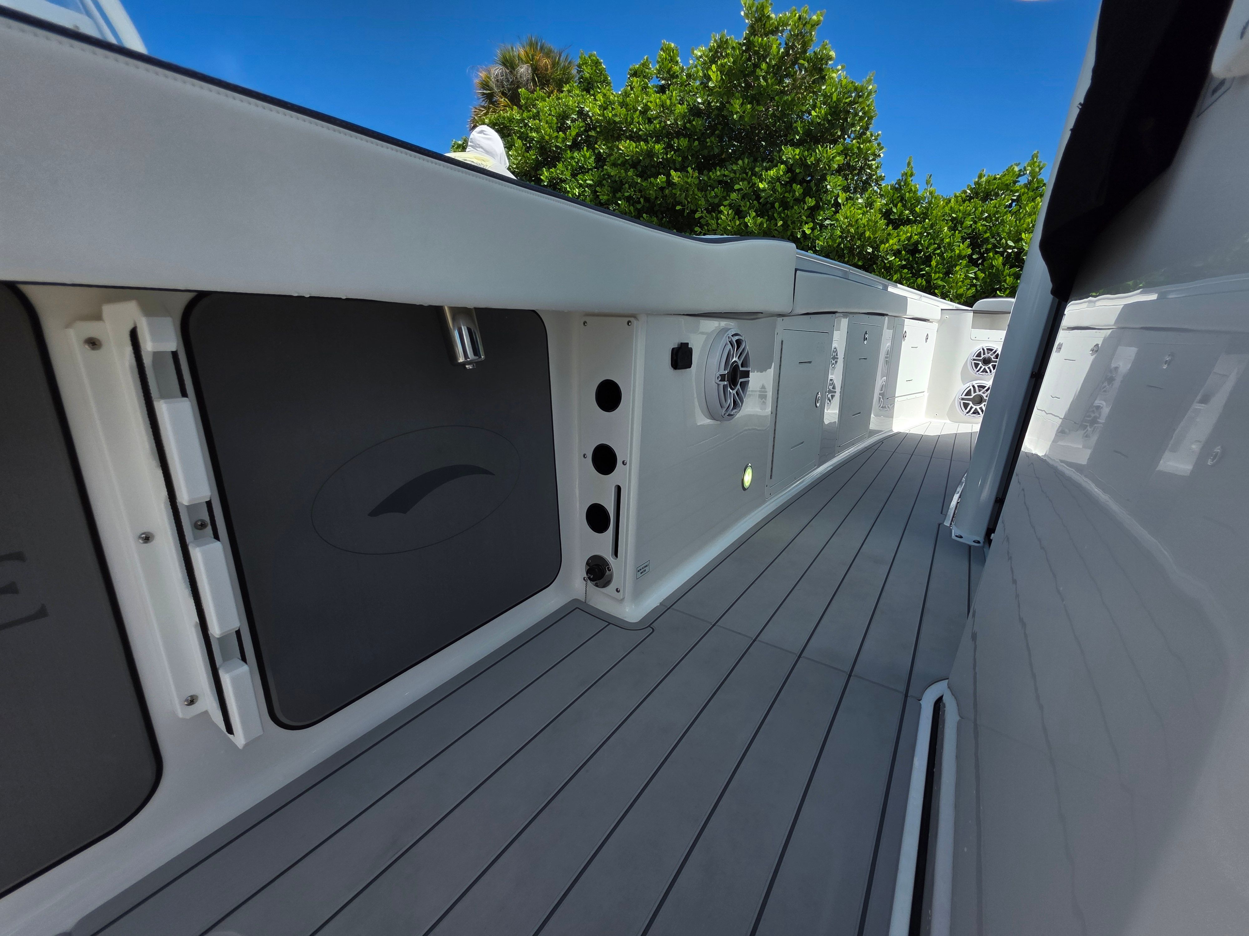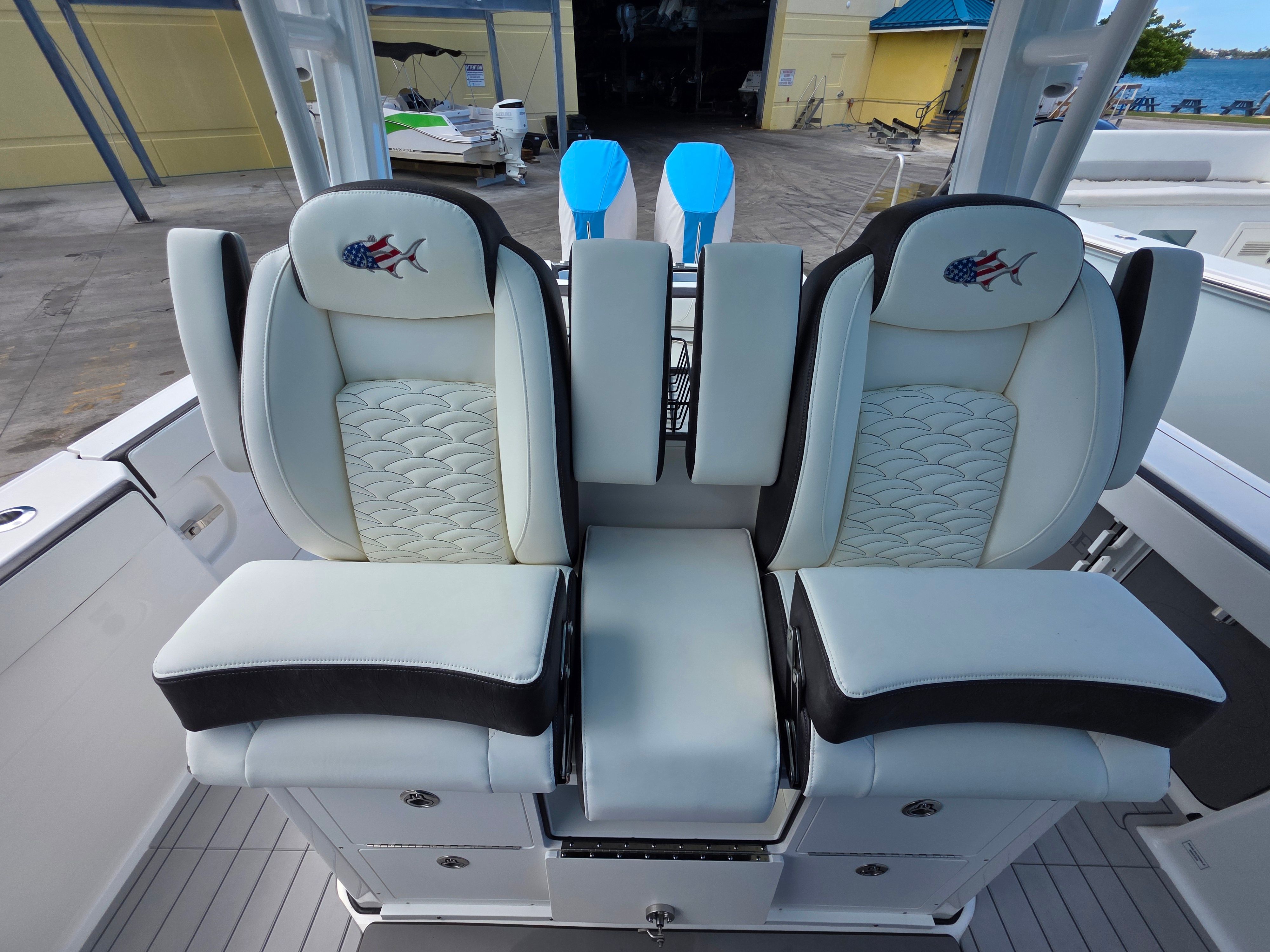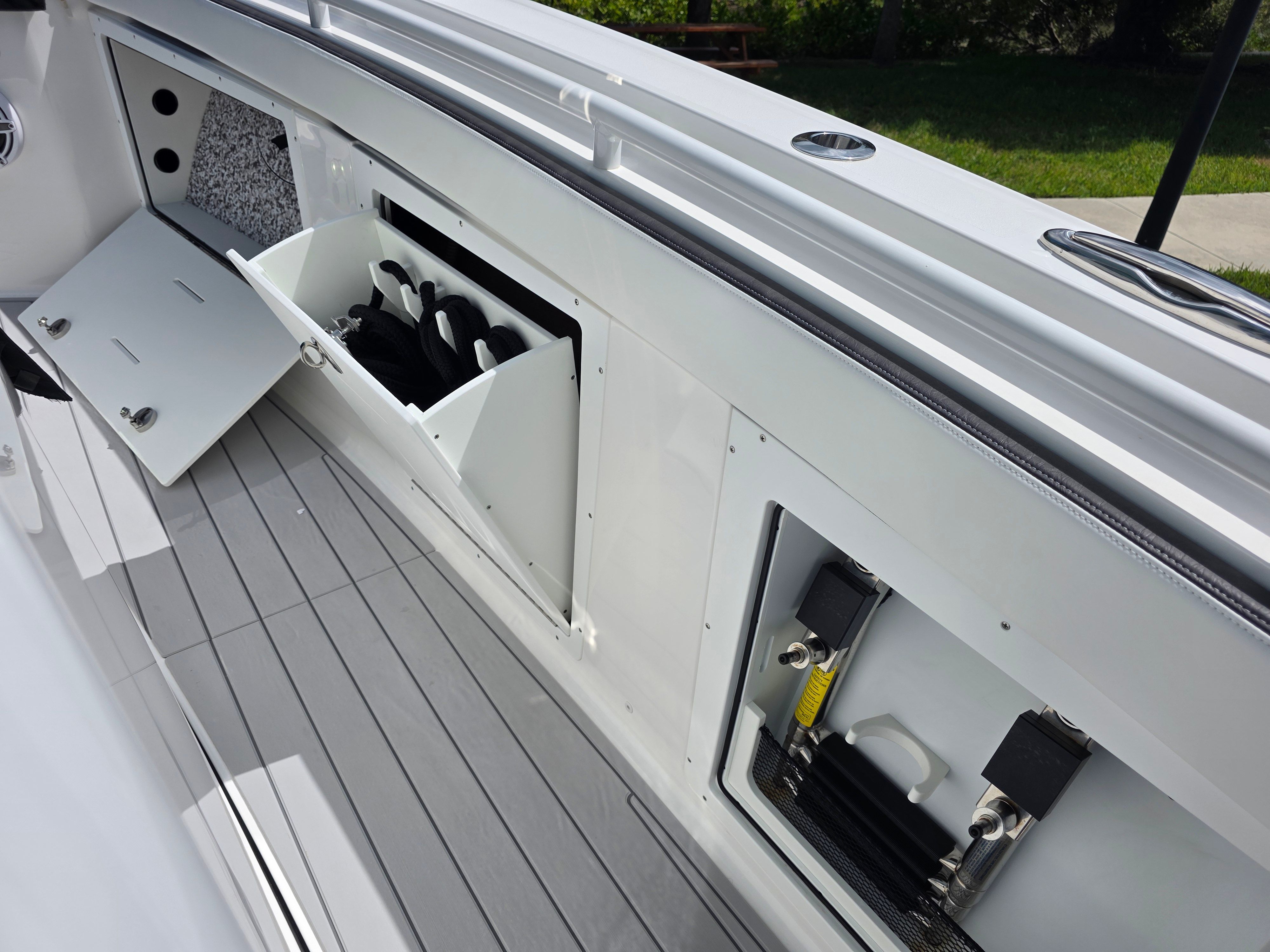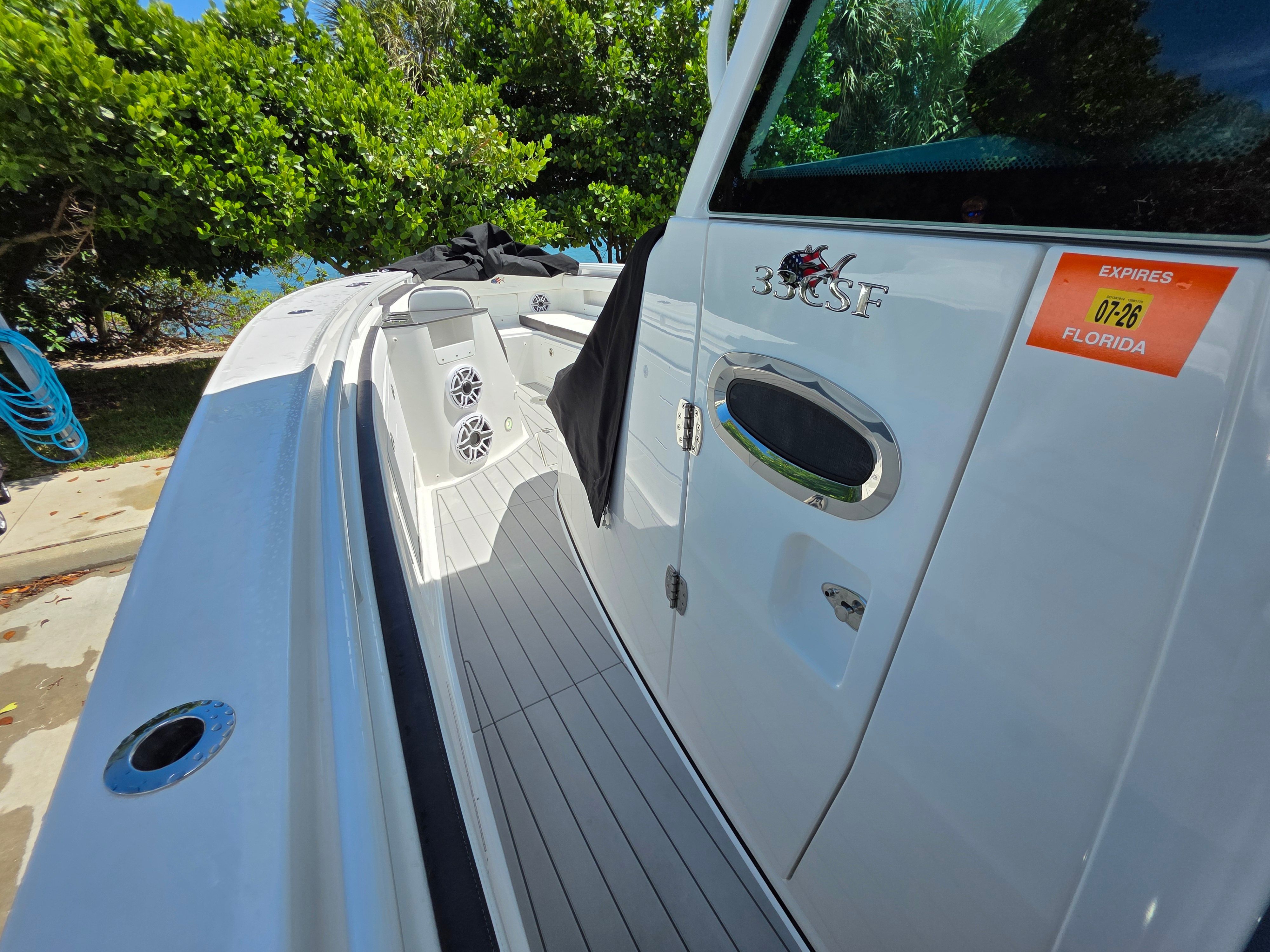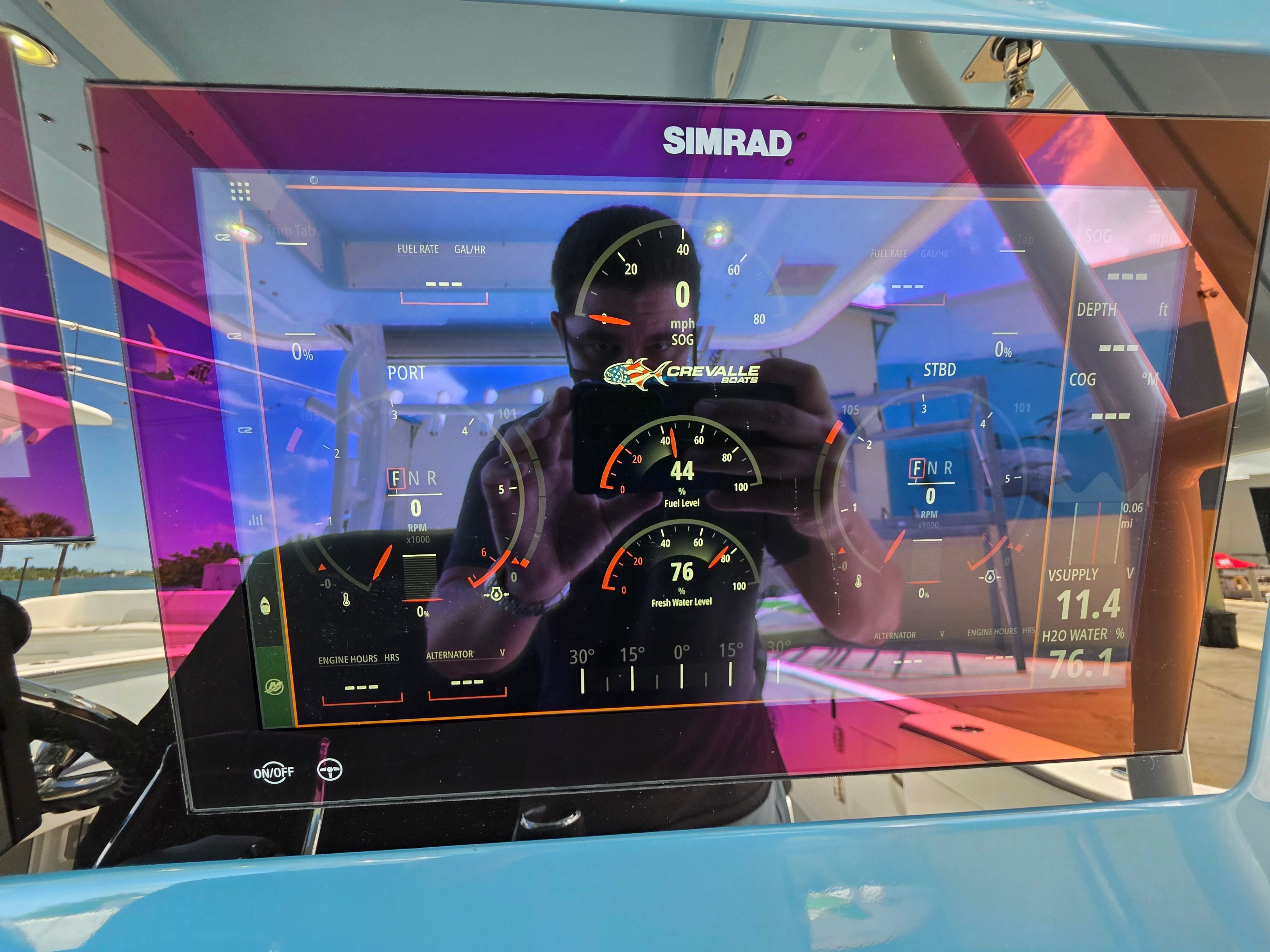Newer is better. This 2024 Crevalle is regarded as one of the best value high-performance center consoles on the market. Comfort, speed, fishability, amenities, you know name it, you got it. The hybrid hull design offers a dry ride with potential to get you where you want to go in a hurry, and it's nice to have that diversity at your fingertips. For the offshore fisherman in you, combine with family-friendly comforts everyone wants, you are not left empty-handed in any regard. The SeaDek floors and nicely appointed seating immediately put you and in your comfort zone. The Crevalle sports all the best features of a "get out there" fishing boat with no wasted space, while also having all the comforts that makes your crew happy to stay out and/or save fuel at the sandbar to picnic. Call today. Located in the beautiful Jupiter Fl. New boat, 17 hours on it. Only taken picnicking. Never fished. Head Never used. Not a scratch on it. Hull and Deck-No wood construction-Epoxy coated fuel tanks-CRIMP- Resin Infusion Manufacturing Process-10 Year structural hull warranty-Black or white rub rail with stainless steel insert-Composite transom-Position control hinges-Lockable bow rod storage (6 rods)-Fiberglass hatches finished on both sides-NMMA Certified using ABYC Standards-Yacht Grip, non-skid deck-Powder coated aluminum pipework-(6) Custom Crevalle pull-up cleats (through bolted)-(17) Standard cup holders-Dedicated in gunwale port & starboard safety gear -storage-Floor storage for 5 gallon bucket-Custom fiberglass leaning post, Yeti cooler slide and a tackle prep station -Dedicated trolling motor mounting surface-Transom tackle center-Custom powder coated aluminum grab rails molded into the deck-Fresh water shower in the hard top-Extended sized hard top– powder coated aluminum frame, integrated windshield, speakers, rod holders-Wet Sounds speakers-Dual Entry (dive door and transom door)-Trim Tabs-Underwater lights-Yacht Armor below rub rail-Custom canvas covers for seating area and console-Meticulously maintained-Live Wells (3)-30 Gallon aft release wells-Blue gel coat-1100 GPH Pumps-Insulation-LED lightingHelm-Cobalt Blue colored gelcoat helm face to eliminate secondary glare-Dual 16′ Displays (Garmin or Simrad)-Deluxe stainless steering wheel with power knob-Integrated, dual height, non-skid foot rests-Compass-VHF-Stainless horn-Wireless phone charger-OEM engine displays-Dual USB ports-Backlit switch labels-Stainless cup holders-Foot pads-Integrated engine data on electronics-Hydraulic or electronic steering with tilt helm-Tool rack with hook/knife/plier holders-Helm panel with ring lit, push button, stainless switches, and backlit function labels-Technical Standards-LED cockpit lighting throughout(RGBW)-Deutsch water resistant plugs on harnesses-Sealed Bussbars-Heat shrink electrical terminals-Circuit breakers (not fuses)-No visible fasteners on panels-East access battery switch in the leaning post-LED Navigation lights-Deluxe battery hold down trays-Bilge pump and high water bilge pump-Upholstery-Custom upholstery with contoured seating and cushions-Tone on tone color accents, top stitching, heat reflective vinyls and multi density foam provide maximum endurance and comfort-Contoured forward helm seating and leaning post cushions-Coaming pads (Cockpit and Bow)