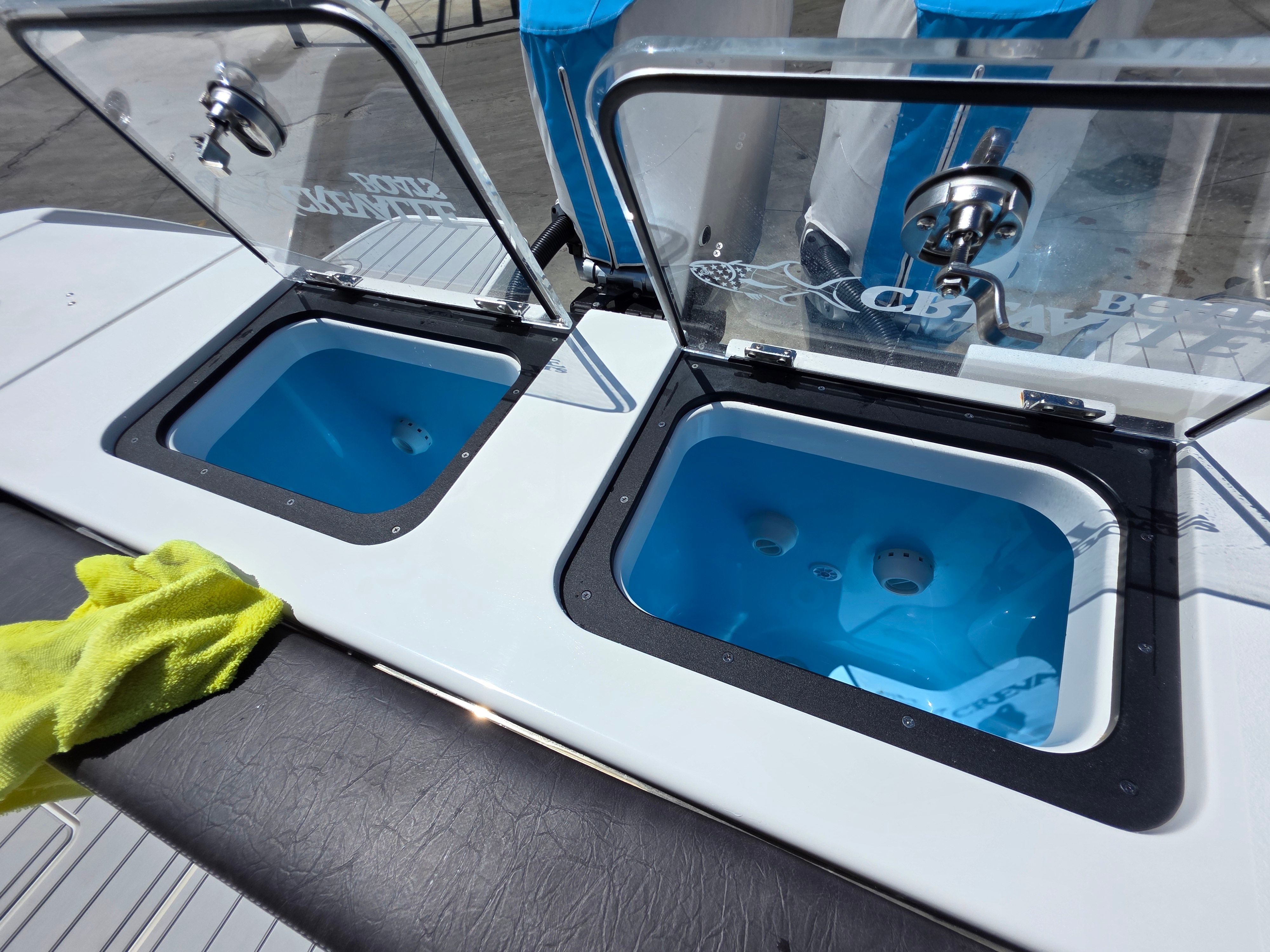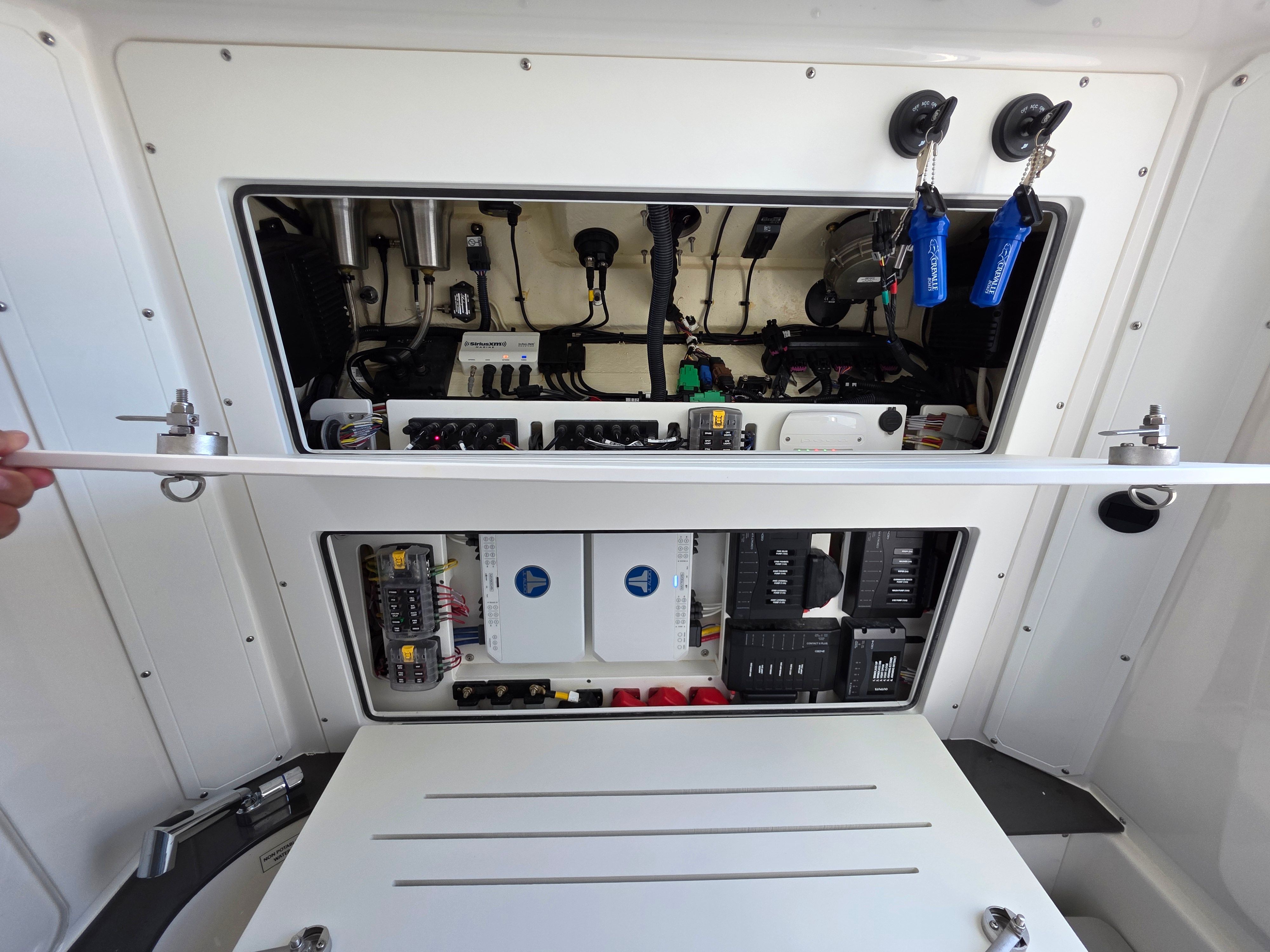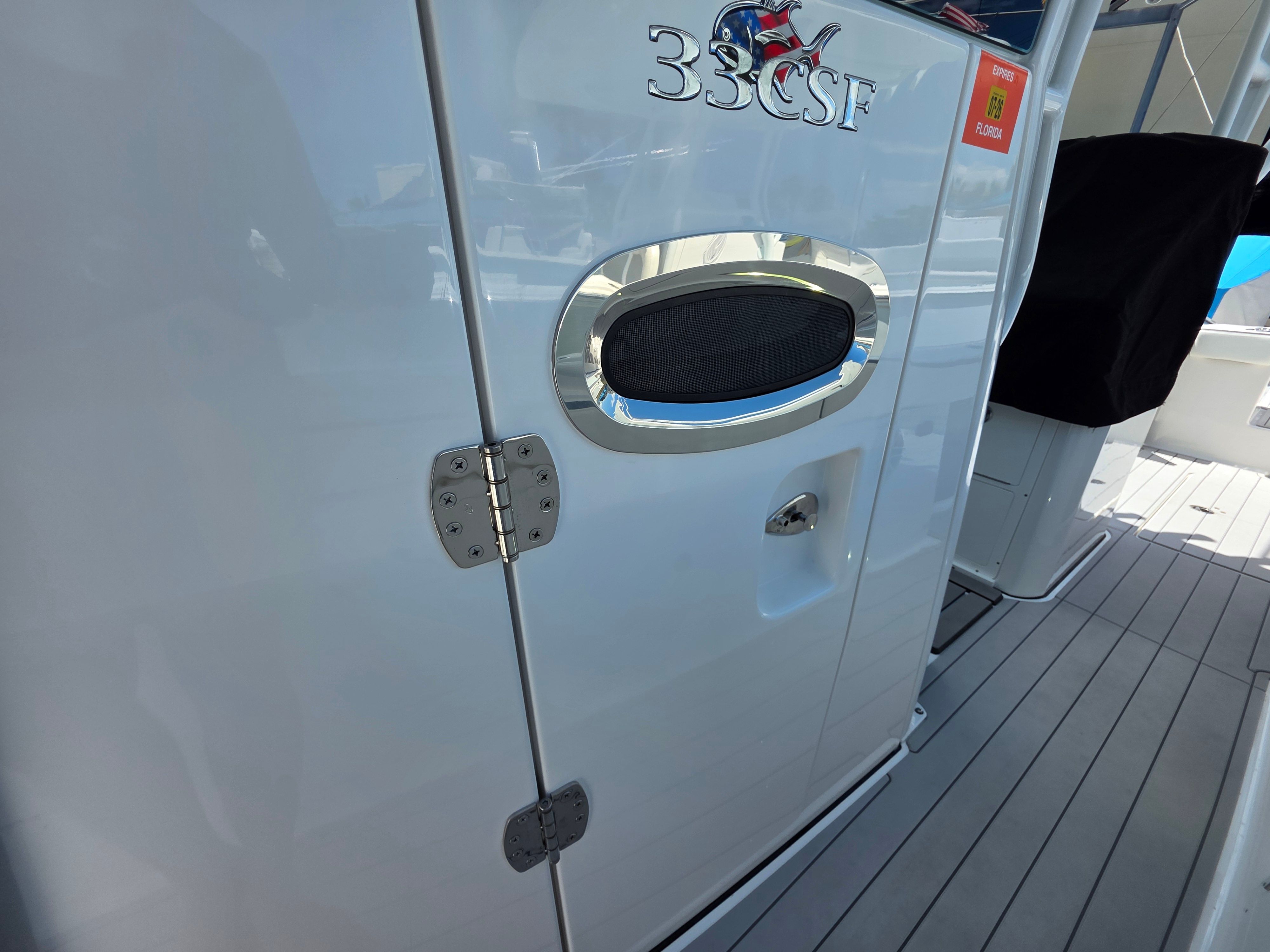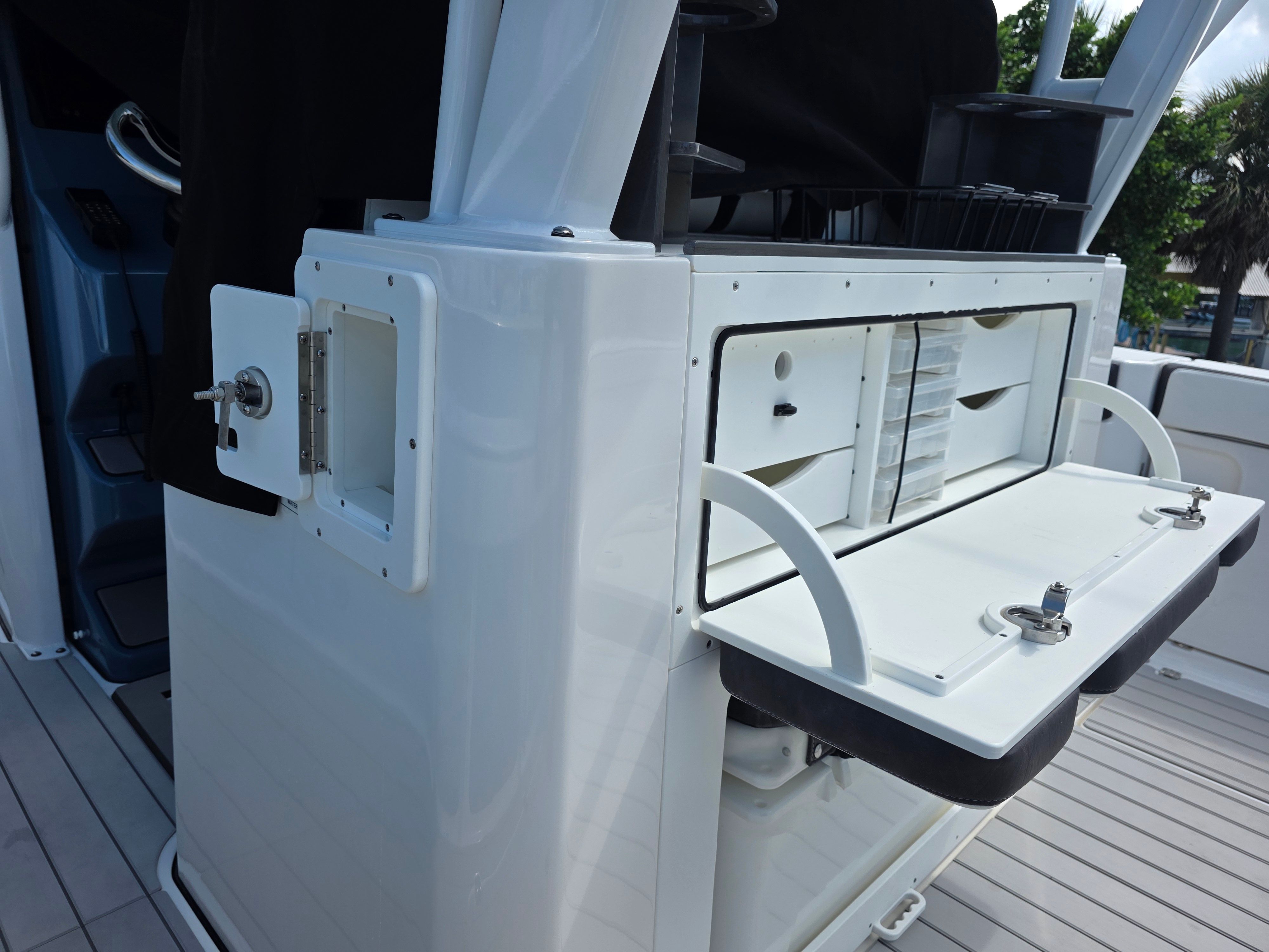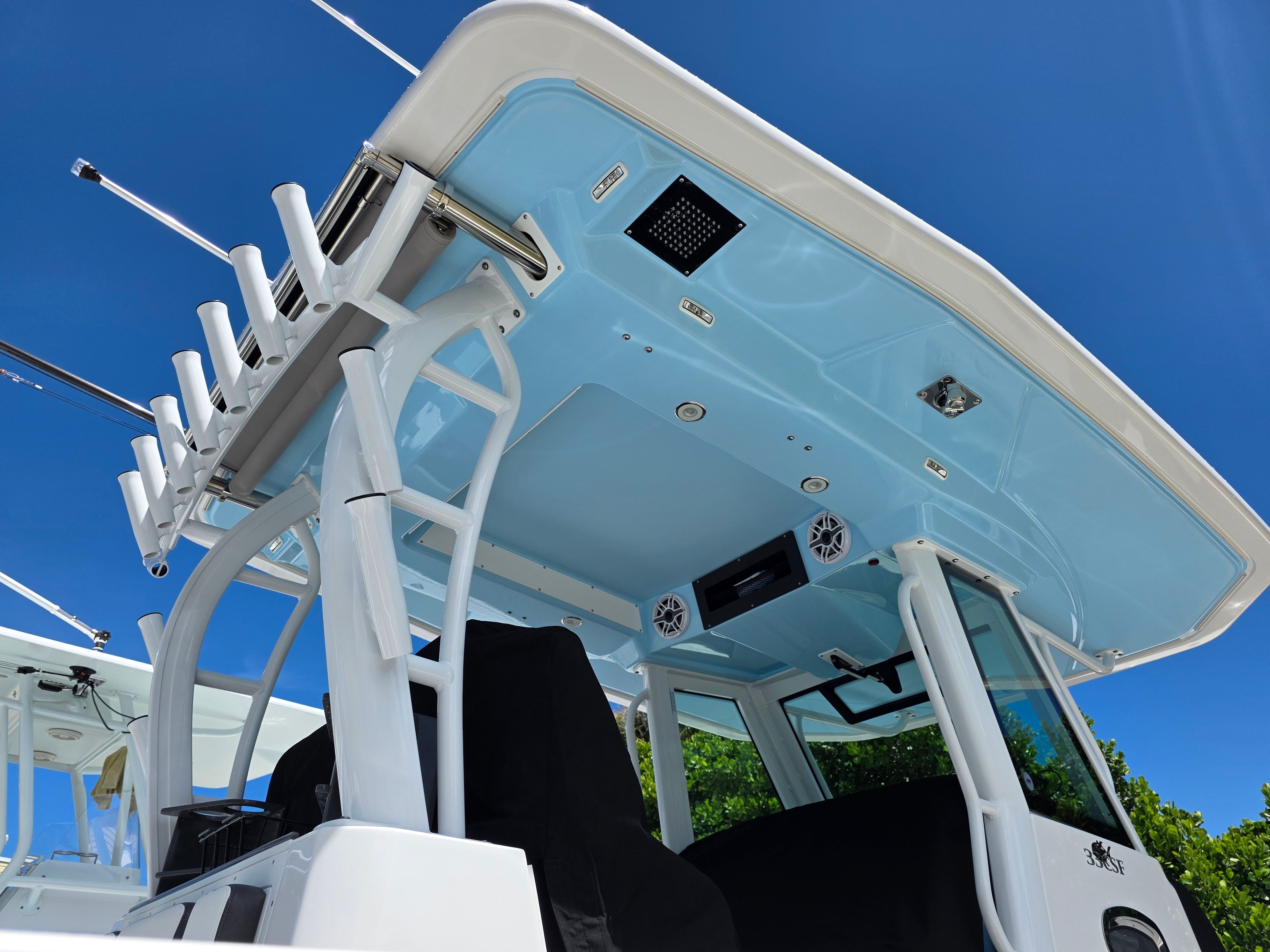 Newer is better. This 2024 Crevalle is regarded as one of the best value high-performance center consoles on the market. Comfort, speed, fishability, amenities, you know name it, you got it. The hybrid hull design offers a dry ride with potential to get you where you want to go in a hurry, and it's nice to have that diversity at your fingertips. For the offshore fisherman in you, combine with family-friendly comforts everyone wants, you are not left empty-handed in any regard. The SeaDek floors and nicely appointed seating immediately put you and in your comfort zone. The Crevalle sports all the best features of a "get out there" fishing boat with no wasted space, while also having all the comforts that makes your crew happy to stay out and/or save fuel at the sandbar to picnic. Call today. Located in the beautiful Jupiter Fl. New boat, 17 hours on it. Only taken picnicking. Never fished. Head Never used. Not a scratch on it. Hull and Deck-No wood construction-Epoxy coated fuel tanks-CRIMP- Resin Infusion Manufacturing Process-10 Year structural hull warranty-Black or white rub rail with stainless steel insert-Composite transom-Position control hinges-Lockable bow rod storage (6 rods)-Fiberglass hatches finished on both sides-NMMA Certified using ABYC Standards-Yacht Grip, non-skid deck-Powder coated aluminum pipework-(6) Custom Crevalle pull-up cleats (through bolted)-(17) Standard cup holders-Dedicated in gunwale port & starboard safety gear -storage-Floor storage for 5 gallon bucket-Custom fiberglass leaning post, Yeti cooler slide and a tackle prep station -Dedicated trolling motor mounting surface-Transom tackle center-Custom powder coated aluminum grab rails molded into the deck-Fresh water shower in the hard top-Extended sized hard top– powder coated aluminum frame, integrated windshield, speakers, rod holders-Wet Sounds speakers-Dual Entry (dive door and transom door)-Trim Tabs-Underwater lights-Yacht Armor below rub rail-Custom canvas covers for seating area and console-Meticulously maintained-Live Wells (3)-30 Gallon aft release wells-Blue gel coat-1100 GPH Pumps-Insulation-LED lightingHelm-Cobalt Blue colored gelcoat helm face to eliminate secondary glare-Dual 16′ Displays (Garmin or Simrad)-Deluxe stainless steering wheel with power knob-Integrated, dual height, non-skid foot rests-Compass-VHF-Stainless horn-Wireless phone charger-OEM engine displays-Dual USB ports-Backlit switch labels-Stainless cup holders-Foot pads-Integrated engine data on electronics-Hydraulic or electronic steering with tilt helm-Tool rack with hook/knife/plier holders-Helm panel with ring lit, push button, stainless switches, and backlit function labels-Technical Standards-LED cockpit lighting throughout(RGBW)-Deutsch water resistant plugs on harnesses-Sealed Bussbars-Heat shrink electrical terminals-Circuit breakers (not fuses)-No visible fasteners on panels-East access battery switch in the leaning post-LED Navigation lights-Deluxe battery hold down trays-Bilge pump and high water bilge pump-Upholstery-Custom upholstery with contoured seating and cushions-Tone on tone color accents, top stitching, heat reflective vinyls and multi density foam provide maximum endurance and comfort-Contoured forward helm seating and leaning post cushions-Coaming pads (Cockpit and Bow)