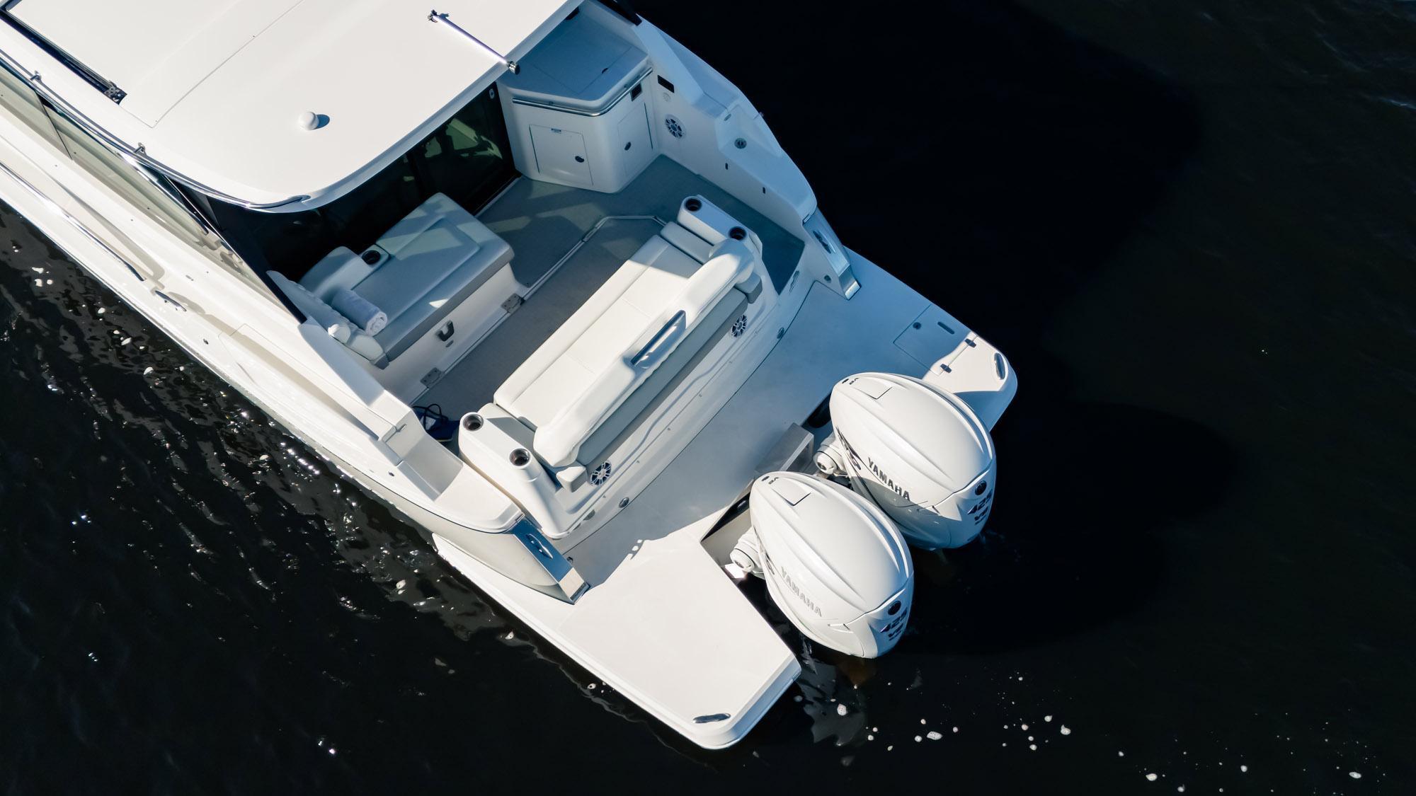 The 2022 Regal 36 XO can be easily boarded from port or stbd by the stern swim platform.