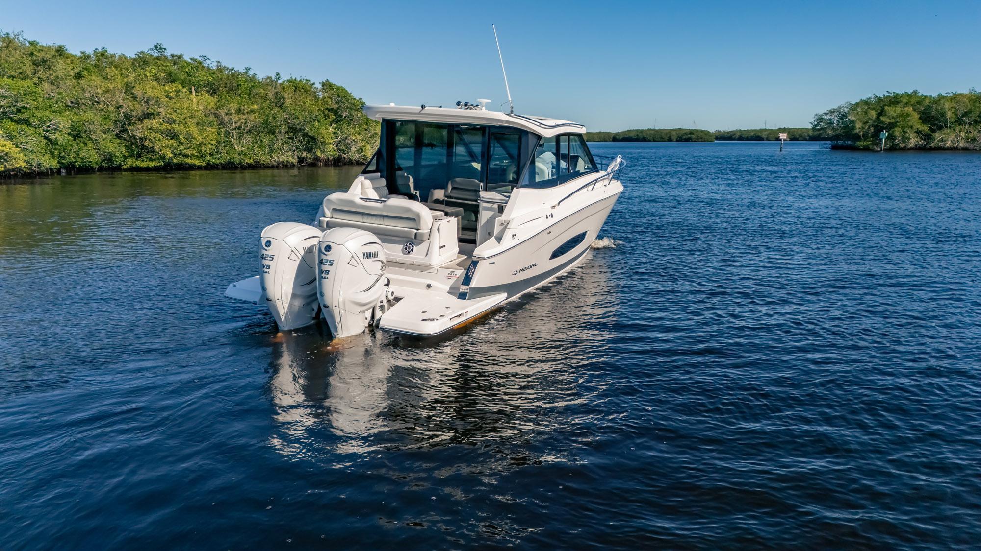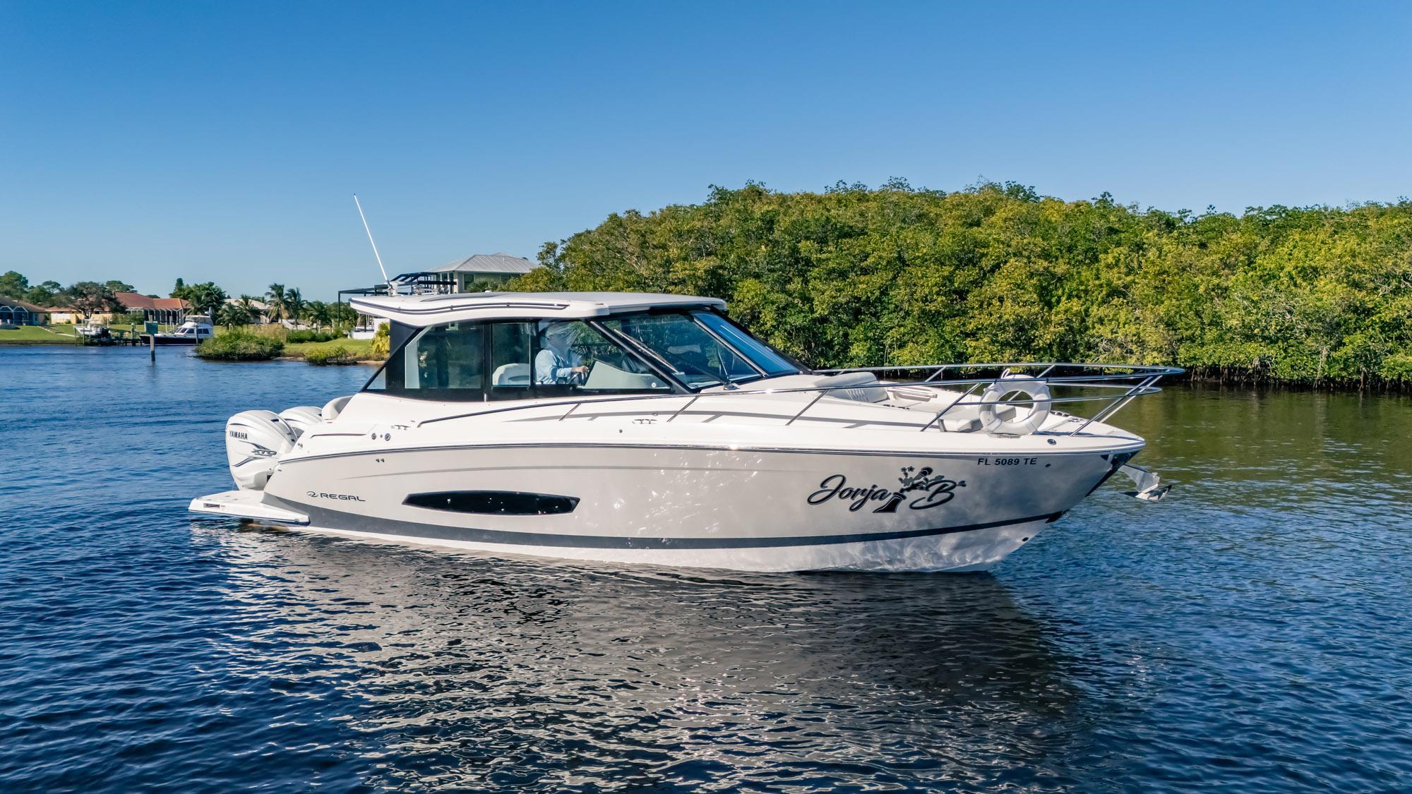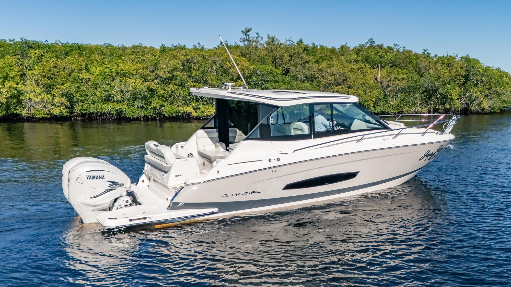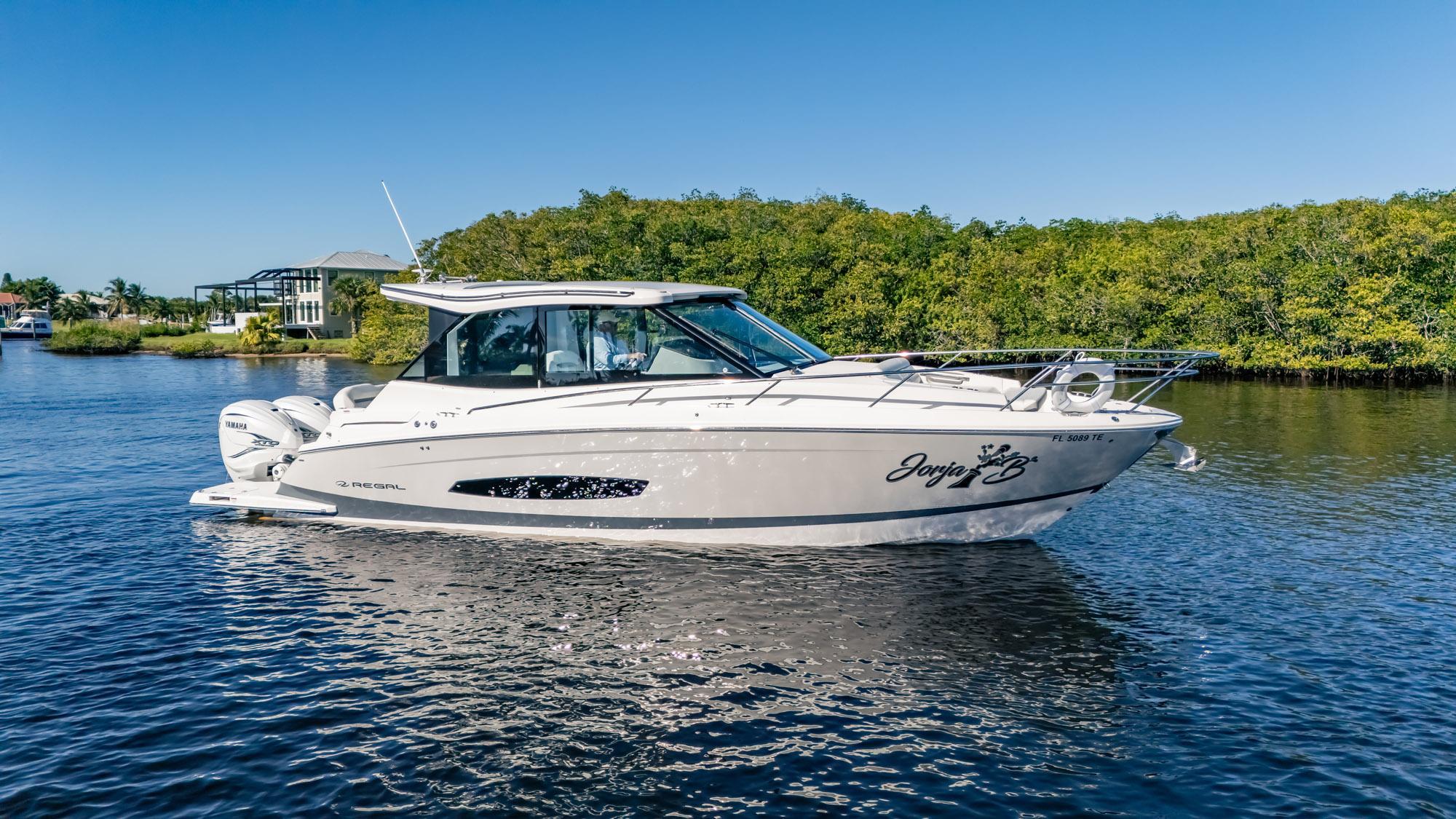Welcome aboard the 2022 Regal 36 XO! She offers an amazing layout perfectly suited for family and friends. She has a spacious outside seating area. The weather protected climate-controlled helm deck area can be opened up by a sliding door to create a fantastic indoor outdoor entertaining space. Bow seating is accessible through a port side helm deck walkway. The layout below is spacious and open. Forward there is an island queen berth. She features a full head, seating area and an aft sitting room that converts to a large sleeping berth. Her twin 425 Yamaha outboard power package provides the performance and reliability boaters have come to expect from Yamaha. The 2022 Regal 36 XO is loaded with a host of additional factory options. The Yamaha helm master joystick makes docking a breeze!THIS 2022 REGAL HAS THE LOWEST HOURS CURRENTLY ON THE MARKETONLY 75 HOURS!!Engine Warranty until 2/26/2027 and eligible for two more additional years!LIFT KEPT, UNDERCOVER!THE BED HAS NEVER BEEN SLEPT ON!CAPTAIN MAINTAINED!Fantastic Regal design and innovation focused on social enjoyment with safetyTwin Yamaha 5.6 L V8 F425 UCA White with only 75 Hours!!Yamaha helm master joystick controls for easy dockingStaypoint Bow thruster Generator 7.2 KW DieselDual GARMIN 8616 multi-function displays (Chartplotter, Sonar)(5) Underwater lights Optional sliding door opens up the helm area to the aft deck Electric grill Sunroof Electric Windlass with RemoteWet bar Fusion stereo controls helm deck and cockpit with 8 speakers and subwoofer Custom LED light bar Bow seating with speakersCockpit seagrass, MattBow Sunshade systemCentral vacuum systemWindshield tintas vapor detector Palm Beach enclosureToilet overboard discharge pump Fender clipsTransom seat coversRiver rock cockpit Upholstery colorsTelevision in the Master cabin and in midships cabinBatteries replaced Aug. 2024
