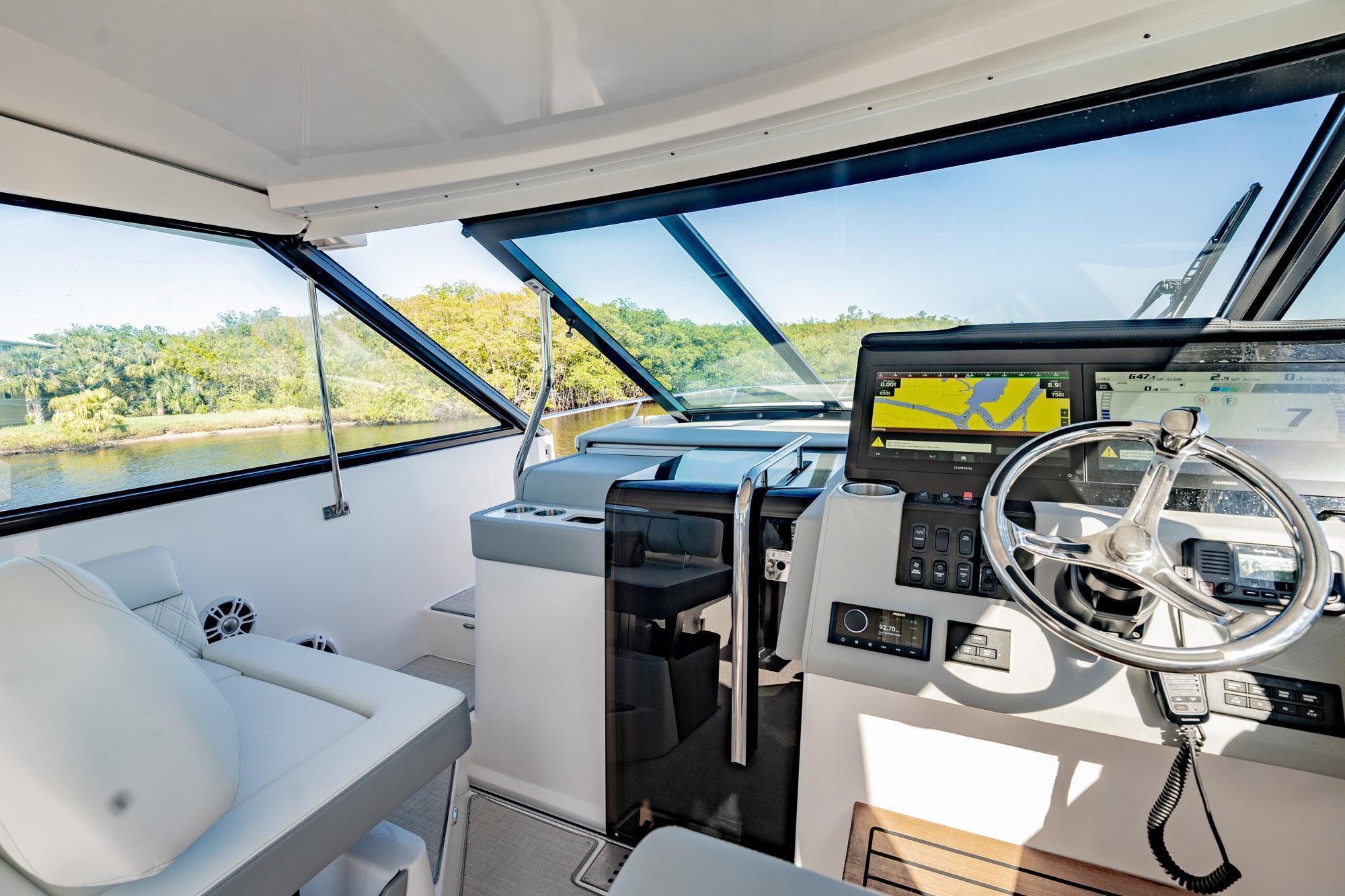 - Just fwd on the stbd side is the helm station. Equipped with everything the Captain would need for safe operation.