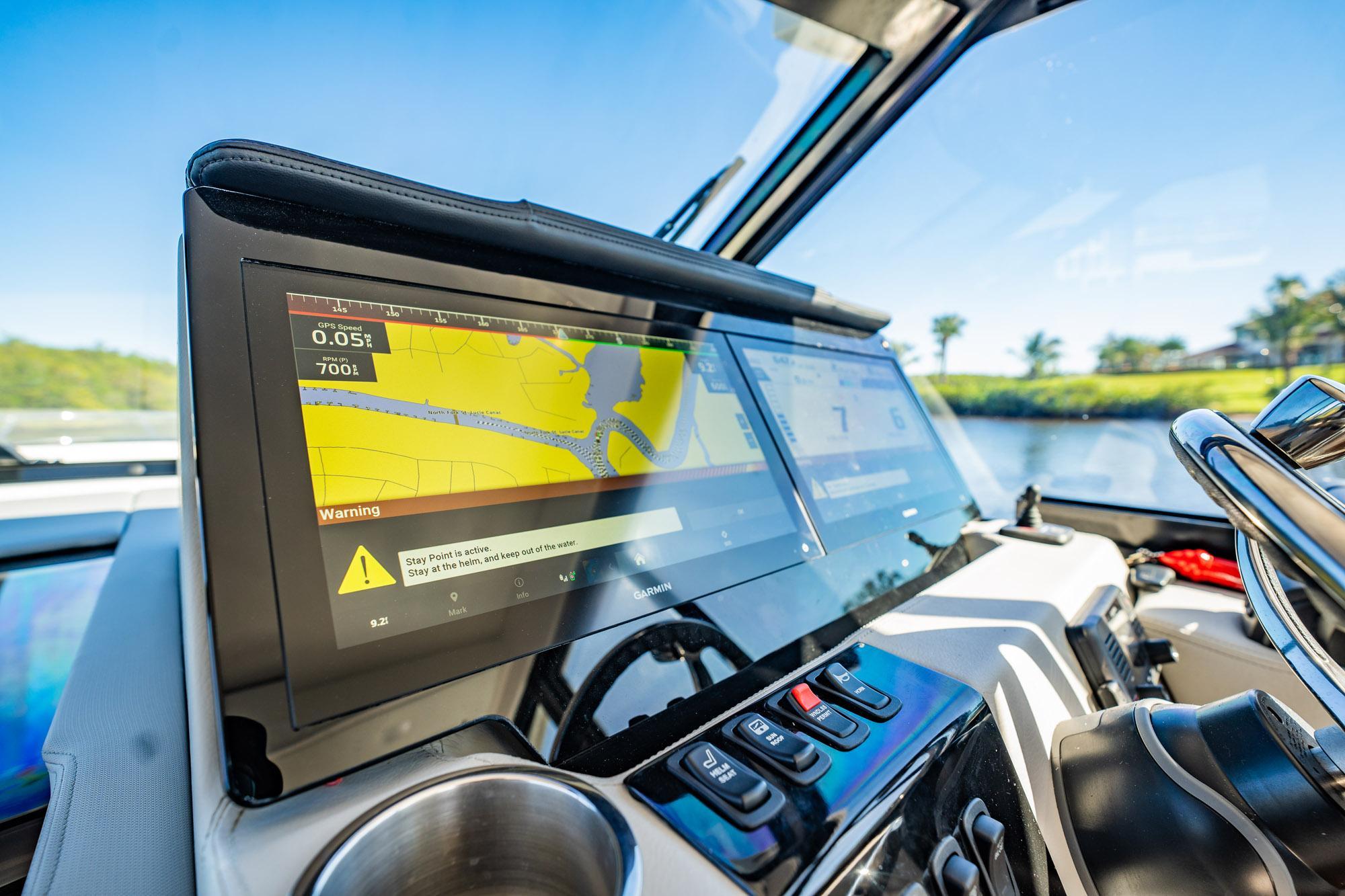 - Glass style helm with (2) GARMIN 8616 multi-function displays with chart plotter, sonar functions