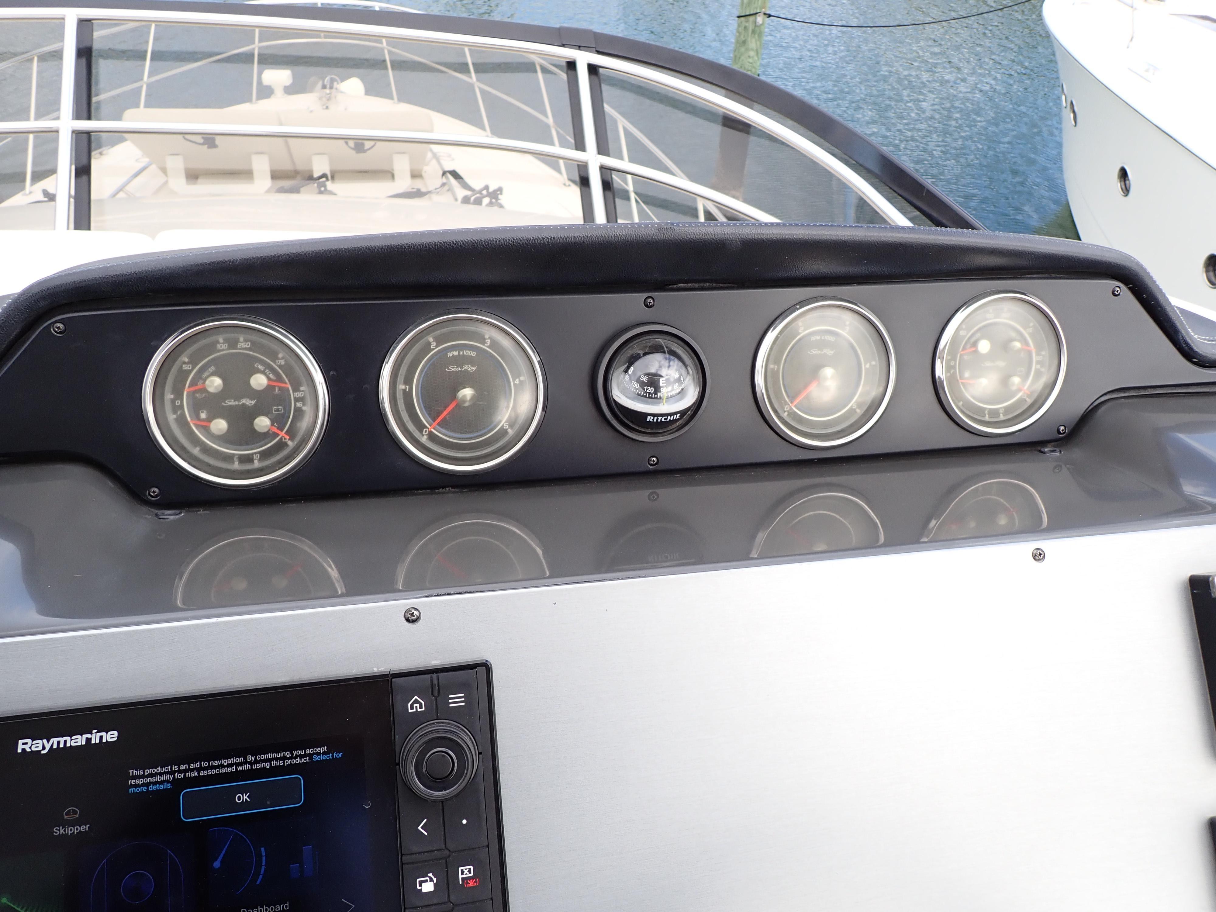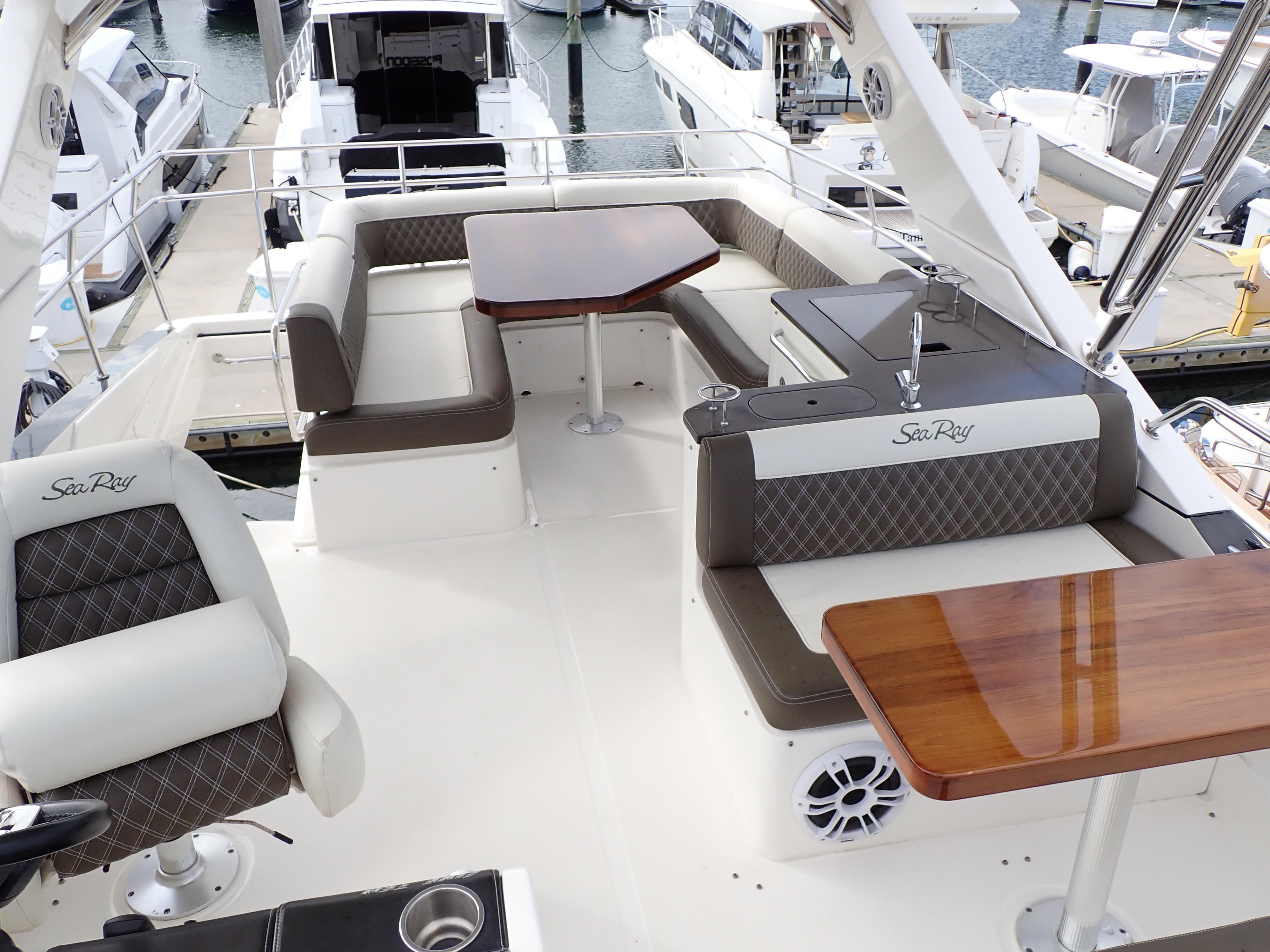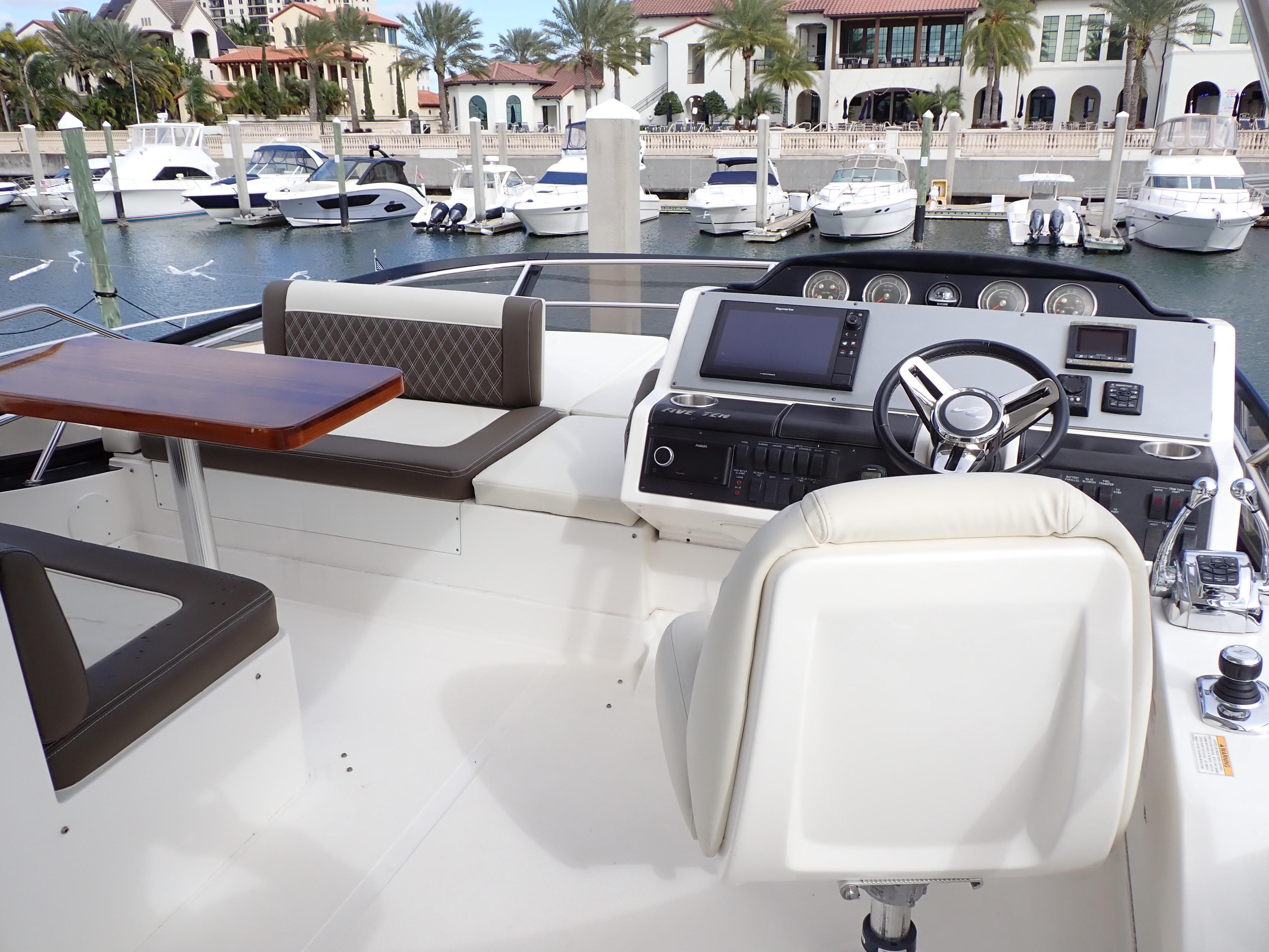 Extraordinary Opportunity due to Circumstances Massive Price ReductionAbsolutely ImmaculateUpgraded and Updated Stem to SternOnly 730 Hours on Cummins CSC 600's700 GPH WatermakerHydraulic Submersible Swim PlatformOptional Hardtop with New Electric Sunroof New SunbedPods Replaced and UpgradedOpen Checkbook Refit in 2023-2024This Sea Ray 510 Fly has been maintained to an exceptional standard from new and has enjoyed an open checkbook refit with extraordinary results that would be hard to equal. She was fully optioned from new and upgrades include, in addition to those listed above, a cockpit icemaker, a built-in flybridge electric grill, new custom window blinds, a full set of custom fitted Sea Ray china and crystal, Tracvision satellite TV, optional under-stair washer/dryer, upgraded hardwood flooring throughout the salon, galley and companionway etc. etc.If desired the current slip at the area's most prestigious marina/yacht club is fully transferable. Please see 271 HD photos and a 28-minute HD video to fully appreciate this amazing yacht. Further factory details are in the "other details" tab below. This spectacular Sea Ray will not disappoint in any way and has been photo and video documented to this unusual degree to ensure know your time and effort in viewing her in person is well spent. Here is what Sea Ray has to say about this extraordinary yacht:Think of consummate hosts you've met. They support social interaction with beautiful settings and all the right amenities and offerings to bring life to the party, keeping the mood bright, lively and happy. You've just imagined the 510 Fly, with its highly functional social zones and crowd-pleasing features to keep you and your guests at full-smile. SkyFlow Design circulates light and air throughout the boat. The galley, salon and cockpit combine like an indoor/outdoor great room, and the expansive bridge layout is the icing on the cake. Hosting is easy in such an environment. And then when the pace has slackened, a full-beam master suite breathes peace into every weekend getaway.Key FeaturesV-Drive w/Digital Throttle & Shift or optional Zeus Propulsion with joystick controlLuxurious full beam master stateroom with multiple configurationsStandard three stateroom layout and two full heads, each with separate showersSocial zone design with galley up and featuring continuous cockpit / salon interactionStandard, fully complemented, upper & lower helm stationsExpansive bridge layout with multiple seating, lounging and dining areasStandard Raymarine® e125 Radar/Chartplotter combo at lower control stationAir Conditioning / HeatingCustom Integral Vent SystemZone-Controlled Reverse-Cycle System, 240V (40,000 BTU)4 units Bridge FeaturesBeverage HoldersConsole Glove BoxHandrails: 316 Stainless SteelHatch, Sliding Bridge AccessLighting, Indirect LEDOutlet, 120V GFI ProtectedOutlet, 12V AccessoryRadar ArchRefrigerator, 120VSeating, Convertible w/Storage BelowSeating, Helm (2)SunpadTable, Fiberglass - AftFull Hardtop with canvas sunroofCabin FeaturesCarbon Monoxide MonitorsCarpet - 100% StainmasterCurtains, Custom ThroughoutDoors, WoodHandrailsInterior Finishes and Treatments: Wood Cabinetry: Walnut or Rift Cut White Oak; Window Treatment: Silver Alloy Blinds; Carpet: Dark (Std) or LightLighting, 12V IndirectOutlet & Switch Plates - Polished Nickel FinishOutlets, 120V GFI ProtectedOutlets, 12V AccessoryPillows, AccentShades, Fabric Day/Night: w/Drape TrimStorage, In-FloorCanvasBridge Seats & Console CoversCanvas Colors -Black Cockpit and bridge Seat CoversAcrylic windows in canvasZippered ventsCertificationsMeets Applicable USCG & ABYC StandardsNMMA Yacht CertificationCockpit FeaturesAft bench with Fiberglass tableDoor, Cabin Entry - 3-Pane/Multi OpeningDoor, TransomFloor Liner, natural teakHandrails, 316 Stainless SteelLazarette w/Dedicated Line & Fender StowageLighting, LED - WhiteOutlets, 120V GFI ProtectedSeating, Aft BenchSteps, BoardingSteps, Exterior Bridge Access w/Stainless-Steel Handrail & Storage BelowControl Station (Upper and Lower helms)Alarms, High Water - Bilge & CabinBattery Parallel Start System - EnginesCompassDash, Gel CoatedElectronic Throttle & Shift Controls (ETS)Joystick ControlsHorn, Air - 12VInstrument PanelSmartCraft VesselView Display:Propulsion Engine Hour Meters, Engine Status, Performance & Fuel, Peak Performance, , Troll Control & Cruise Control- Vessel: Vessel Status, Tank Status, Steering Position & Generator DataEnvironment & Navigation GPS Interface, Depth & Water Temperature, Depth Alerts, Trip Log Information, Fuel to Waypoint Data & Navigation Data- Active Alarms/Details- Alarm History/DetailsSmartCraft® Diagnostics:- Instrumentation, Custom Sea Ray® SmartCraft w/Low-Glare Blue Night Lighting & Chrome Bezels- 4-in-1 Multigauges (2) (Includes: Fuel Level, Oil Pressure, Voltmeter & Water Temperature)- Tachometers (2)Steering, Power Assisted Hydraulic w/Tilt WheelSwitch Panel, BacklitSwitches, Illuminated Weatherproof Rockers & Electronic Dimmer ControlElectrical SystemsBatteries, 8-D Type w/TraysBattery Charger/Converter 120V/60 Amp/12VBattery Solenoid Switches, 12V (3)Cable Television System w/InletPanel, Circuit BreakerPanel, DC Main BreakerPanel, Main Distribution - ACPanel, Main Distribution - DCShore Power, CablemasterTransformer, Shore Power IsolationWiring, Color-CodedEngine RoomBilge Pumps, 12V AutomaticBilge Pumps, 12V Automatic High-WaterBlowers, 12V Bilge (2)Fire Suppression SystemGel-Coated Engine RoomInsulation, Engine Room - 2"Ladder, Stainless SteelLighting, 12VCable MasterHVAC pumpFresh Water pumpForward Stateroom Head / ShowerDoor, Access from CompanionwayFlooring, TileHandrails, Stainless SteelHead, VacuFlush®Power Vent, 12VRobe Hook, Head DoorShower w/Adjustable Shower Wand & Acrylic DoorStorage, Medicine Cabinet - MirroredTowel BarTowels - Sea RayVanity w/Solid-Surface Countertop, Sink, Faucet & Storage BelowForward StateroomBed, Queen-Size w/Innerspring Mattress, Pillows, Sheets, Coordinate