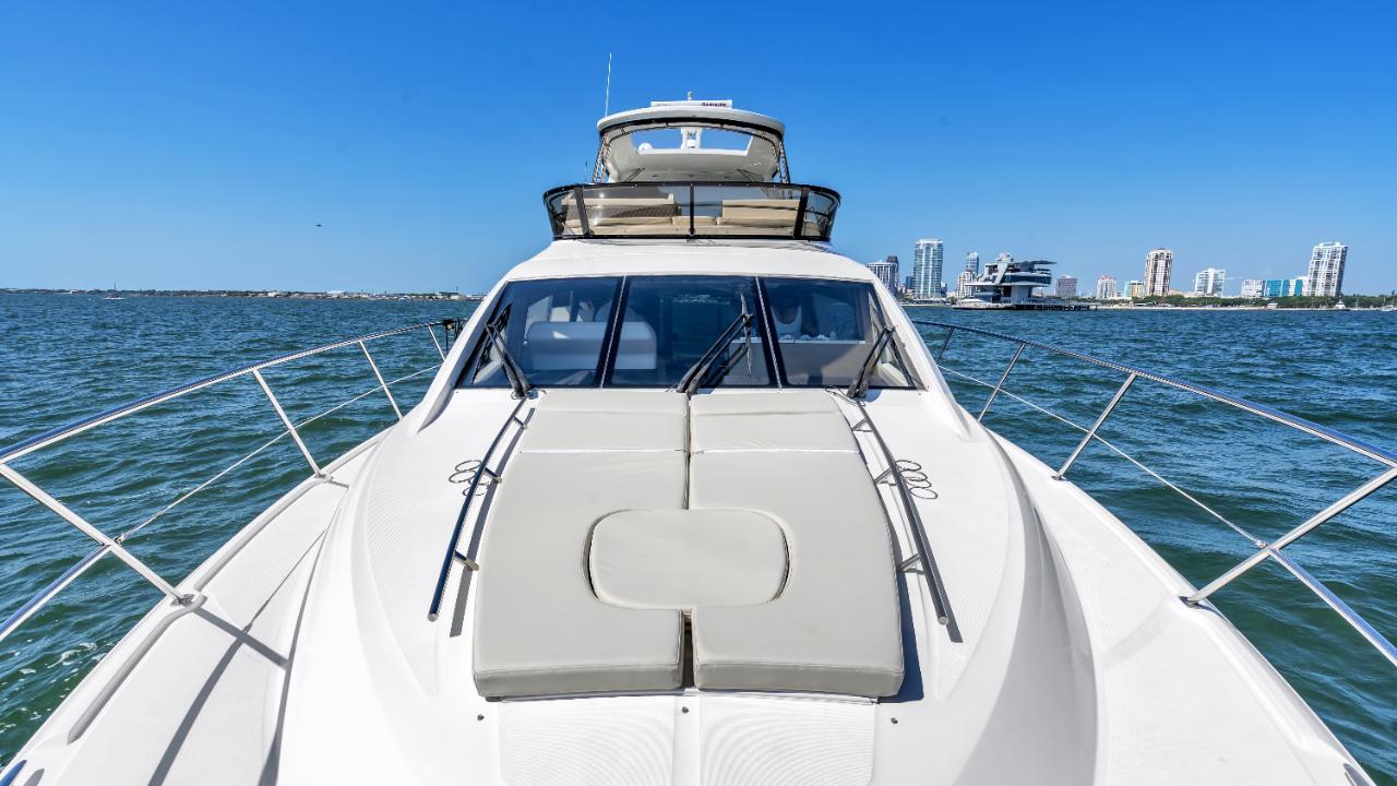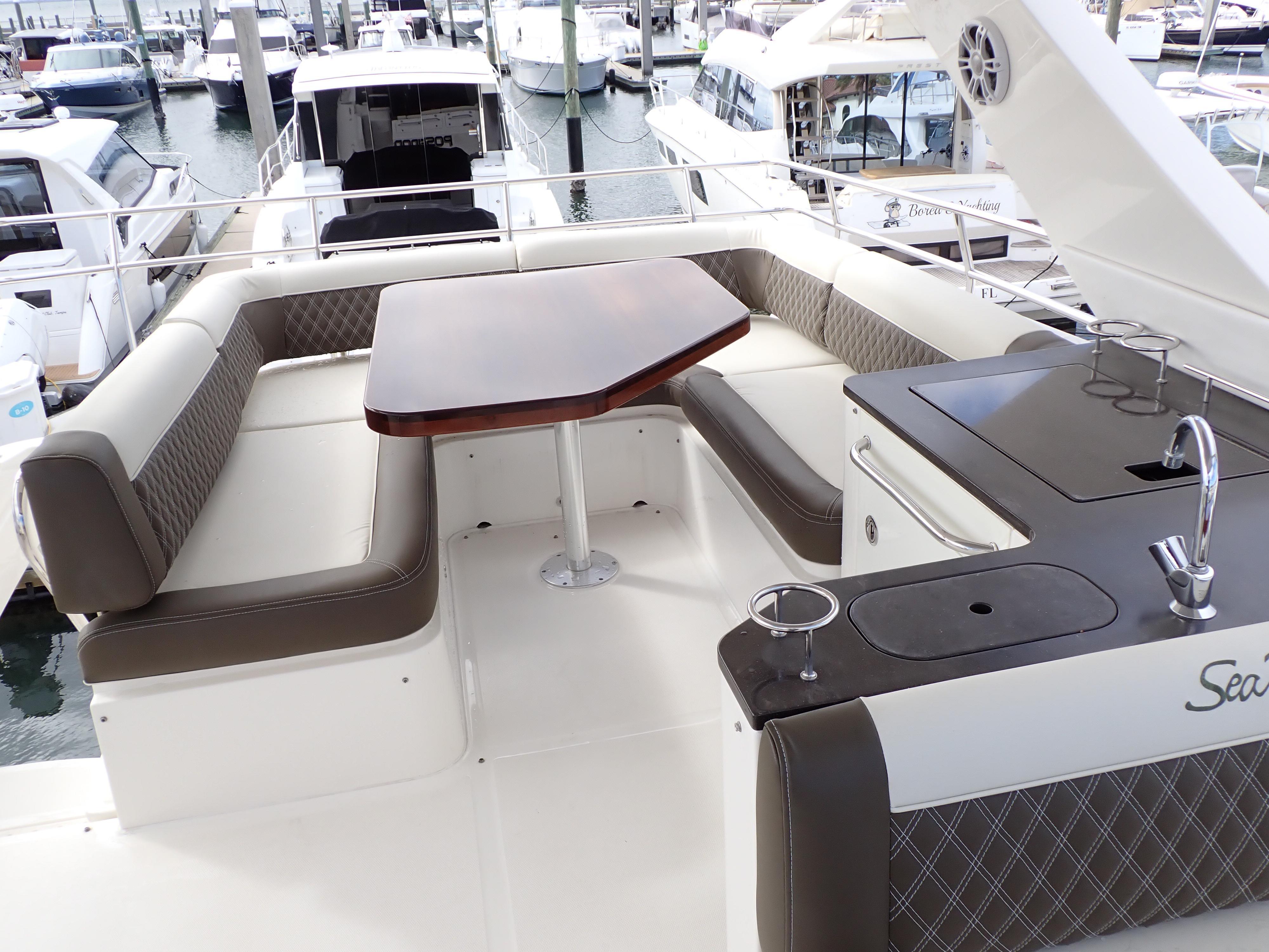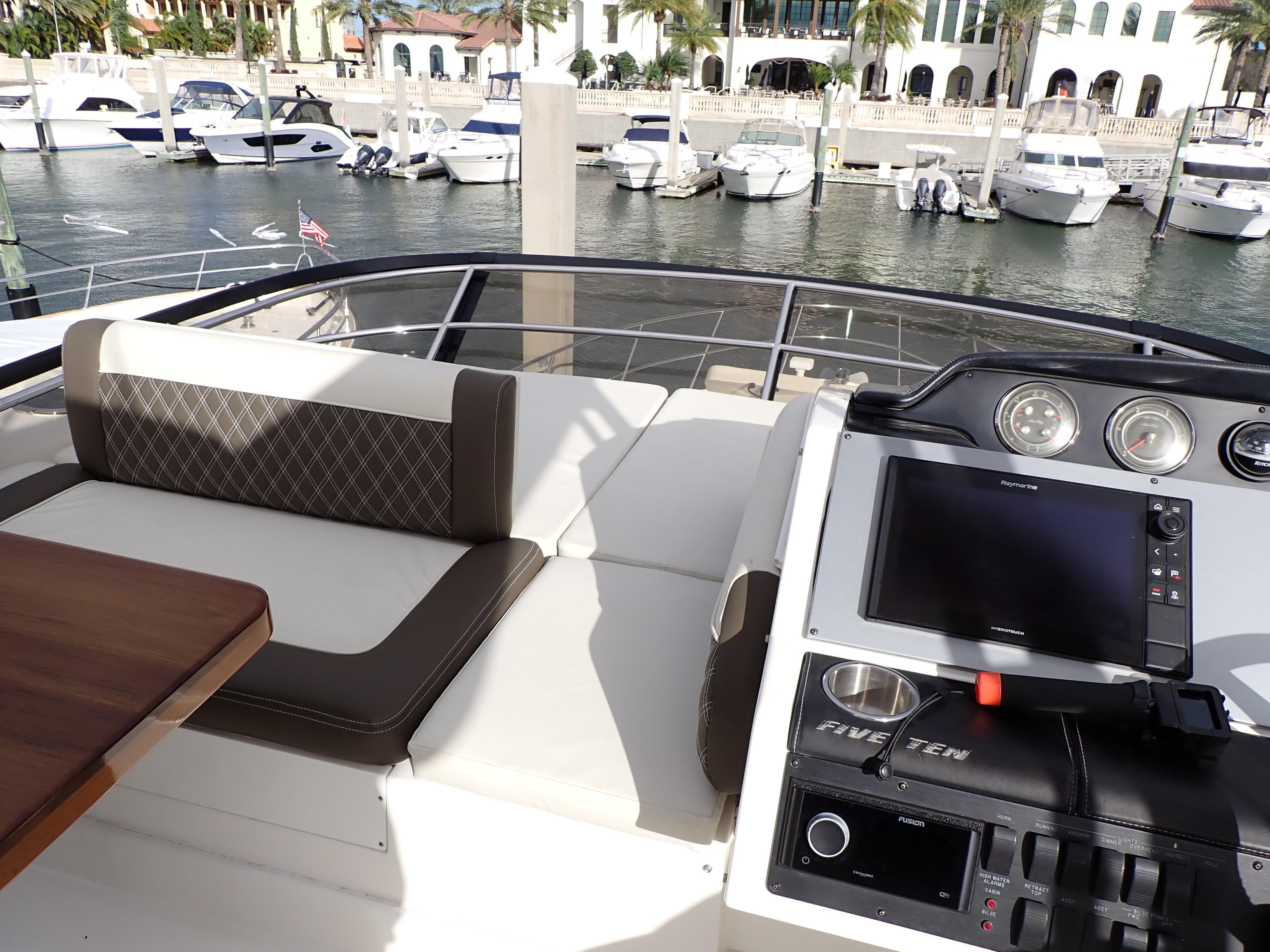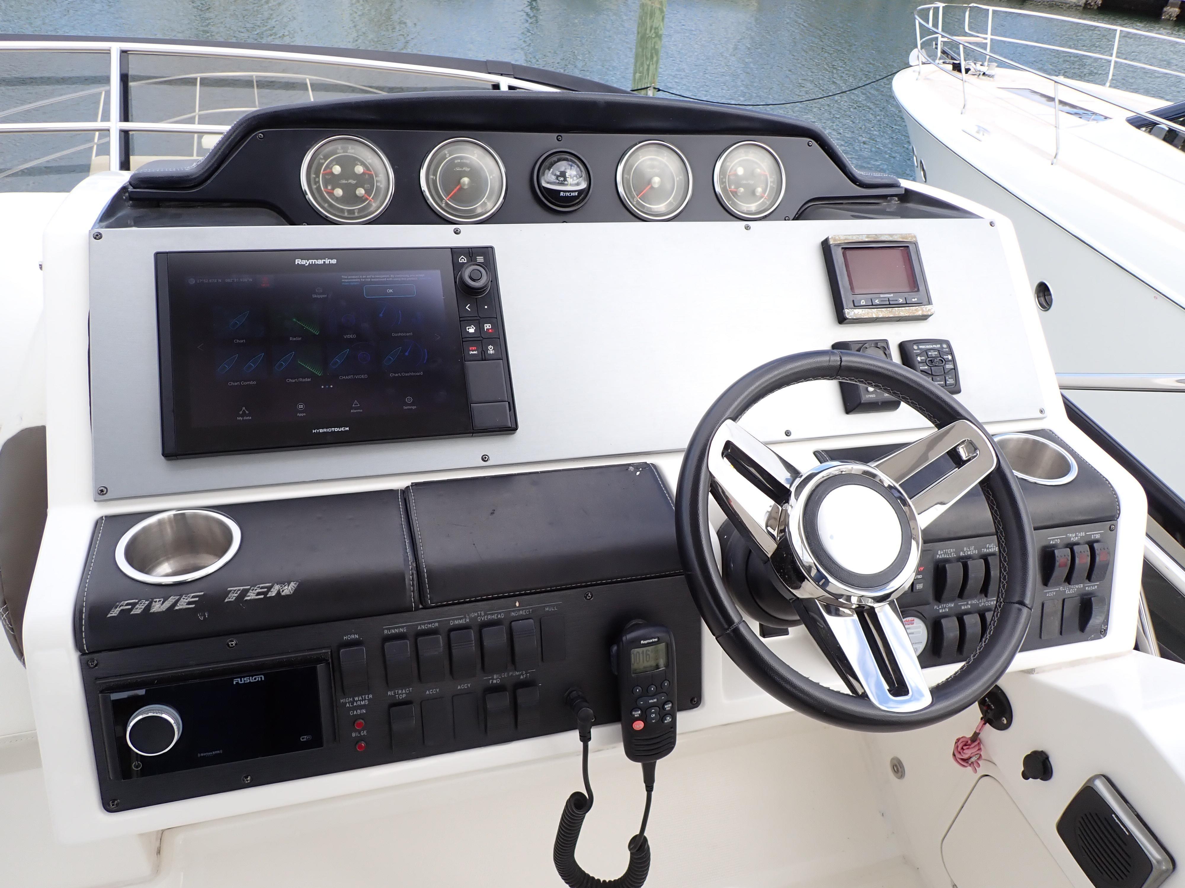 Extraordinary Opportunity due to Circumstances Massive Price ReductionAbsolutely ImmaculateUpgraded and Updated Stem to SternOnly 730 Hours on Cummins CSC 600's700 GPH WatermakerHydraulic Submersible Swim PlatformOptional Hardtop with New Electric Sunroof New SunbedPods Replaced and UpgradedOpen Checkbook Refit in 2023-2024This Sea Ray 510 Fly has been maintained to an exceptional standard from new and has enjoyed an open checkbook refit with extraordinary results that would be hard to equal. She was fully optioned from new and upgrades include, in addition to those listed above, a cockpit icemaker, a built-in flybridge electric grill, new custom window blinds, a full set of custom fitted Sea Ray china and crystal, Tracvision satellite TV, optional under-stair washer/dryer, upgraded hardwood flooring throughout the salon, galley and companionway etc. etc.If desired the current slip at the area's most prestigious marina/yacht club is fully transferable. Please see 271 HD photos and a 28-minute HD video to fully appreciate this amazing yacht. Further factory details are in the "other details" tab below. This spectacular Sea Ray will not disappoint in any way and has been photo and video documented to this unusual degree to ensure know your time and effort in viewing her in person is well spent. Here is what Sea Ray has to say about this extraordinary yacht:Think of consummate hosts you've met. They support social interaction with beautiful settings and all the right amenities and offerings to bring life to the party, keeping the mood bright, lively and happy. You've just imagined the 510 Fly, with its highly functional social zones and crowd-pleasing features to keep you and your guests at full-smile. SkyFlow Design circulates light and air throughout the boat. The galley, salon and cockpit combine like an indoor/outdoor great room, and the expansive bridge layout is the icing on the cake. Hosting is easy in such an environment. And then when the pace has slackened, a full-beam master suite breathes peace into every weekend getaway.Key FeaturesV-Drive w/Digital Throttle & Shift or optional Zeus Propulsion with joystick controlLuxurious full beam master stateroom with multiple configurationsStandard three stateroom layout and two full heads, each with separate showersSocial zone design with galley up and featuring continuous cockpit / salon interactionStandard, fully complemented, upper & lower helm stationsExpansive bridge layout with multiple seating, lounging and dining areasStandard Raymarine® e125 Radar/Chartplotter combo at lower control stationAir Conditioning / HeatingCustom Integral Vent SystemZone-Controlled Reverse-Cycle System, 240V (40,000 BTU)4 units Bridge FeaturesBeverage HoldersConsole Glove BoxHandrails: 316 Stainless SteelHatch, Sliding Bridge AccessLighting, Indirect LEDOutlet, 120V GFI ProtectedOutlet, 12V AccessoryRadar ArchRefrigerator, 120VSeating, Convertible w/Storage BelowSeating, Helm (2)SunpadTable, Fiberglass - AftFull Hardtop with canvas sunroofCabin FeaturesCarbon Monoxide MonitorsCarpet - 100% StainmasterCurtains, Custom ThroughoutDoors, WoodHandrailsInterior Finishes and Treatments: Wood Cabinetry: Walnut or Rift Cut White Oak; Window Treatment: Silver Alloy Blinds; Carpet: Dark (Std) or LightLighting, 12V IndirectOutlet & Switch Plates - Polished Nickel FinishOutlets, 120V GFI ProtectedOutlets, 12V AccessoryPillows, AccentShades, Fabric Day/Night: w/Drape TrimStorage, In-FloorCanvasBridge Seats & Console CoversCanvas Colors -Black Cockpit and bridge Seat CoversAcrylic windows in canvasZippered ventsCertificationsMeets Applicable USCG & ABYC StandardsNMMA Yacht CertificationCockpit FeaturesAft bench with Fiberglass tableDoor, Cabin Entry - 3-Pane/Multi OpeningDoor, TransomFloor Liner, natural teakHandrails, 316 Stainless SteelLazarette w/Dedicated Line & Fender StowageLighting, LED - WhiteOutlets, 120V GFI ProtectedSeating, Aft BenchSteps, BoardingSteps, Exterior Bridge Access w/Stainless-Steel Handrail & Storage BelowControl Station (Upper and Lower helms)Alarms, High Water - Bilge & CabinBattery Parallel Start System - EnginesCompassDash, Gel CoatedElectronic Throttle & Shift Controls (ETS)Joystick ControlsHorn, Air - 12VInstrument PanelSmartCraft VesselView Display:Propulsion Engine Hour Meters, Engine Status, Performance & Fuel, Peak Performance, , Troll Control & Cruise Control- Vessel: Vessel Status, Tank Status, Steering Position & Generator DataEnvironment & Navigation GPS Interface, Depth & Water Temperature, Depth Alerts, Trip Log Information, Fuel to Waypoint Data & Navigation Data- Active Alarms/Details- Alarm History/DetailsSmartCraft® Diagnostics:- Instrumentation, Custom Sea Ray® SmartCraft w/Low-Glare Blue Night Lighting & Chrome Bezels- 4-in-1 Multigauges (2) (Includes: Fuel Level, Oil Pressure, Voltmeter & Water Temperature)- Tachometers (2)Steering, Power Assisted Hydraulic w/Tilt WheelSwitch Panel, BacklitSwitches, Illuminated Weatherproof Rockers & Electronic Dimmer ControlElectrical SystemsBatteries, 8-D Type w/TraysBattery Charger/Converter 120V/60 Amp/12VBattery Solenoid Switches, 12V (3)Cable Television System w/InletPanel, Circuit BreakerPanel, DC Main BreakerPanel, Main Distribution - ACPanel, Main Distribution - DCShore Power, CablemasterTransformer, Shore Power IsolationWiring, Color-CodedEngine RoomBilge Pumps, 12V AutomaticBilge Pumps, 12V Automatic High-WaterBlowers, 12V Bilge (2)Fire Suppression SystemGel-Coated Engine RoomInsulation, Engine Room - 2"Ladder, Stainless SteelLighting, 12VCable MasterHVAC pumpFresh Water pumpForward Stateroom Head / ShowerDoor, Access from CompanionwayFlooring, TileHandrails, Stainless SteelHead, VacuFlush®Power Vent, 12VRobe Hook, Head DoorShower w/Adjustable Shower Wand & Acrylic DoorStorage, Medicine Cabinet - MirroredTowel BarTowels - Sea RayVanity w/Solid-Surface Countertop, Sink, Faucet & Storage BelowForward StateroomBed, Queen-Size w/Innerspring Mattress, Pillows, Sheets, Coordinate