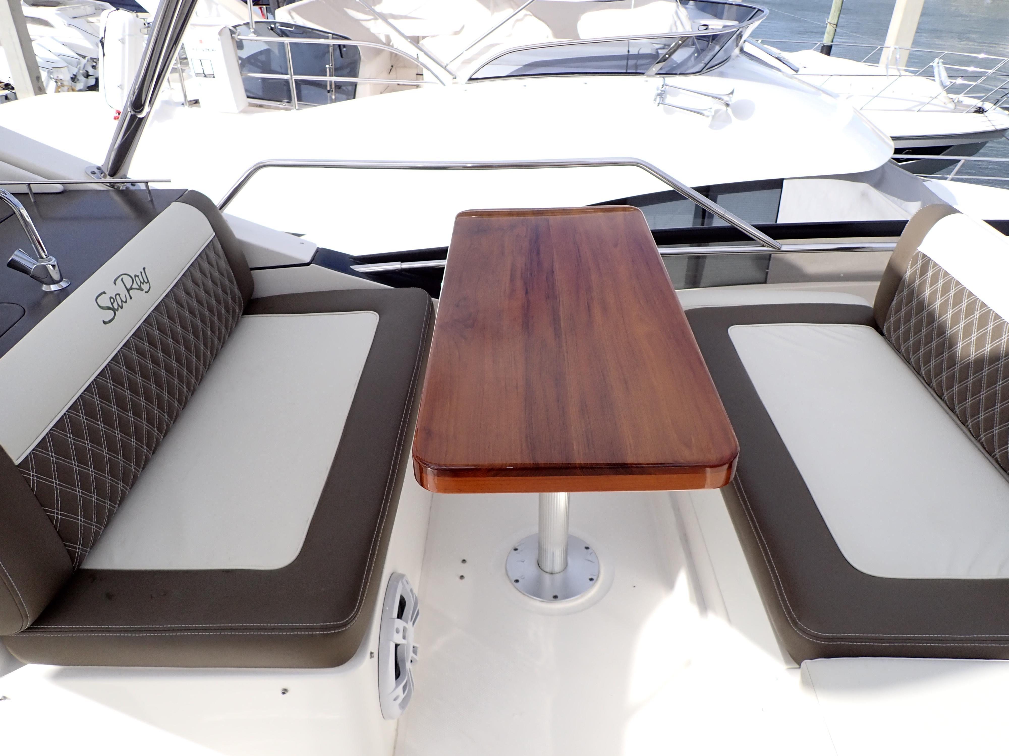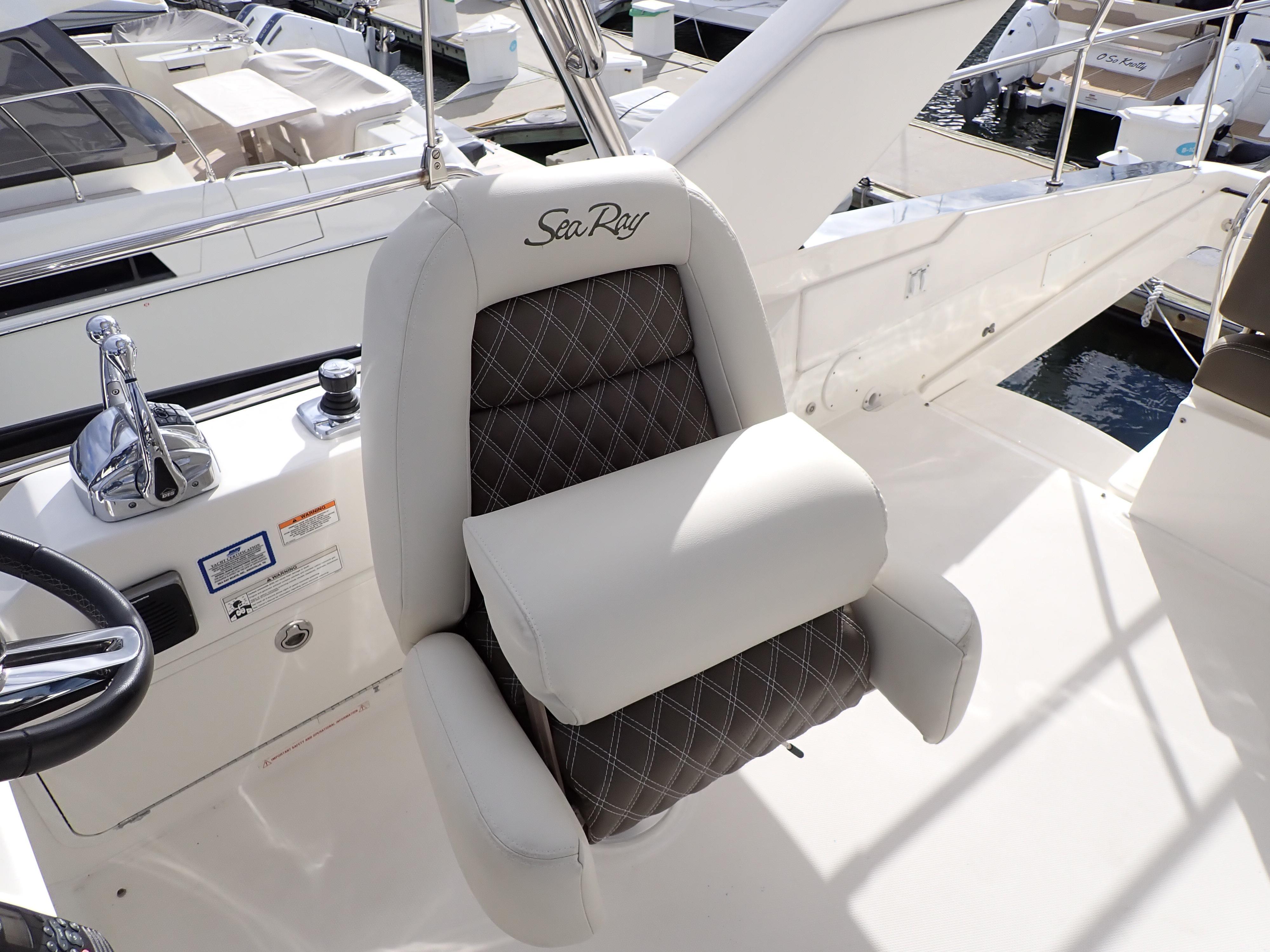 Not all accessories shown or described herein are standard equipment or even available as options. Some features and options may not be available when a boat is built for outside North America and/or has CE Certification. Options and features are subject to change without notice. Not all model-year boats may contain all the features or meet the specifications described herein. Confirm availability of all accessories and equipment with an authorized Sea Ray dealer prior to purchase.