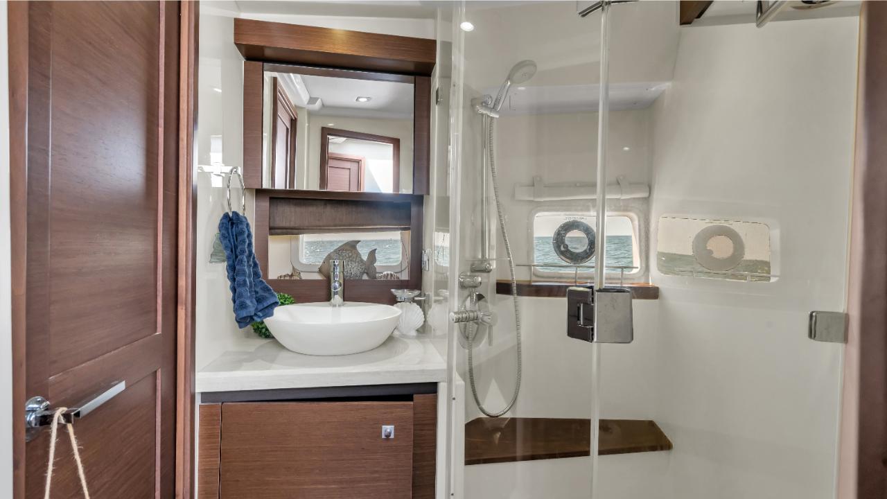 - Luxurious full beam master stateroom with multiple configurations
