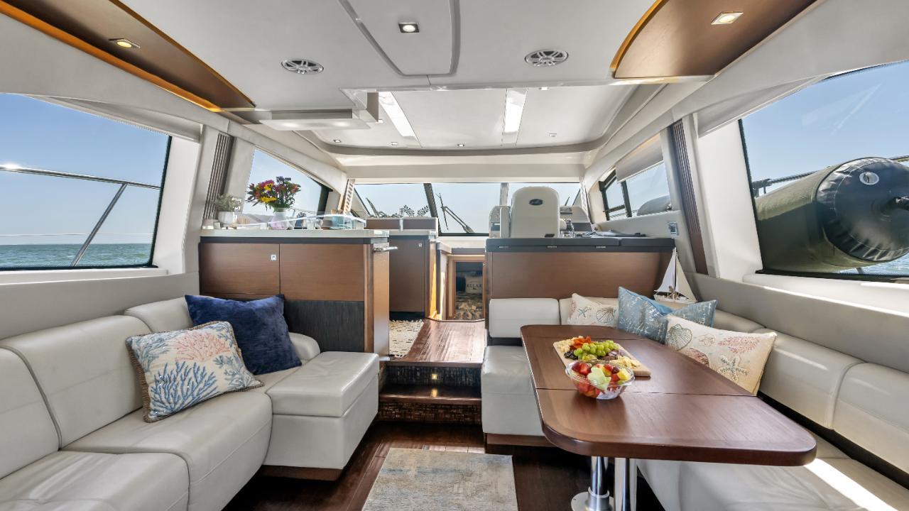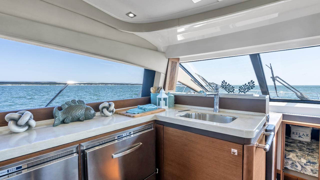 Think of consummate hosts you've met. They support social interaction with beautiful settings and all the right amenities and offerings to bring life to the party, keeping the mood bright, lively and happy. You've just imagined the 510 Fly, with its highly functional social zones and crowd-pleasing features to keep you and your guests at full-smile. SkyFlow Design circulates light and air throughout the boat. The galley, salon and cockpit combine like an indoor/outdoor great room, and the expansive bridge layout is the icing on the cake. Hosting is easy in such an environment. And then when the pace has slackened, a full-beam master suite breathes peace into every weekend getaway.