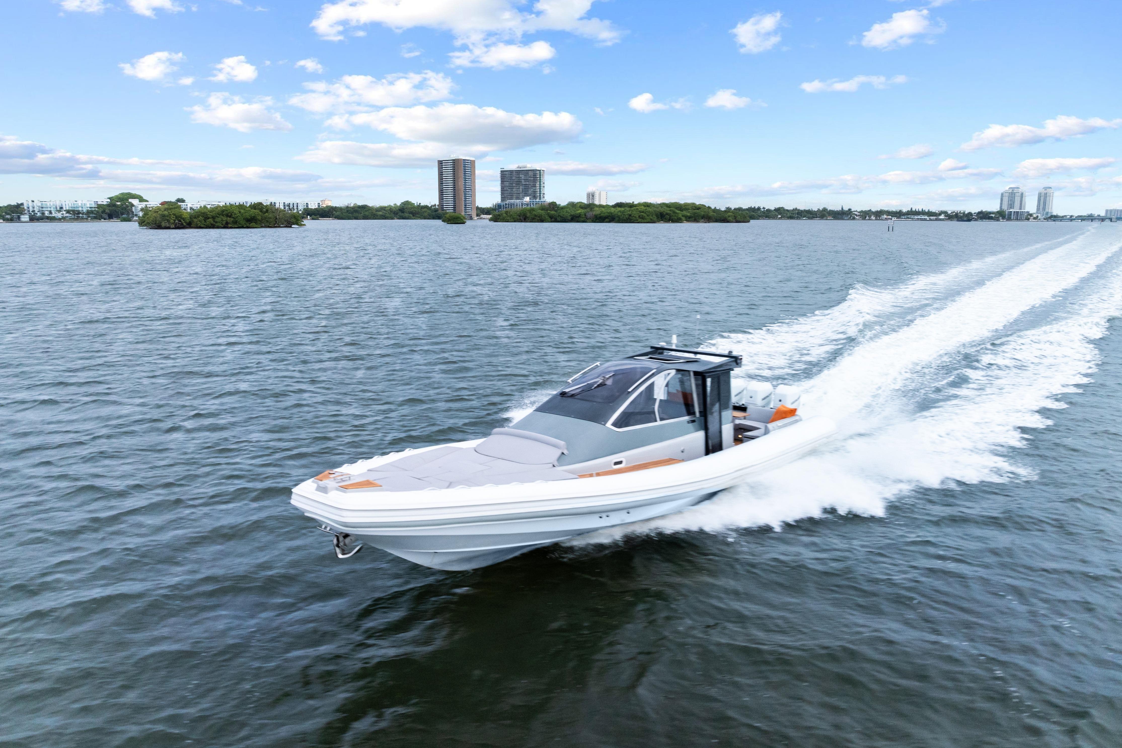 DescriptionThe Magazzù Targa 45 is a revolutionary luxury chase boat that blends the agility and performance of a maxi-RIB with the refined comfort of a cabin cruiser. Inspired by automotive design, particularly from the American market where this first unit was sold, it features futuristic, sporty lines with a distinctive amidships pilot-house integrated into the hard-top. This one-of-a-kind vessel, the inaugural model of the Targa series, was launched by the prestigious Italian shipyard Cantieri Magazzù and tested exclusively in Palermo, demonstrating exceptional stability, speed, and livability. The pilot-house offers panoramic views through a large windscreen, sliding glass doors, and an opening hard-top, providing protection from the elements while maintaining an open feel, complemented by air conditioning in both the cabin and cockpit areas for year-round comfort tailored to US yachting preferences.Key Features & Recent UpgradesAft, a spacious outdoor dinette with a U-shaped sofa, new teak table, and two outdoor mini fridges promotes conviviality, while the bow hosts a large sundeck for relaxation. Below deck, the interiors include a welcoming dinette with a convertible sofa, worktop, and a forward master cabin with a king-sized bed, ceiling hatches for natural light, and a separate head with shower.Powered by triple Mercury Verado 400 HP outboards with joystick control for effortless maneuvering, it delivers thrilling performance up to 55 knots, combining yacht-like comfort with RIB excitement, supported by a Kohler generator for reliable power.Maintenance & ConditionAs the progenitor of the Targa line, this unit represents a unique evolution, drawing from US market demands for versatility and customization, and has been meticulously maintained with:Recent Services & Upgrades- All services completed on motors and generator- All new batteries for house, generator, and motors- New chargers for all batteries- New bilge pumps with added sump box in rear bilge- Teak sanded and sealed- All windows re-caulked- New covers for windows and motors- New bottom paint- Reinforced and painted tubes- Up-to-date fire system- Life rafts in current certificationEquipment & Electronics- Triple 400 HP engines with joystick control- Garmin GPS navigation system- Air conditioning in cabin and cockpit areas- Kohler generator- Two outdoor mini fridges- New teak tableSummaryThis vessel stands as a standout "1 of 1" example in pristine, ready-to-cruise condition for American waters. It represents not just a luxury vessel, but a piece of maritime innovation history—the first of its revolutionary design to enter the US market.The combination of Italian craftsmanship, American market customization, extensive recent maintenance, and unique prototype status makes this vessel an exceptional opportunity for discerning buyers seeking both performance and exclusivity.