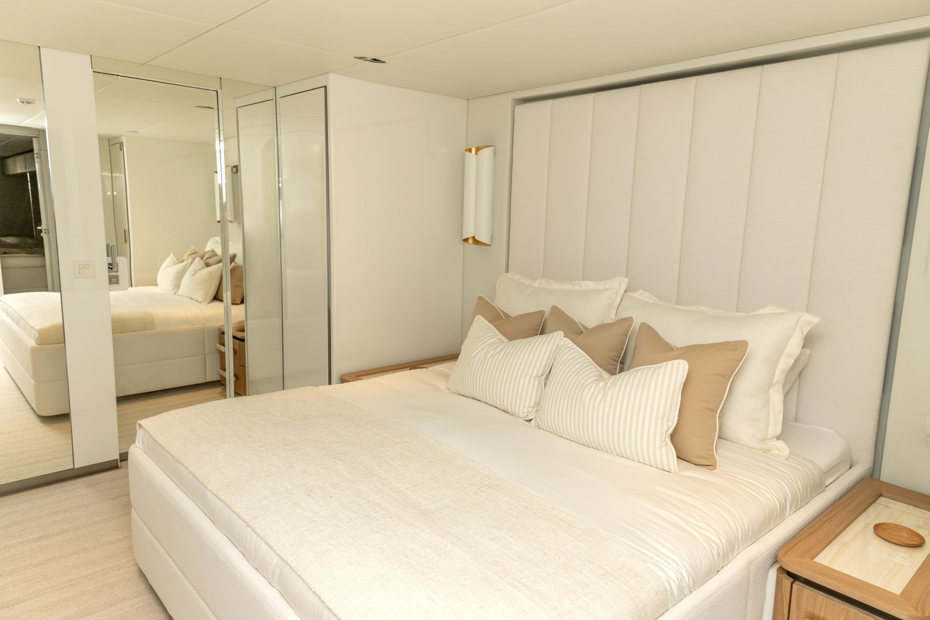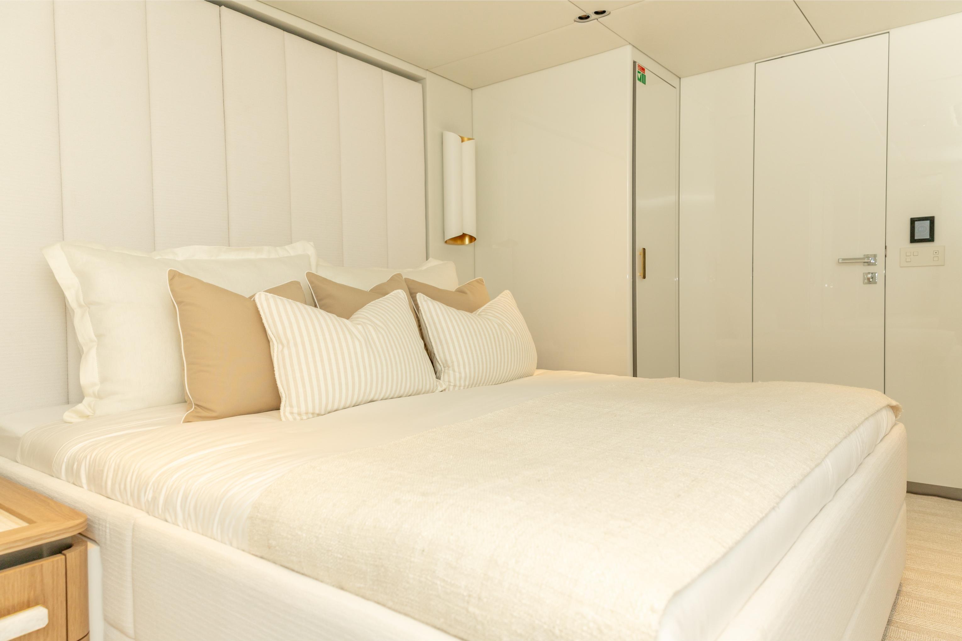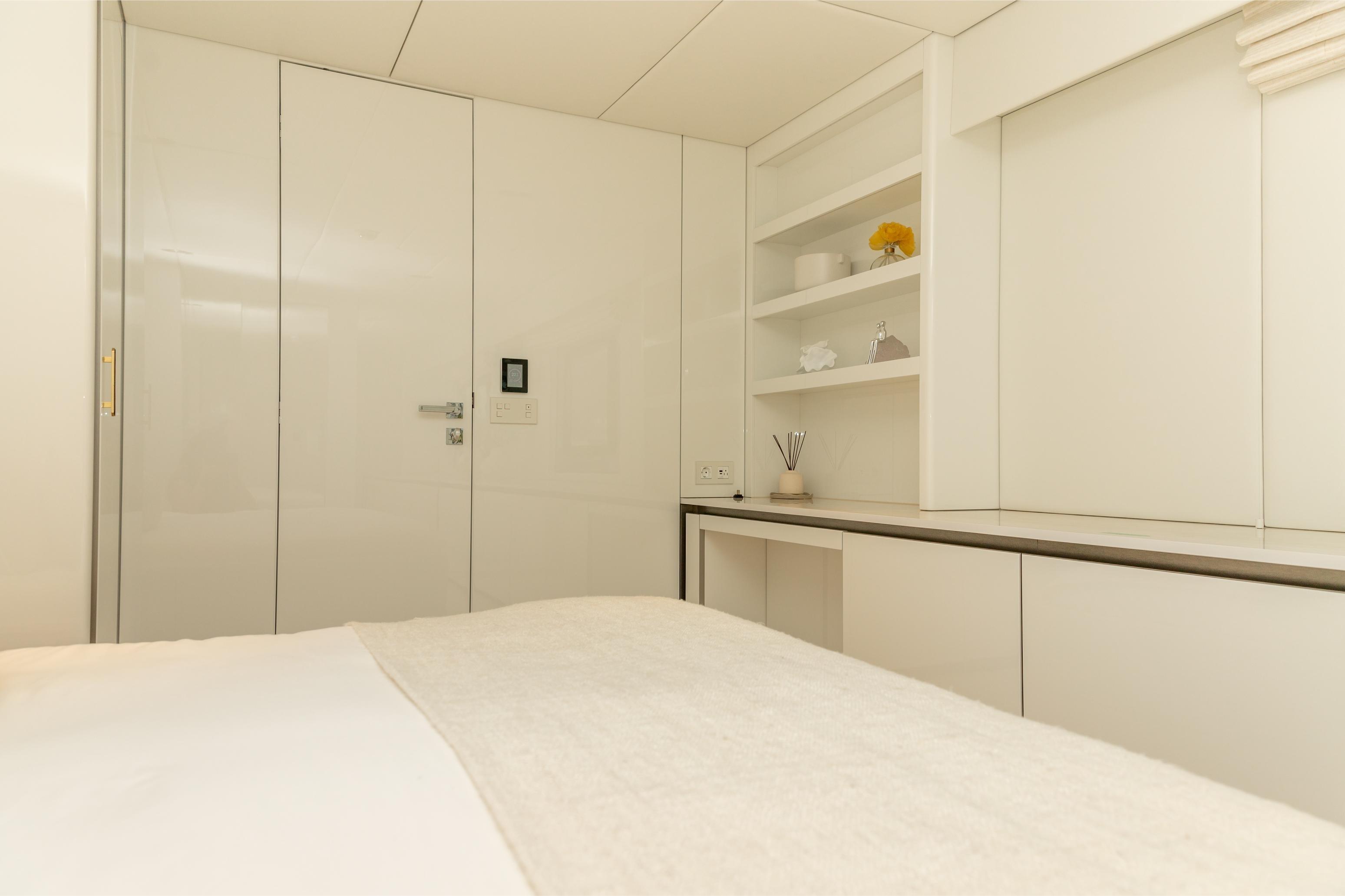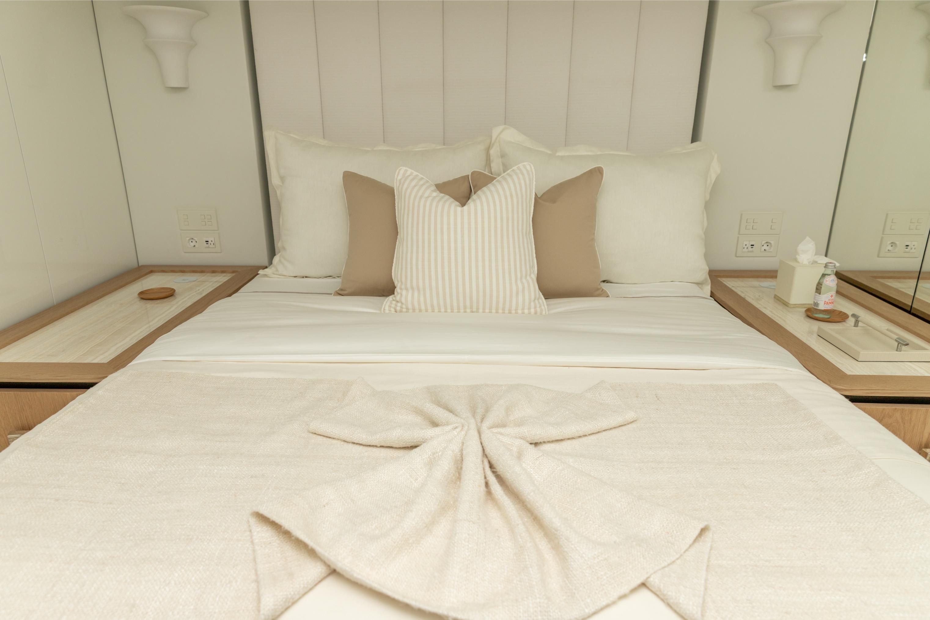 The 80 Sunreef Power is a universal multihull yacht for long cruises in ultimate comfort. Taking luxury and seaworthiness to a new dimension, this dynamic and elegant craft enters the Sunreef Yachts range, redefining the authentic power catamaran design. The yacht’s dynamic hull and superstructure stretch the living spaces to the extreme, offering infinite options for a bespoke layout and décor.With a bold, contemporary hull styling, the 80 Sunreef Power incorporates classic stainless steel portlights, teak sole decks, high bulwarks and subtle ambience lighting. Her massive garage combined with an aft platform allows the 80 Sunreef Power to take her dinghy, numerous water toys and jet-ski anywhere she goes. Easily accessed from the saloon, the yacht’s full-beam bow terrace is a vast, soothing retreat with amazing amounts of space for sunning and lounging. The 80 Sunreef Power’s immense flybridge offers enough breadth to house a spa pool, a wet bar and generous seating all around. One of the most spectacular features on board the 80 Sunreef Power is the master suite which can be set up in the bow section of the main deck. With a double bed facing the bow terrace, a bathroom with a walk-in shower, dressing and desk, the suite is bathed in sun from the skylight glazing. The same space can also be used to install a large lounge with ample seating and access to the foredeck.The main saloon opens wide onto the ample aft cockpit to combine the yacht’s interior dining space with the outdoor relaxation areas, where more seating is available along with a wet bar. The fully customizable saloon can also accommodate for a large galley, depending on the layout selected and houses an elevated interior navigation station.The immense volumes in the hulls of the 80 Sunreef Power give plenty of room to tailor every unit’s layout to the most specific requirements. The crew quarters along with the galley and crew mess can be accessed directly from the aft cockpit for more privacy on board. Multiple layout configurations are available to set up luxurious guest cabins for a supreme level of comfort on board.