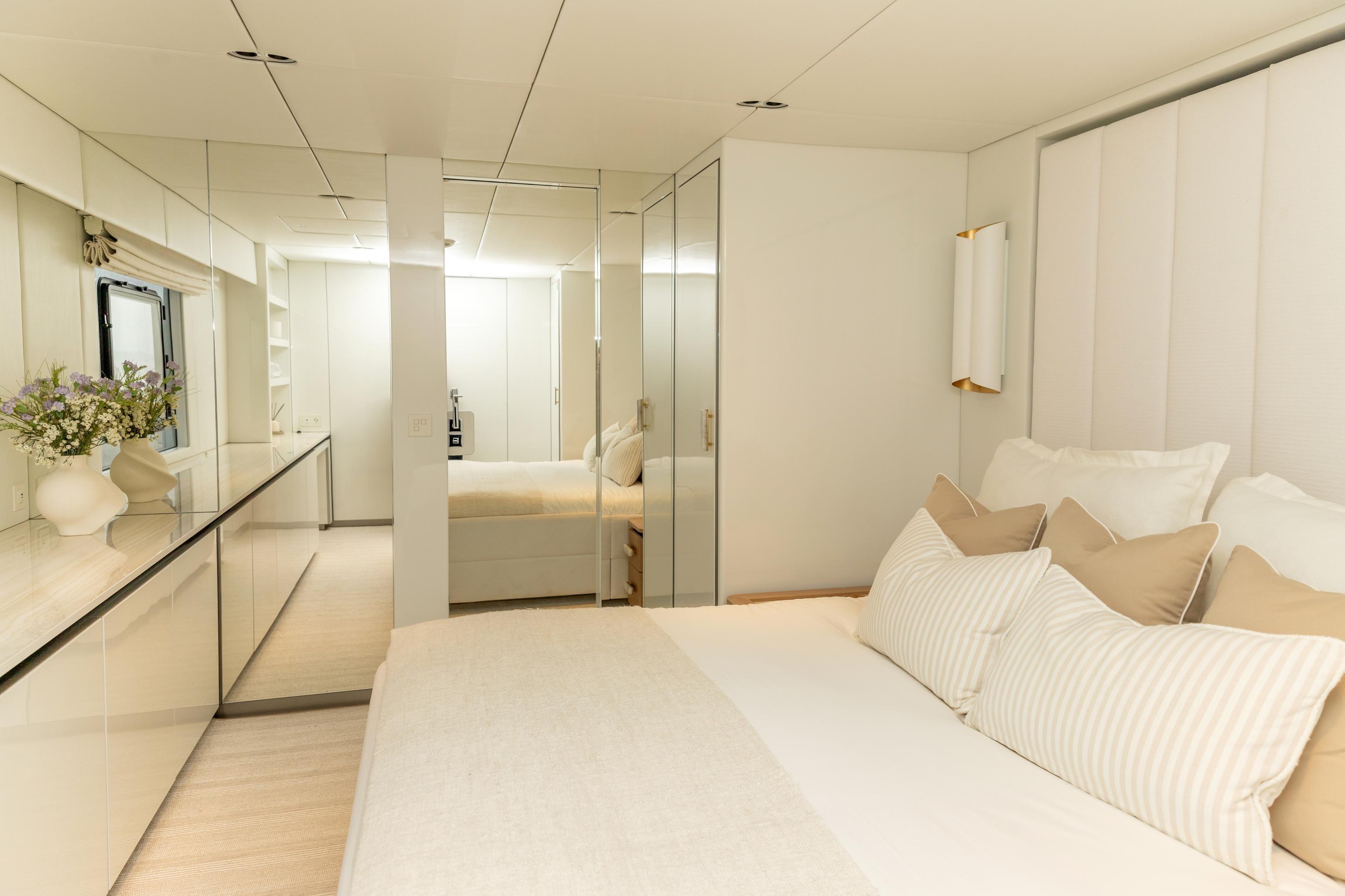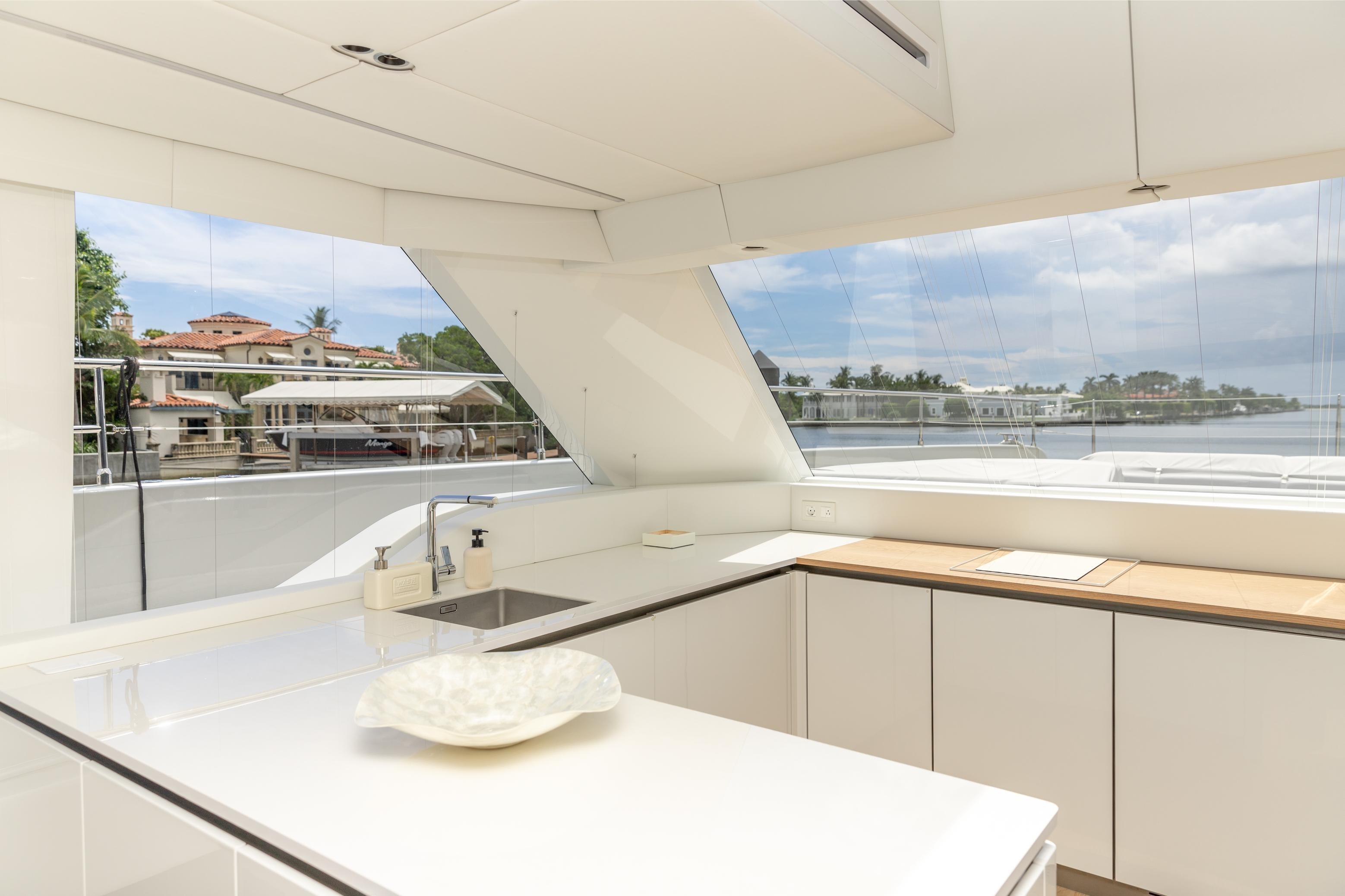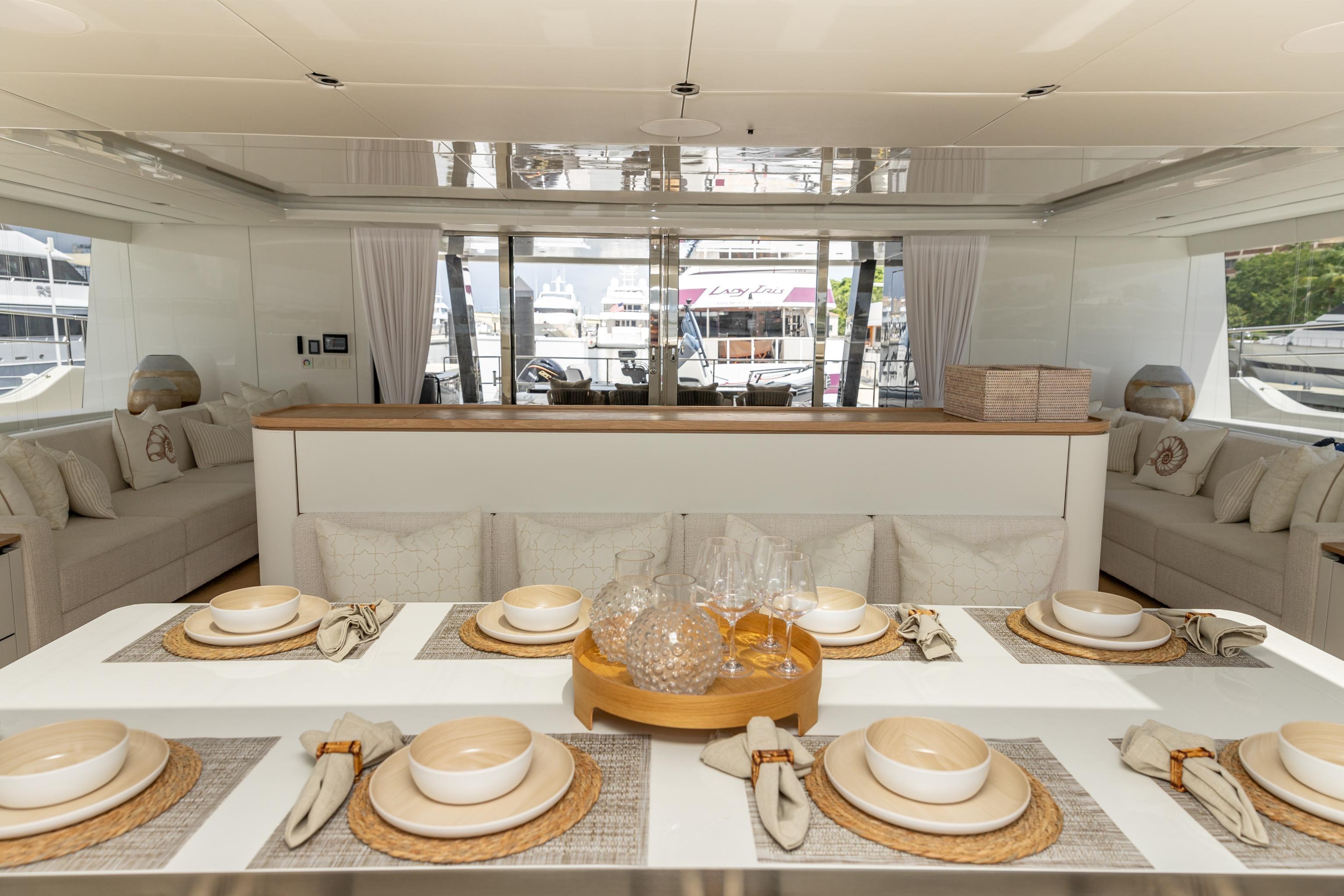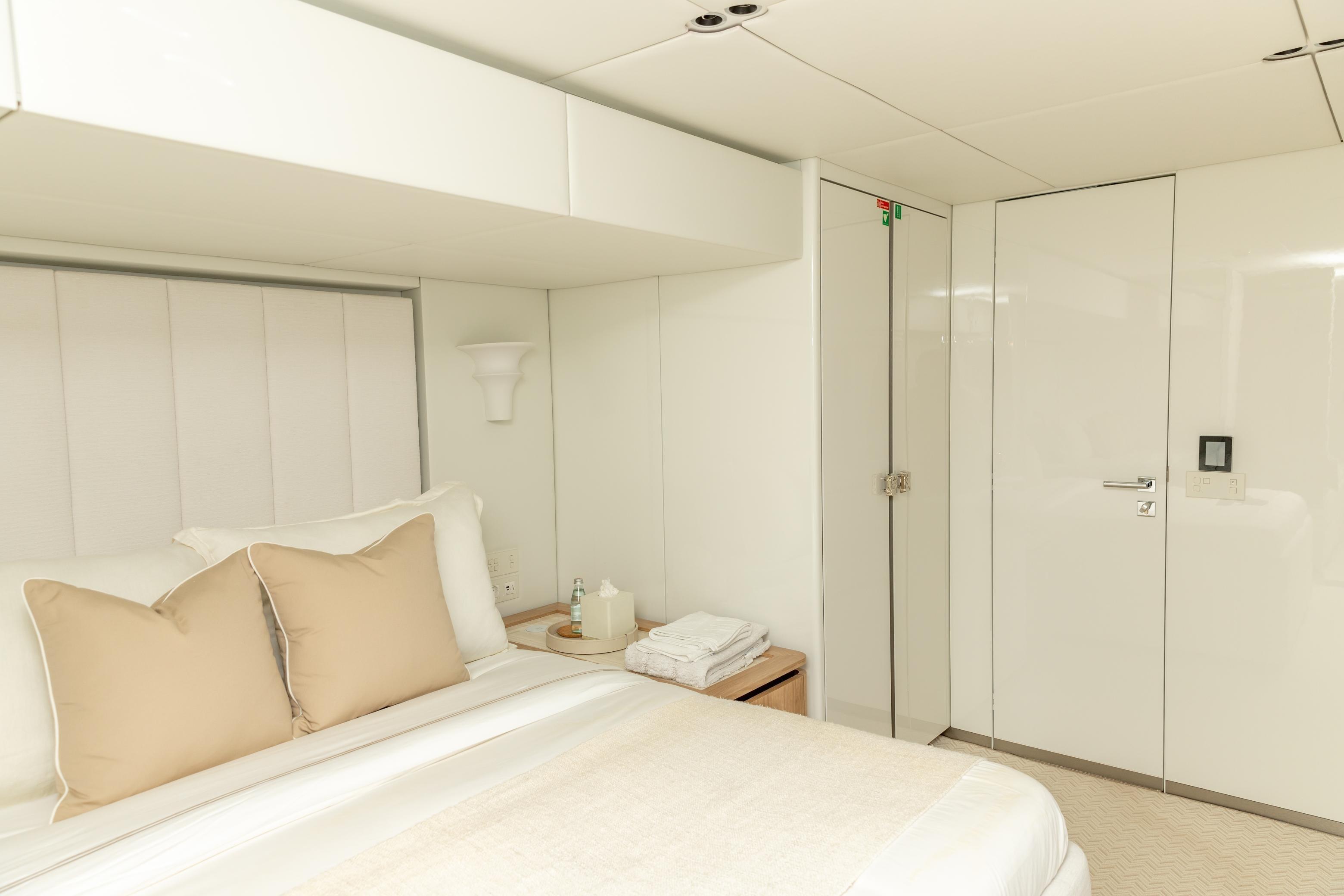 The 80 Sunreef Power is a universal multihull yacht for long cruises in ultimate comfort. Taking luxury and seaworthiness to a new dimension, this dynamic and elegant craft enters the Sunreef Yachts range, redefining the authentic power catamaran design. The yacht’s dynamic hull and superstructure stretch the living spaces to the extreme, offering infinite options for a bespoke layout and décor.With a bold, contemporary hull styling, the 80 Sunreef Power incorporates classic stainless steel portlights, teak sole decks, high bulwarks and subtle ambience lighting. Her massive garage combined with an aft platform allows the 80 Sunreef Power to take her dinghy, numerous water toys and jet-ski anywhere she goes. Easily accessed from the saloon, the yacht’s full-beam bow terrace is a vast, soothing retreat with amazing amounts of space for sunning and lounging. The 80 Sunreef Power’s immense flybridge offers enough breadth to house a spa pool, a wet bar and generous seating all around. One of the most spectacular features on board the 80 Sunreef Power is the master suite which can be set up in the bow section of the main deck. With a double bed facing the bow terrace, a bathroom with a walk-in shower, dressing and desk, the suite is bathed in sun from the skylight glazing. The same space can also be used to install a large lounge with ample seating and access to the foredeck.The main saloon opens wide onto the ample aft cockpit to combine the yacht’s interior dining space with the outdoor relaxation areas, where more seating is available along with a wet bar. The fully customizable saloon can also accommodate for a large galley, depending on the layout selected and houses an elevated interior navigation station.The immense volumes in the hulls of the 80 Sunreef Power give plenty of room to tailor every unit’s layout to the most specific requirements. The crew quarters along with the galley and crew mess can be accessed directly from the aft cockpit for more privacy on board. Multiple layout configurations are available to set up luxurious guest cabins for a supreme level of comfort on board.
