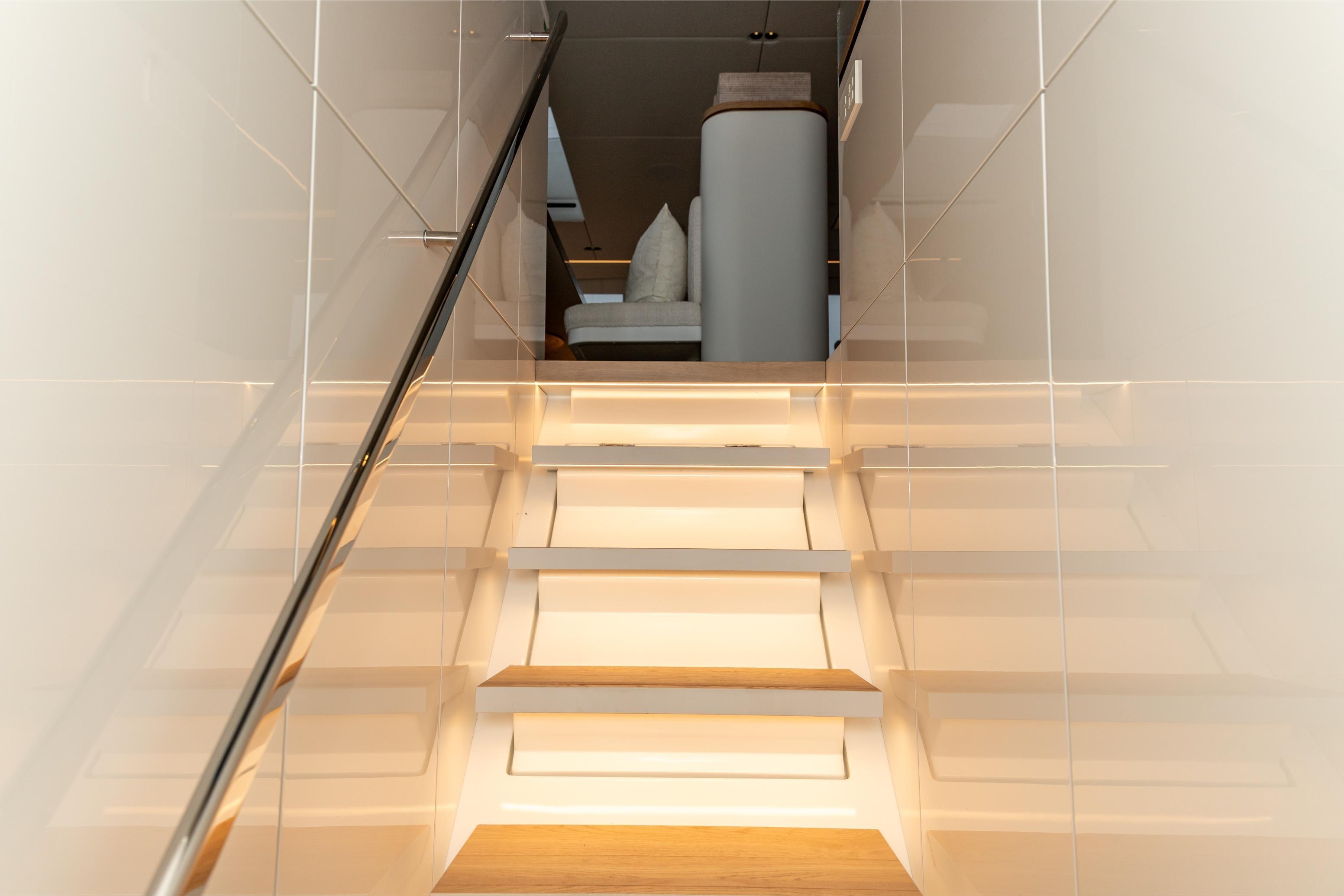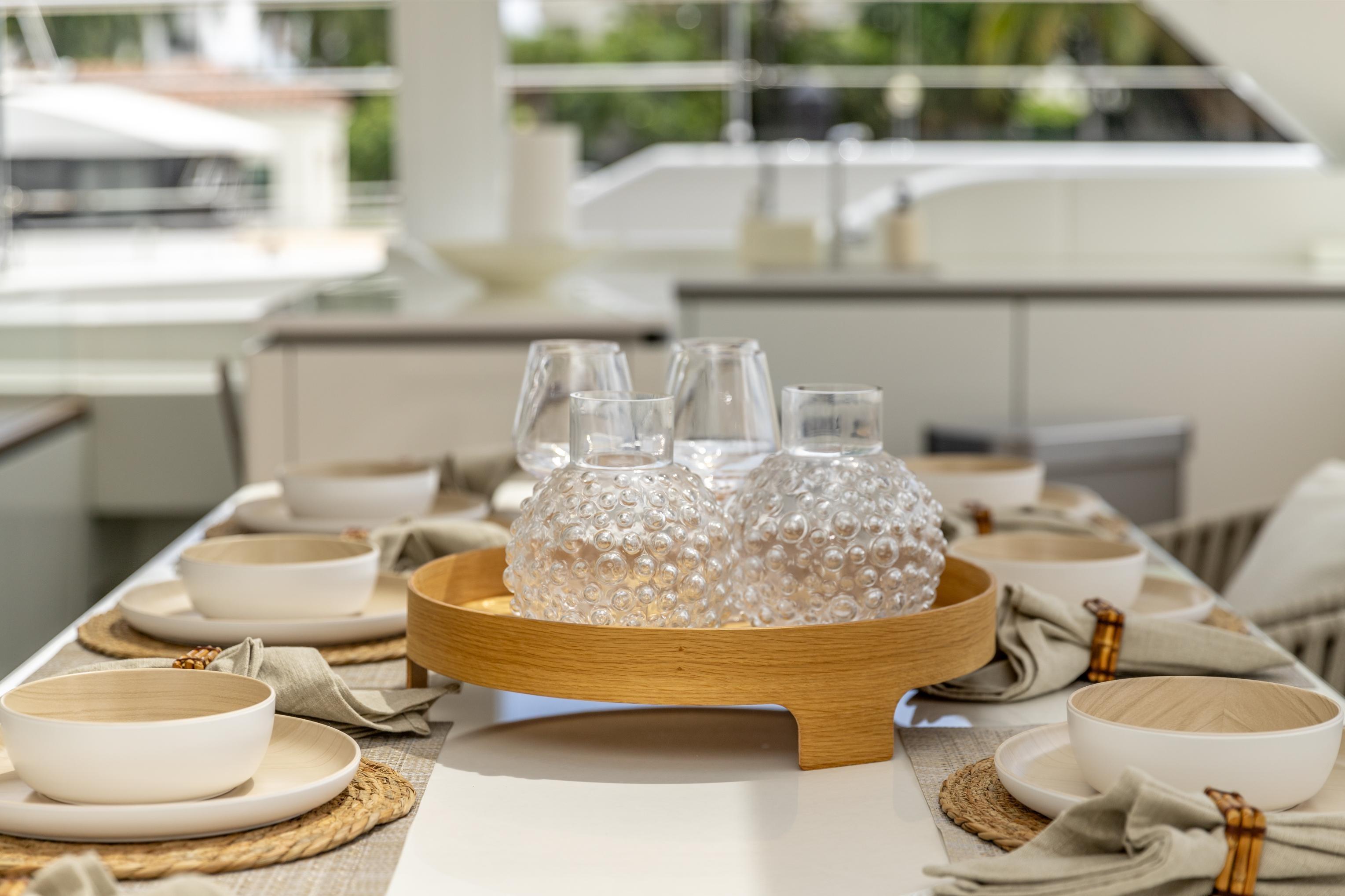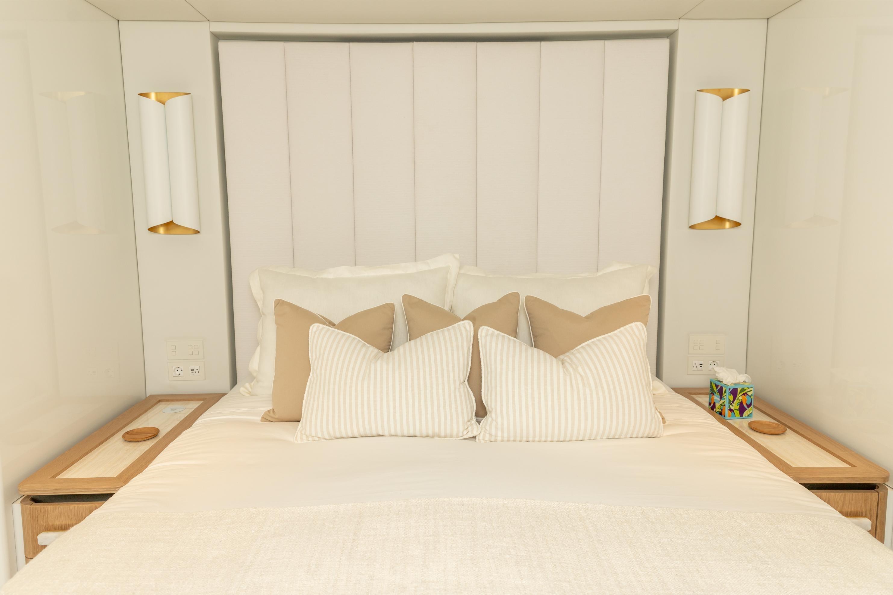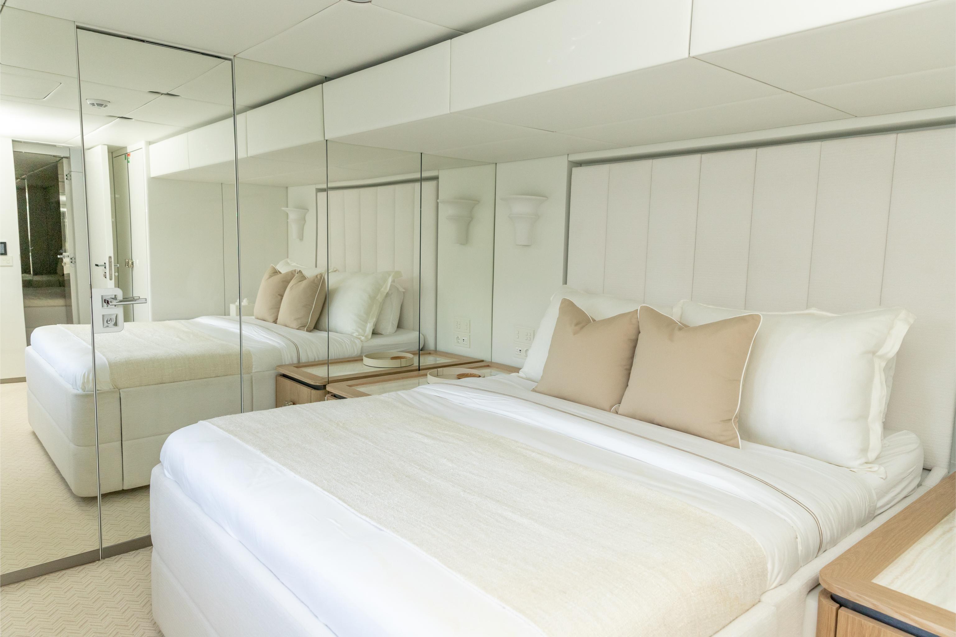 The 80 Sunreef Power is a universal multihull yacht for long cruises in ultimate comfort. Taking luxury and seaworthiness to a new dimension, this dynamic and elegant craft enters the Sunreef Yachts range, redefining the authentic power catamaran design. The yacht’s dynamic hull and superstructure stretch the living spaces to the extreme, offering infinite options for a bespoke layout and décor.With a bold, contemporary hull styling, the 80 Sunreef Power incorporates classic stainless steel portlights, teak sole decks, high bulwarks and subtle ambience lighting. Her massive garage combined with an aft platform allows the 80 Sunreef Power to take her dinghy, numerous water toys and jet-ski anywhere she goes. Easily accessed from the saloon, the yacht’s full-beam bow terrace is a vast, soothing retreat with amazing amounts of space for sunning and lounging. The 80 Sunreef Power’s immense flybridge offers enough breadth to house a spa pool, a wet bar and generous seating all around. One of the most spectacular features on board the 80 Sunreef Power is the master suite which can be set up in the bow section of the main deck. With a double bed facing the bow terrace, a bathroom with a walk-in shower, dressing and desk, the suite is bathed in sun from the skylight glazing. The same space can also be used to install a large lounge with ample seating and access to the foredeck.The main saloon opens wide onto the ample aft cockpit to combine the yacht’s interior dining space with the outdoor relaxation areas, where more seating is available along with a wet bar. The fully customizable saloon can also accommodate for a large galley, depending on the layout selected and houses an elevated interior navigation station.The immense volumes in the hulls of the 80 Sunreef Power give plenty of room to tailor every unit’s layout to the most specific requirements. The crew quarters along with the galley and crew mess can be accessed directly from the aft cockpit for more privacy on board. Multiple layout configurations are available to set up luxurious guest cabins for a supreme level of comfort on board.