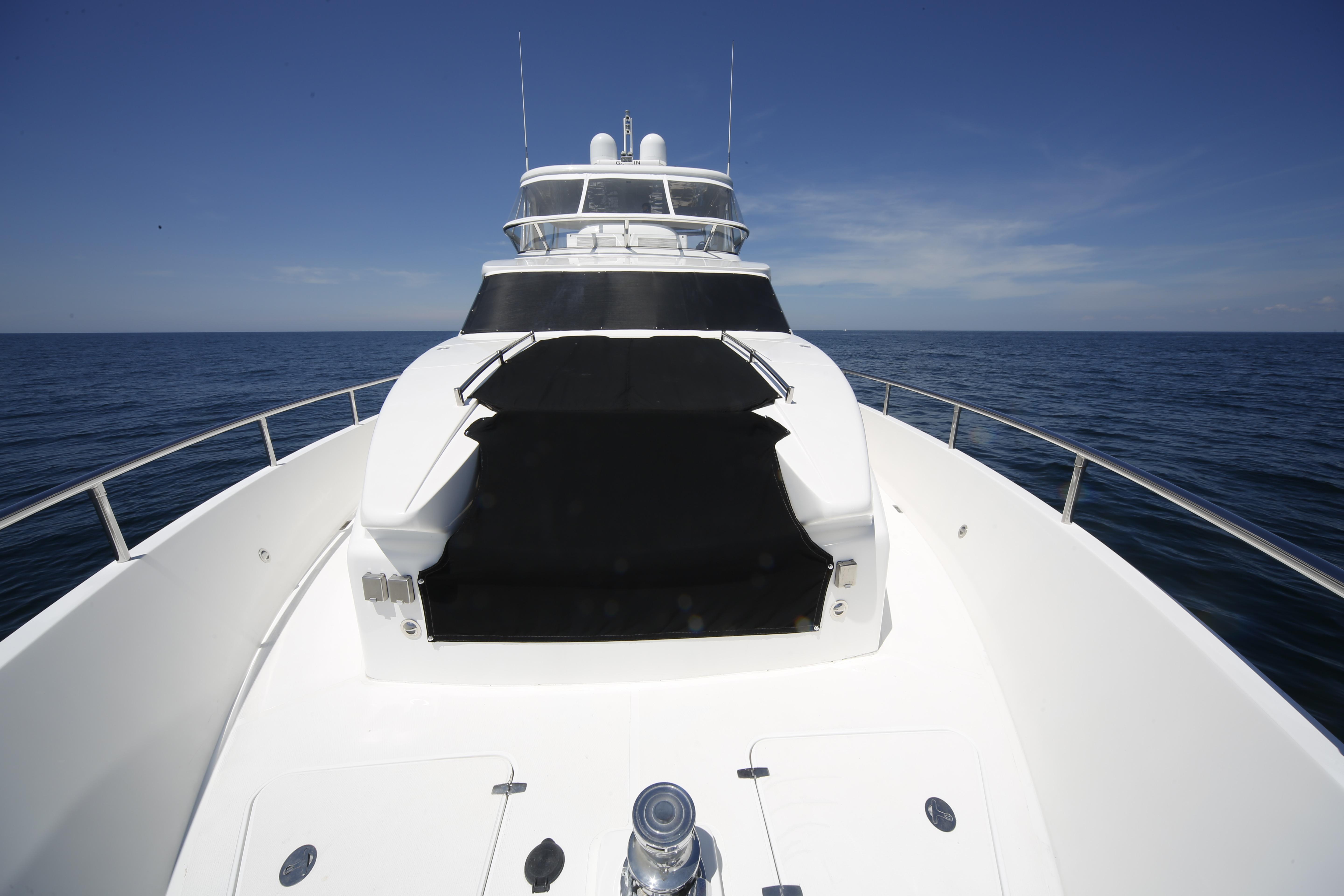 “Southern Lady” was built using Horizon's licensed SCRIMP process on the hull, deck, and superstructure for high strength and less weight. High-density coring is used both above the waterline and in the stringers. Styling is current and modern, featuring walk-around side decks and a pleasing profile.