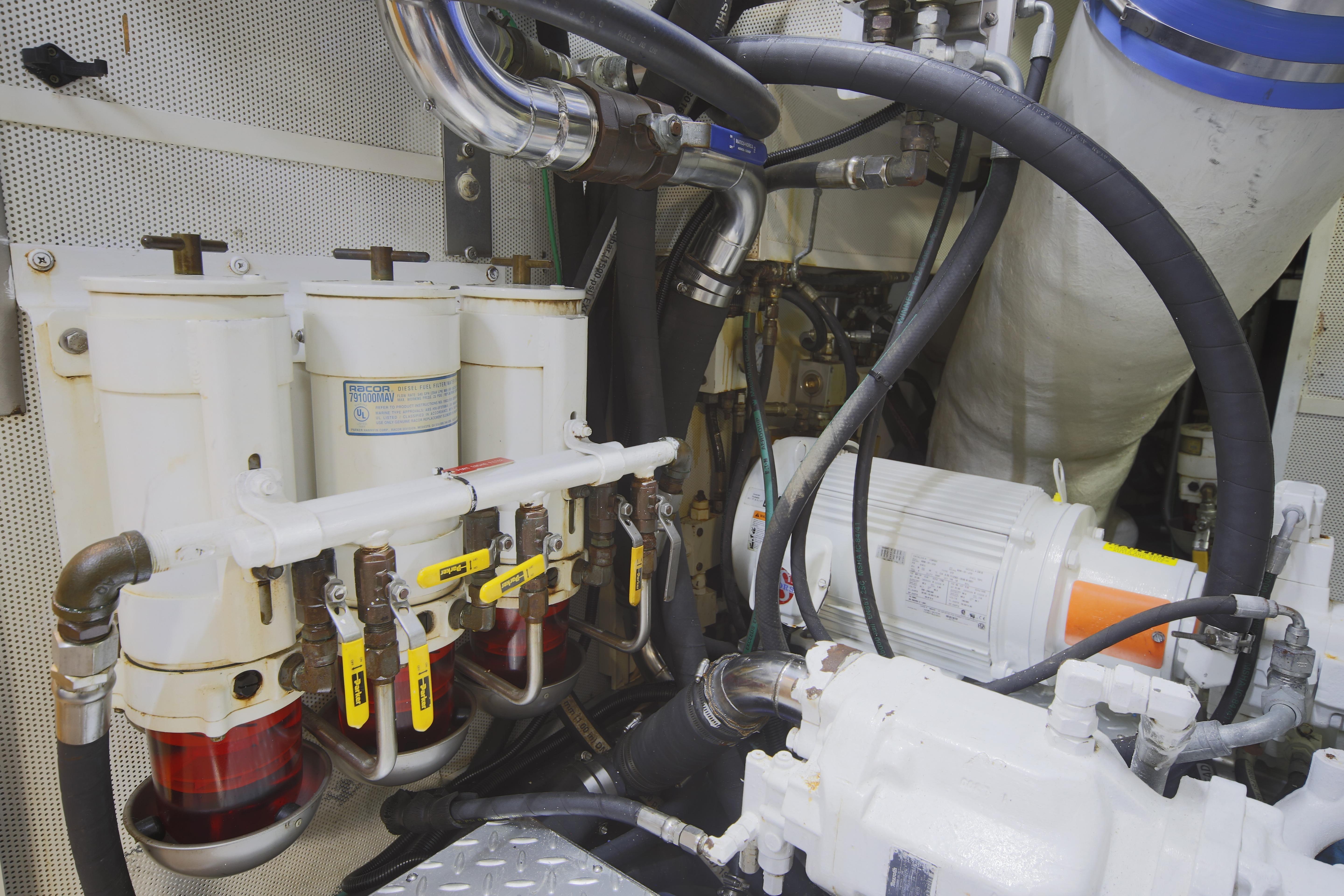 Below the sole of this cabin is the bow thruster, its hydraulic pump, a hydraulic windlass pump, and a ten-gallon water heater.