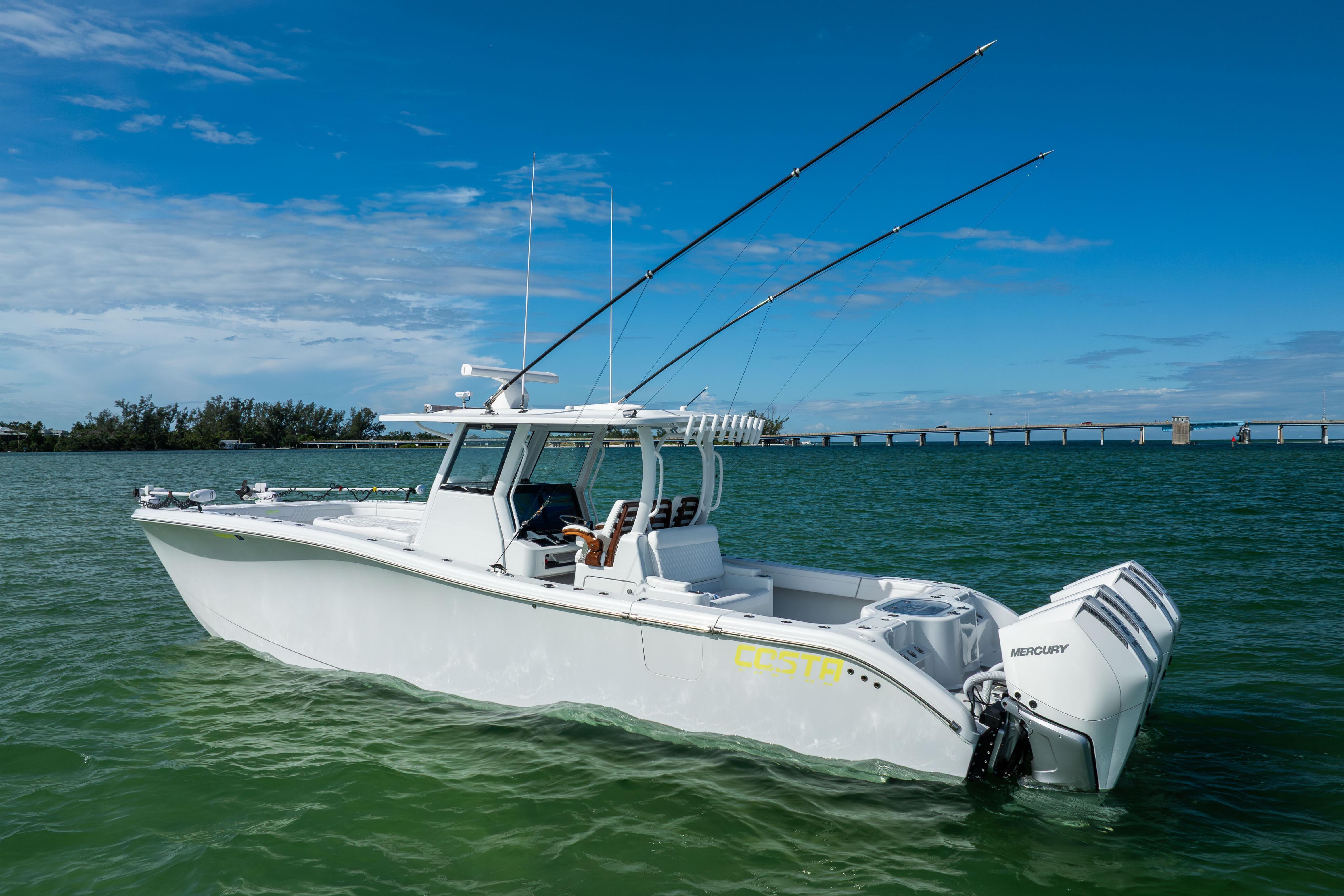 Captain Maintained Fully Loaded 2024 Costa Custom 34SV with low engine hours, full Garmin Electronics and StarLink ! Call us today to schedule a showing 2024 Costa 34 SVMercury V8 300HP w/ 200hrs with warranty Ameratrail Trailer Triple Axel Electronics: (2) 8624 Garmin GPS Chartplotter Transducer - Airmar SS 175H-W 150-250 kHZGarmin GXM54 Open Array Radar(2) Garmin GHS 11 VHF Garmin camera facing aft under hard top Mercury engine display screen Mercury Joystick with electric steering, autopilot/SkyhookNight Track Night Vision Camera Black oak Light Bar(4) LED Spreader lights (Forward, Aft, Port, Starboard) Starlink(2) Rohdan 96” Trolling Motors with charger (2) Minn Kota MK 460PCL on board battery charger LED Under Gunnel Lights LED Under Hard Top lights LED Underwater LightsJL Audio Stereo System JL Audio AMPS(1) XDM800/8(1) XDM400/4 (1) XDM600/6(2) XDM600/1(6) hard top speakers (8) under gunnel speakers (4) sub woofer speakers (6) Under Gunnel Reel Plugs Hubble 30A 28VDC (8) Odyssey Extreme batteries ODX-AGM34M Zipwake tabs Other Options: (3) Release Marine Helm seats w/ Arm restsBlackstick aft shade Boat cover for console/coffinbox/ helm seats Transom back rest and seat cushion over live wellCustom portable transom filet tableChiller plate in forward coffin box. Frigibar Refrigeration systems/Polar Cub with “Full gauge” display screen in console White Powdercoat Isinglass Side Wings Gemlux Outrigger Bases w/ Carbon fiber Poles Helm pad Seadek inside console Seadek pad on transom platform Transom Live well (90Gal)In Floor Live wells (2x 50gal) (4) giant fish boxes Electric pump out head in console (13 Gal to tank pump out or Transom discharge) Custom ladder between engines Transom door ladder (34) Rod holders gunnel/transom (9) Rod Holders in hard top (2) Mezzanine cup holder/rod holders (6) gunnel cup holders(4) helm cup holders (2) forward lounge cup holders (2) Fresh water tanks 25/Gal each (4) Bait well pumps with (2) Hooker pump sea chest (6) Bilge pumps (2) Macerator pumps port/starboard (2) Reverso fresh water flush inlets port/starboard
