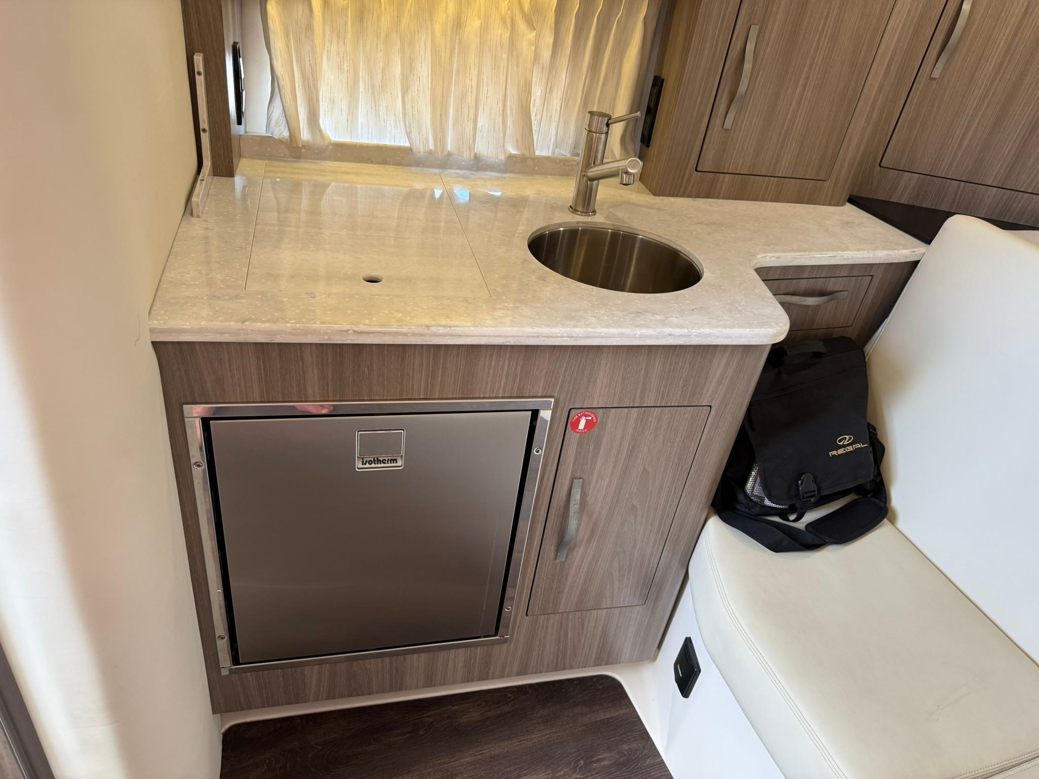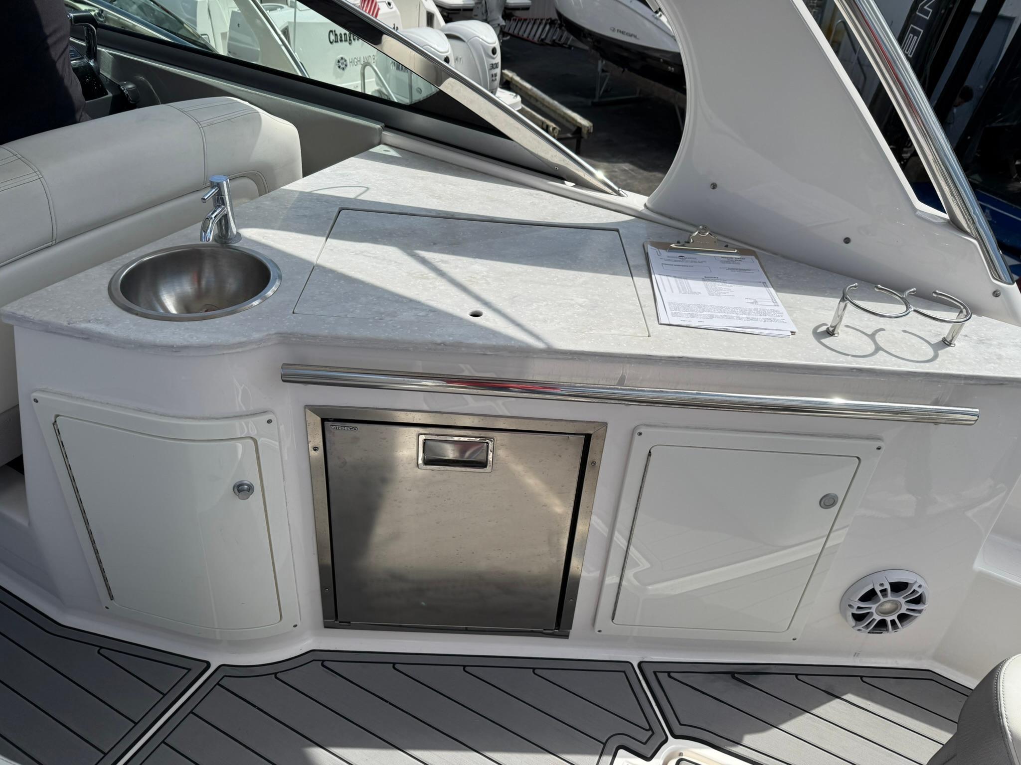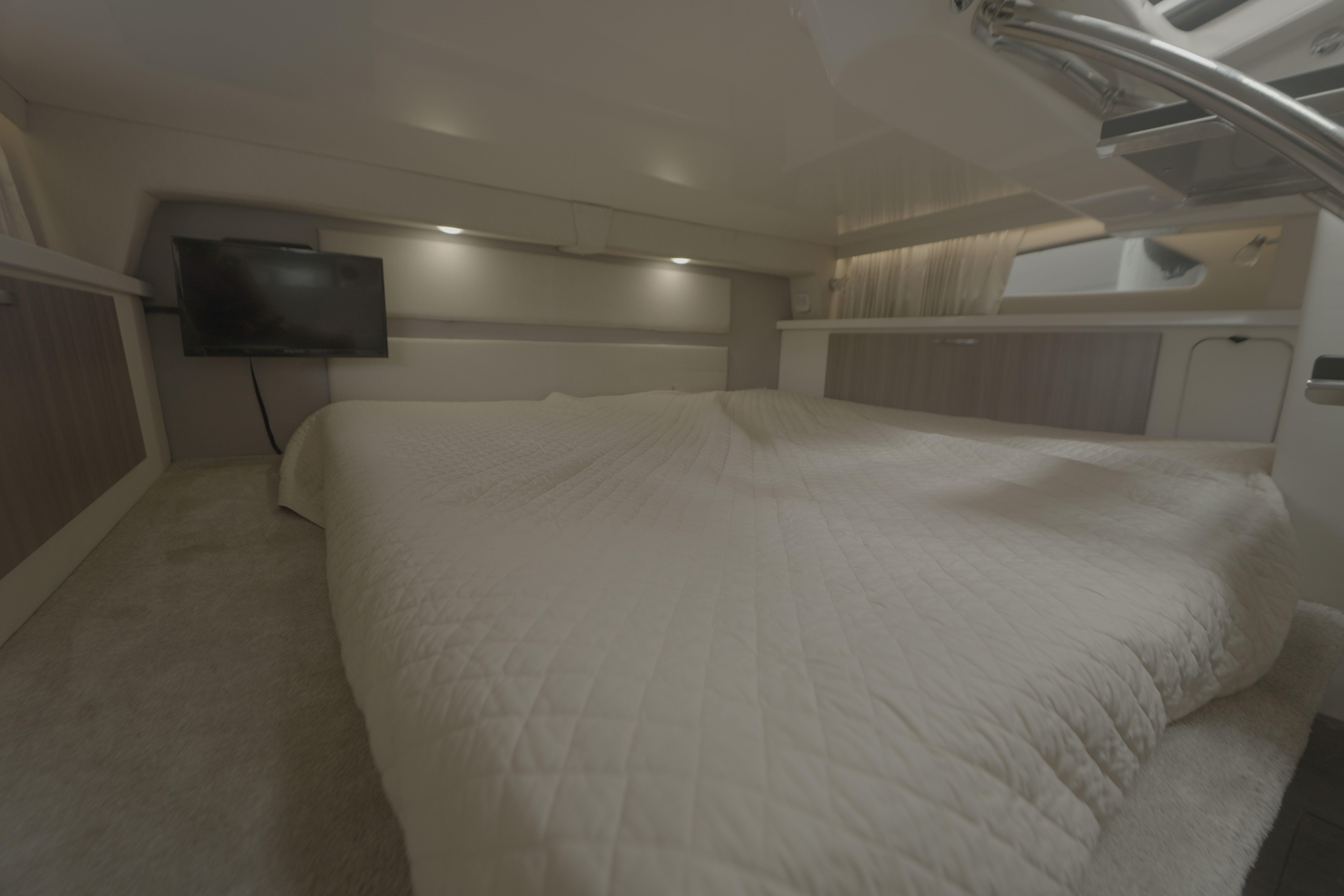 Joystick, bow-thruster, generator, hardtop with electric Sureshade, 16,000 BTU AC, 3 TV's, never used galley, never slept in berths. Cruise at 37mph at 1.34 mpg or light things up at 49 mph, still getting .95 mpg with her bulletproof twin 300 Yamaha motor's!
