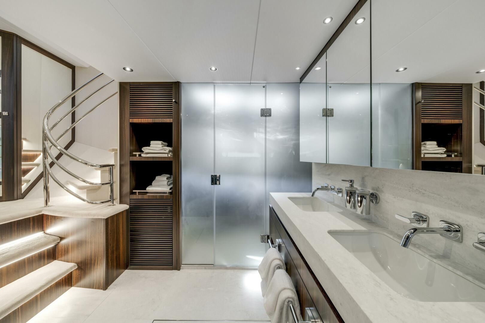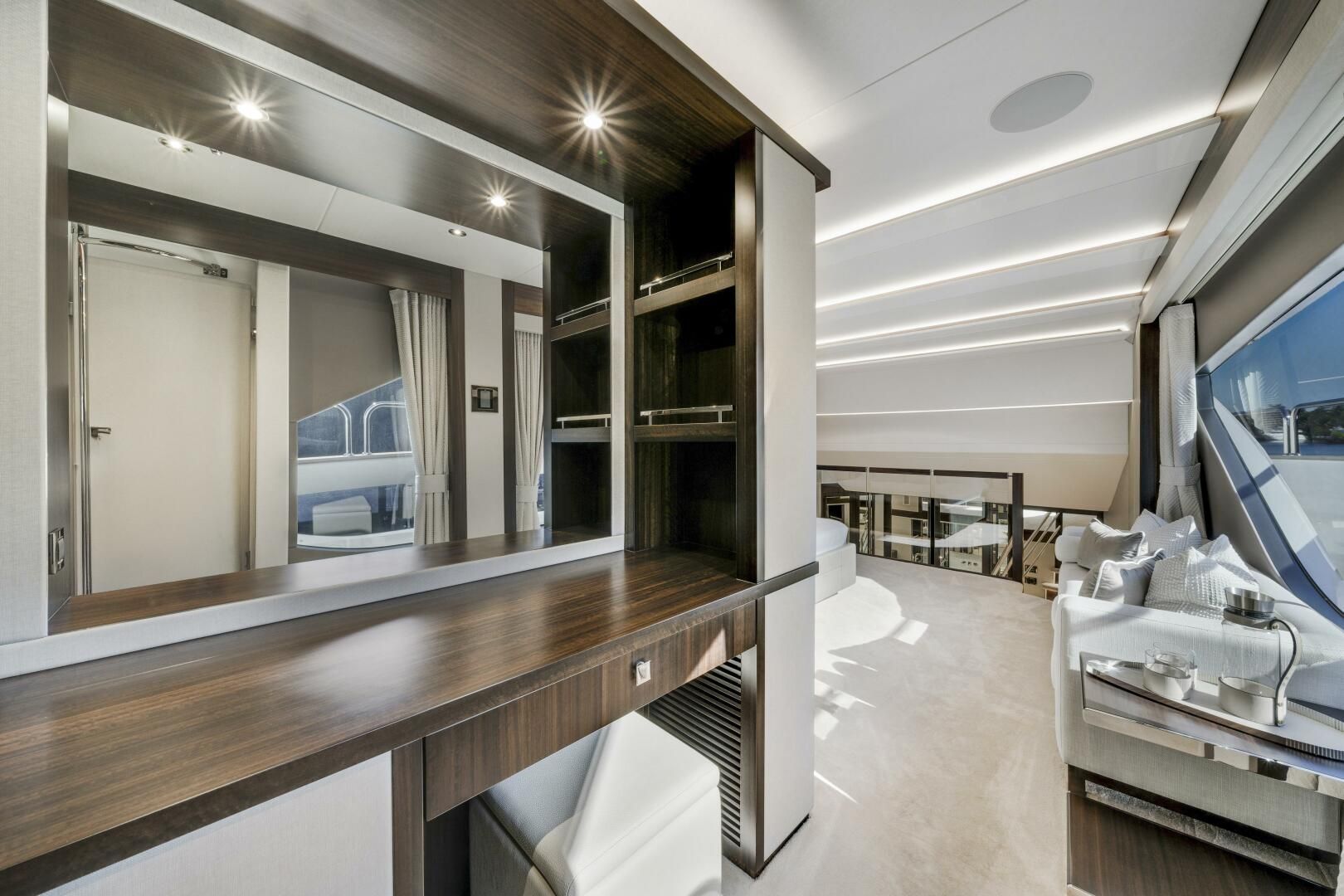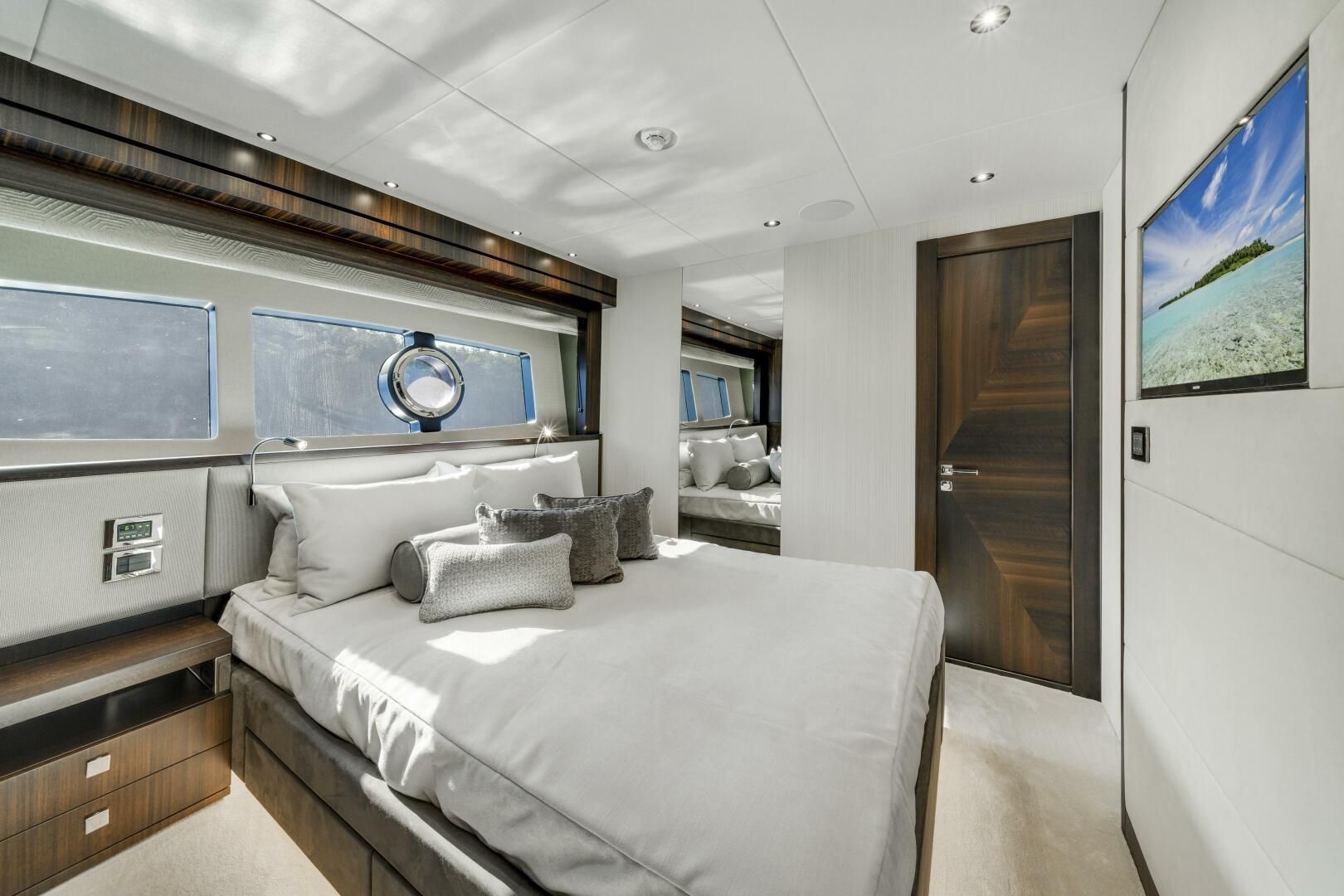 - Master cabin bedside tables to be same style as 90 Ocean Master cabin units in lieu of standard. Leather wrap Stolz - Atlas A763 leather