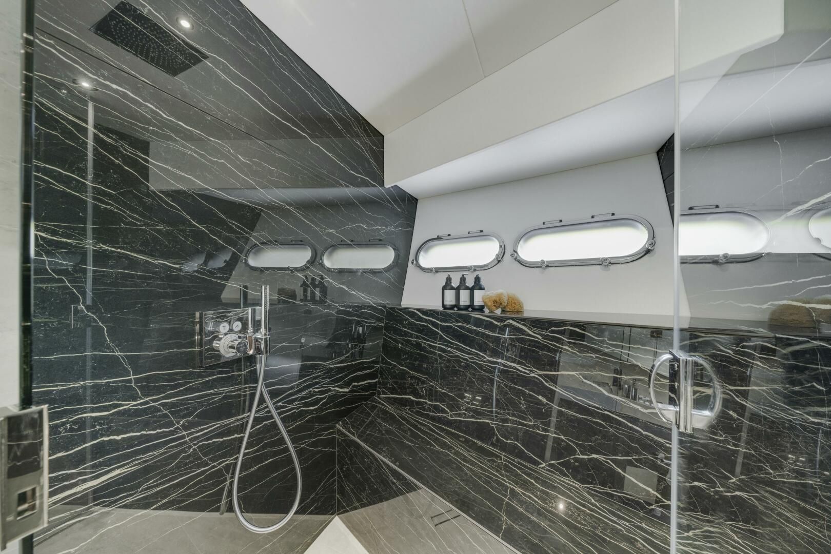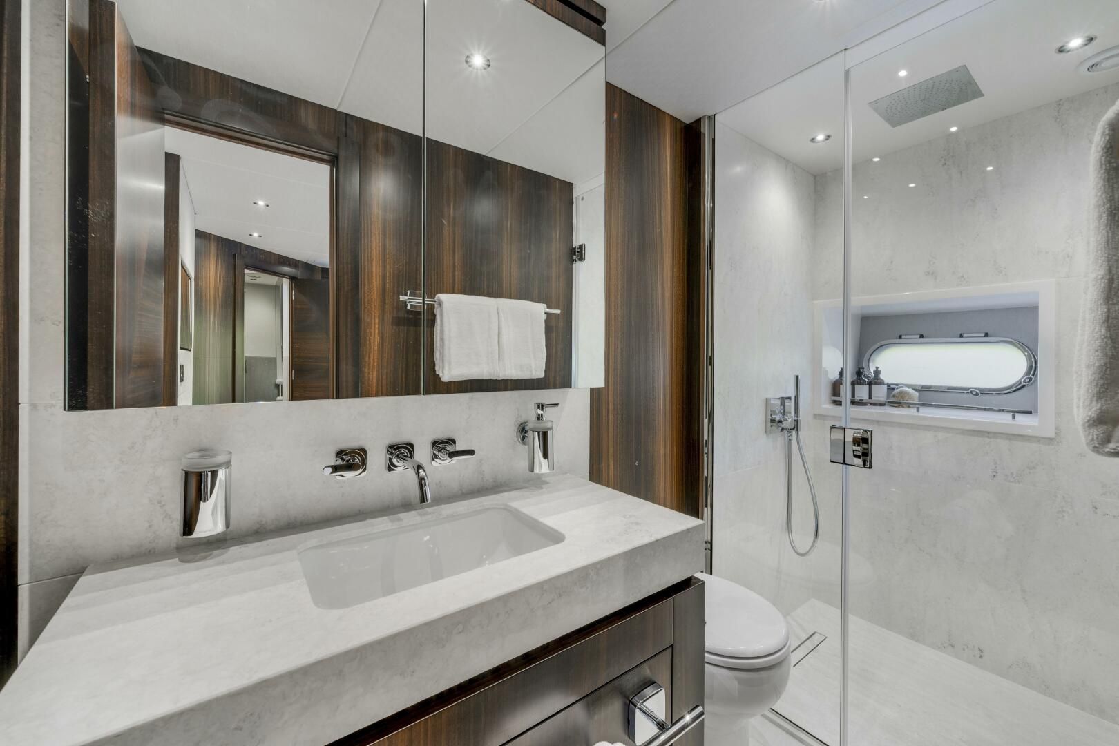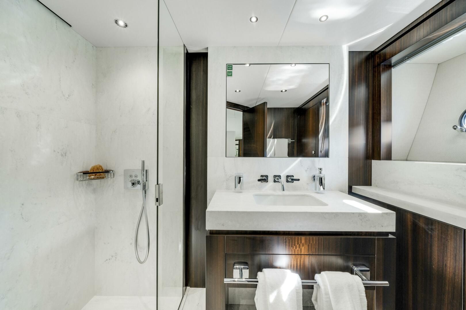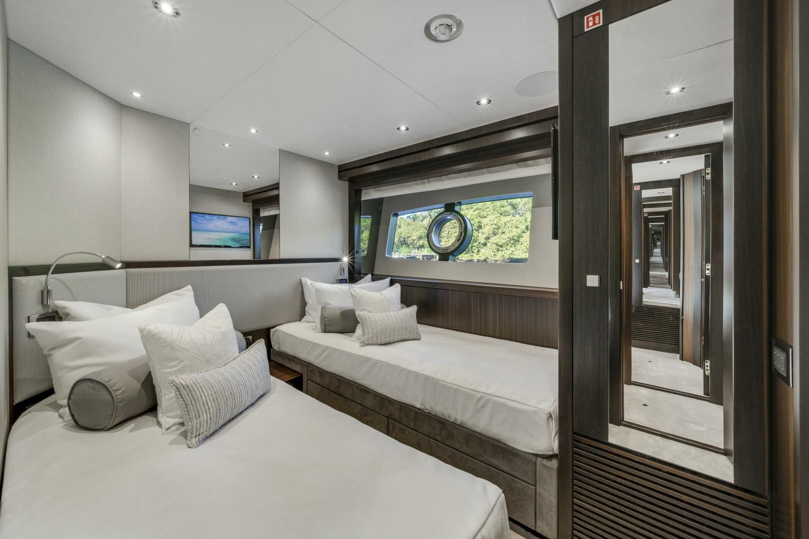 - Master cabin bedside tables to be same style as 90 Ocean Master cabin units in lieu of standard. Leather wrap Stolz - Atlas A763 leather