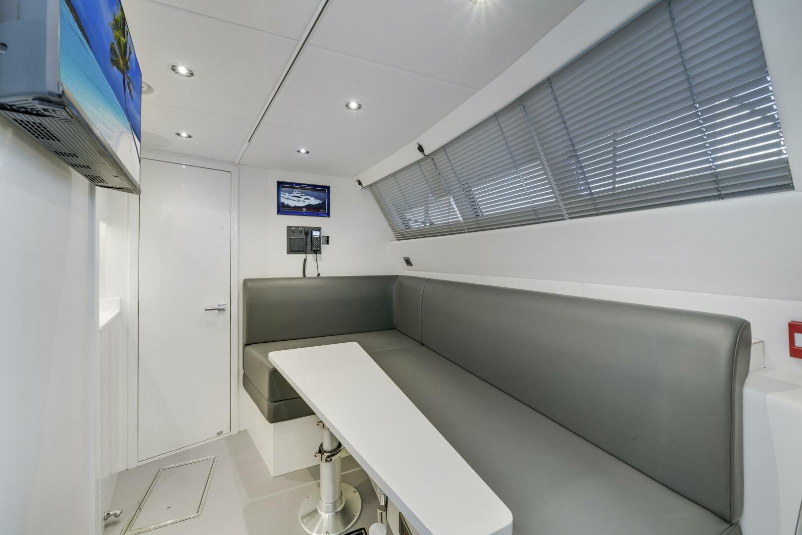 - Opti Grey mirrored window reveals to saloon and Dining and all guest cabins (except Master)