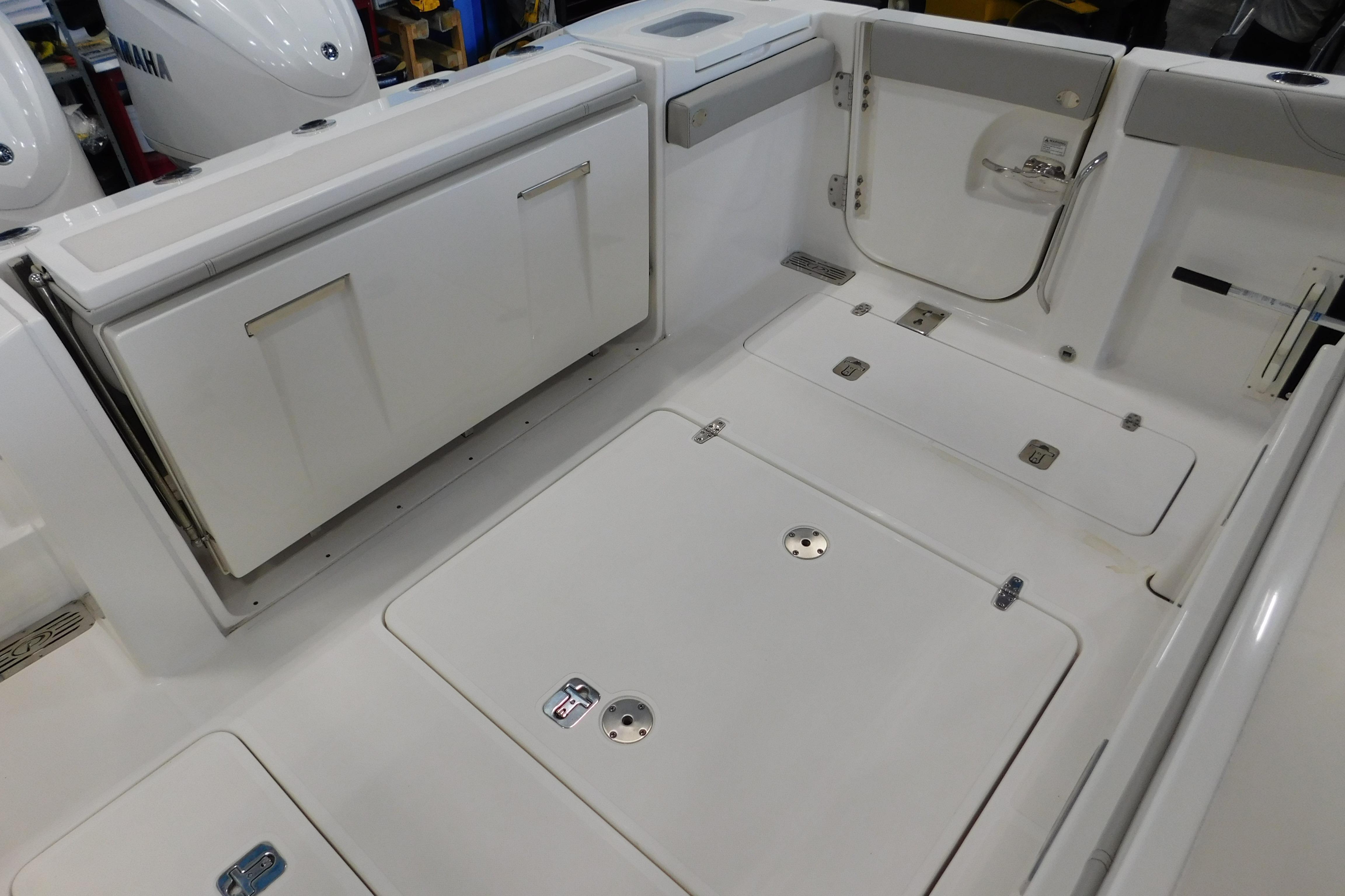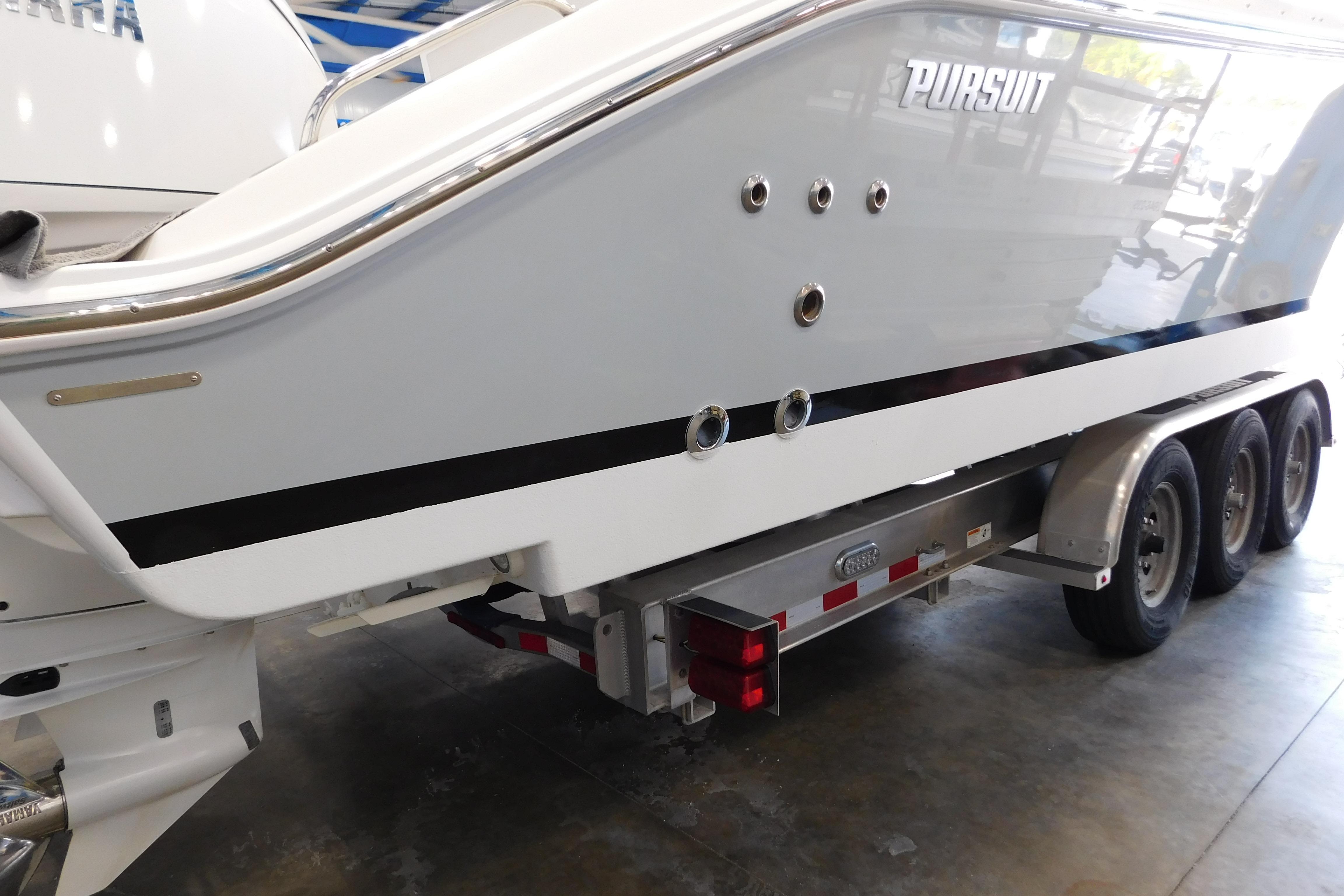 Brand New To The Market - Specs, Pictures & video In Development. "Three Point O.H." is one of the best equipped S-328's on the market today. She has all the major options including, diesel generator, air conditioning, electric cockpit shade, bow shade, Helm Master joystick system with autopilot, radar, spotlight and FLIR night vision camera. All of this in a package with only 200 hours on the fully digital white Yamaha F300 motors. If you are looking for a fully optioned S-328, in fantastic condition, this is your boat!The Pursuit S 328 broadens the range of the Pursuit’s popular Sport Series. The athletic 32 features an oversized fiberglass integrated hardtop and windshield system, updated classic sheerline, through-stem anchor system and integrated transom extensions. The exterior styling is complimented by a forward wrap-around lounge at the bow, just opposite of the forward facing seating in the console.Below, a two-person berth converts to an aft facing seat with large open storage areas port and starboard. A head and sink with vanity could let you overnight and freshen up for a dinner shore side. The aft cockpit accommodates serious fishing and with the fold away fore and aft seats quickly converts to a social area at the dock.