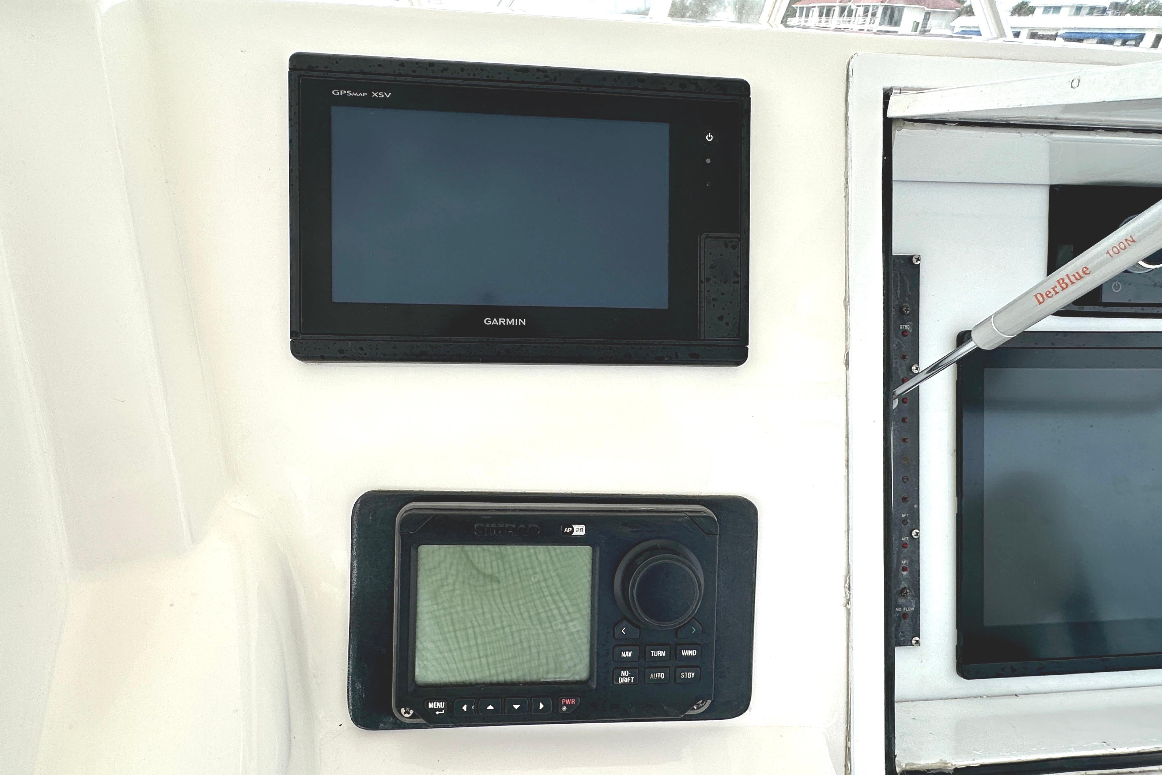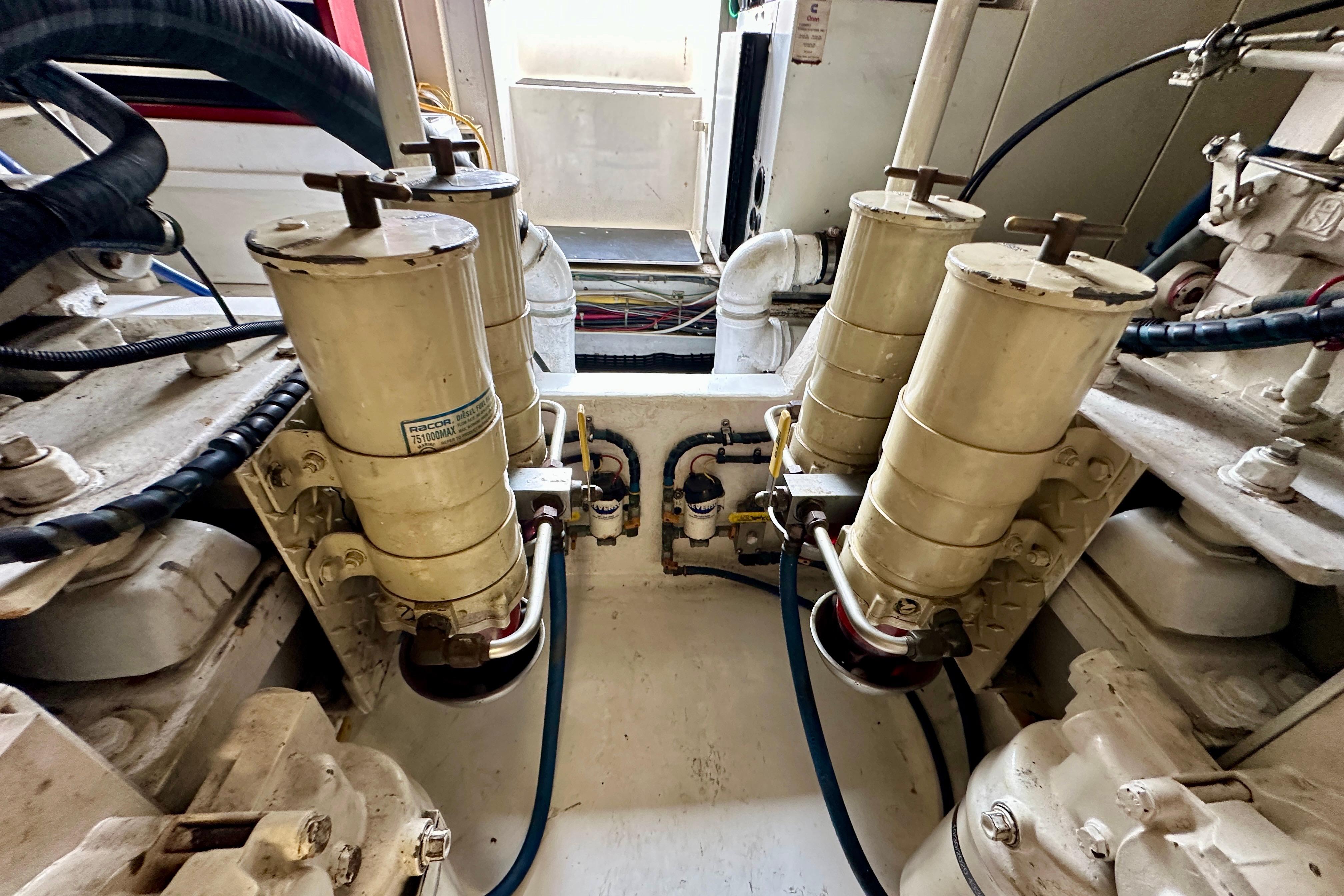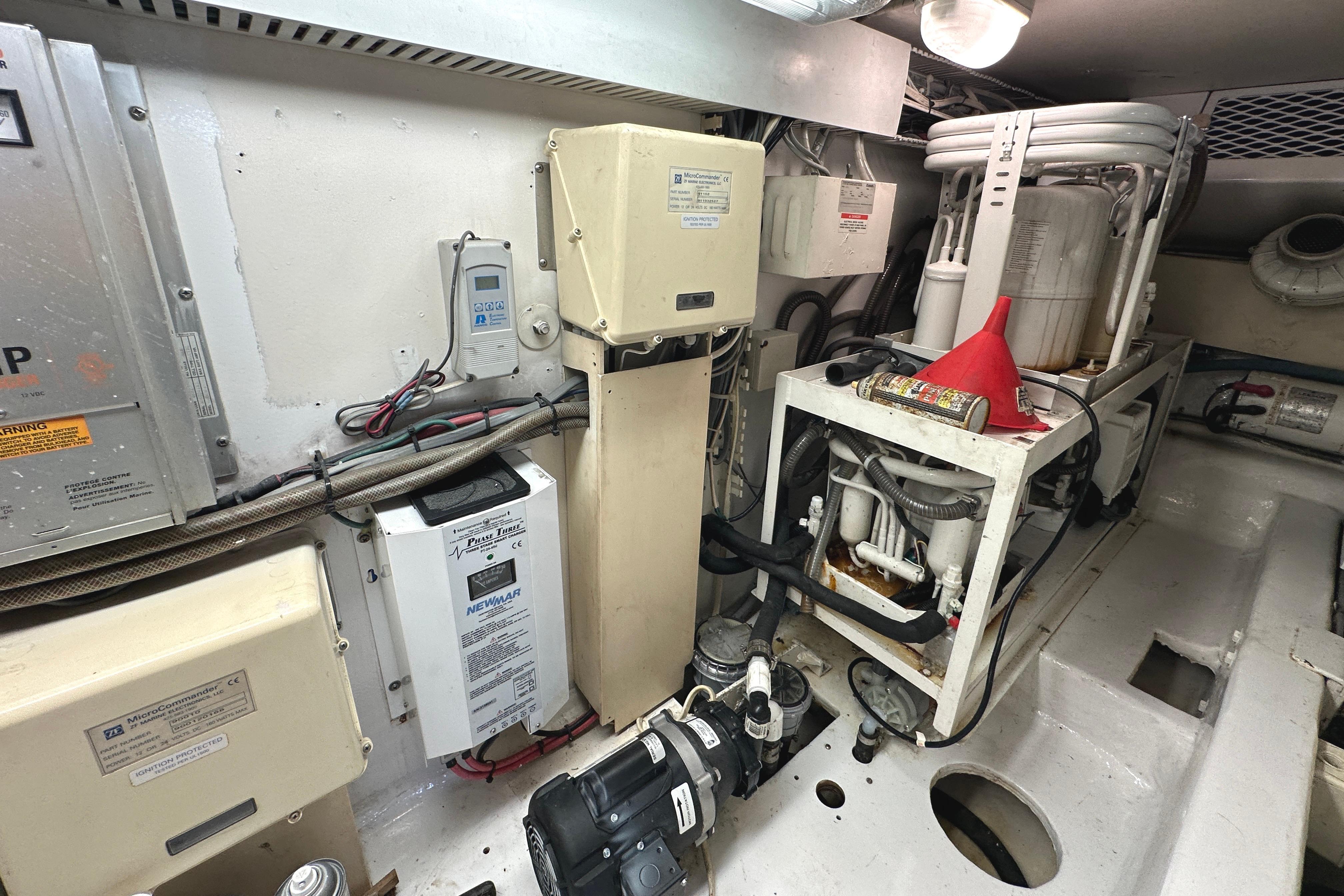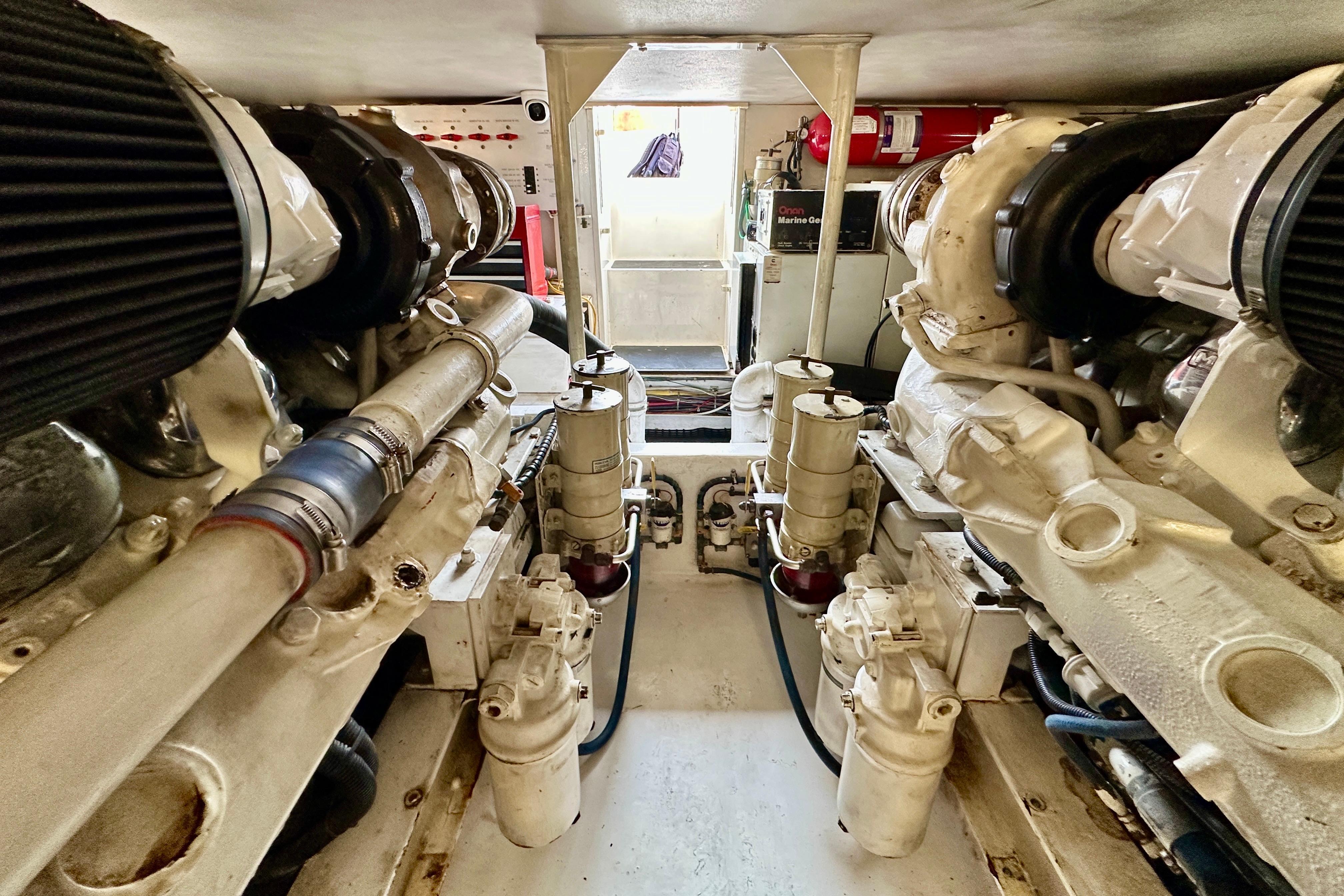 The 50' Viking Convertible features a spacious and functional 3-stateroom, 2 head, galley up layout. The VIP guest stateroom is all the way forward with over and under berths. The guest head is just aft with electric Vacuflush head, stall shower and Corian countertop and sink. The washer and dryer stacked units are located in the companionway just ahead of the 3rd stateroom. Located to port, the guest stateroom has over and under berths, hanging locker, and storage drawers. Across to starboard is the master stateroom which is located amidship and features a walk-around queen berth. There is an ensuite private head with stall shower, Vacuflush head, & Corian countertops. Going up 3 steps will bring you into the galley which features updated stainless Vitrifrigo refrigerator/freezer drawers, a microwave/convection oven, & granite countertops. The salon features an L-shaped settee with storage below, new OLED TV, and entertainment system with Starlink.