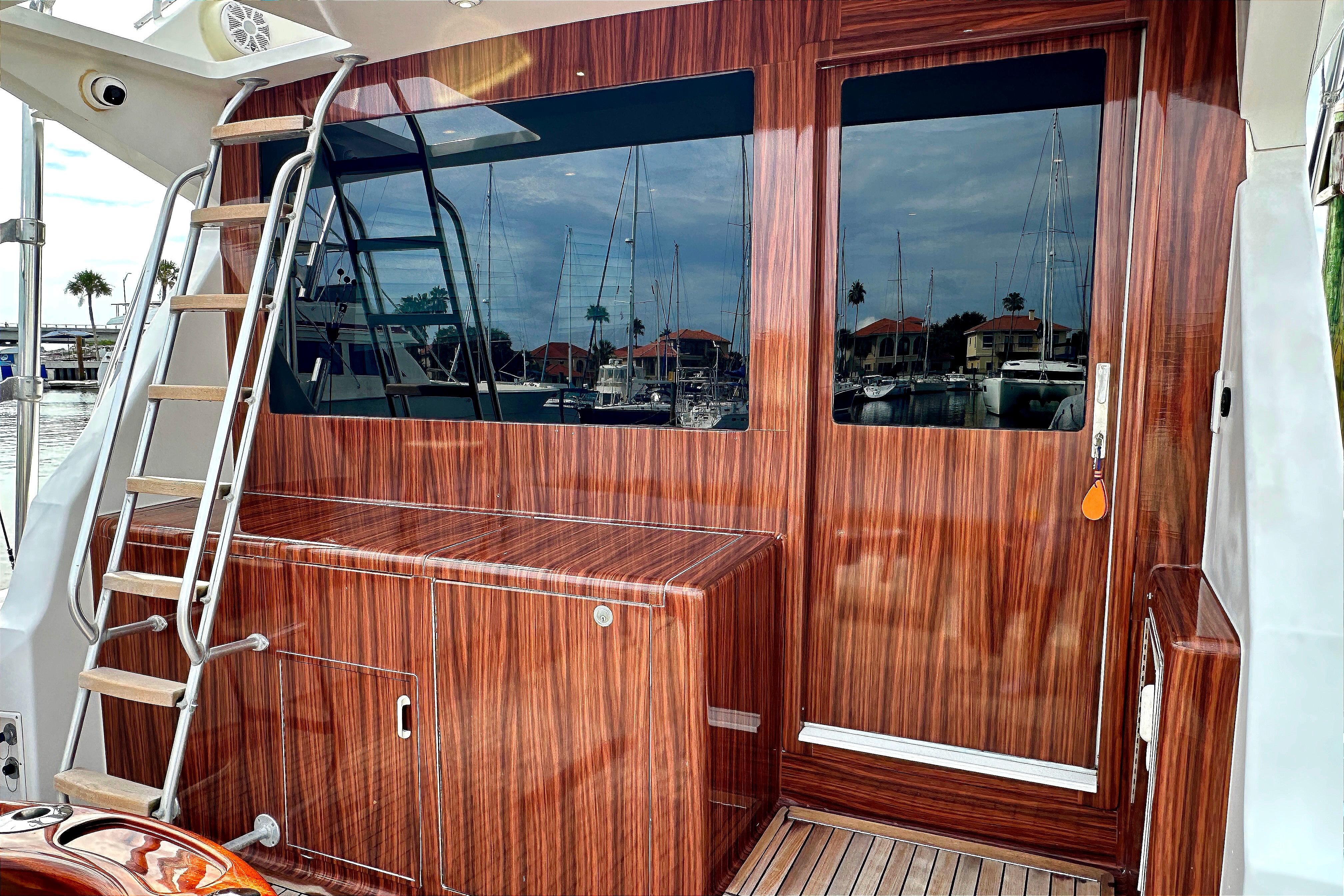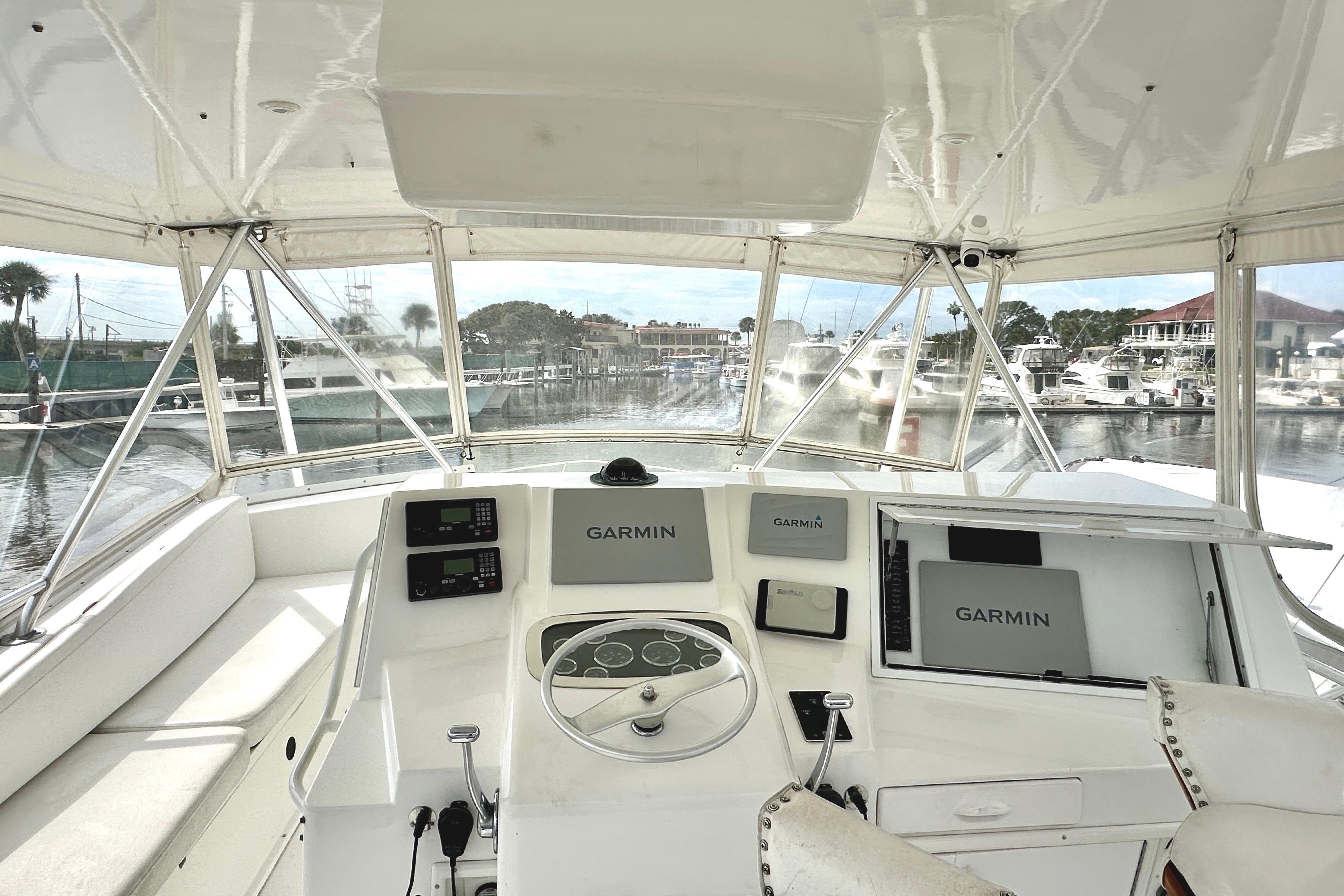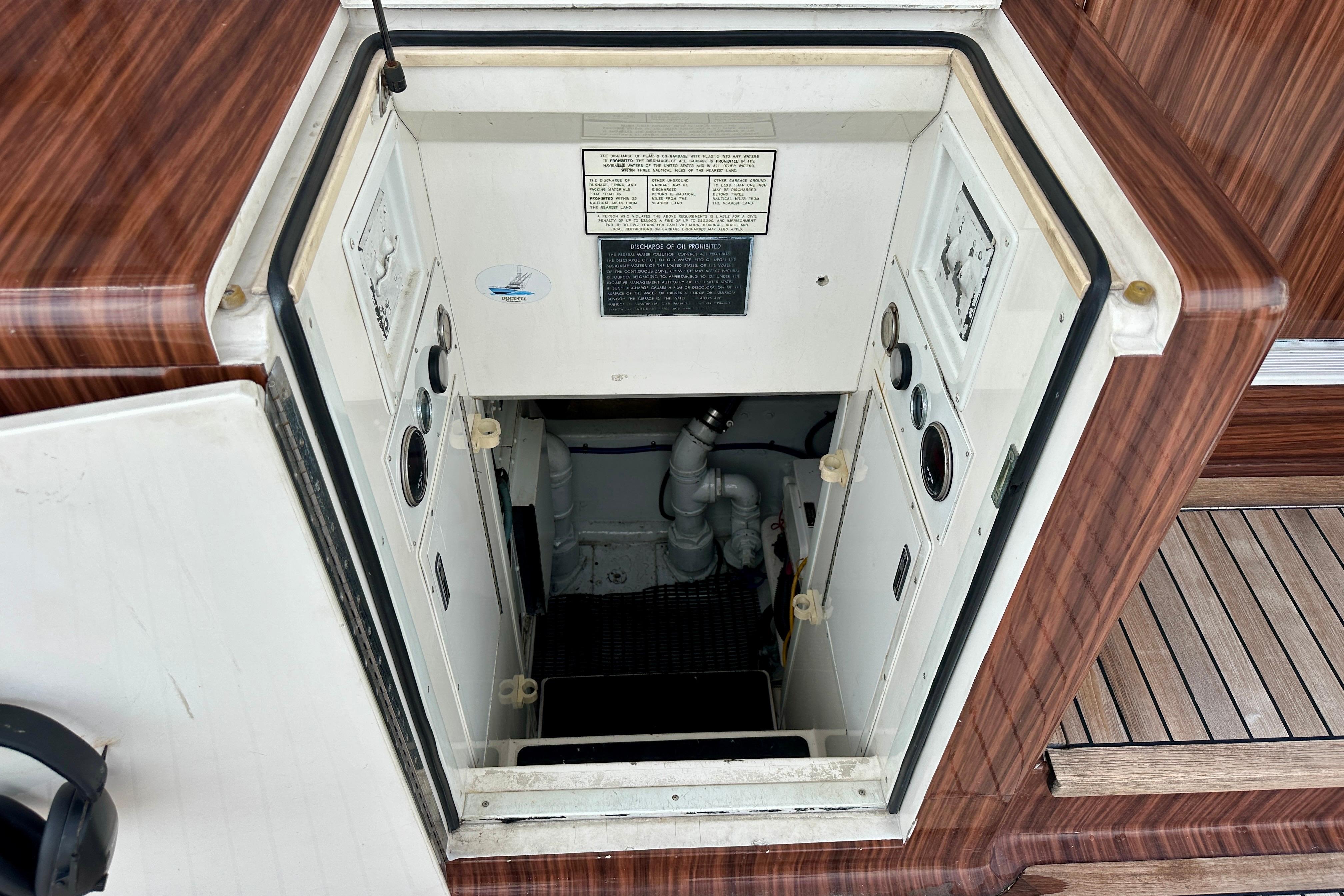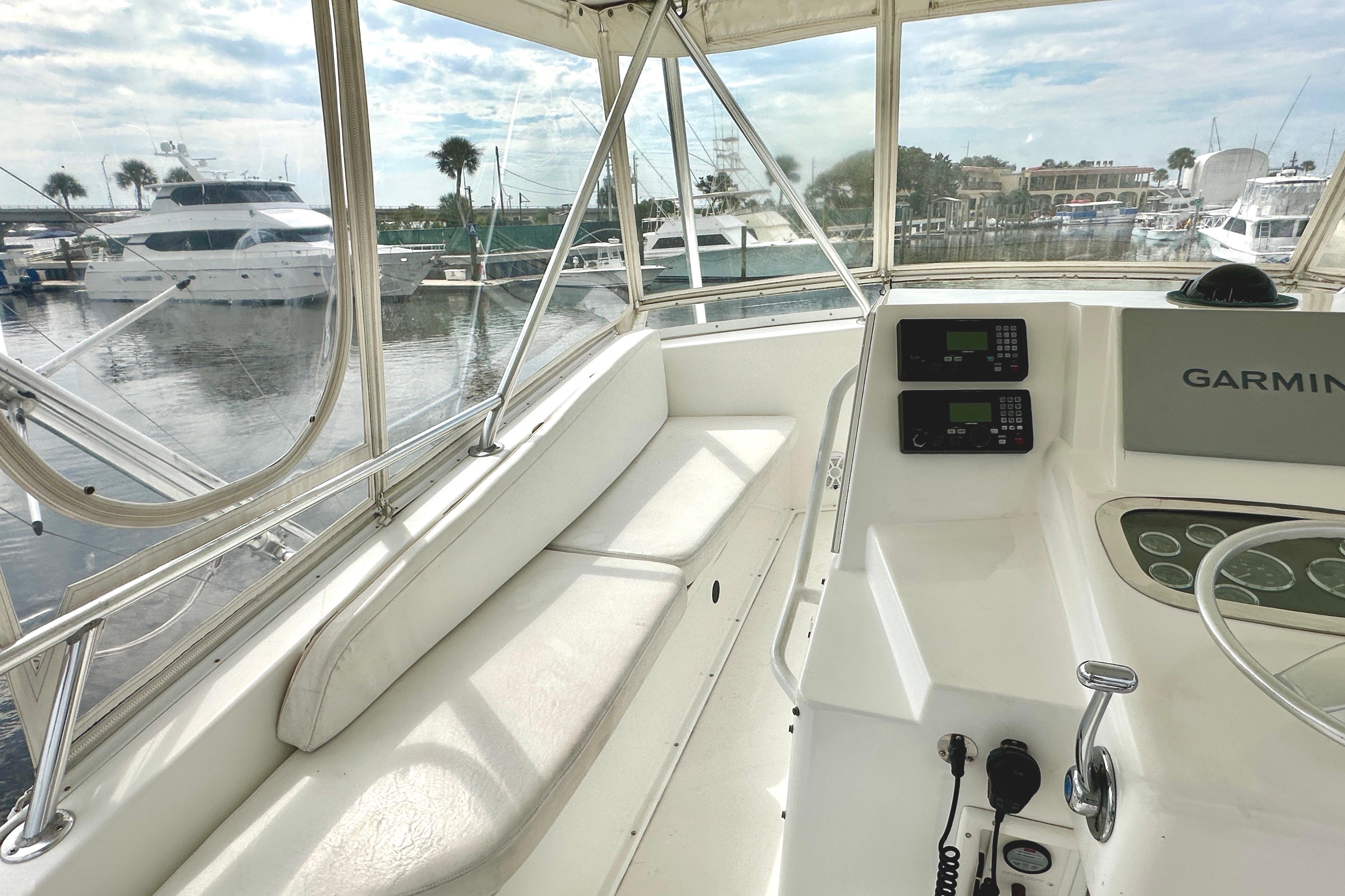 "Dock Fee" is a three stateroom, two head, 50 Convertible, with a factory tower and "Sky Blue" painted hull. One of the rare 50's built with 1200hp MANs, this boat absolutely flies! Updated Garmin electronics, many house and galley updates, entertainment upgrades like OLED tvs and Star Link. Her teak cockpit, and covering boards were redone a few years back and are great shape, and to top it off, a gorgeous Mariteak battle saddle adds to the eye candy.