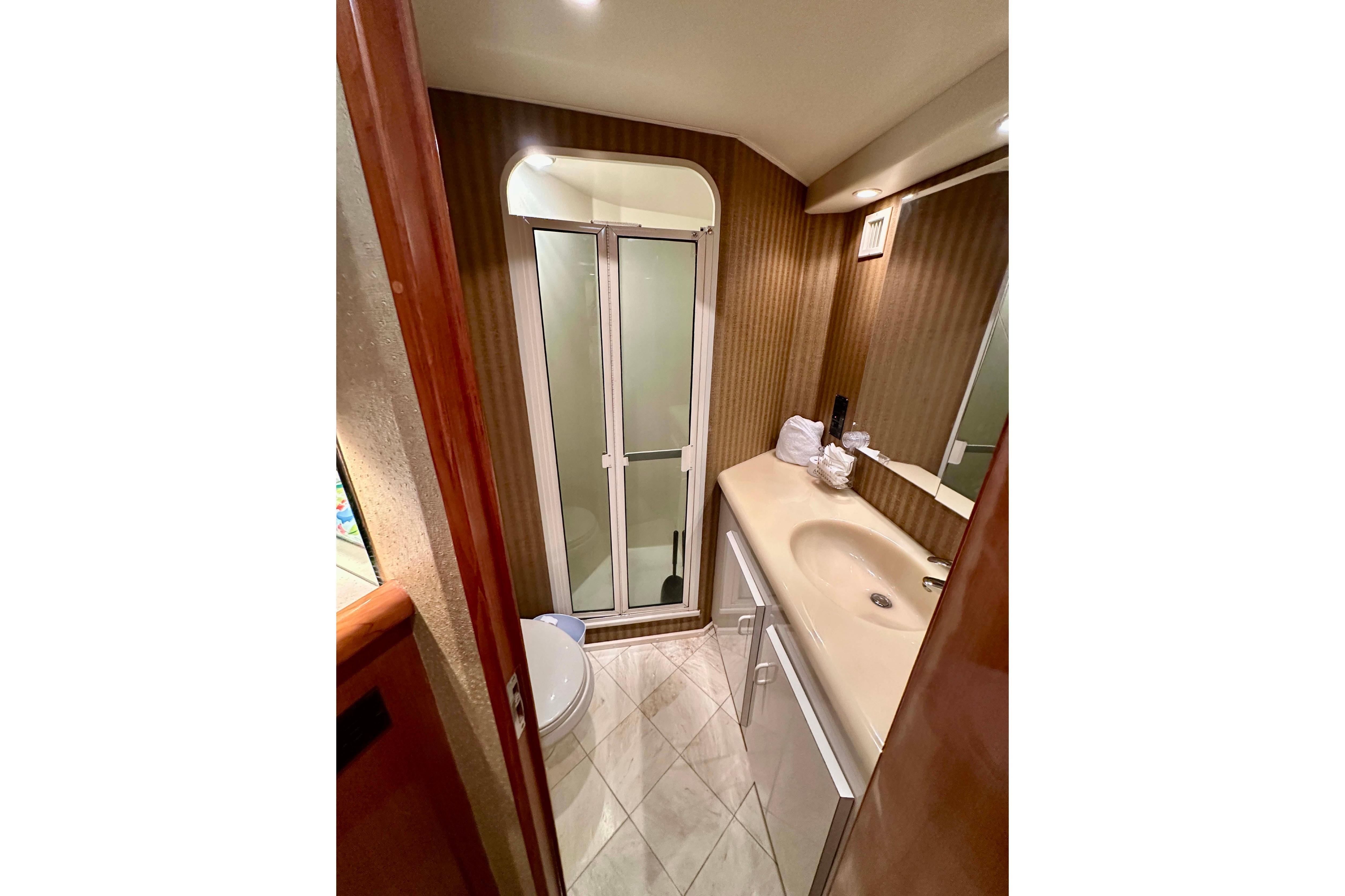 The first guest stateroom is located forward and the second stateroom for guest or crew members is located port, they each feature: