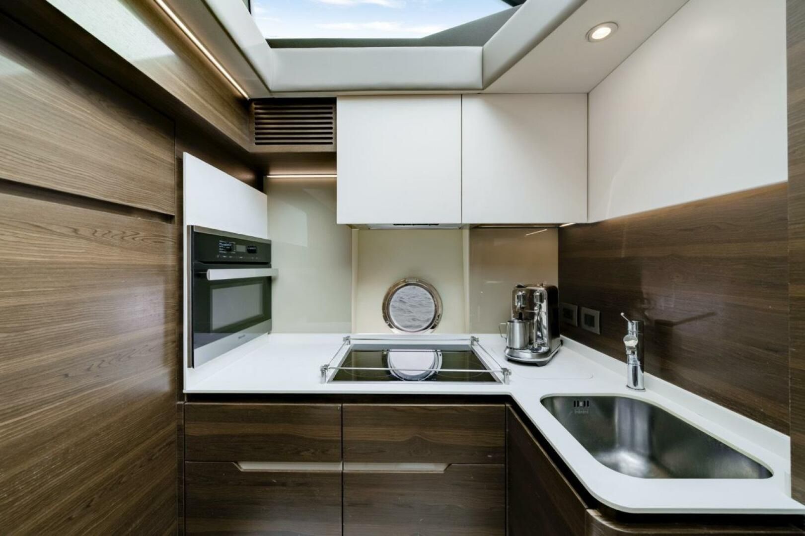 - Flybridge entertainment area with wet bar (Grill + Sink + Refrigerator)