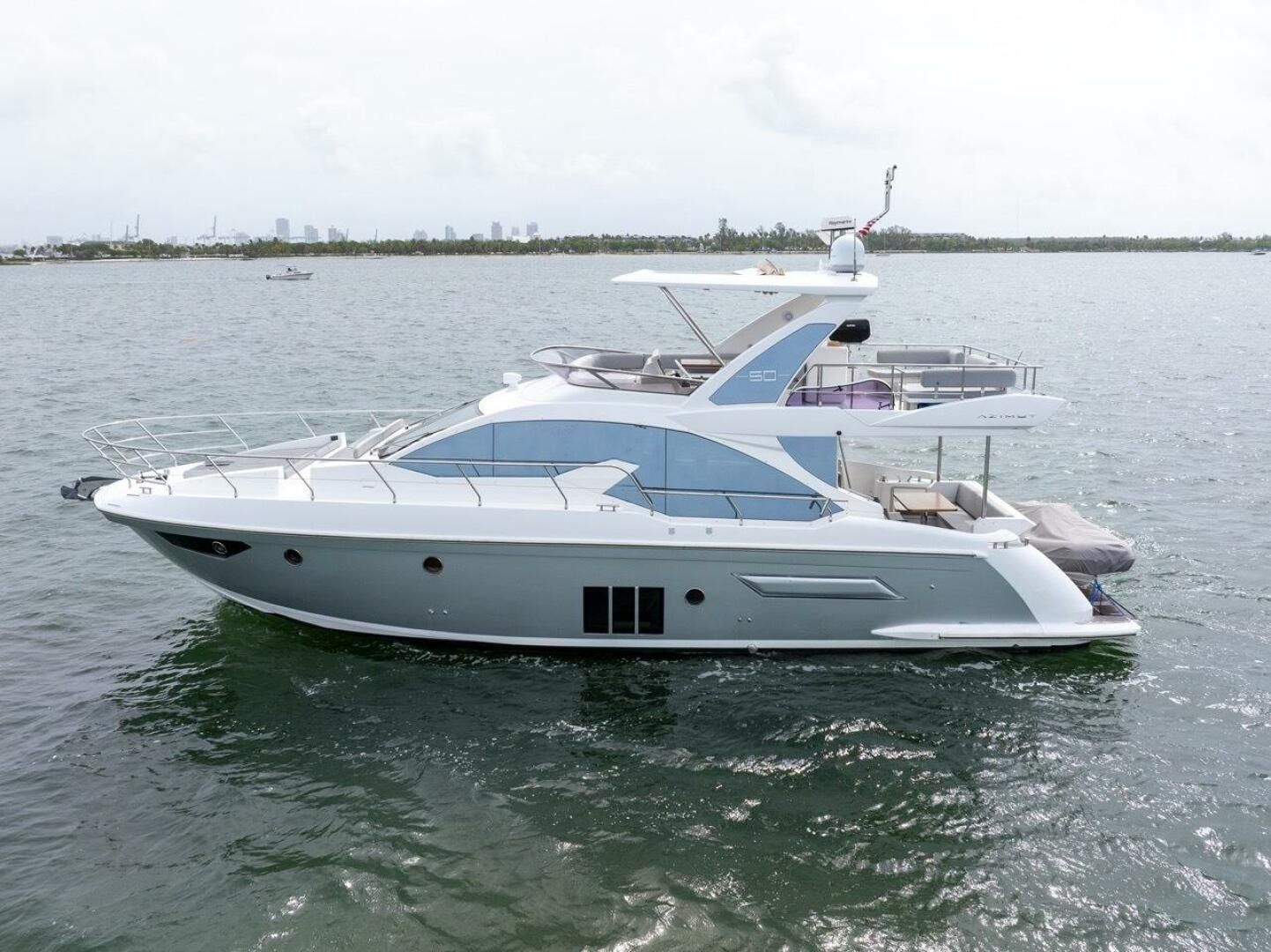 “Eclipse” is a 2016 Azimut 50 Fly, professionally maintained by a full-time captain with all services up to date—engines, turbos, generator, and Seakeeper gyro included. The boat was recently bottom painted and is routinely waxed and polished. Privately used by one family and never chartered. The layout includes a full-beam master with en-suite, a forward VIP, and a third guest stateroom with bunks sharing a second head. Aft crew quarters are currently used as extra storage. The salon features a pull-out full-size sofa bed for additional guests. Notable equipment includes a Seakeeper gyro stabilizer, Xenta joystick at both helms, Miele appliances, Bose surround sound, KVH satellite TV, underwater lights, washer/dryer, cockpit ice maker, flybridge grill and fridge, and a hydraulic swim platform. All systems are fully operational, with interior and exterior upholstery in good condition and full exterior covers included. The vessel is located in Miami. Contact the listing agent with questions or to schedule a private showing. Optional: Virtually new AB Jet Tender available separately (with only 4 hours).