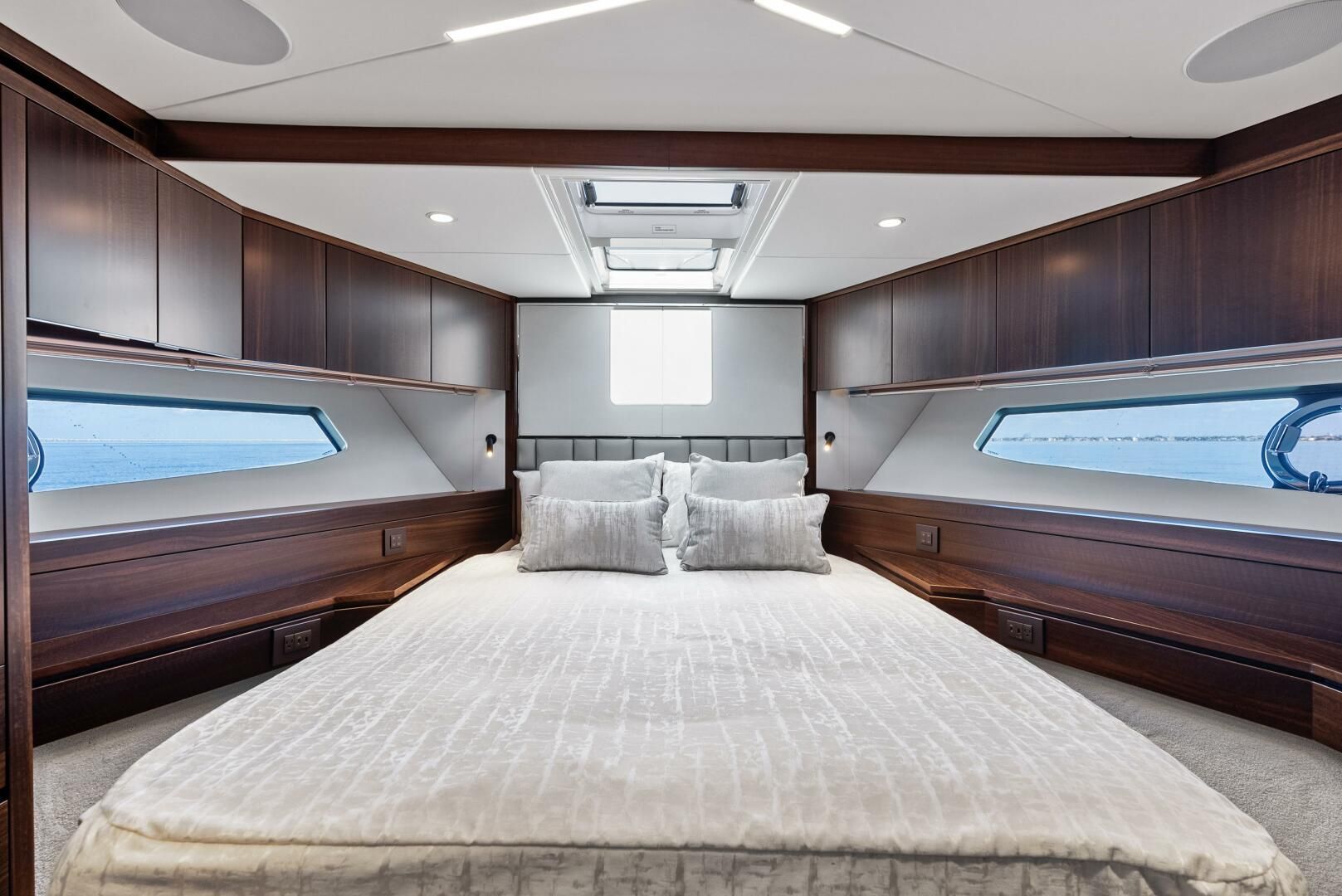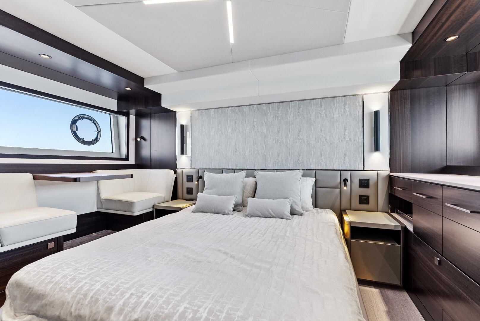 - Custom cabinetry and shelving in master stateroom to maximize storage