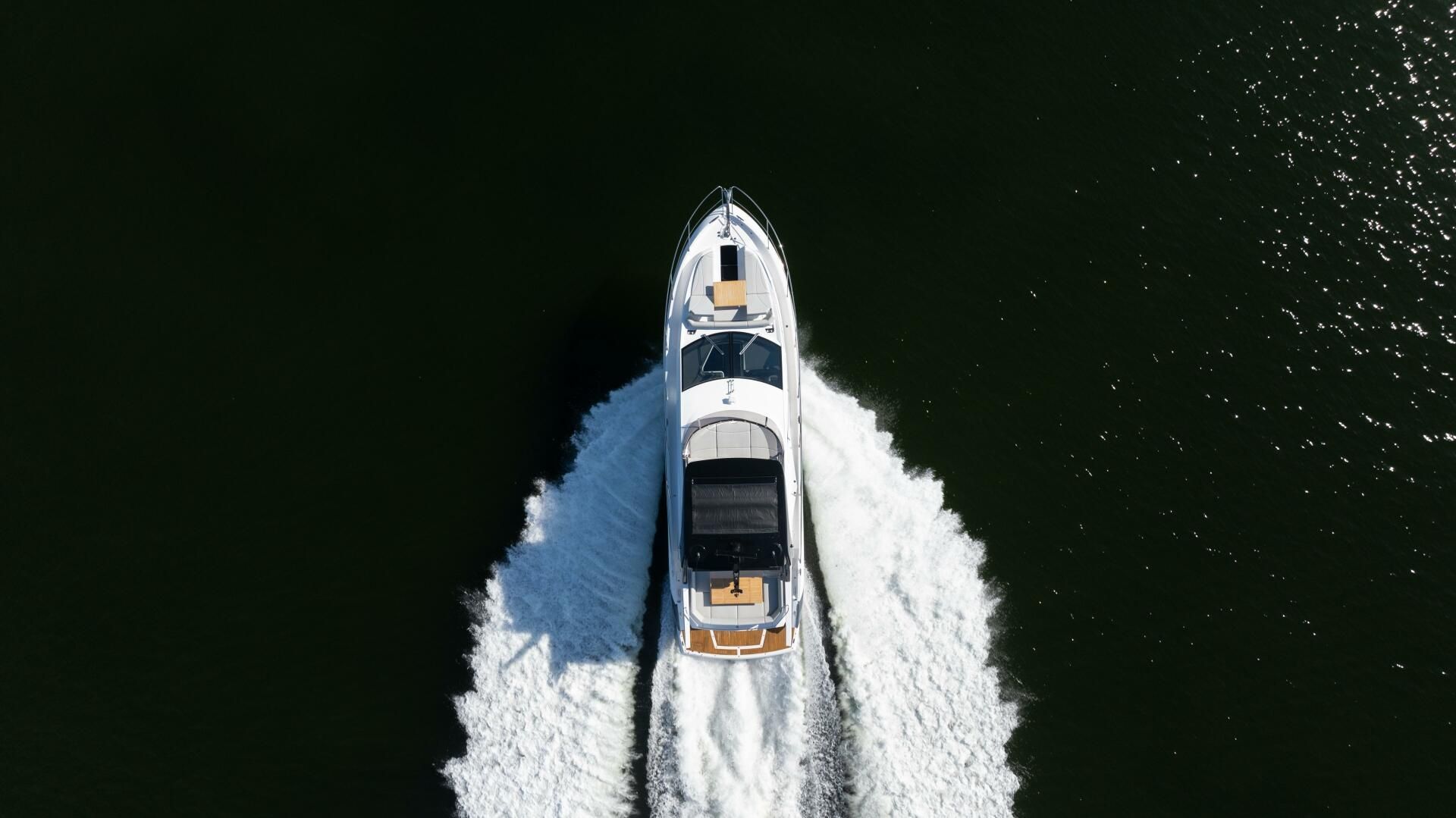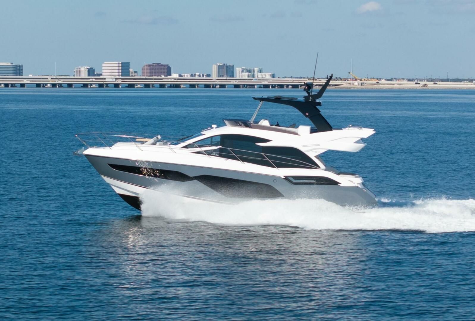- Flybridge Hard top with stainless steel supports and retractable center canopy