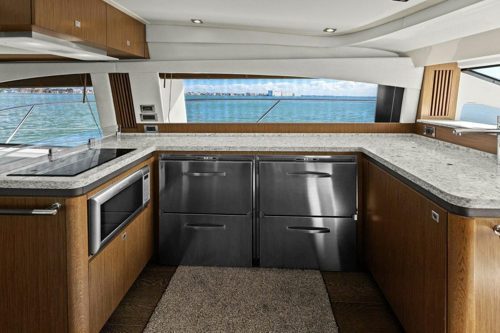 Think of consummate hosts you've met. They support social interaction with beautiful settings and all the right amenities and offerings to bring life to the party, keeping the mood bright, lively and happy. You've just imagined the Fly 510, with its highly functional social zones and crowd-pleasing features to keep you and your guests at full-smile. SkyFlow Design™ circulates light and air throughout the boat. The galley, salon and cockpit combine like an indoor/outdoor great room, and the expansive bridge layout is the icing on the cake. Hosting is easy in such an environment. And then when the pace has slackened, a full-beam master suite breathes peace into every weekend getaway.