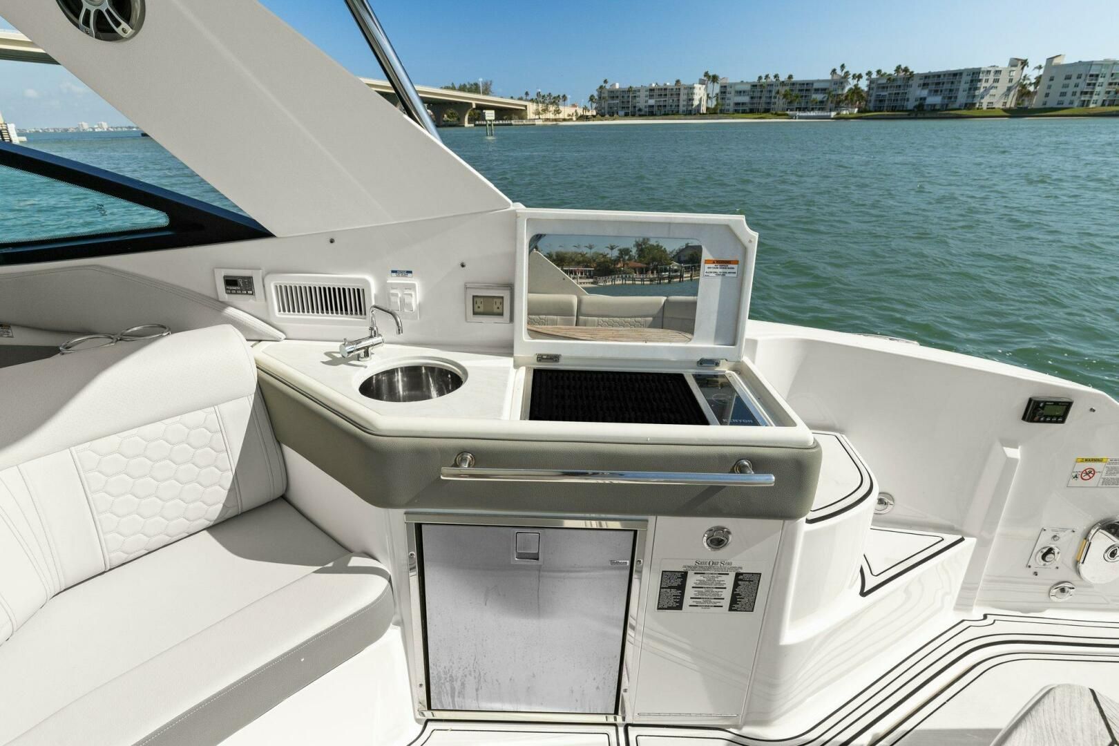 This 2022 Sea Ray 320 Sundancer Outboard is powered by optional Triple Mercury 250 Verados with only 77 hours on them and fresh services completed in June of 2024. An abundance of Factory options leaves nothing to be desired.Trip-250hp JPO White Mercury VeradoBlack Canvas - StandardBlack Gel StripeFlooring Color - GreyFull Hull Color - Kingfisher Teal120v/60 Cycle Electrical SystemA/C / Heating, Cockpit & Cabin 120v/60Anchor, Stainless SteelBlue Led Lighting PackageBlue-thru Hull Under Water LightsBow Table W/ Dedicated StorageCockpit Color - StoneCockpit CoverCockpit Filler CushionsCockpit Refrigerator Dual Volt 120v/60-12vCockpit Table - Fiberglass w/ Teak OverlayDocking LightsDual Digital Dash W/merc V-view Link (12")Dynamic Running SurfaceExtended SunshadeFender ClipsFlag Pole & Base, U.s. FlagFull Hull ColorGel StripeGenerator - Gas - 120v/60hzGrill, Cockpit - Built In - 120v/60Interior Standard - DriftwoodMacerator With Seacock Interlock SystemNmma Core Triple Engine ChargeNtsc T.v. Tuner - Used When ApplicableOpening, PortlightsPremier Stereo - Combined Cabin & CockpitRadarSirius Satellite RadioSki Tow From HardtopSunshade, Bow SeatingTv, Flat Screen W/ Dvd - V-berthTv, Flat Screen W/ Dvd - Mid CabinVHF Radio w/ AntennaWindlass. Rope and Chain