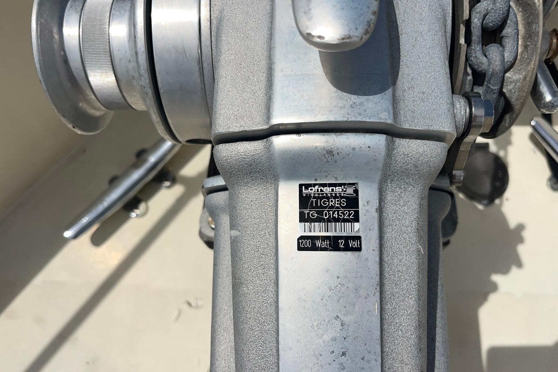 - Lofrans 12v windlass (rebuilt 2025) with foot controls on the bow, and controls at both helm stations