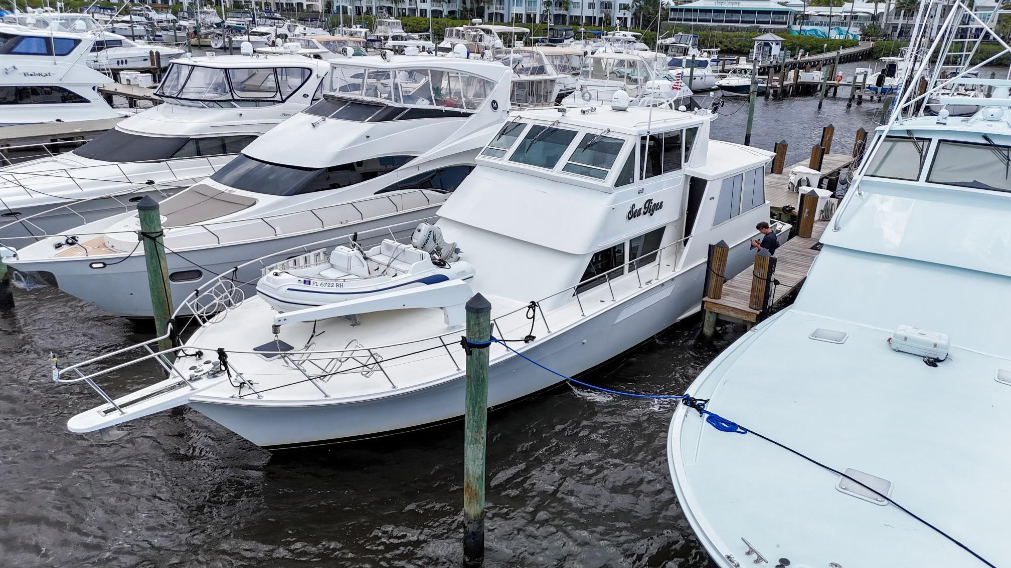 1996 Viking 60 cockpit sport yachtIntroducing “Sea Tiger”, a beautifully kept 1996 60’ Viking Sport Cruiser Cockpit Motor Yacht that delivers the perfect balance of luxury, performance, and reliability. Outfitted with all-new Garmin electronics—including radar, chart plotters, and autopilot, custom pilothouse windows have also recently been installed.—this vessel is fully equipped for confident cruising. She features a full beam master stateroom, two spacious guest staterooms, offering exceptional comfort for family and friends aboard. Whether you’re hosting guests or enjoying extended stays, everyone onboard will appreciate the thoughtful layout and privacy. The MAN engines received a complete service in 2022 (including coolers, aftercoolers, and manifolds), the 20kW Onan generator has been recently serviced “Sea Tiger” is truly turn-key and ready to cruise in style.Key features• Recently Serviced 20kW Onan Generator – Provides reliable onboard power, now upgraded with a new heat exchanger and full service for dependable operation on extended trips.• Completely Serviced MAN Engines – In 2022, both engines underwent a thorough service including the manifolds, coolers, and aftercoolers, delivering smooth, worry-free performance.• Upgraded Garmin Navigation – Outfitted with Garmin electronics including radar, chart plotters, and autopilot to keep you safely on course wherever you go.• Custom Pilothouse Window Installation – The newly added pilothouse windows improve both visibility and onboard aesthetics, giving the helm a fresh, modernized feel.Interior• Three Staterooms – Accommodate family and guests in style with three beautifully designed staterooms. The private master suite is full beam and features its own en-suite head, while the two guest cabins also have there own attached bathrooms, ideal for extended cruising or entertaining overnight guests.• Expansive Salon & Open Cockpit – Whether you’re entertaining or just unwinding, the open cockpit provides the perfect setting for outdoor lounging or taking in the views. Inside, the salon welcomes you to an inviting open atmosphere—an ideal retreat after a day on the water for relaxing or socializing!• Full-Service Galley – Cook with ease in the fully equipped galley, complete with premium appliances and generous storage. Whether you’re preparing meals at anchor or hosting dockside, this space makes onboard living comfortable and convenient.SPECSEngines: x2Make: MANModel: D2842 LE406Year:1996Power: 1200HP each @2300RPMHours: 4600Type: InboardDrive: Direct DriveFuel: dieselSpeed numbersCruise speed: 25knMax speed: 30knDemensionsLength: 60ft Max Draft: 5ft Beam: 18ftHeight: 19.5Weight: 78,000LbDeadrise at transom: 15.5Tanks: Fresh water tank: 200galFuel: 1300galHolding tank: 75galENGINES•Twin MAN D2842 LE406•2400hp•4600 hours