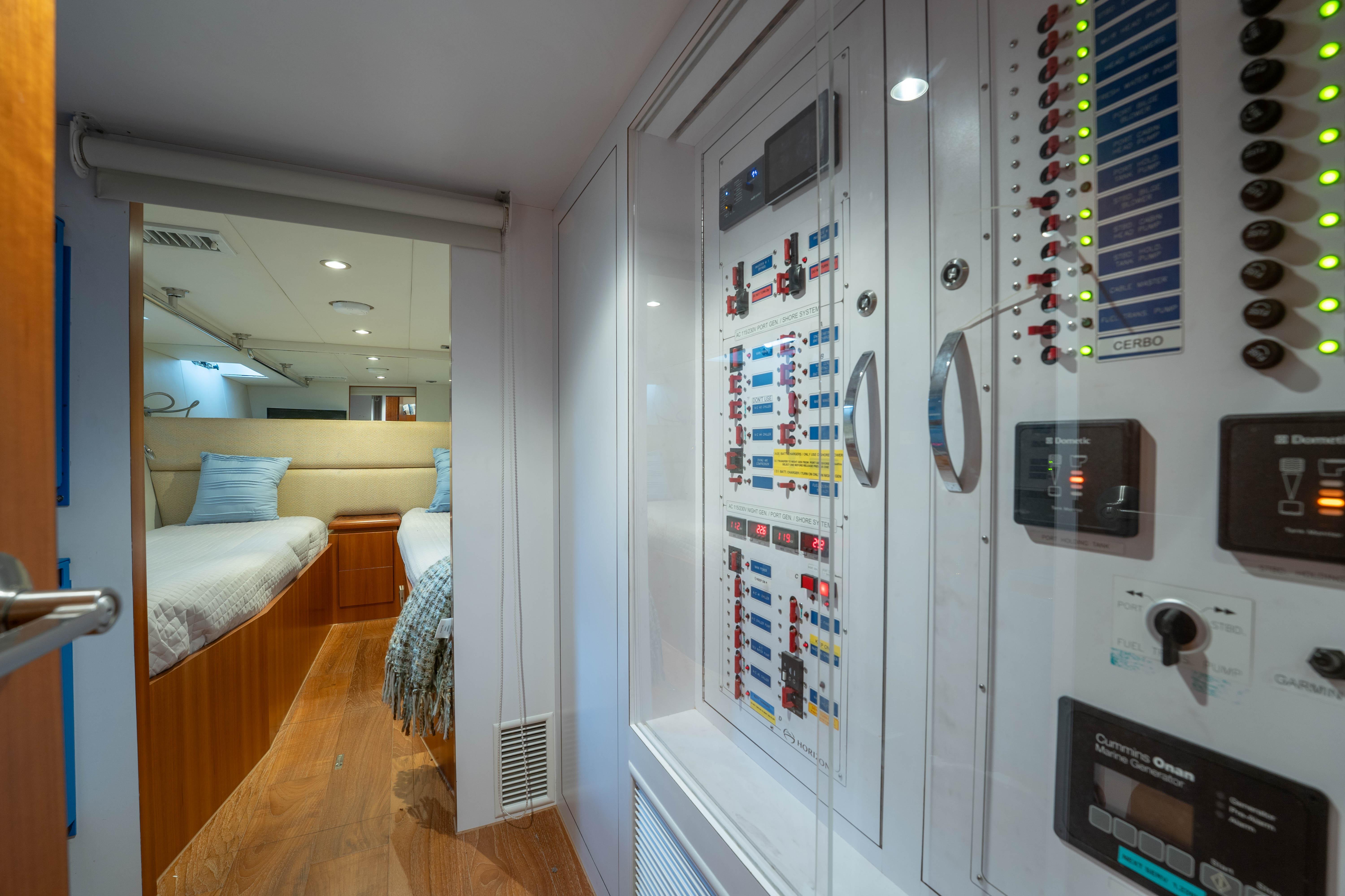 This 2016 Horizon PC60 is a standout example of Horizon’s signature on-deck master, four-stateroom, three-head layout—a design that maximizes space, comfort, and panoramic views while delivering world-class cruising performance.Powered by twin Cummins QSM11 705HP diesels (1,450 hours), she cruises effortlessly at 18 knots with a top speed of 22 knots, offering an ideal blend of speed and efficiency. A cruising range of 1,000 NM at 10 knots and 450 NM at 18 knots. Always maintained under the care of a professional captain, this yacht is turnkey and fully equipped for extended cruising.Key Features & UpgradesOn-deck master stateroom plus three guest cabins, 4 stateroom / 3 head layoutTwin Cummins QSM11 705HP engines Cruise speed: 18 knots, top speed: 22 knotsDual generators:Cummins 21kW (3,665 hrs)Cummins 8kW (1,026 hrs) – perfect for night or backup useUpgraded Victron Energy house battery system with 2,000 amp hours — capable of powering the yacht’s systems without generator useAll-new Dometic air handlers and ducting throughout the vesselStarlink internet system installed for reliable global connectivityBoat consistently run and maintained by a professional captainThis Horizon PC60 combines proven performance with thoughtful upgrades that enhance comfort, efficiency, and self-sufficiency — making her an outstanding opportunity for those seeking a luxury power catamaran that’s ready to cruise.