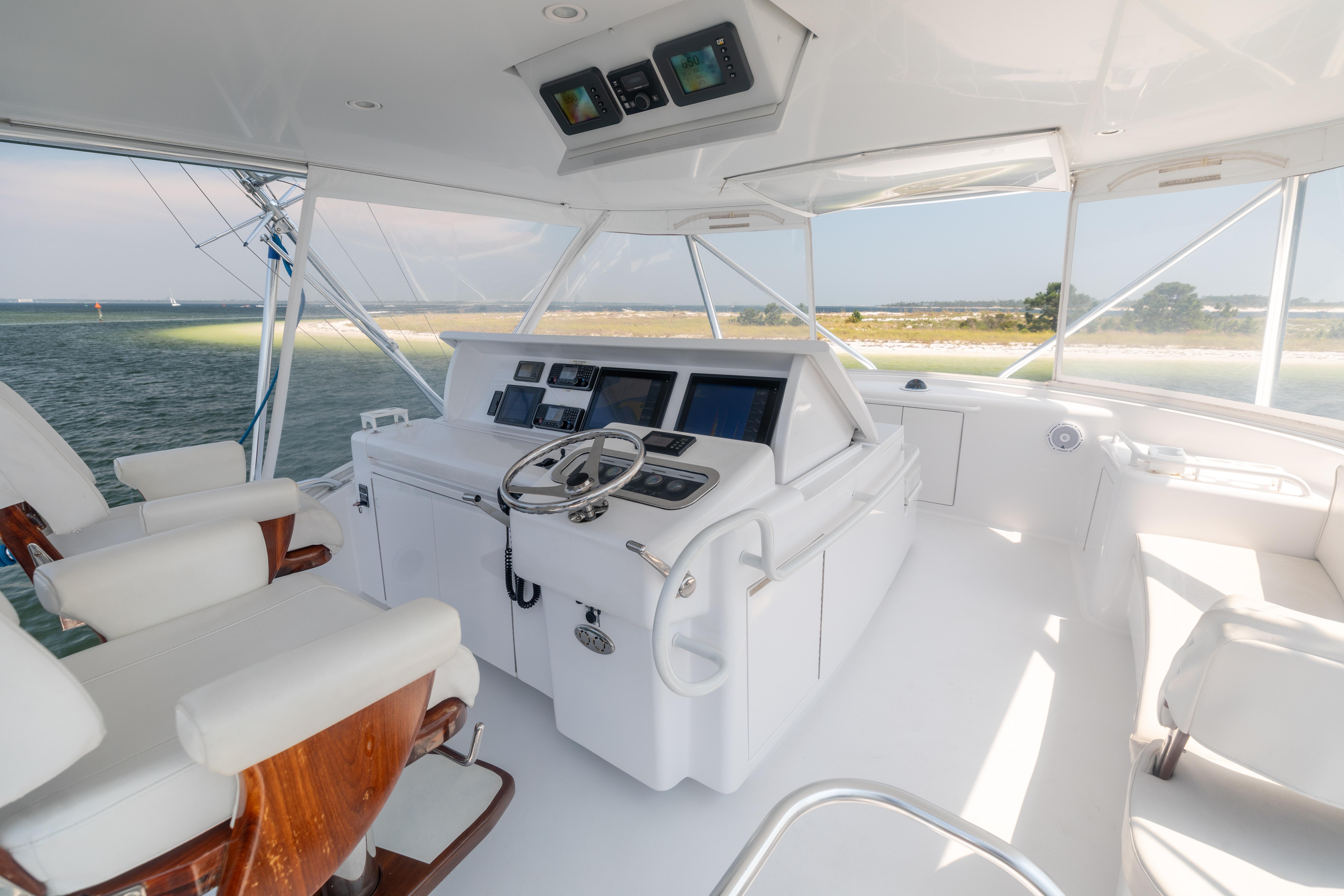 - Custom helm pod with polished stainless wheel and single lever electronic controls