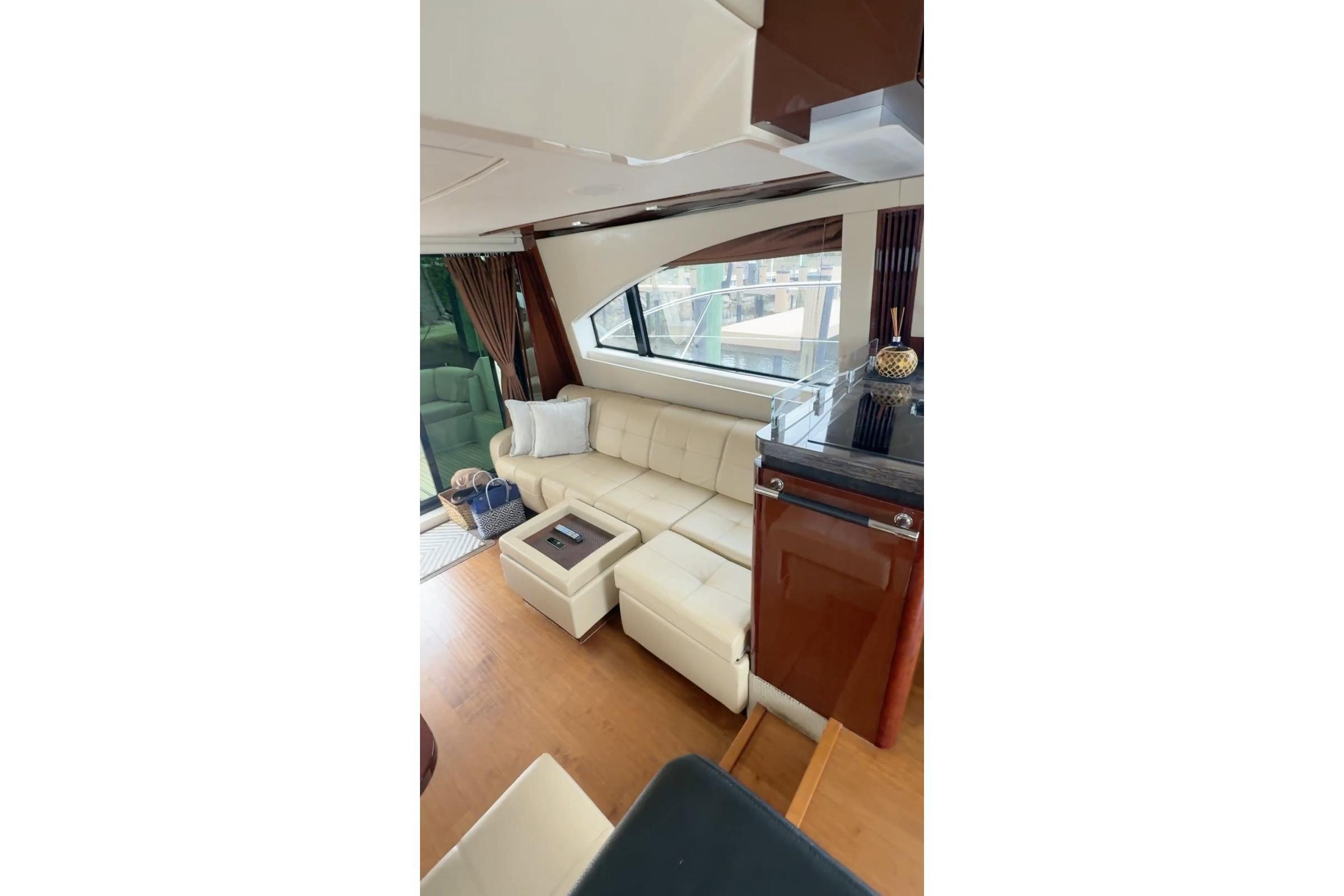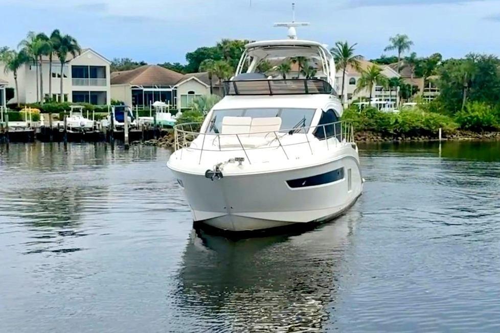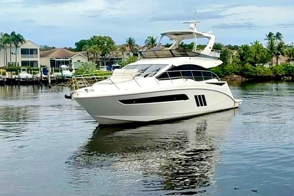2016 SeaRay 510 FlyTwin Cummins QSM-11 V-Drive Engines 715HP 1500 Hours!Think of consummate hosts you've met. They support social interaction with beautiful settings and all the right amenities and offerings to bring life to the party, keeping the mood bright, lively and happy. You've just imagined the 510 Fly, with its highly functional social zones and crowd-pleasing features to keep you and your guests at full-smile. SkyFlow Design circulates light and air throughout the boat. The galley, salon and cockpit combine like an indoor/outdoor great room, and the expansive bridge layout is the icing on the cake. Hosting is easy in such an environment. And then when the pace has slackened, a full-beam master suite breathes peace into every weekend getaway.Key FeaturesV-Drive w/Digital Throttle & Shift Propulsion with joystick controlLuxurious full beam master stateroom with multiple configurationsStandard three stateroom layout and two full heads, each with separate showersSocial zone design with galley up and featuring continuous cockpit / salon interactionStandard, fully complemented, upper & lower helm stationsExpansive bridge layout with multiple seating, lounging and dining areasUpgraded Garmin Radar/Chartplotter combo at lower and upper control stationsSocial and entertainment focus"SkyFlow Design" for bright interiors: Expansive windows and a three-pane sliding glass door connecting the cockpit to the salon create an open, airy atmosphere that fills the interior with natural light.Expansive and versatile flybridge: The flybridge provides a large social space with multiple seating, lounging, and dining areas. It can include a wet bar, electric grill, and refrigerator for entertaining guests.Seamless indoor-outdoor flow: The cockpit and salon areas blend to create one large social zone. A fiberglass dinette with seating offers a comfortable space for al fresco dining.Dual helm stations: The upper helm on the flybridge and the primary helm in the salon provide flexible options for piloting, ensuring the captain can be part of the social gathering.Luxury and accommodationsFull-beam master stateroom: A key luxury feature is the spacious, full-beam master suite located amidships. It comes with large hull windows on both sides, dressers, and an ensuite head with a separate shower.Impressive cabin layout: The yacht features a standard three-stateroom, two-head layout that offers ample space and comfort for owners and guests on weekend trips or longer cruises.High-end interior finishes: The salon and cabins boast high-quality materials, such as rich wood cabinetry and premium upholstery, contributing to the boat's elegant atmosphere.Entertainment system: A large flat-screen TV and a premium sound system with Bluetooth and SiriusXM capabilities ensure top-tier onboard entertainment.Performance and conveniencePowerful and reliable engines: The yacht is powered by twin Cummins diesel engines, delivering a balance of performance, fuel efficiency, and durability.Zeus pod drives with joystick control: When equipped with Zeus pod drives, the 510 Fly offers incredible low-speed maneuverability. The joystick control makes docking easy and stress-free."Skyhook" feature: This available option uses GPS to automatically maintain the boat's position and heading, perfect for waiting for a bridge or a slip to open.Hydraulic swim platform: A popular option that simplifies launching and retrieving a tender or provides an easy way to access the water.The 2016 Sea Ray 510 Fly is a 51ft flybridge yacht prized for its spacious, social layout, luxurious accommodations, and solid performance. Its "SkyFlow Design" and integrated cockpit and salon create a large, seamless entertaining area.